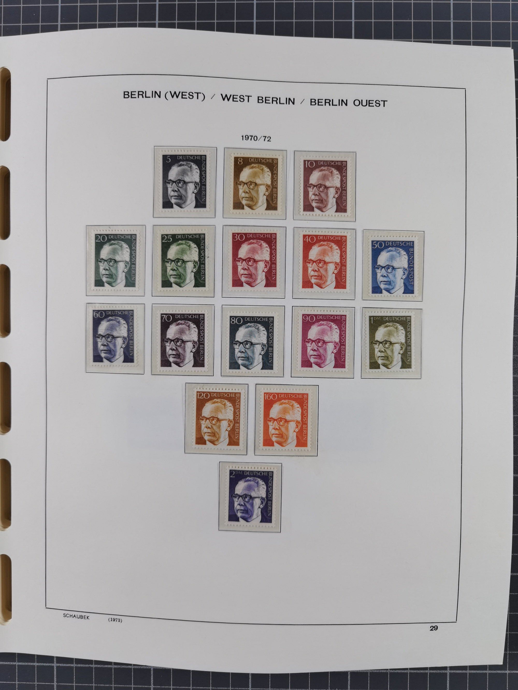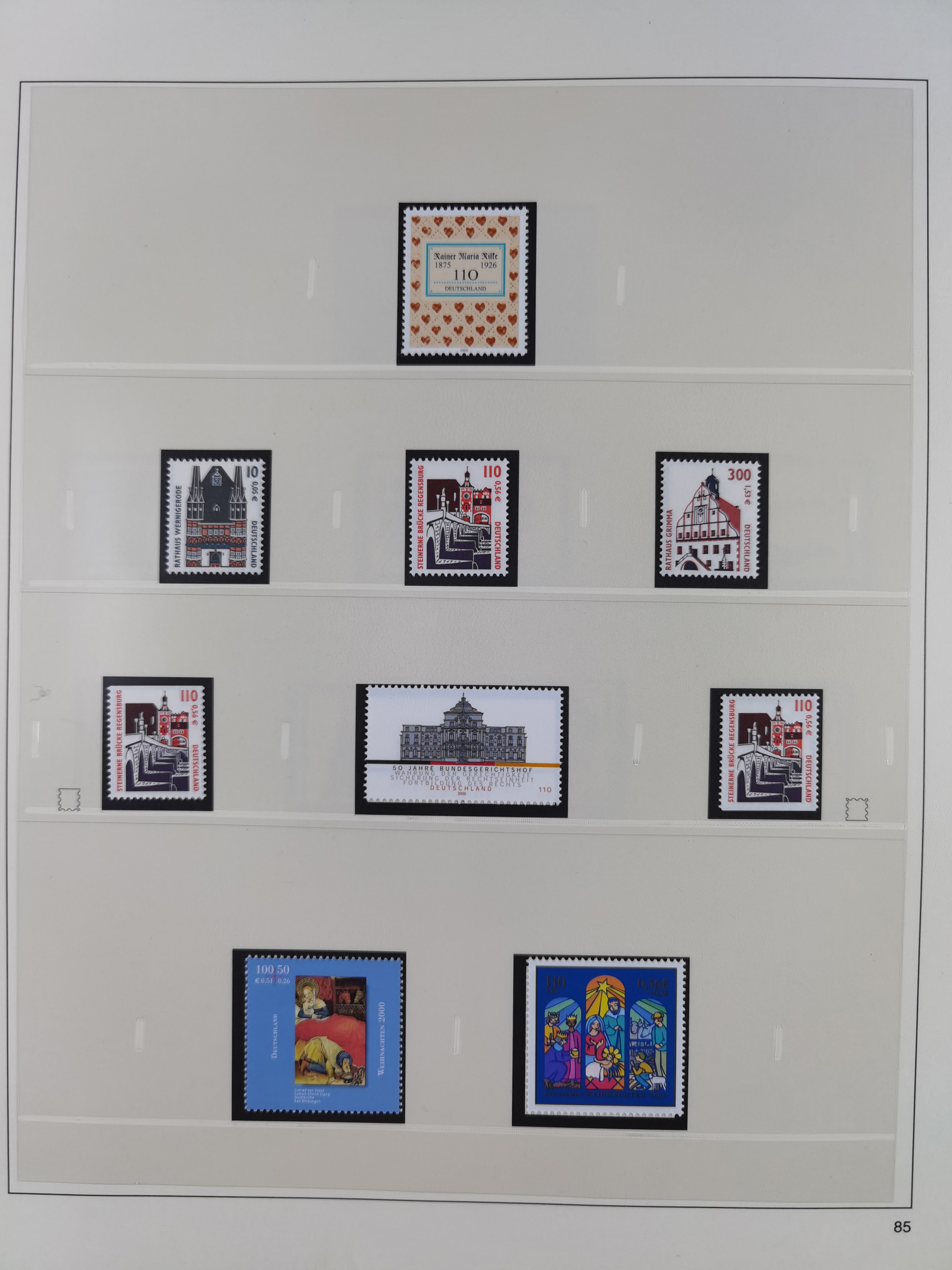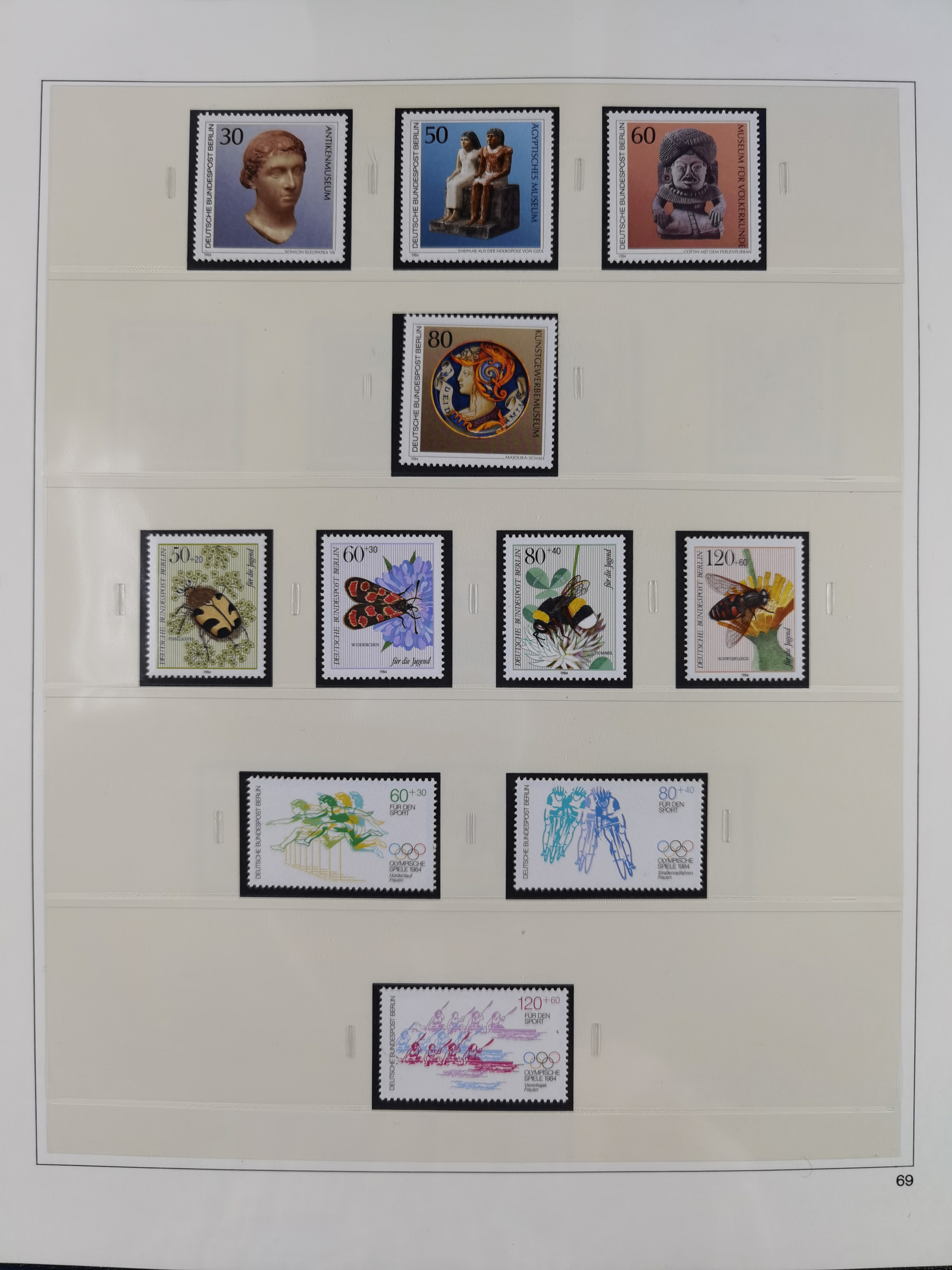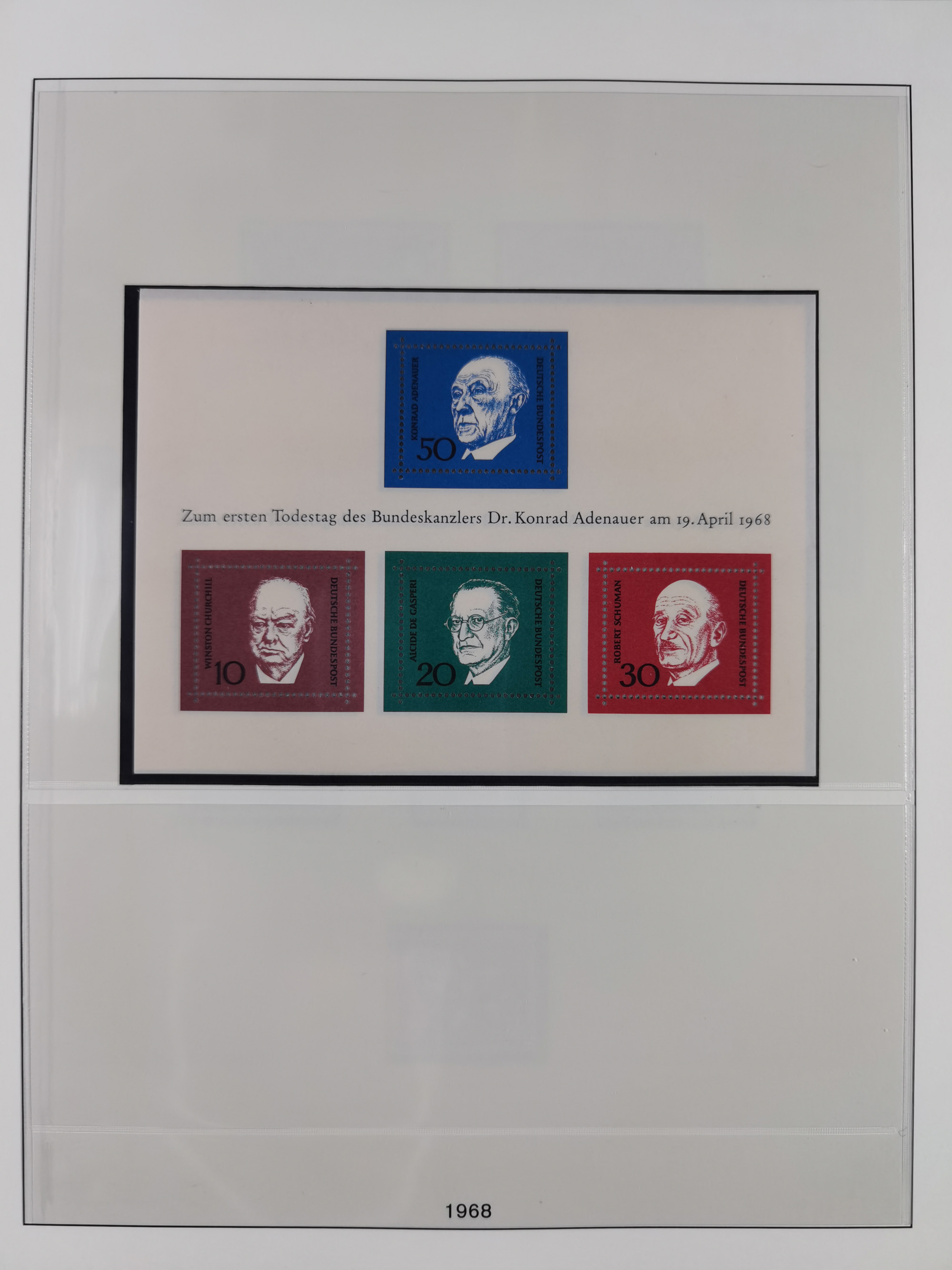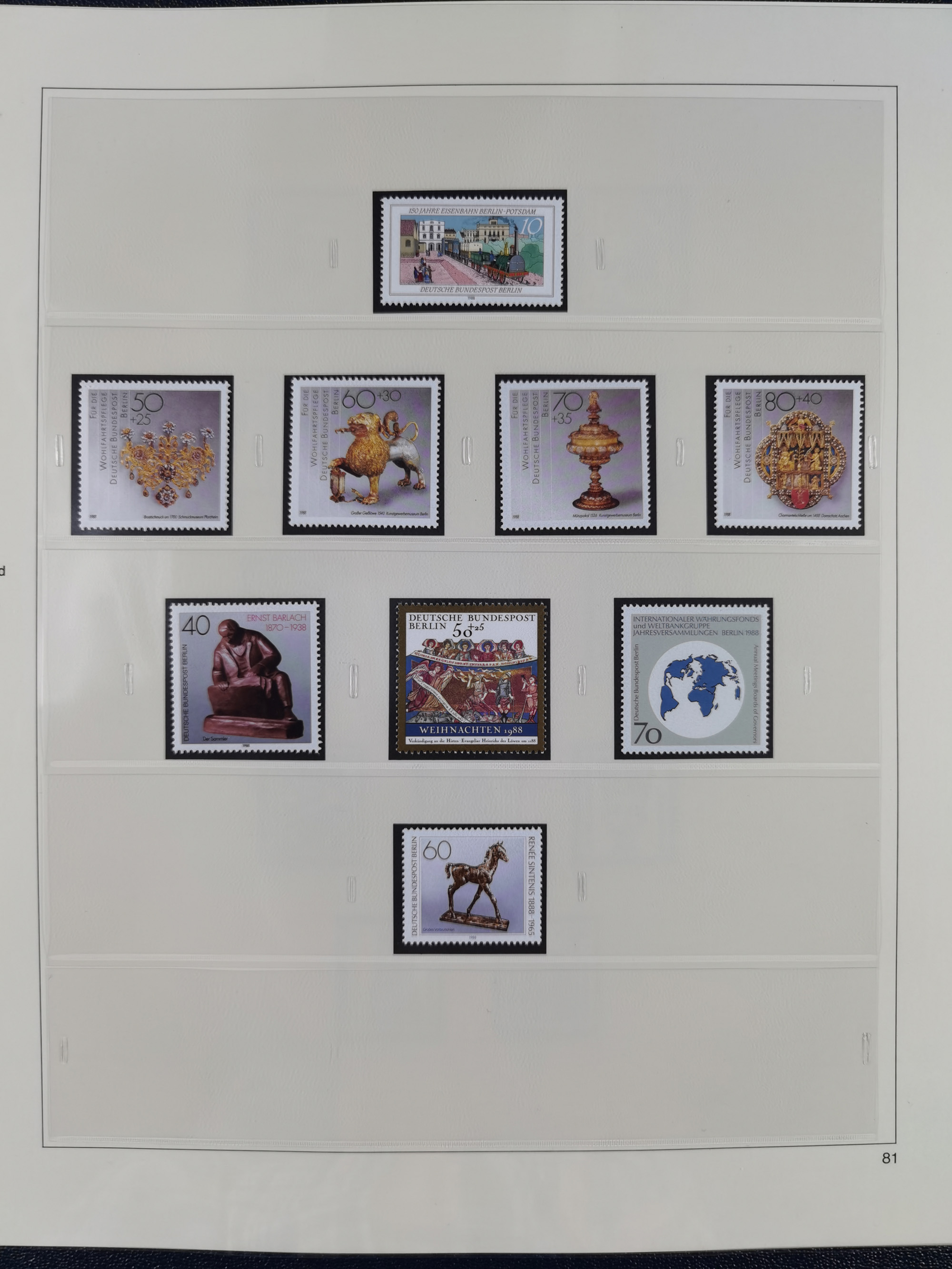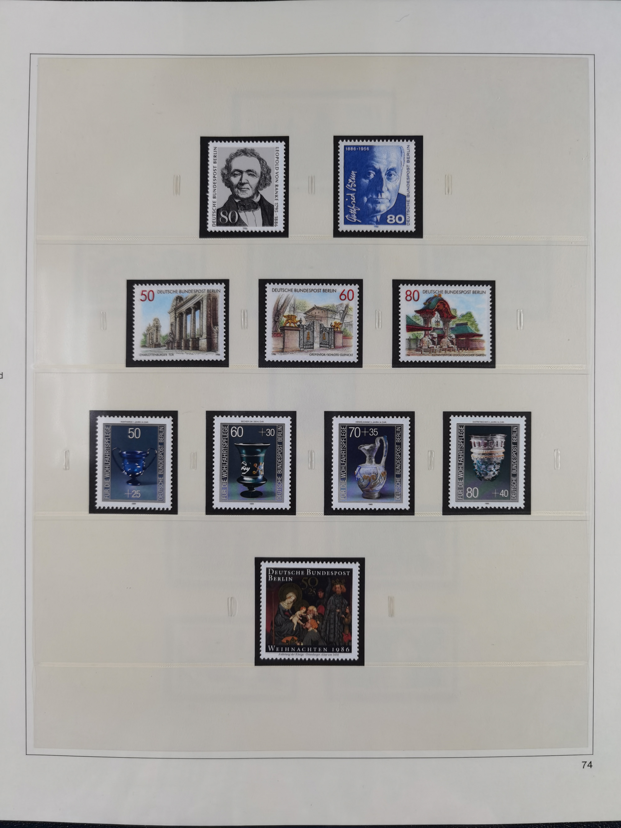 1948/2000, fast ausschließlich postfrischer Sammlungsbestand ab Berlin mit u.a. zwei Schwarzaufdruck-Sätzen, Bl. 1 je ungebraucht und nachgummiert, Bauten, Währungsgeschädigte, sowie besseren Ausgaben, Bundesrepublik 1951-2000 mit u.a. Posthorn 30, 50 und 70 Pfg. postfrisch, Heuss in großen Einheiten und mit Bogenrand, sowie einer fast kompletten Sammlung DDR, etliches mehrfach und mit Bogen- bzw. Eckrand, gute Erhaltung, in 17 Vordruckalben