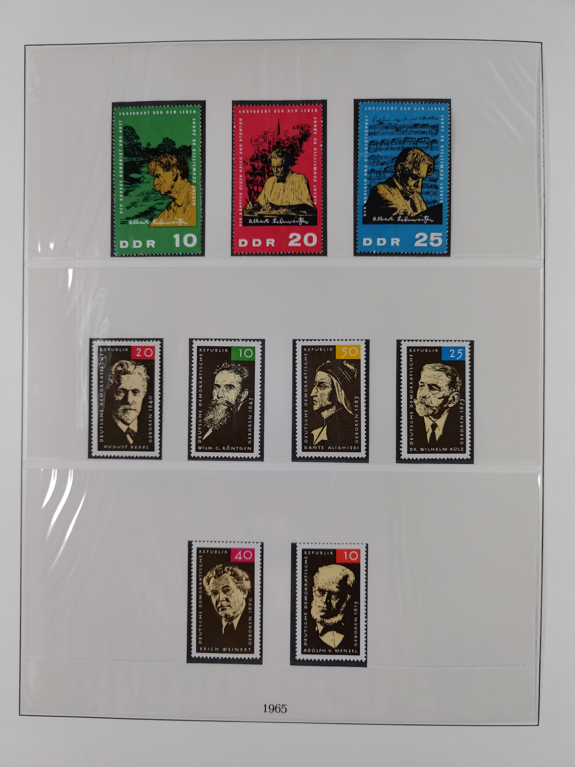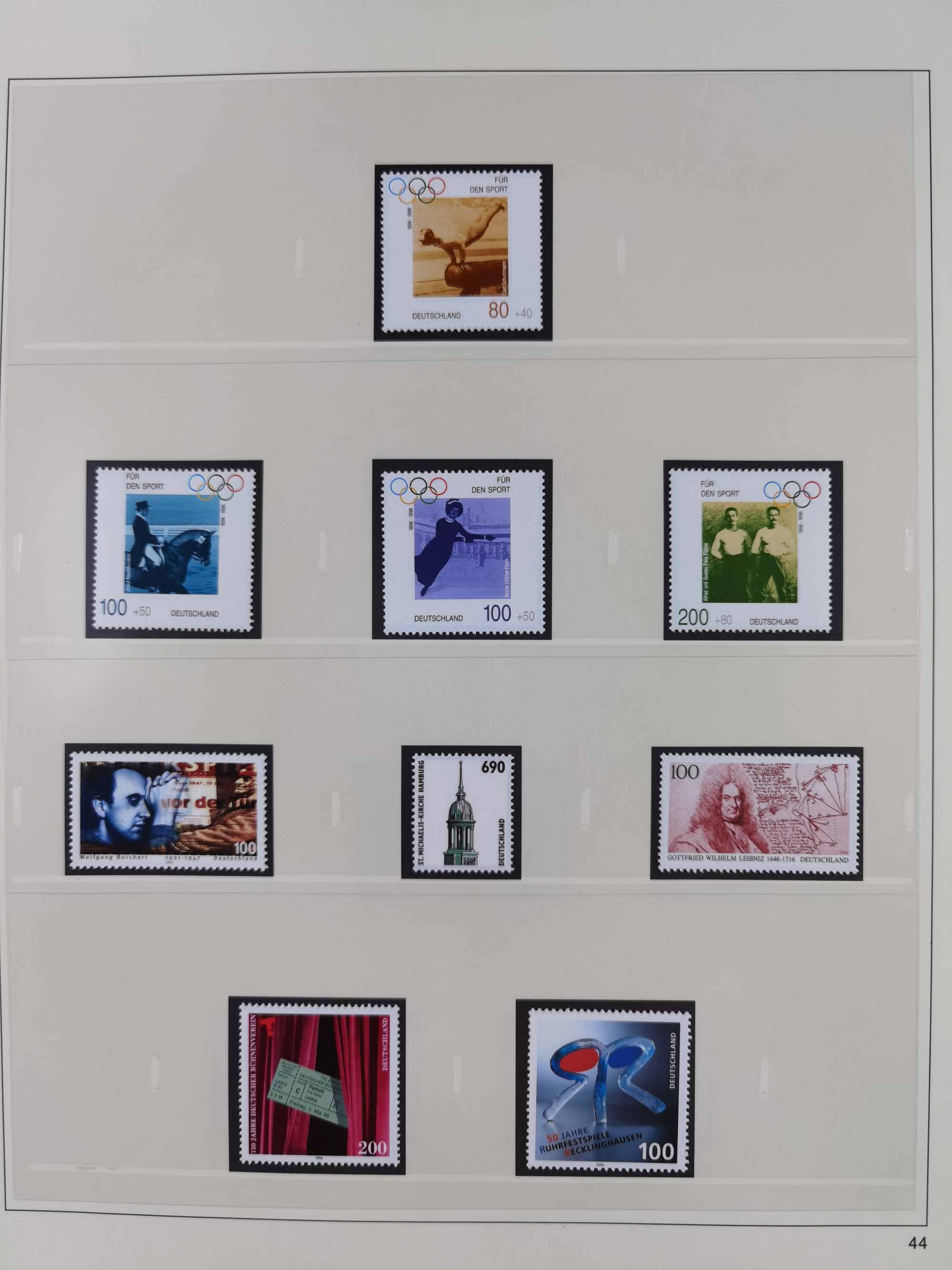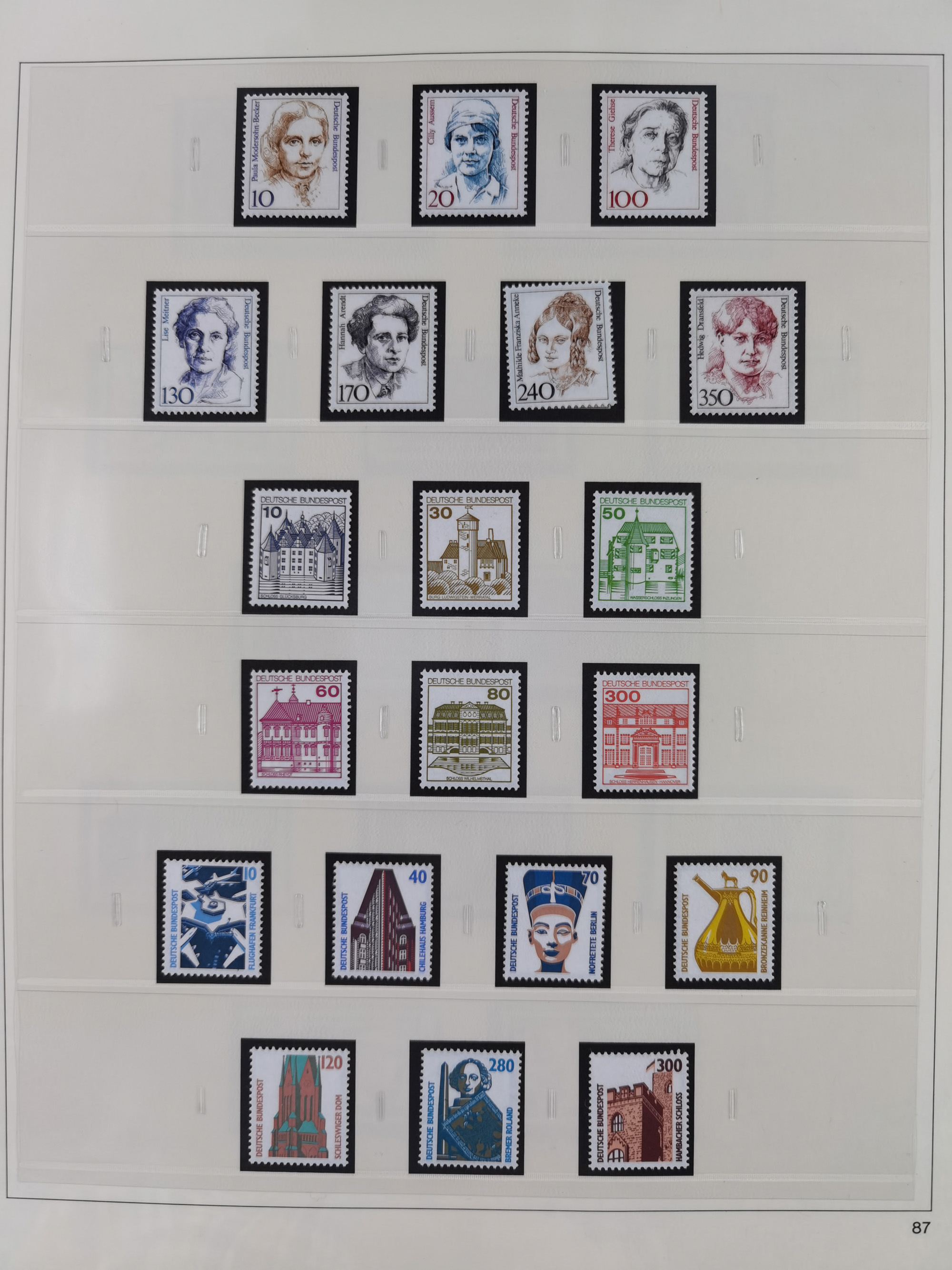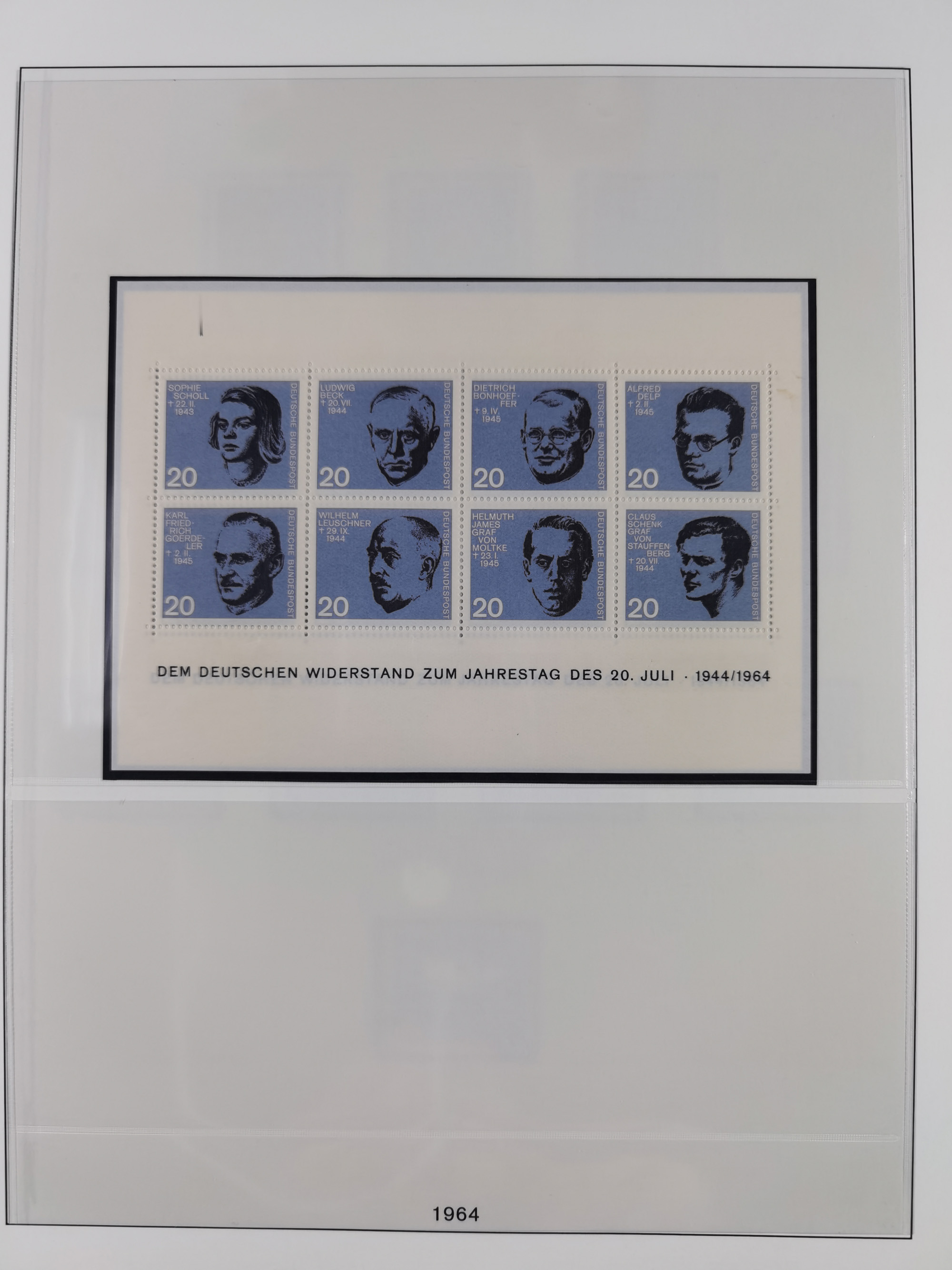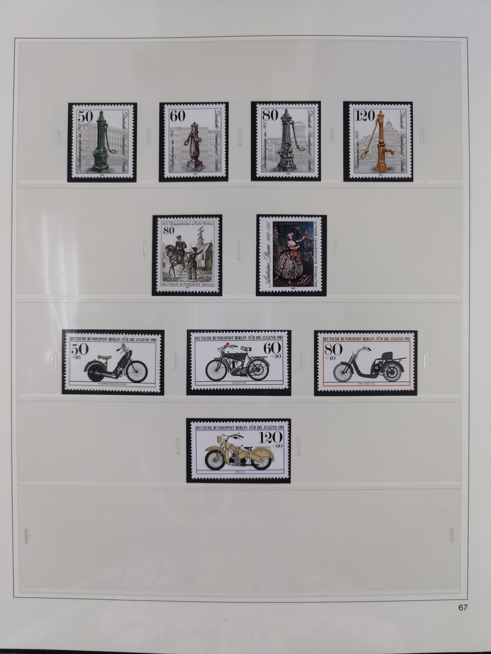 1948/2000, fast ausschließlich postfrischer Sammlungsbestand ab Berlin mit u.a. zwei Schwarzaufdruck-Sätzen, Bl. 1 je ungebraucht und nachgummiert, Bauten, Währungsgeschädigte, sowie besseren Ausgaben, Bundesrepublik 1951-2000 mit u.a. Posthorn 30, 50 und 70 Pfg. postfrisch, Heuss in großen Einheiten und mit Bogenrand, sowie einer fast kompletten Sammlung DDR, etliches mehrfach und mit Bogen- bzw. Eckrand, gute Erhaltung, in 17 Vordruckalben