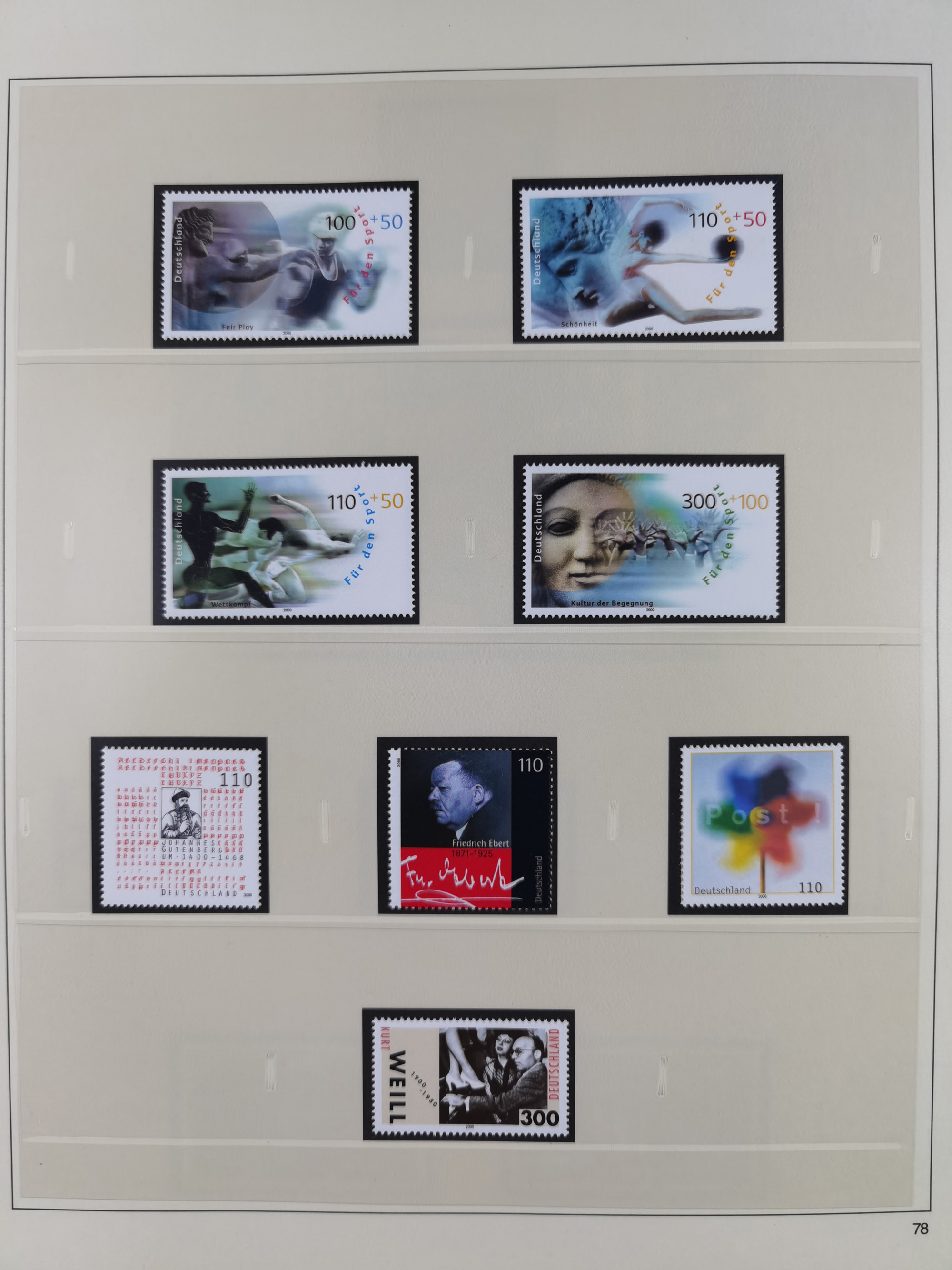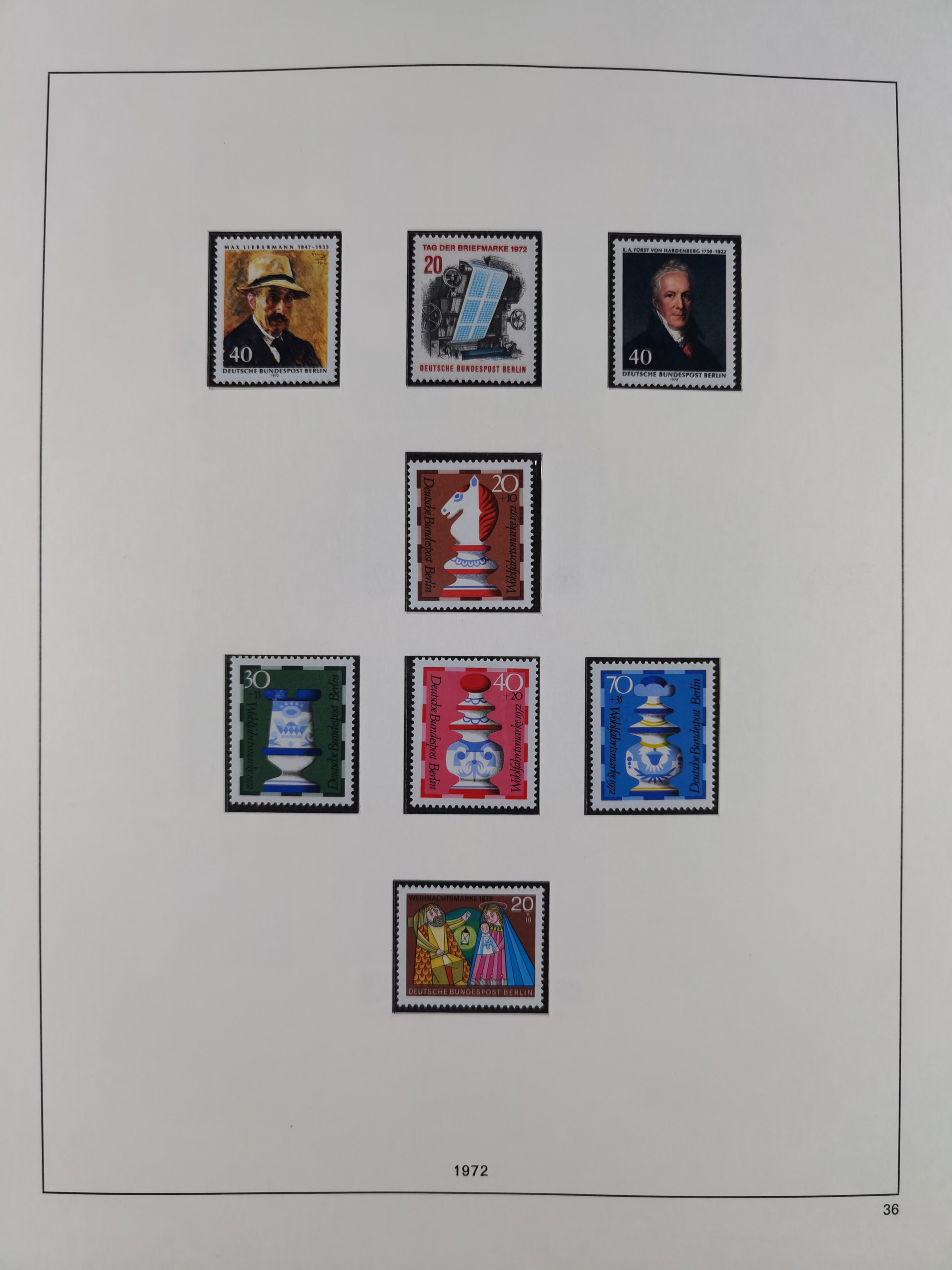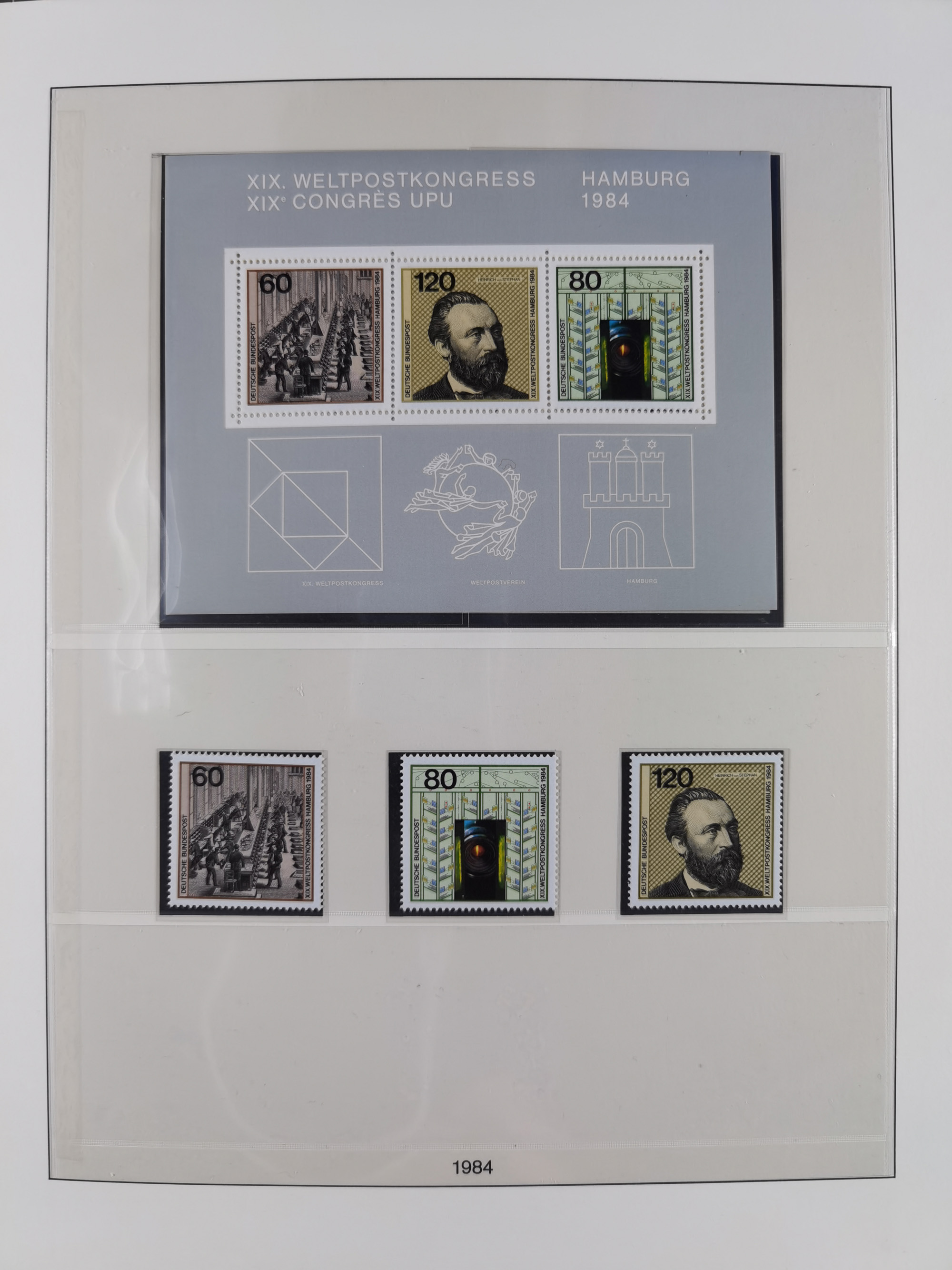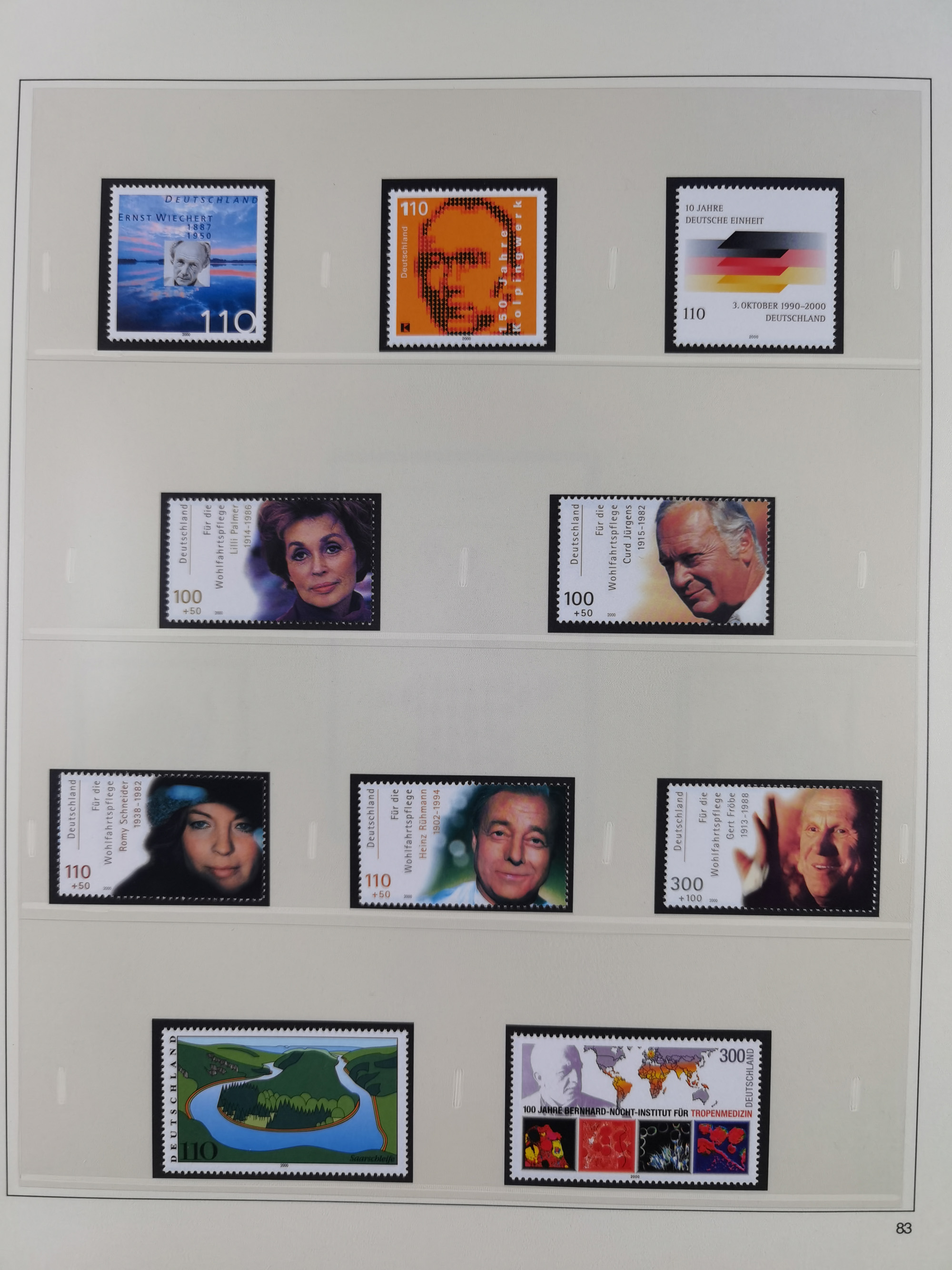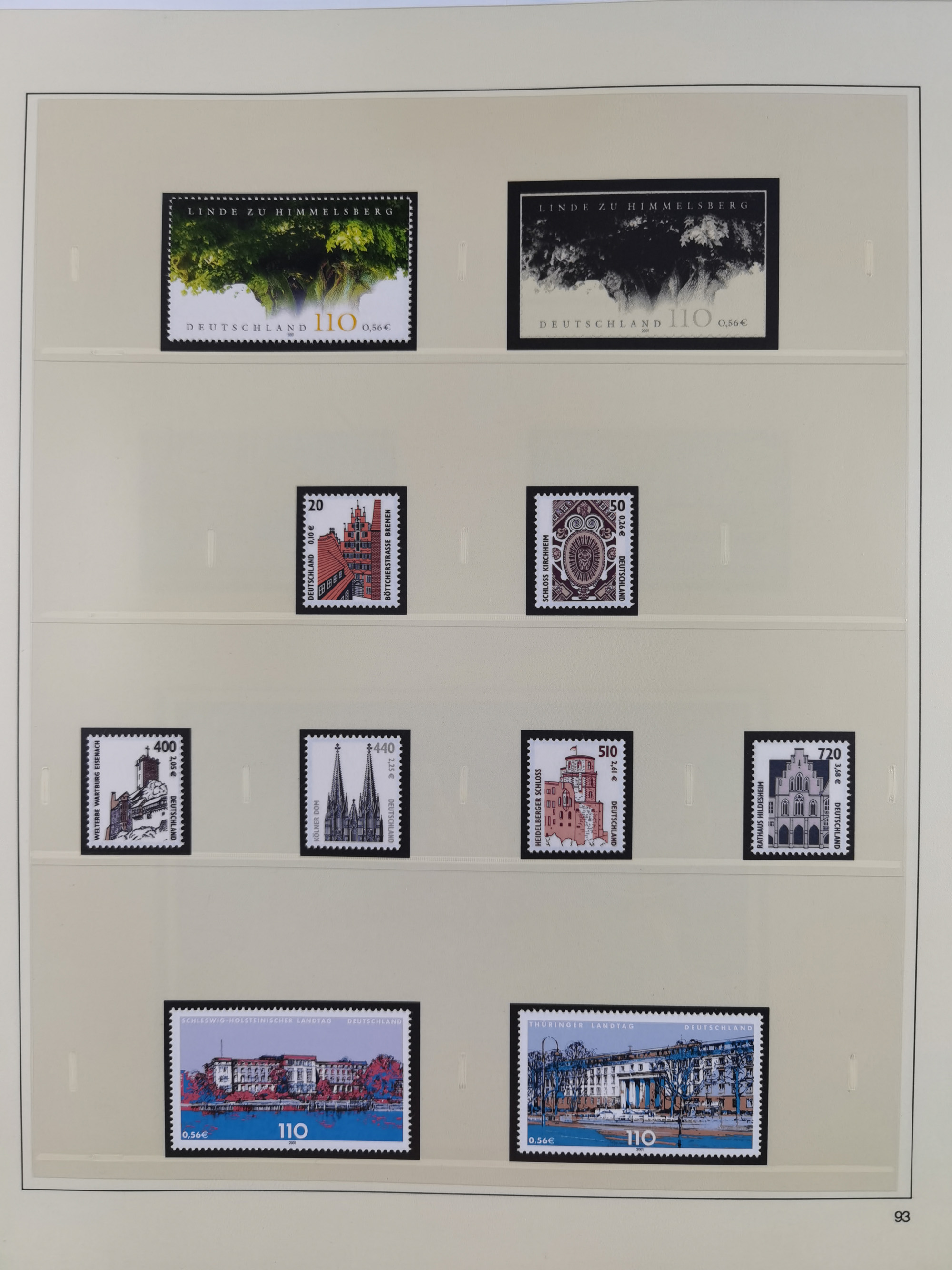 1948/2000, fast ausschließlich postfrischer Sammlungsbestand ab Berlin mit u.a. zwei Schwarzaufdruck-Sätzen, Bl. 1 je ungebraucht und nachgummiert, Bauten, Währungsgeschädigte, sowie besseren Ausgaben, Bundesrepublik 1951-2000 mit u.a. Posthorn 30, 50 und 70 Pfg. postfrisch, Heuss in großen Einheiten und mit Bogenrand, sowie einer fast kompletten Sammlung DDR, etliches mehrfach und mit Bogen- bzw. Eckrand, gute Erhaltung, in 17 Vordruckalben