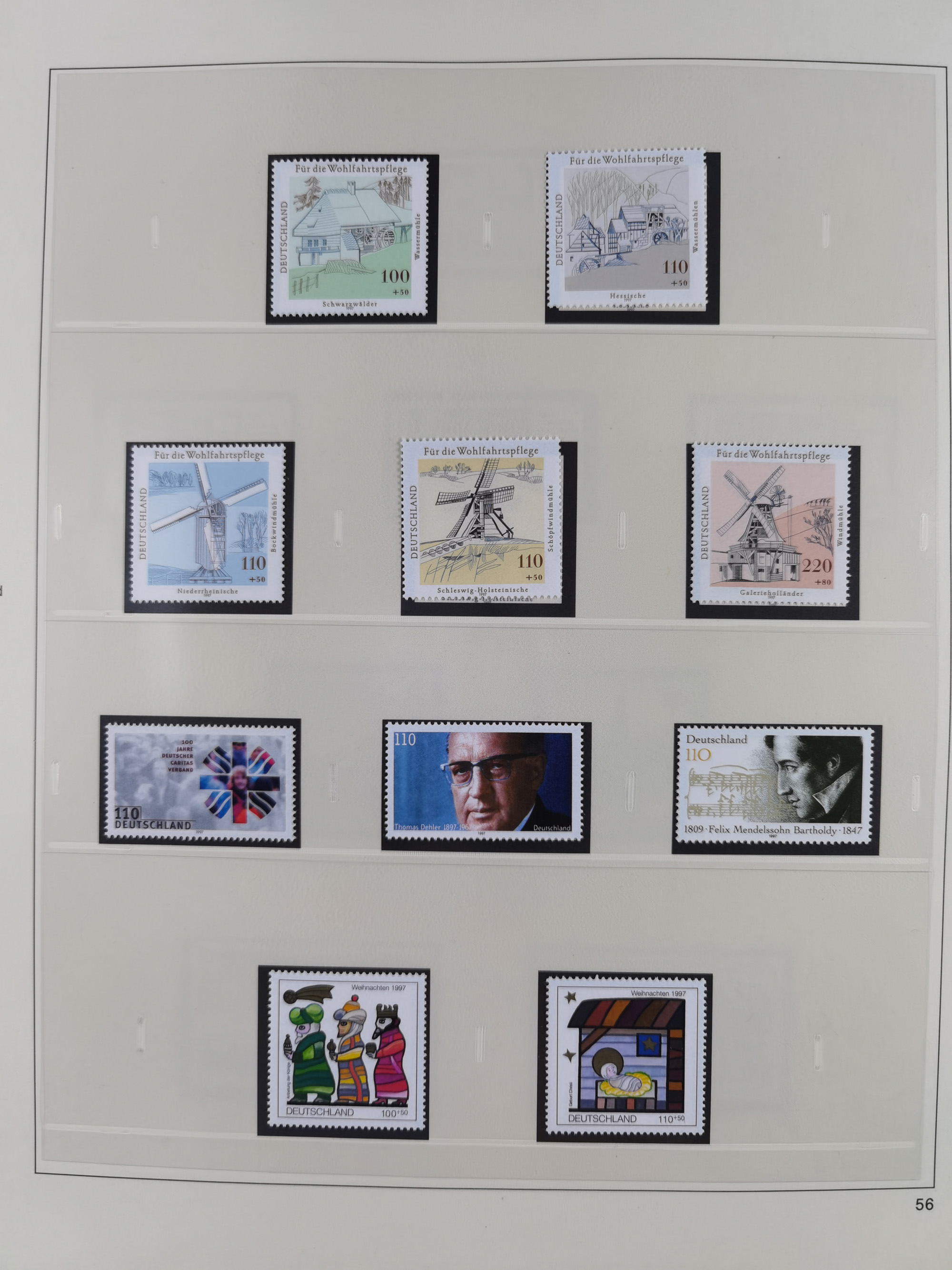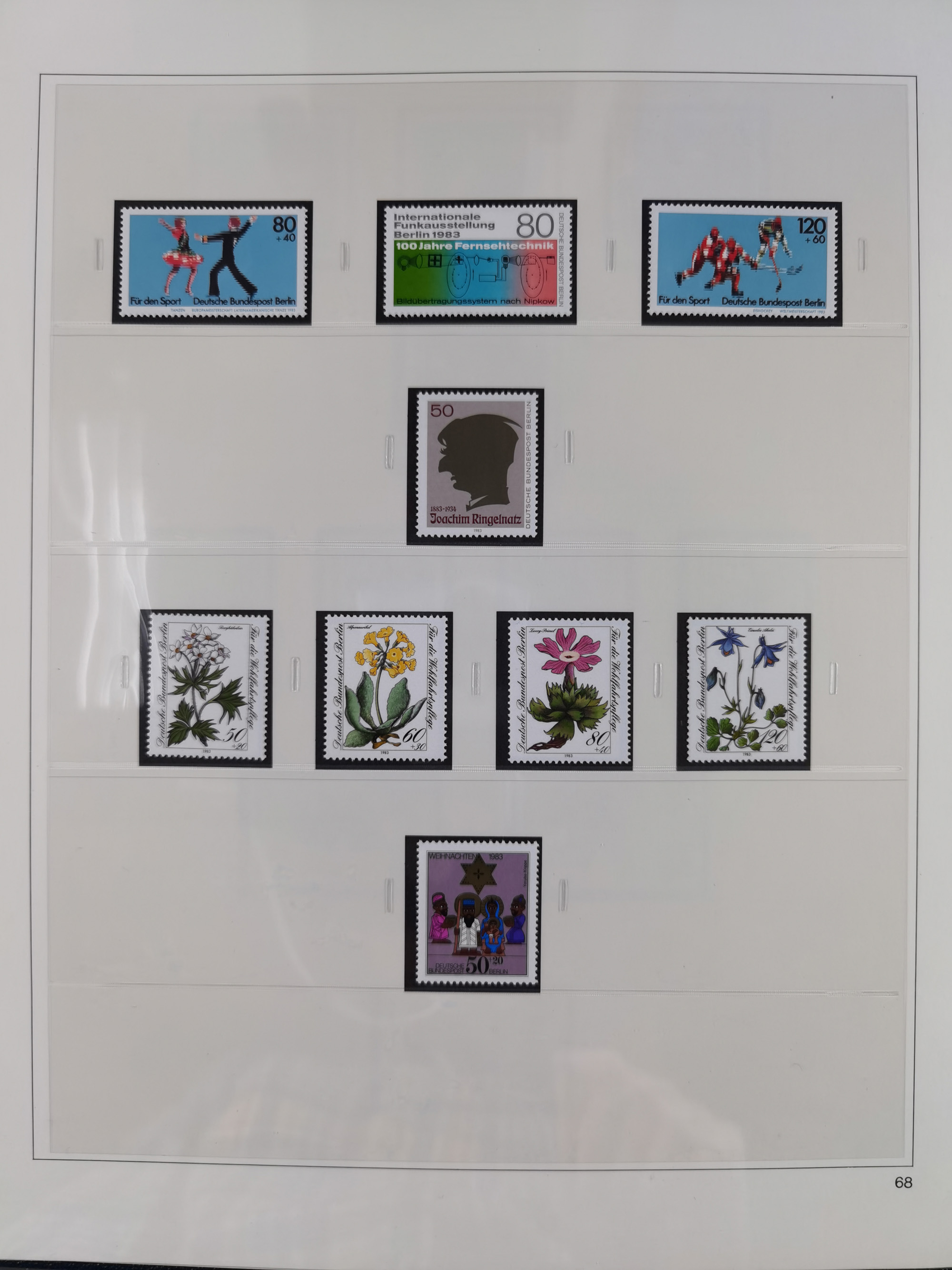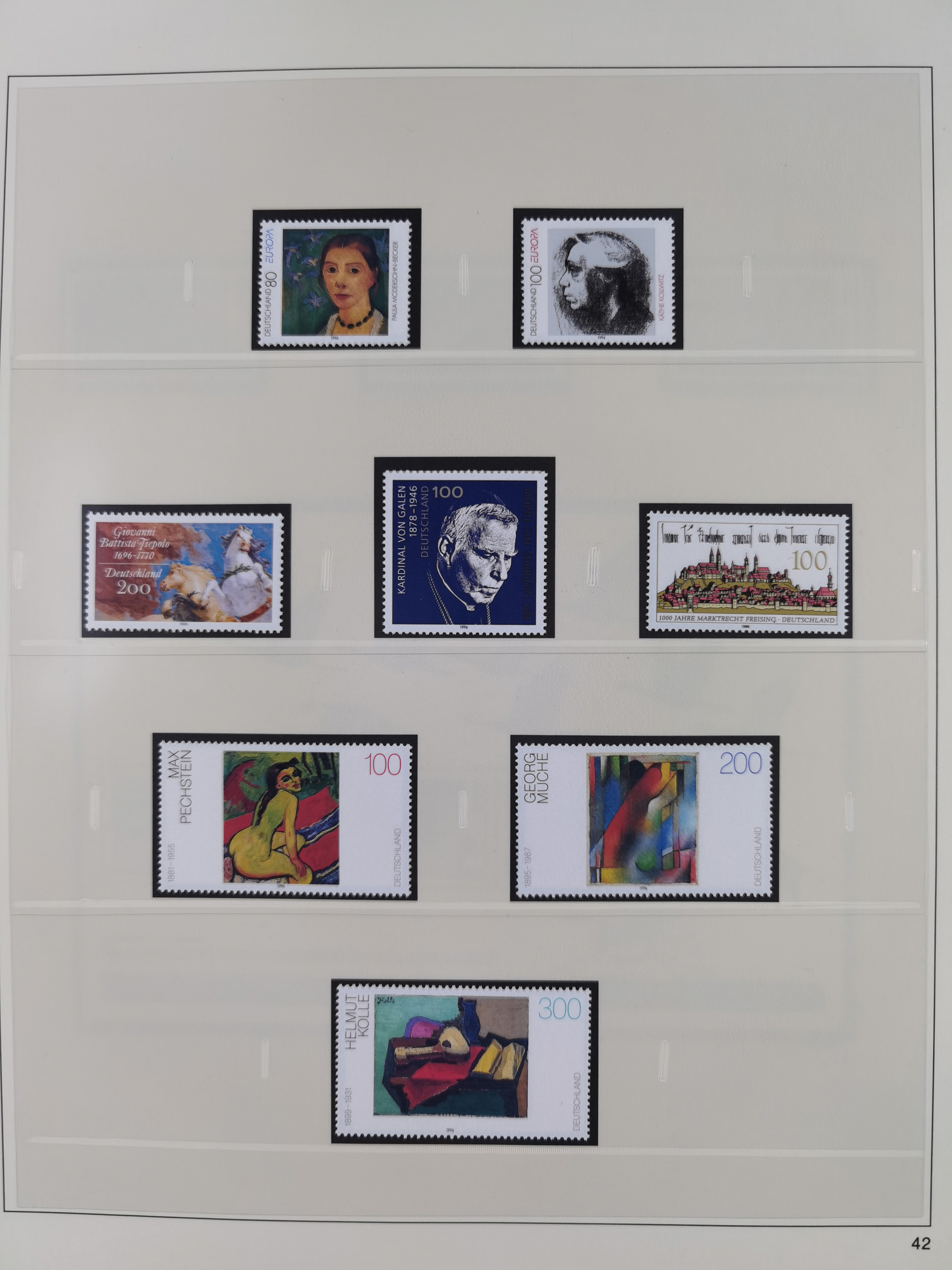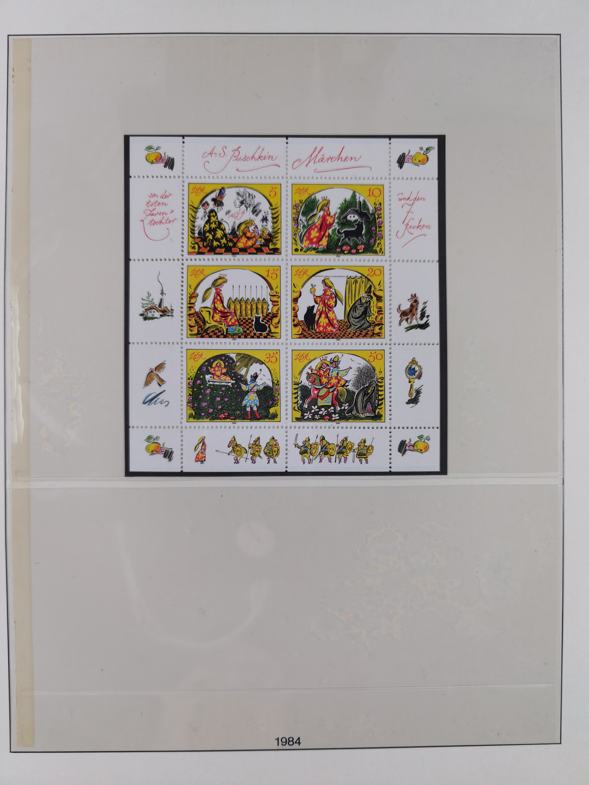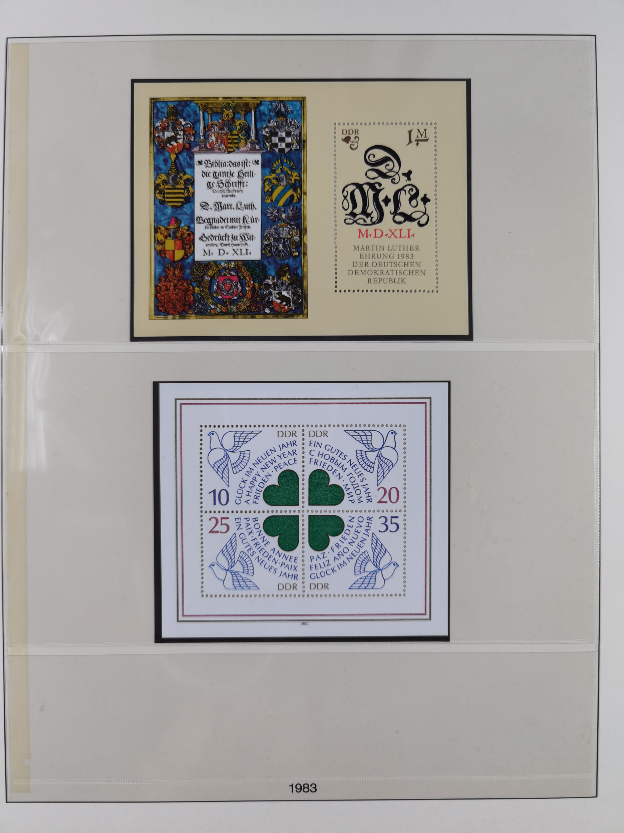 1948/2000, fast ausschließlich postfrischer Sammlungsbestand ab Berlin mit u.a. zwei Schwarzaufdruck-Sätzen, Bl. 1 je ungebraucht und nachgummiert, Bauten, Währungsgeschädigte, sowie besseren Ausgaben, Bundesrepublik 1951-2000 mit u.a. Posthorn 30, 50 und 70 Pfg. postfrisch, Heuss in großen Einheiten und mit Bogenrand, sowie einer fast kompletten Sammlung DDR, etliches mehrfach und mit Bogen- bzw. Eckrand, gute Erhaltung, in 17 Vordruckalben