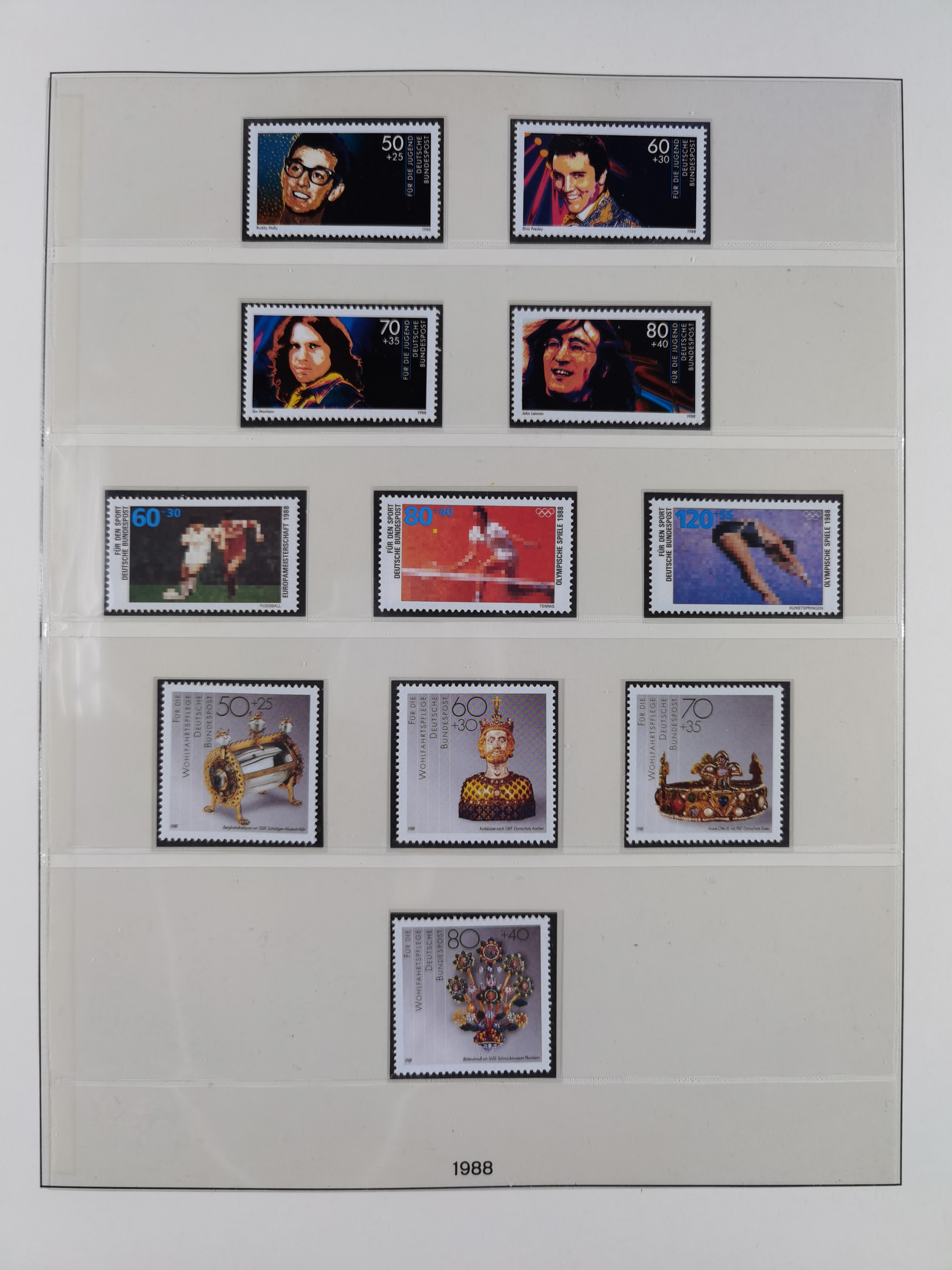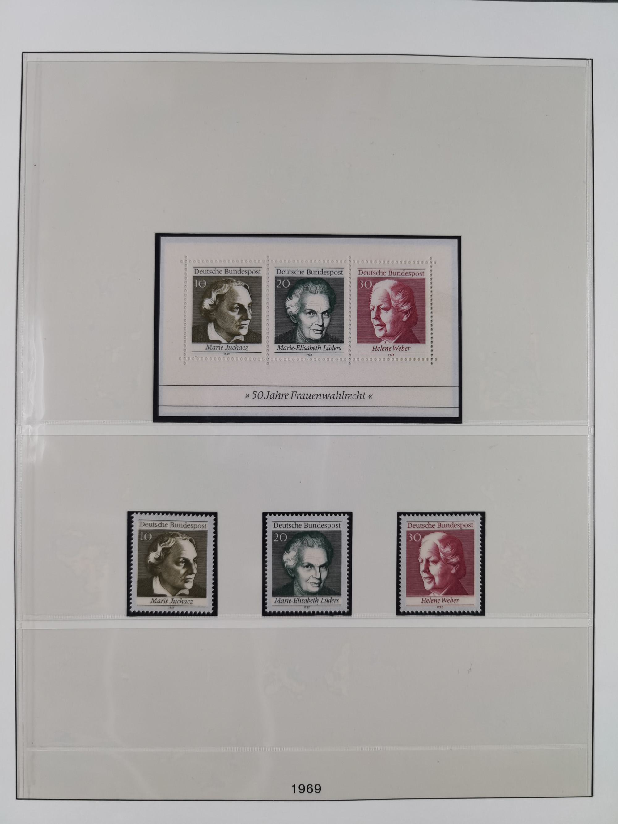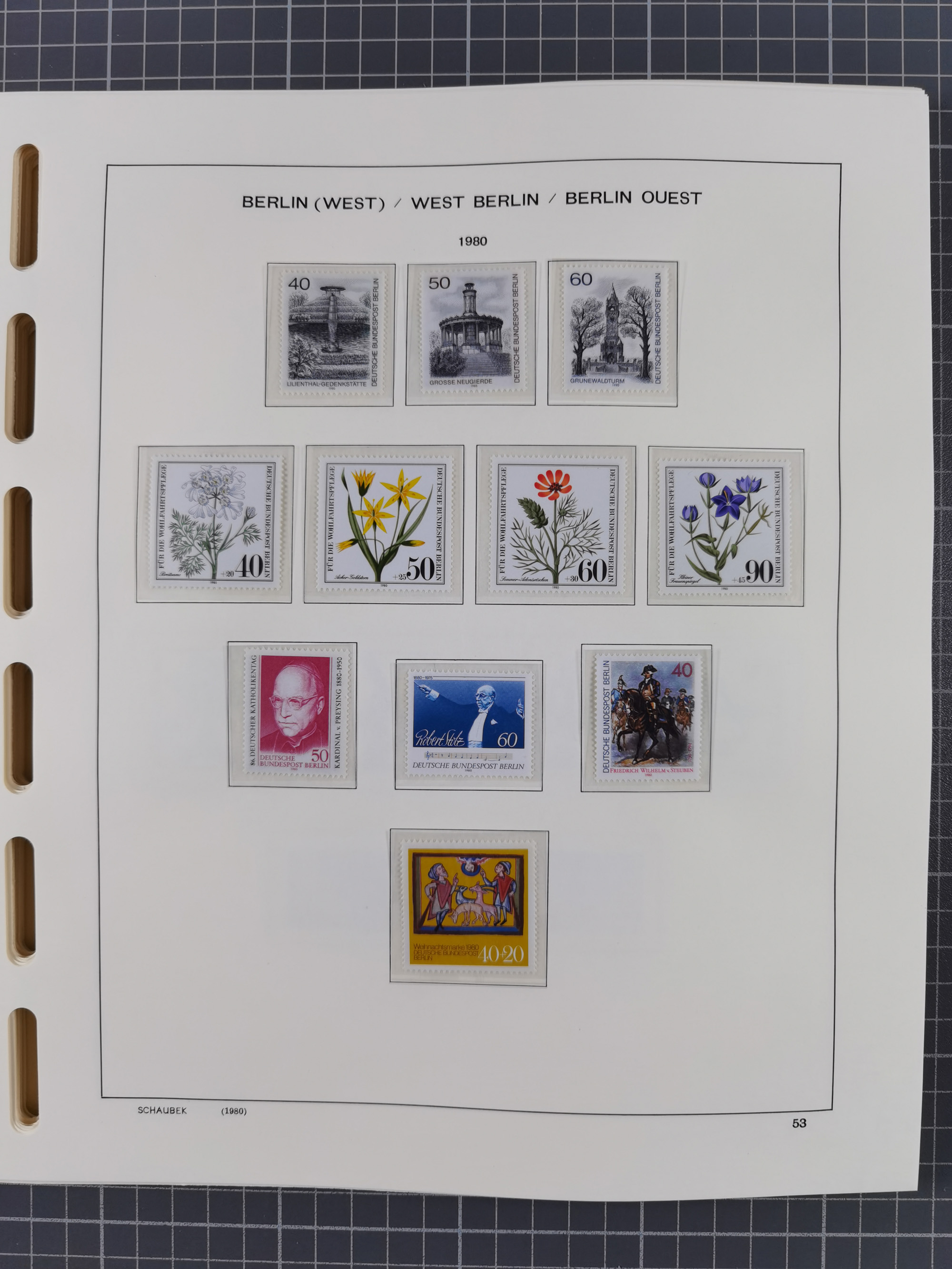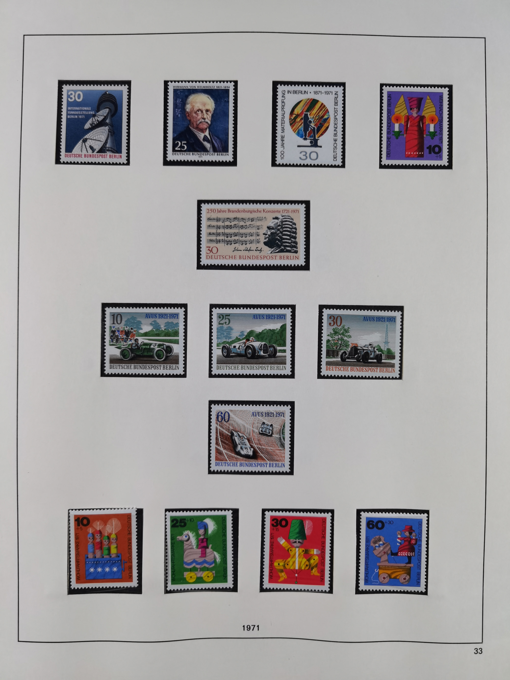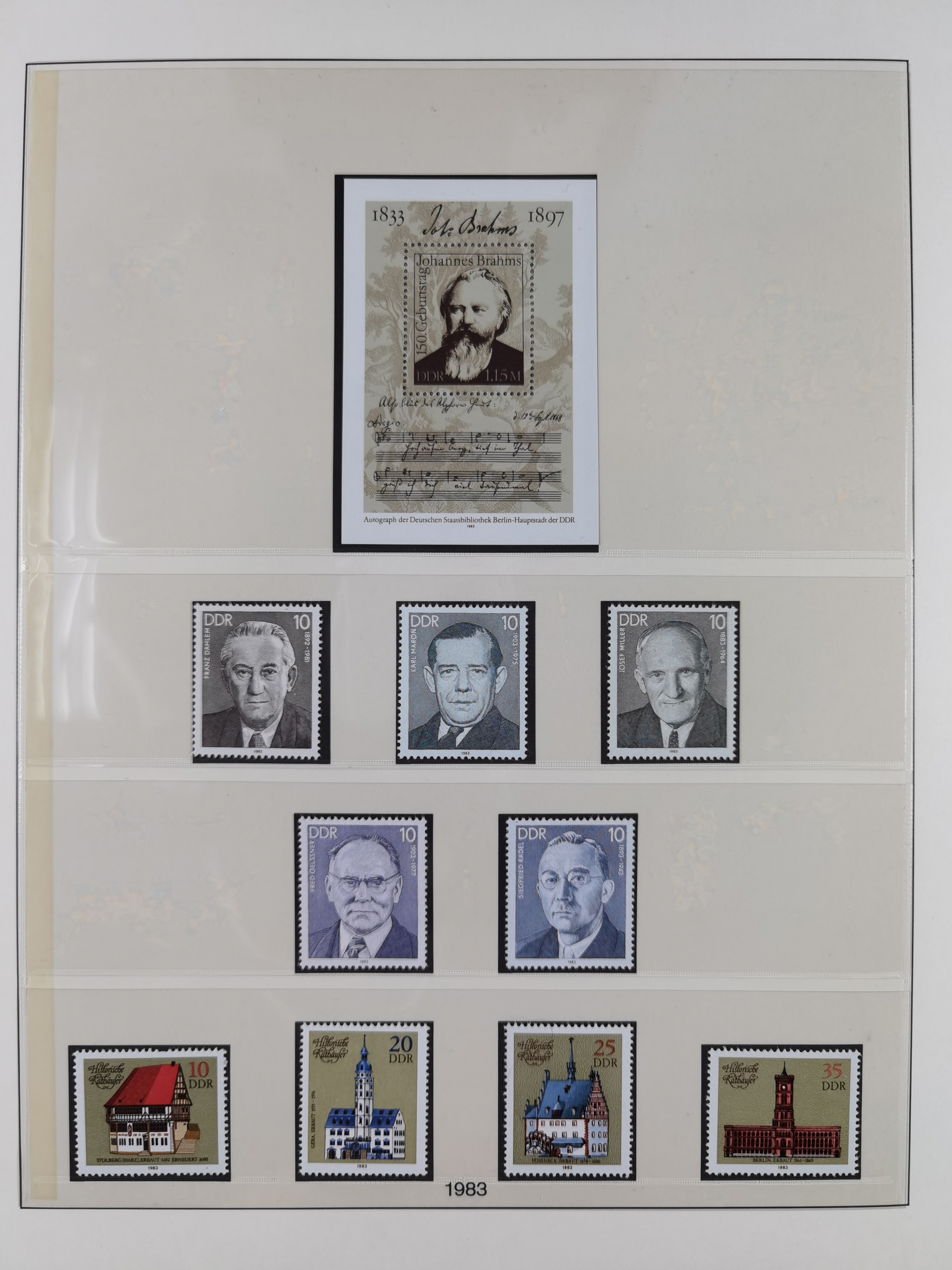 1948/2000, fast ausschließlich postfrischer Sammlungsbestand ab Berlin mit u.a. zwei Schwarzaufdruck-Sätzen, Bl. 1 je ungebraucht und nachgummiert, Bauten, Währungsgeschädigte, sowie besseren Ausgaben, Bundesrepublik 1951-2000 mit u.a. Posthorn 30, 50 und 70 Pfg. postfrisch, Heuss in großen Einheiten und mit Bogenrand, sowie einer fast kompletten Sammlung DDR, etliches mehrfach und mit Bogen- bzw. Eckrand, gute Erhaltung, in 17 Vordruckalben