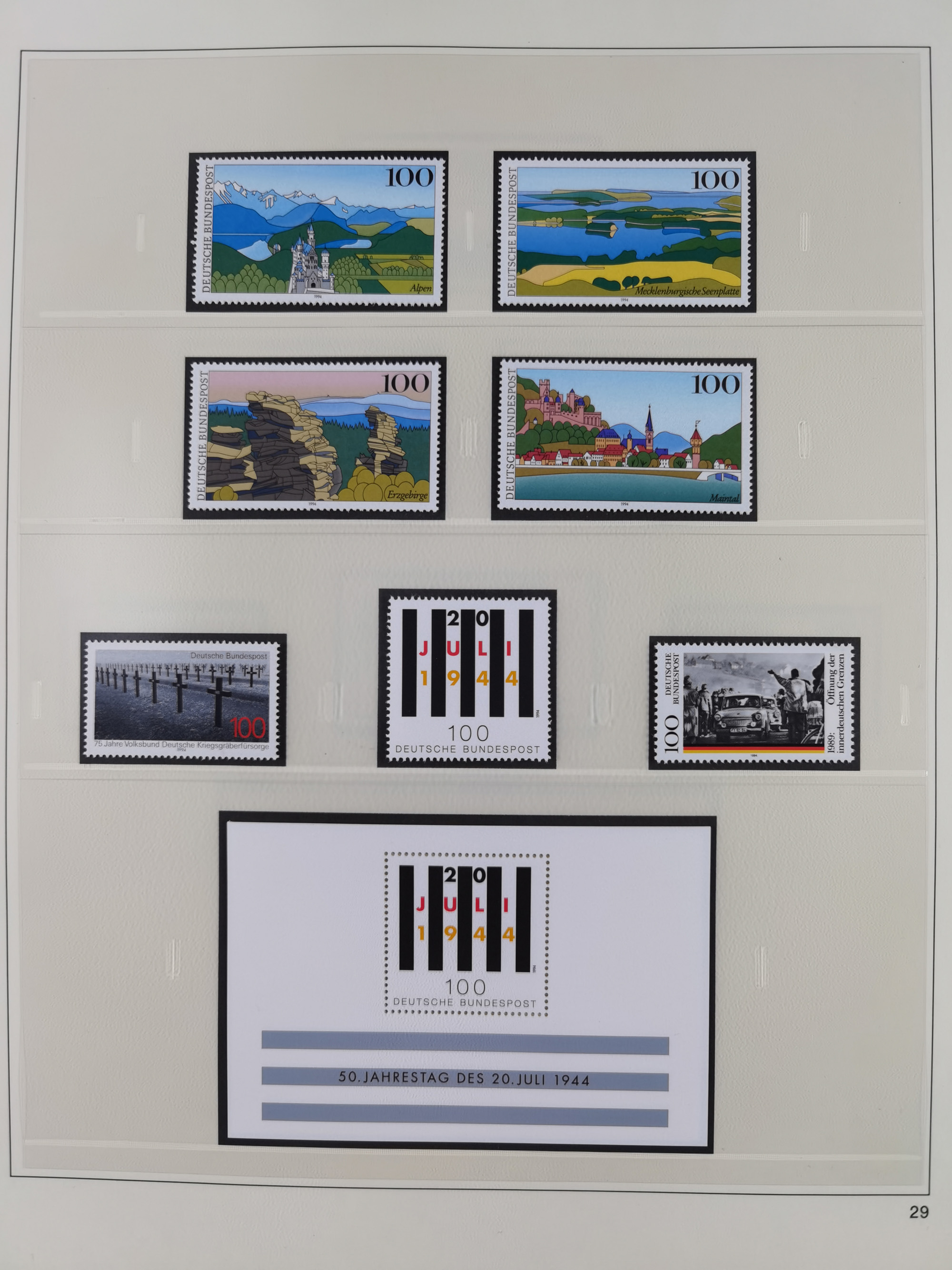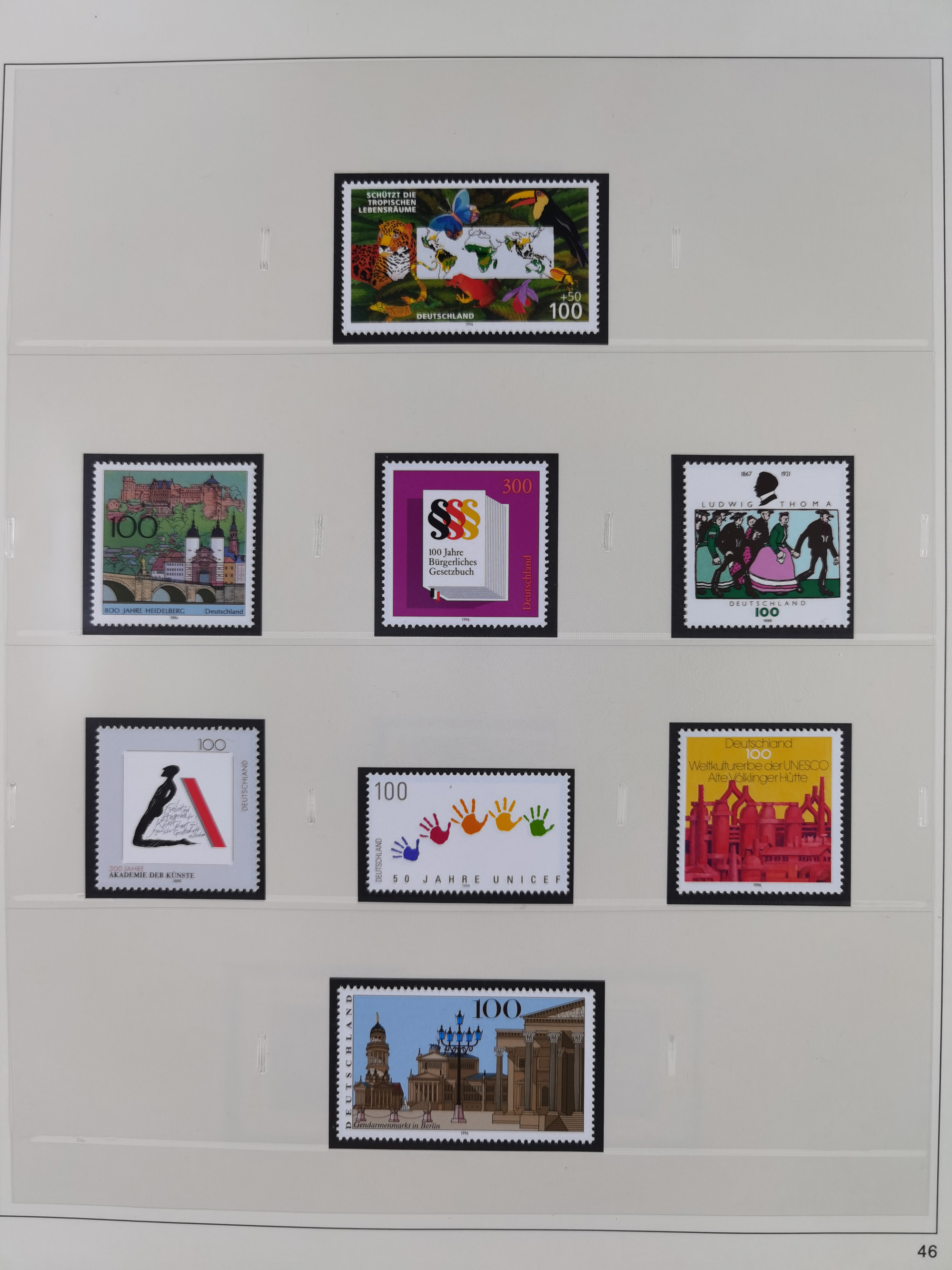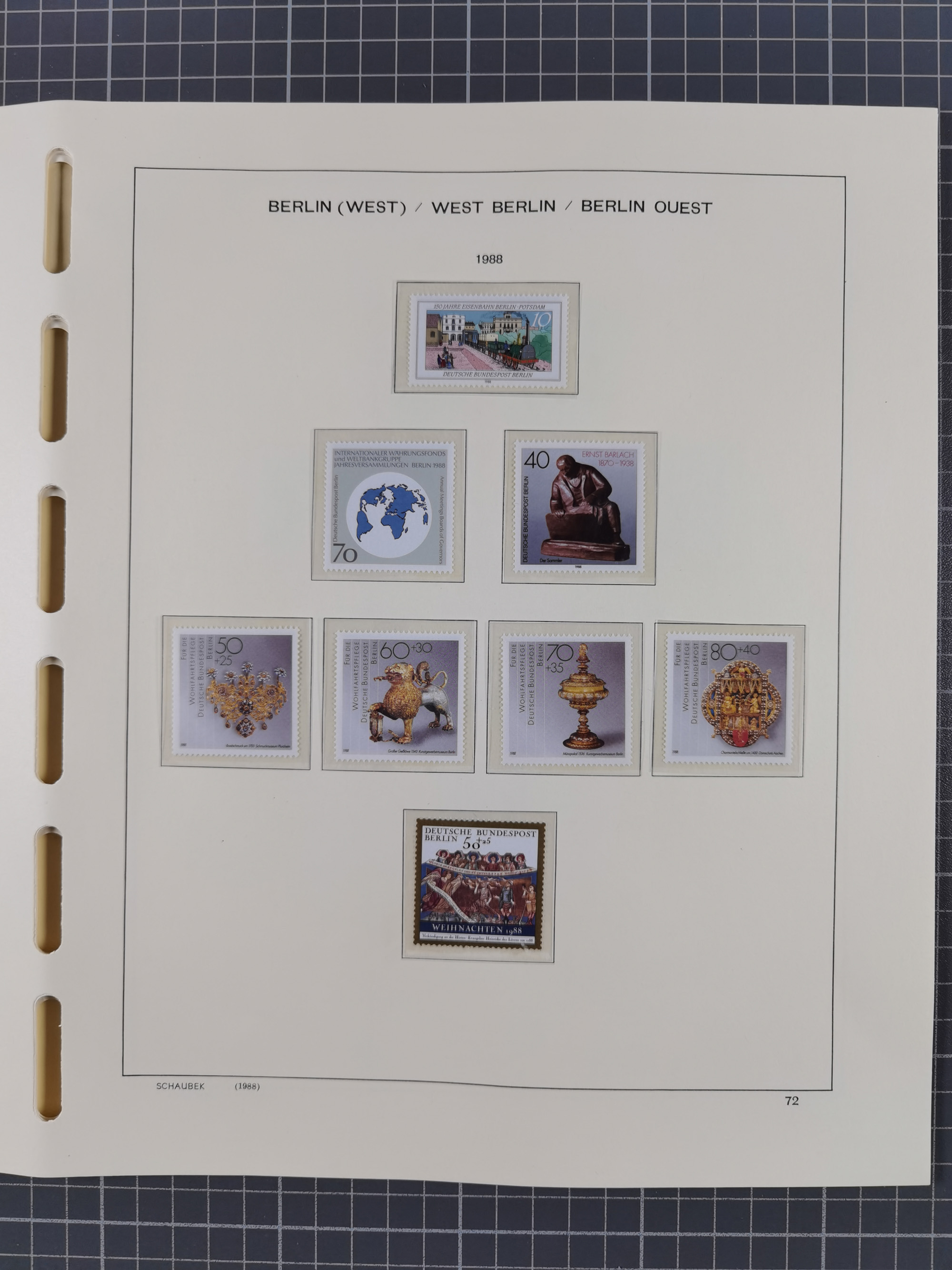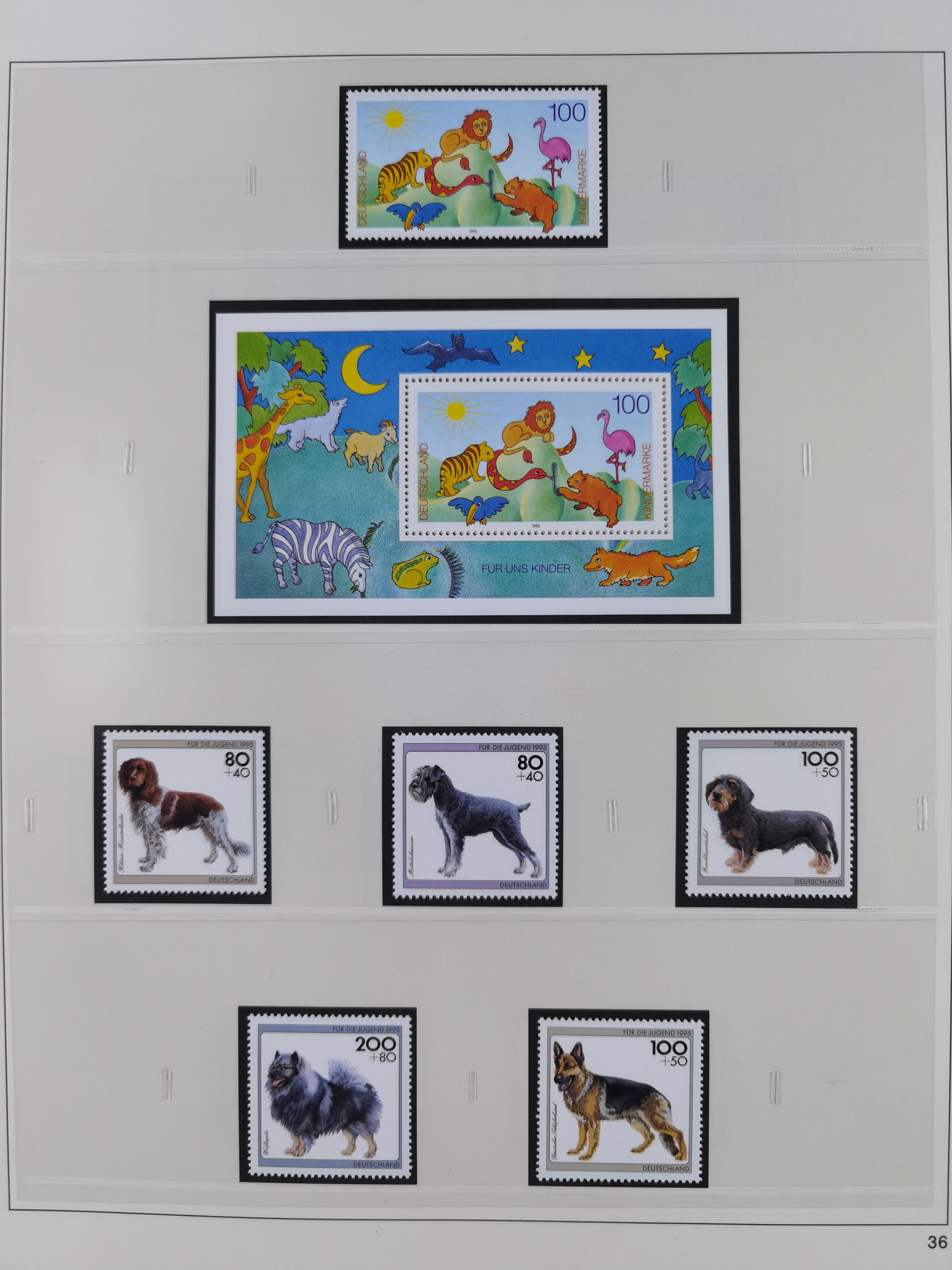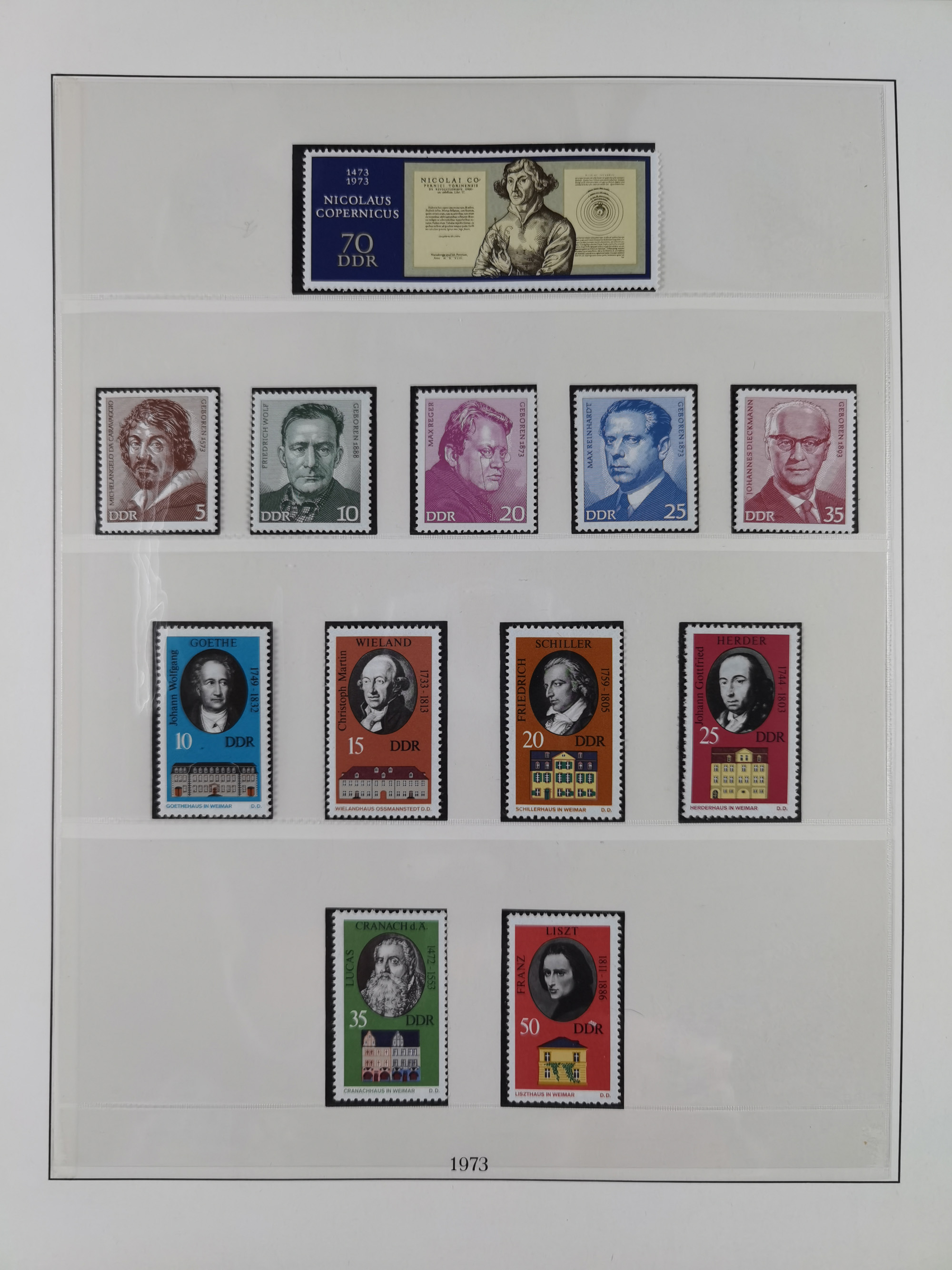 1948/2000, fast ausschließlich postfrischer Sammlungsbestand ab Berlin mit u.a. zwei Schwarzaufdruck-Sätzen, Bl. 1 je ungebraucht und nachgummiert, Bauten, Währungsgeschädigte, sowie besseren Ausgaben, Bundesrepublik 1951-2000 mit u.a. Posthorn 30, 50 und 70 Pfg. postfrisch, Heuss in großen Einheiten und mit Bogenrand, sowie einer fast kompletten Sammlung DDR, etliches mehrfach und mit Bogen- bzw. Eckrand, gute Erhaltung, in 17 Vordruckalben