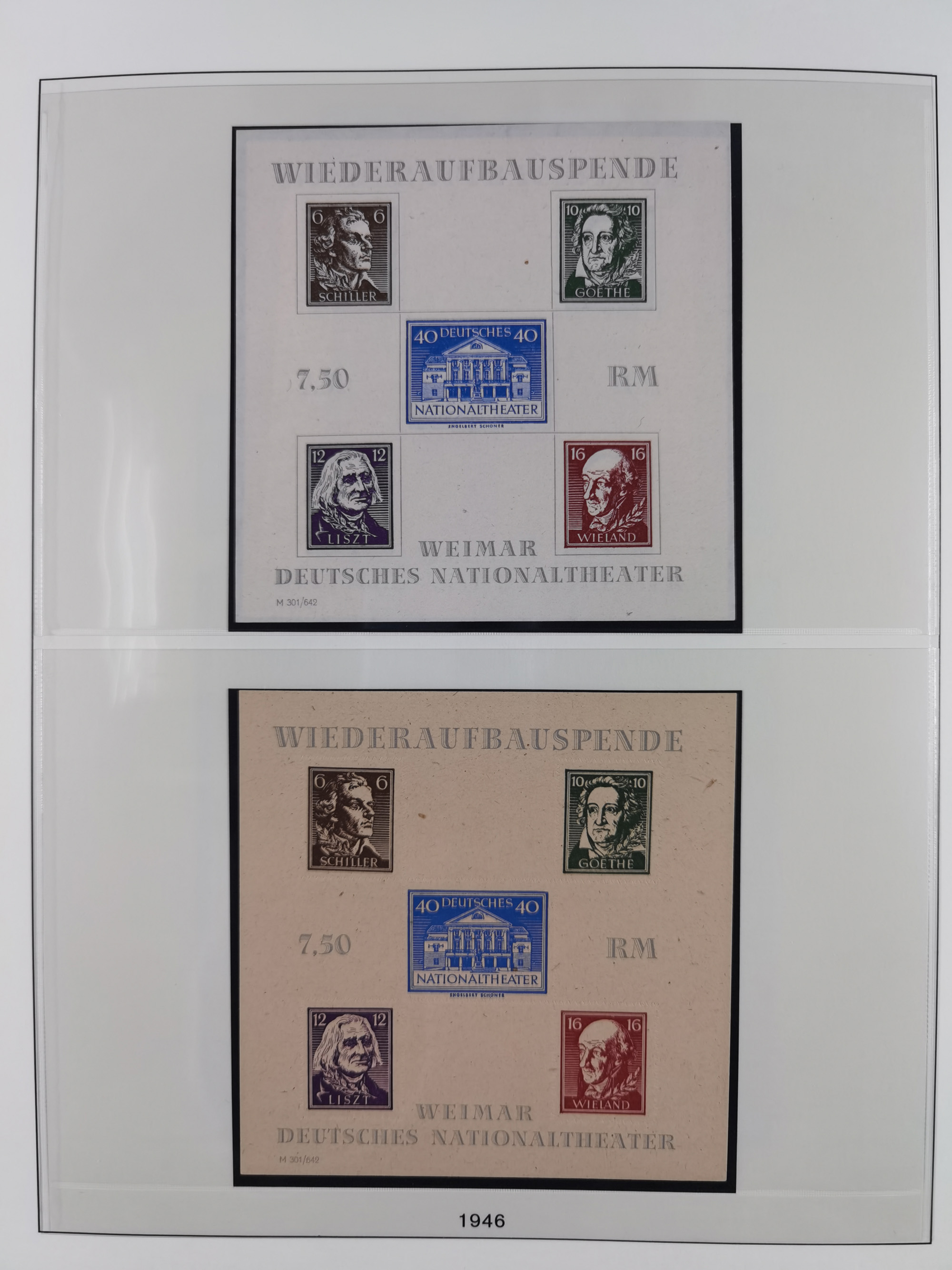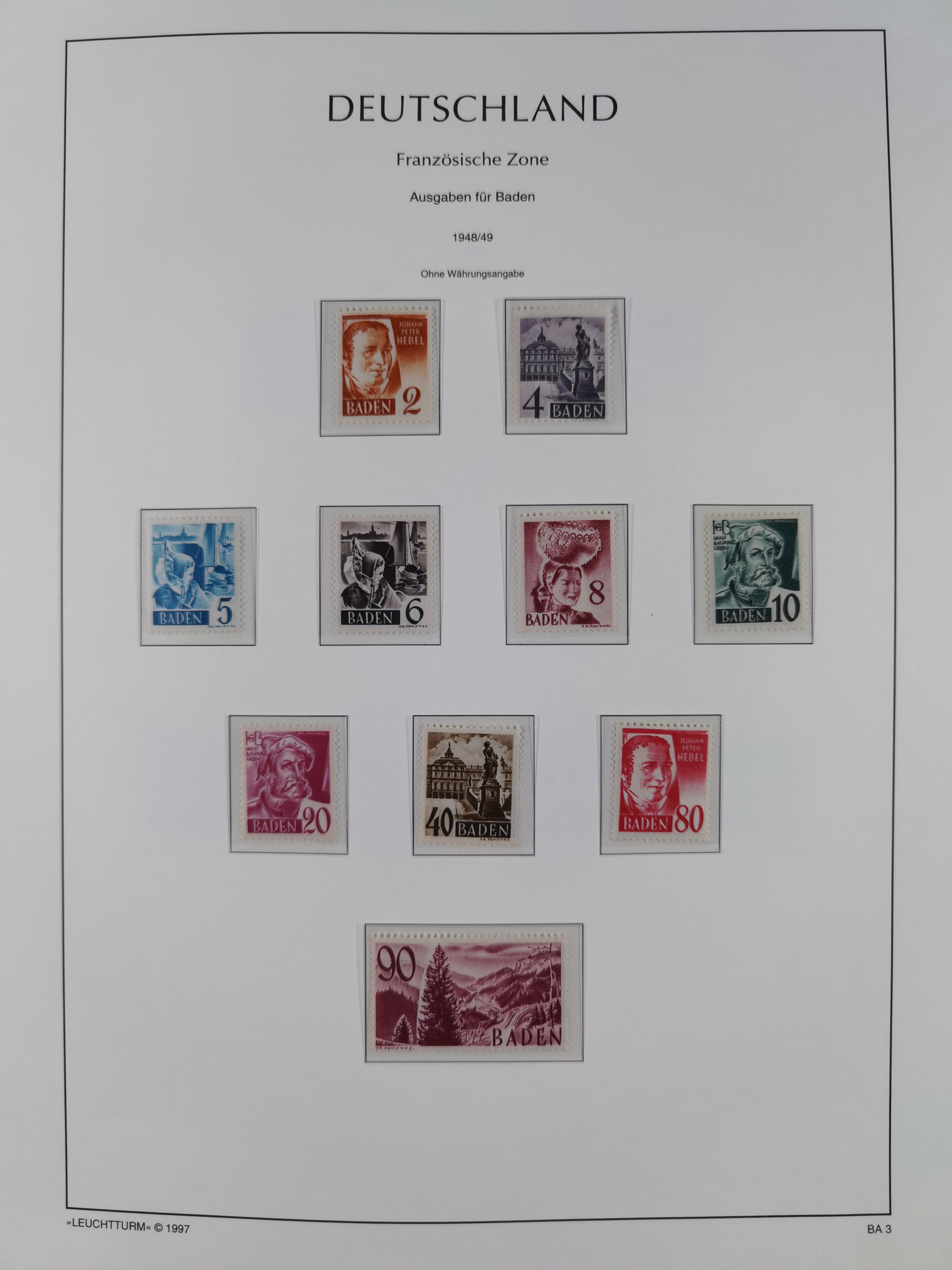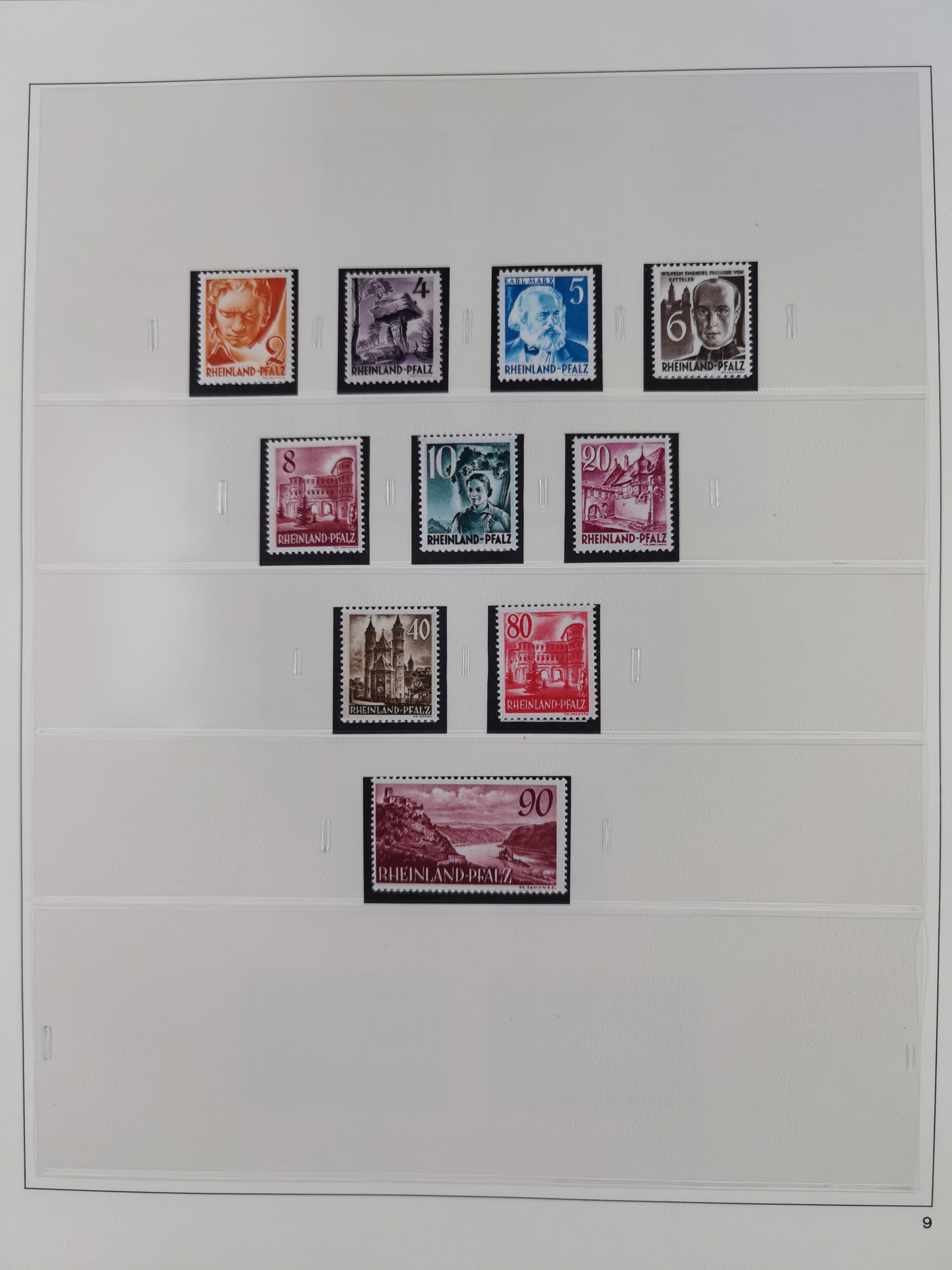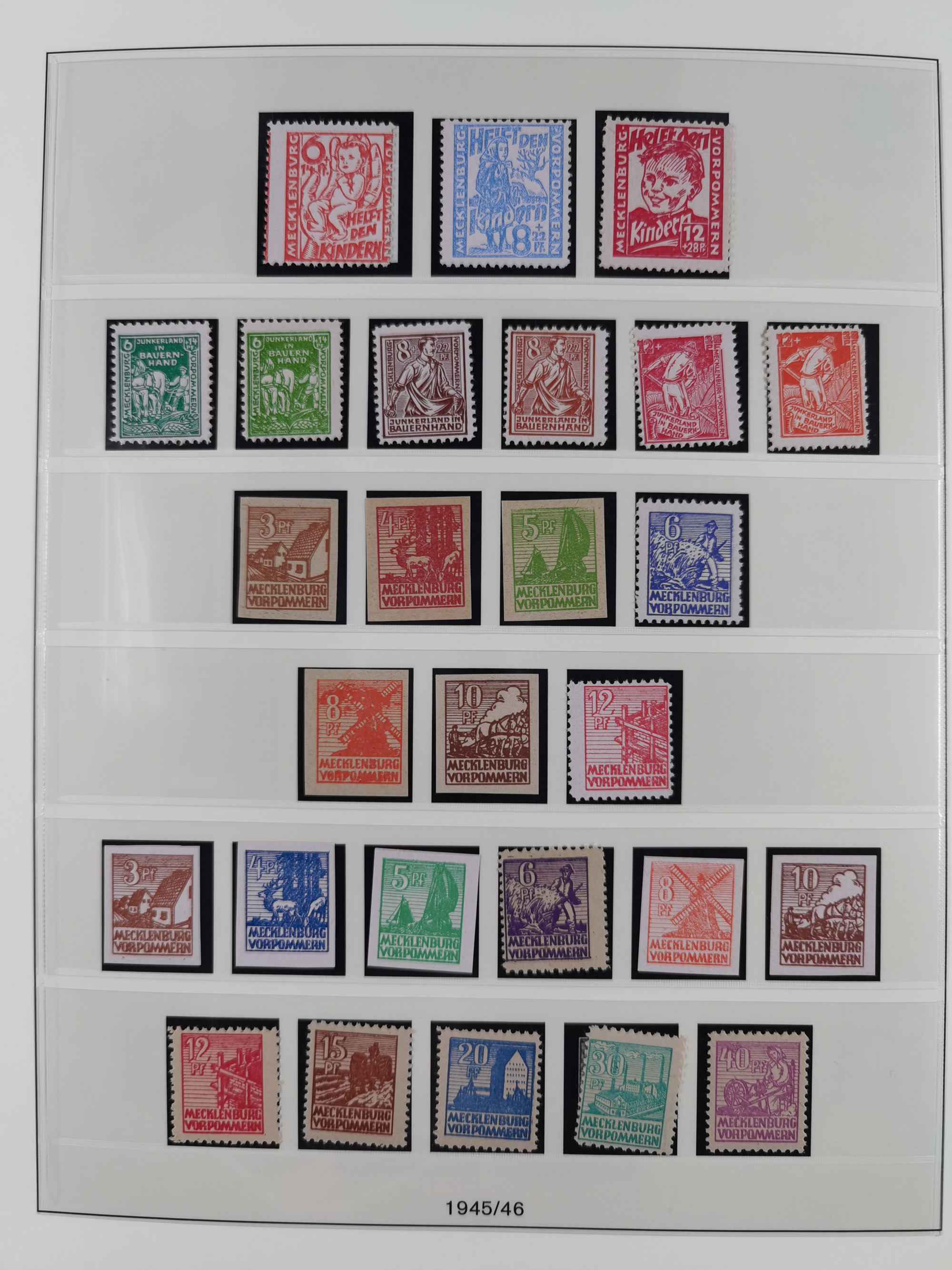 1945/49, in den Hauptnummern augenscheinlich bis auf Potschta (verlaufene Gummierung) postfrische komplette Sammlungen SBZ inkl. Blocks mit Bl. 1t und Französische Zone, inkl. Blocks mit Baden Mi.-Nr. 46II postfrisch sign. Schlegel BPP, dort einiges sign. Schlegel BPP, gute Erhaltung, im Vordruckalbum