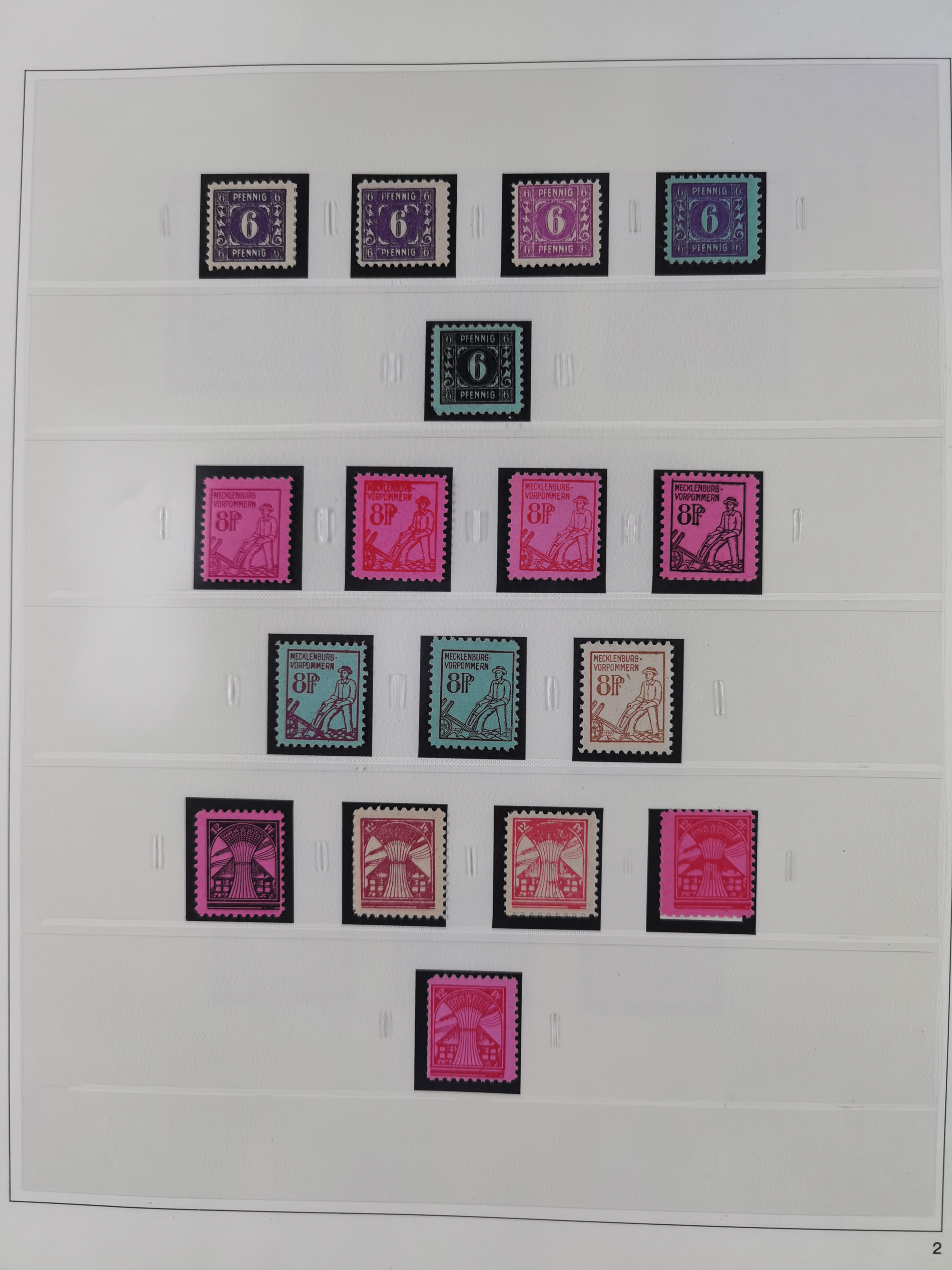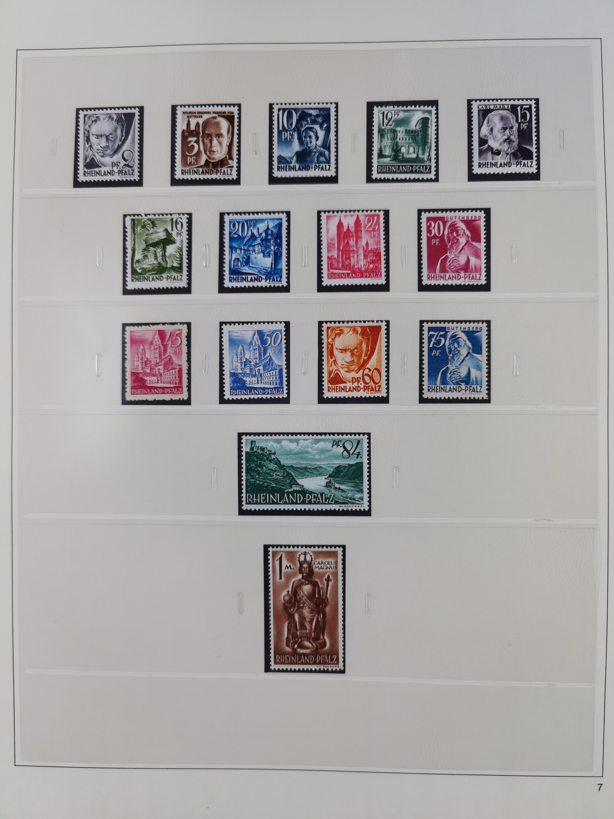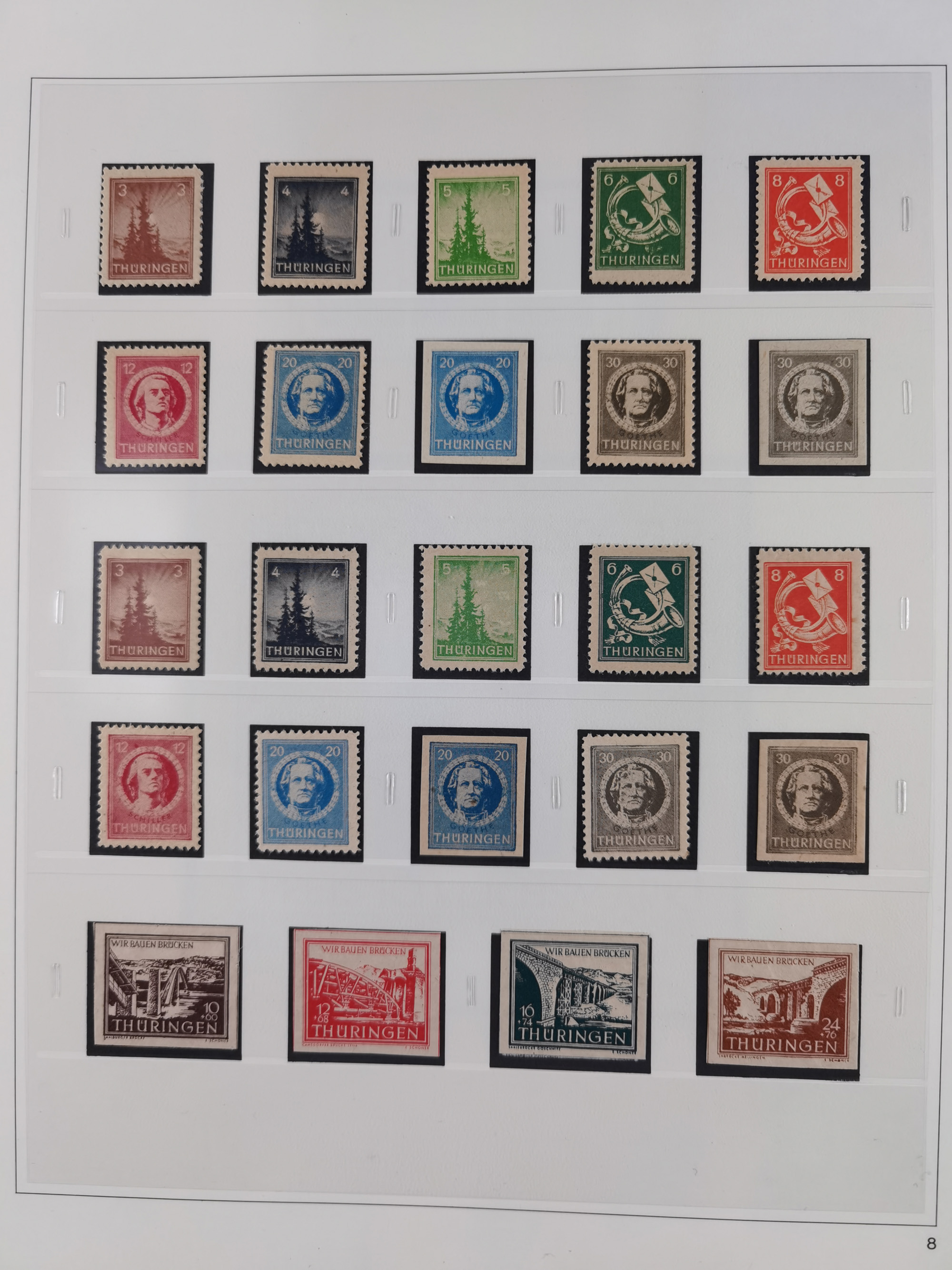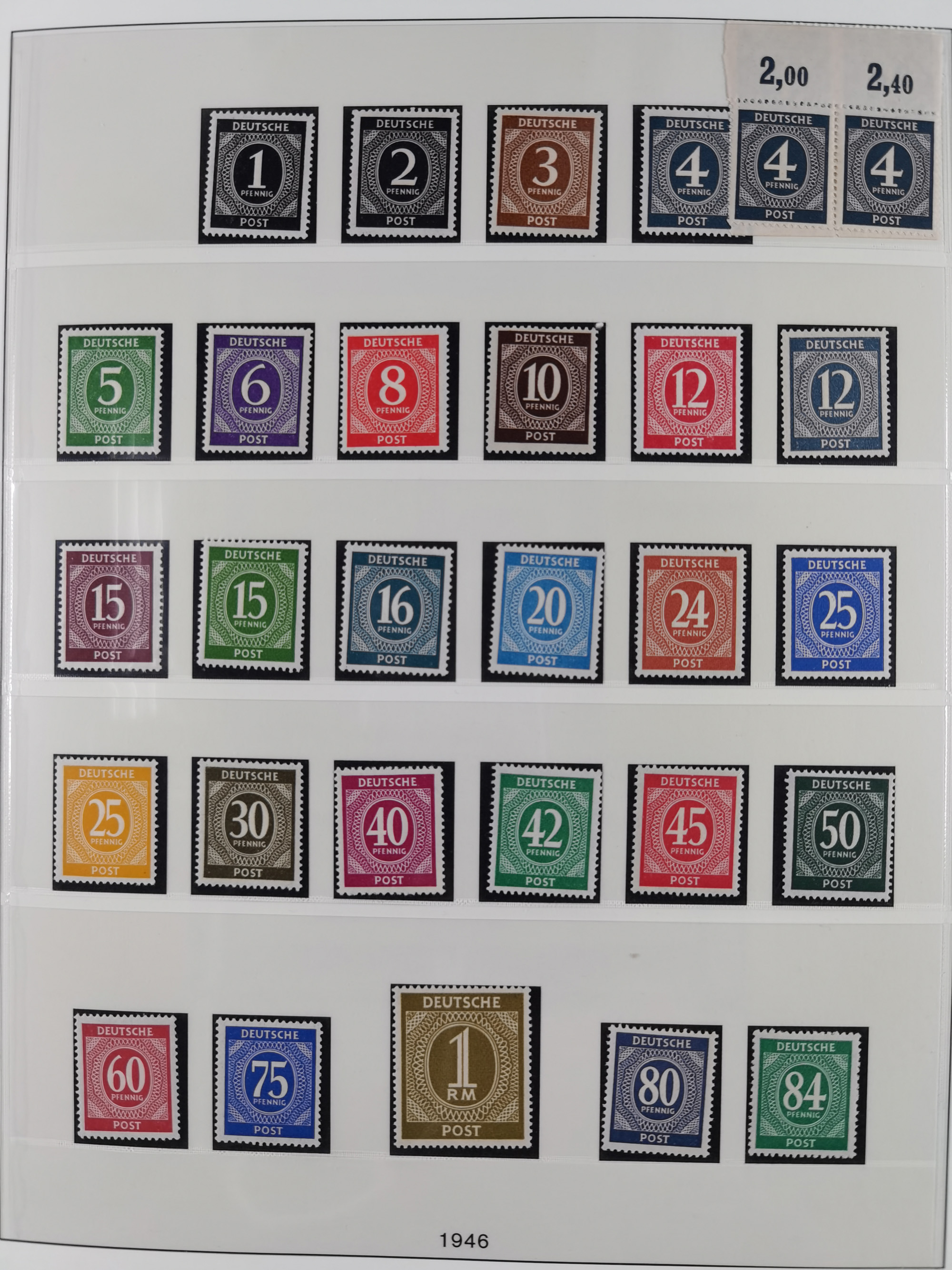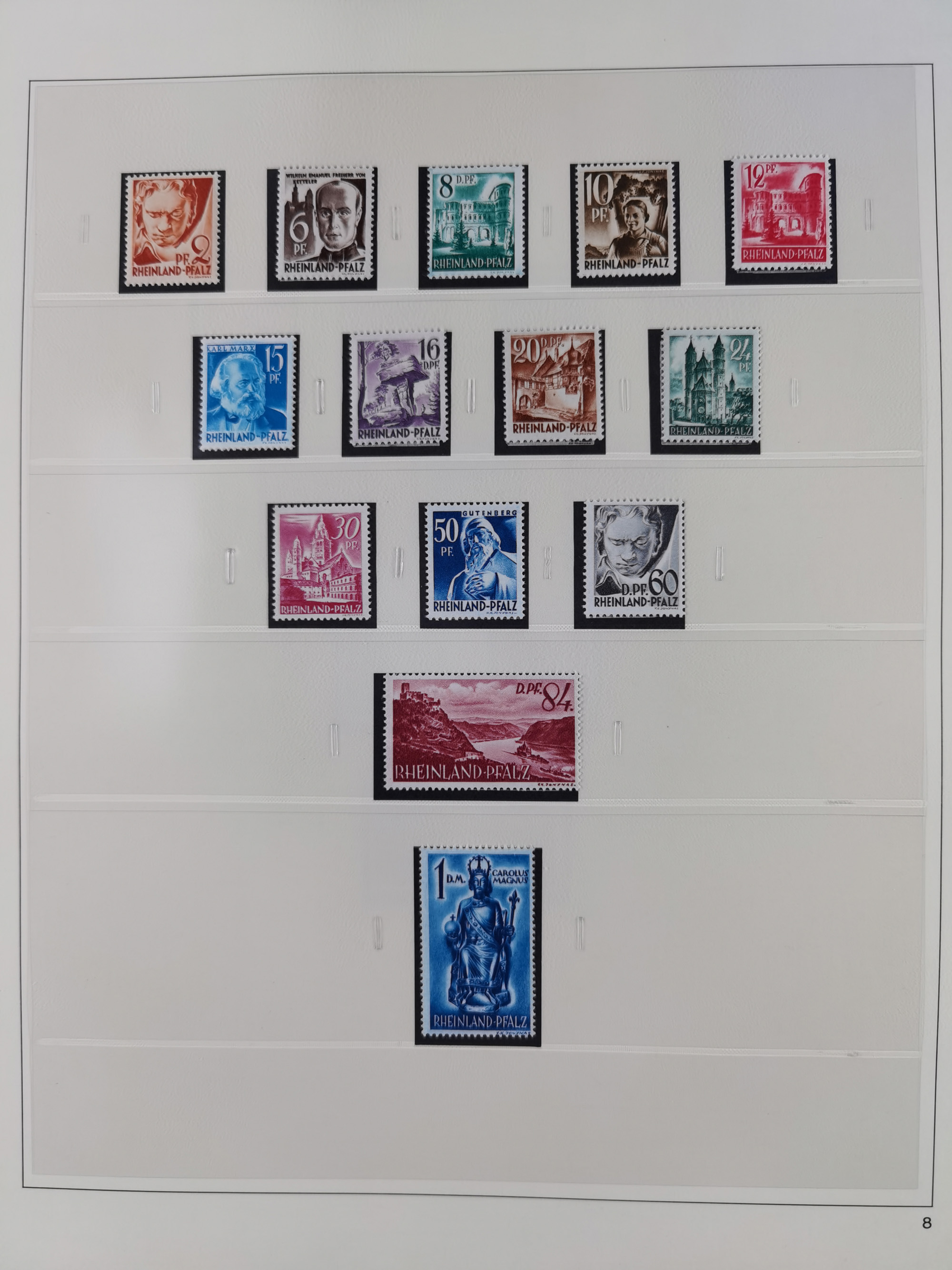 1945/49, in den Hauptnummern augenscheinlich bis auf Potschta (verlaufene Gummierung) postfrische komplette Sammlungen SBZ inkl. Blocks mit Bl. 1t und Französische Zone, inkl. Blocks mit Baden Mi.-Nr. 46II postfrisch sign. Schlegel BPP, dort einiges sign. Schlegel BPP, gute Erhaltung, im Vordruckalbum