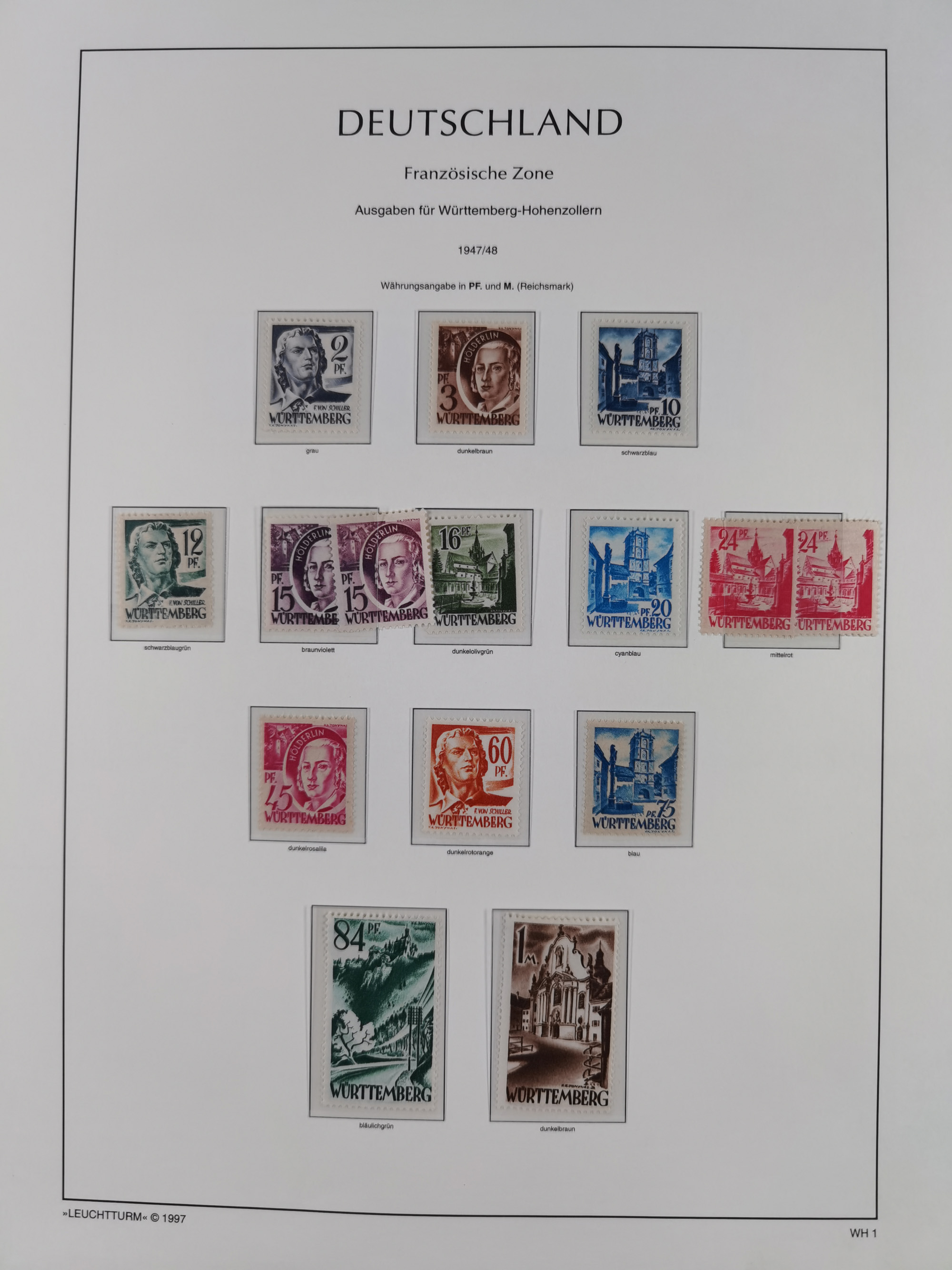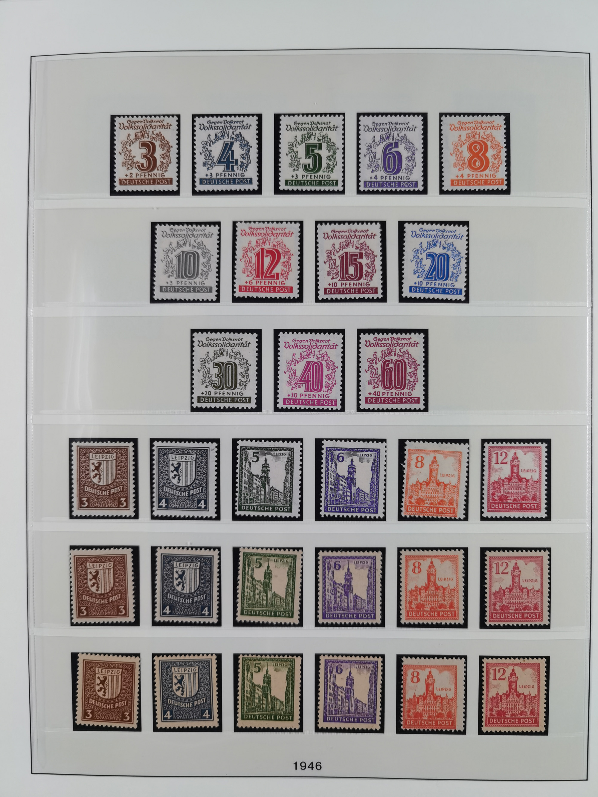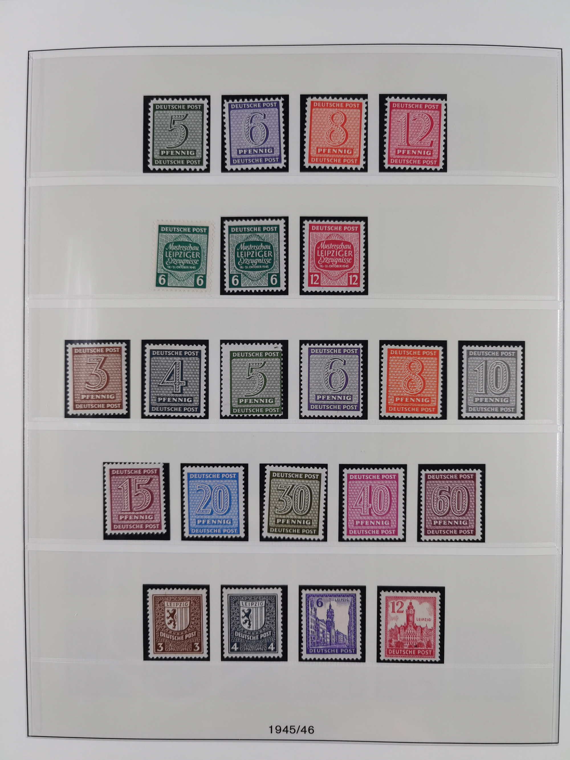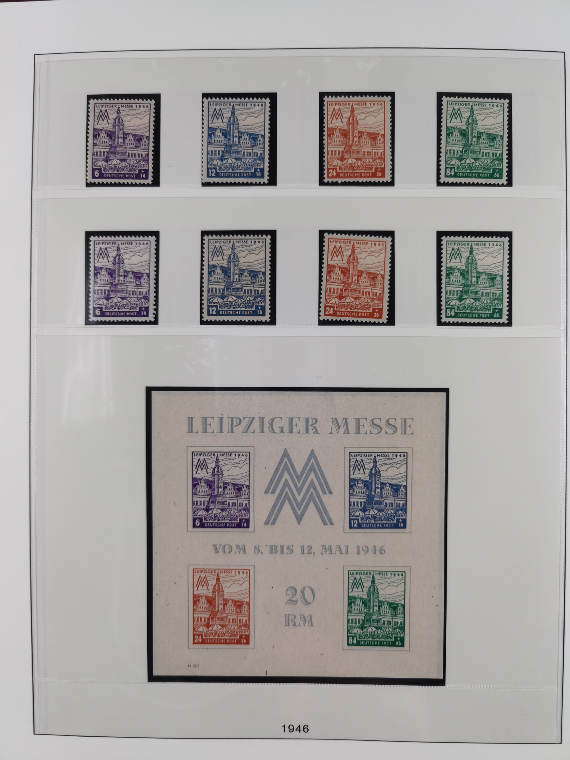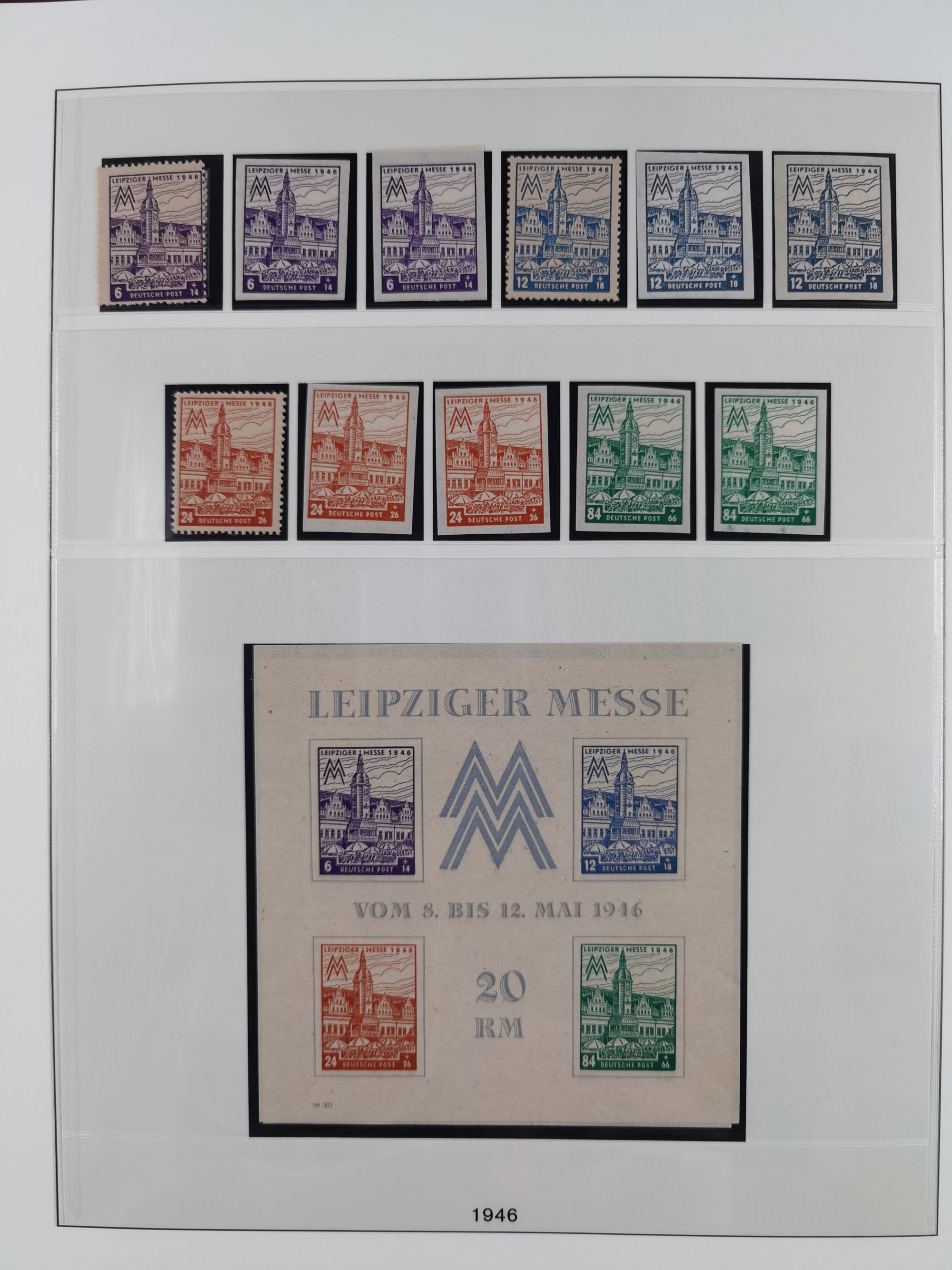 1945/49, in den Hauptnummern augenscheinlich bis auf Potschta (verlaufene Gummierung) postfrische komplette Sammlungen SBZ inkl. Blocks mit Bl. 1t und Französische Zone, inkl. Blocks mit Baden Mi.-Nr. 46II postfrisch sign. Schlegel BPP, dort einiges sign. Schlegel BPP, gute Erhaltung, im Vordruckalbum