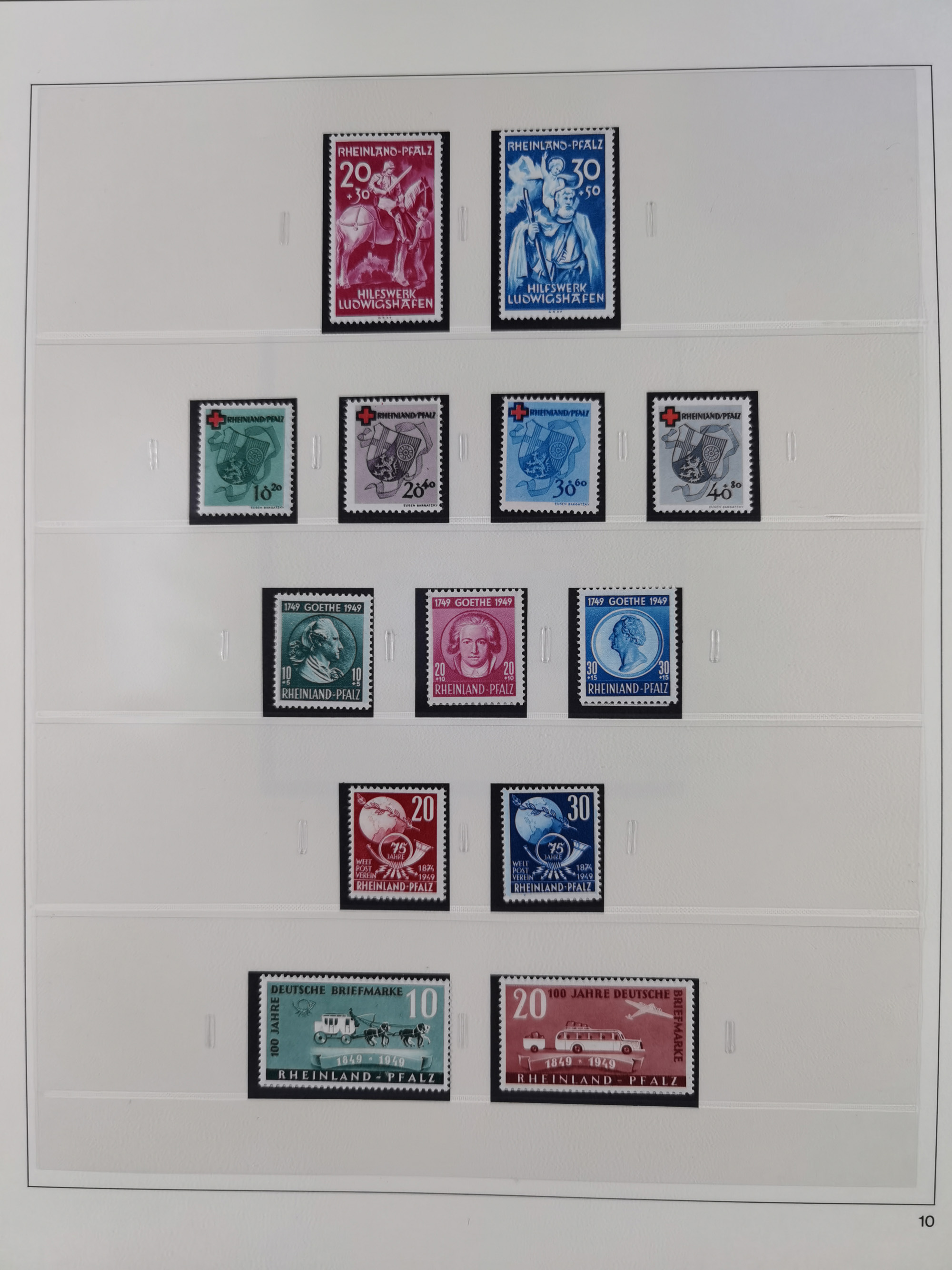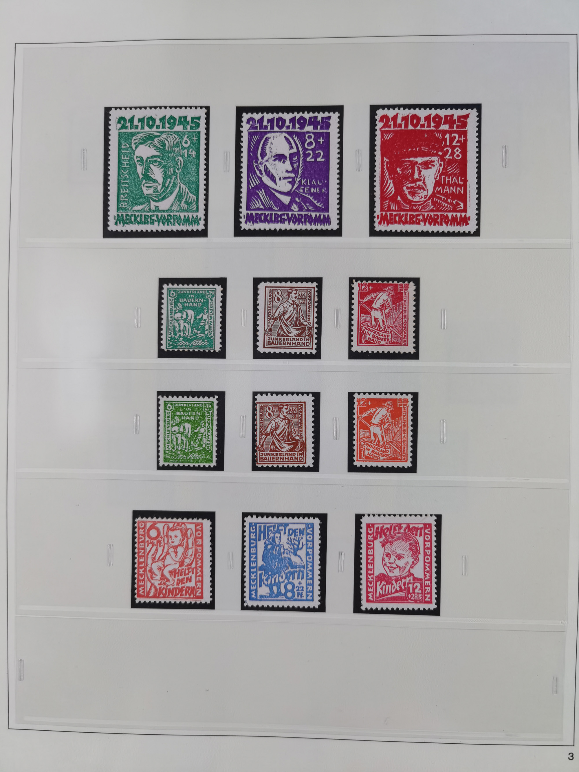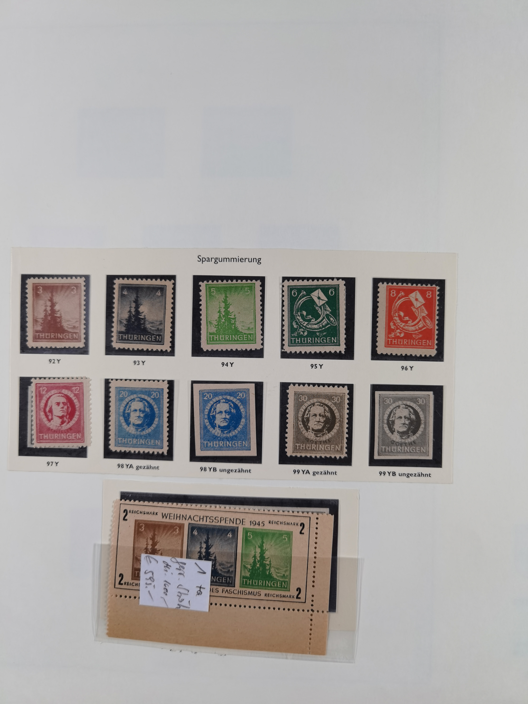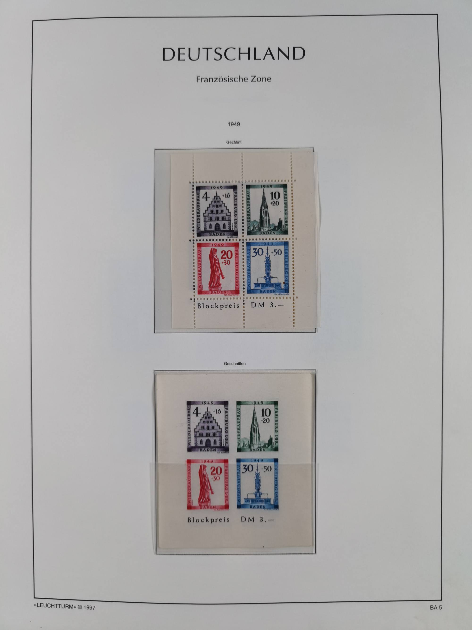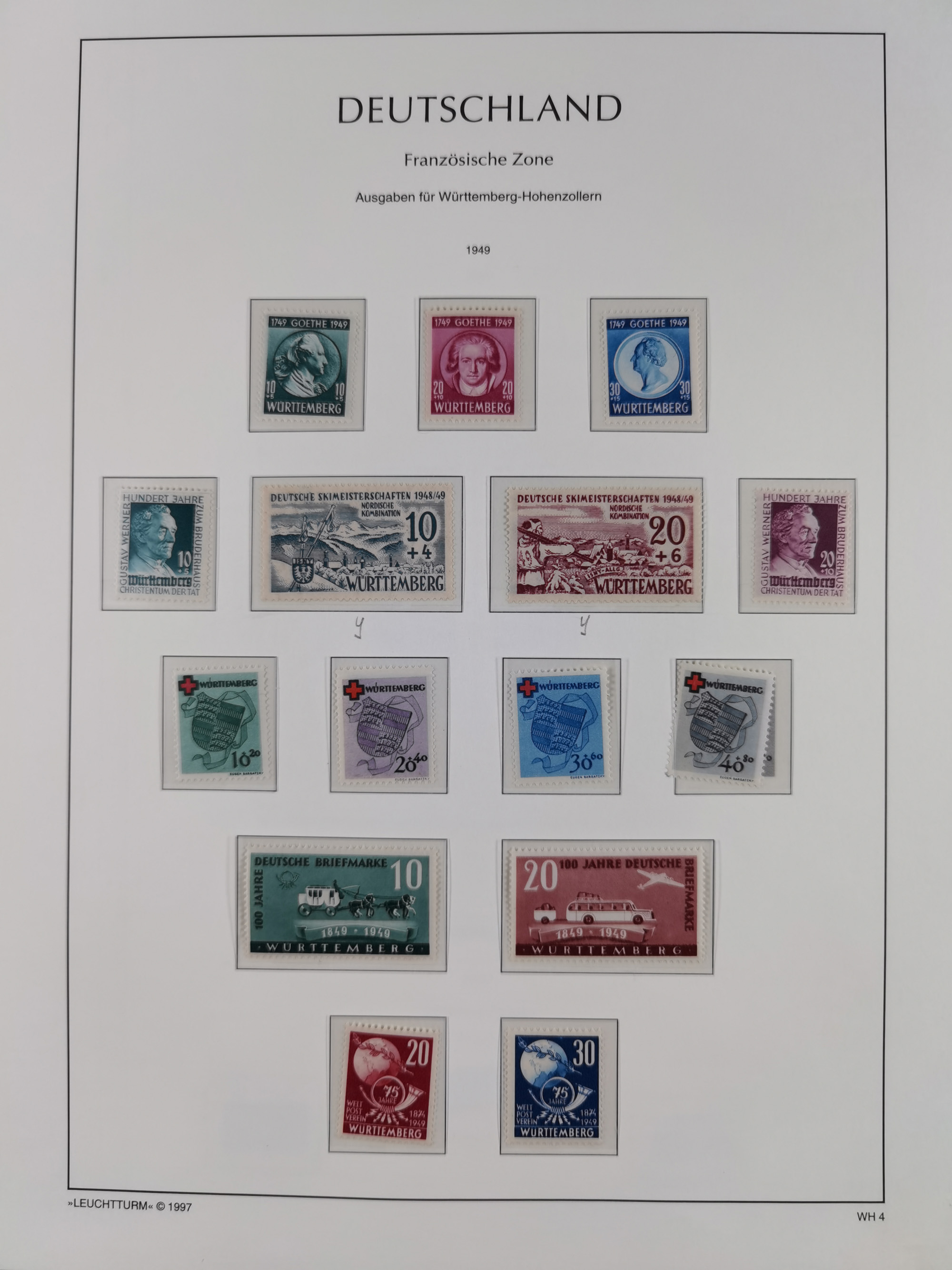 1945/49, in den Hauptnummern augenscheinlich bis auf Potschta (verlaufene Gummierung) postfrische komplette Sammlungen SBZ inkl. Blocks mit Bl. 1t und Französische Zone, inkl. Blocks mit Baden Mi.-Nr. 46II postfrisch sign. Schlegel BPP, dort einiges sign. Schlegel BPP, gute Erhaltung, im Vordruckalbum