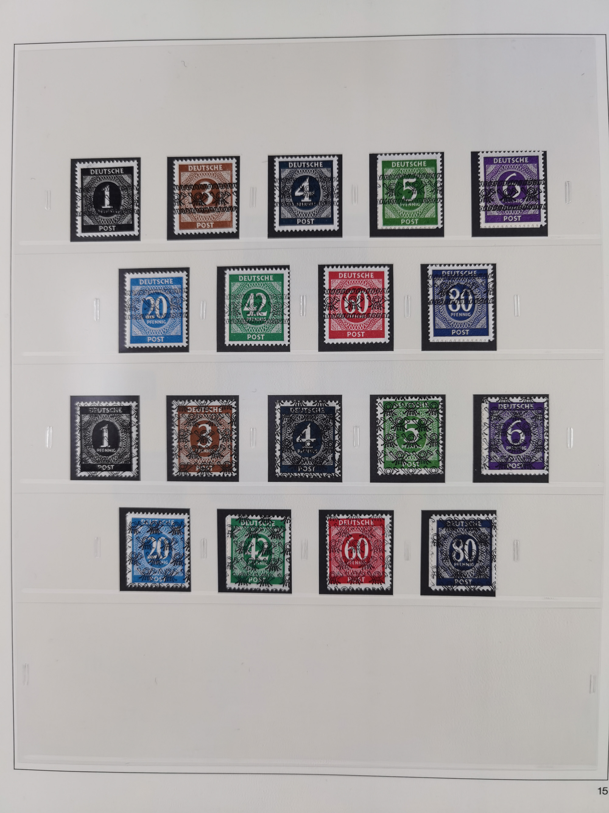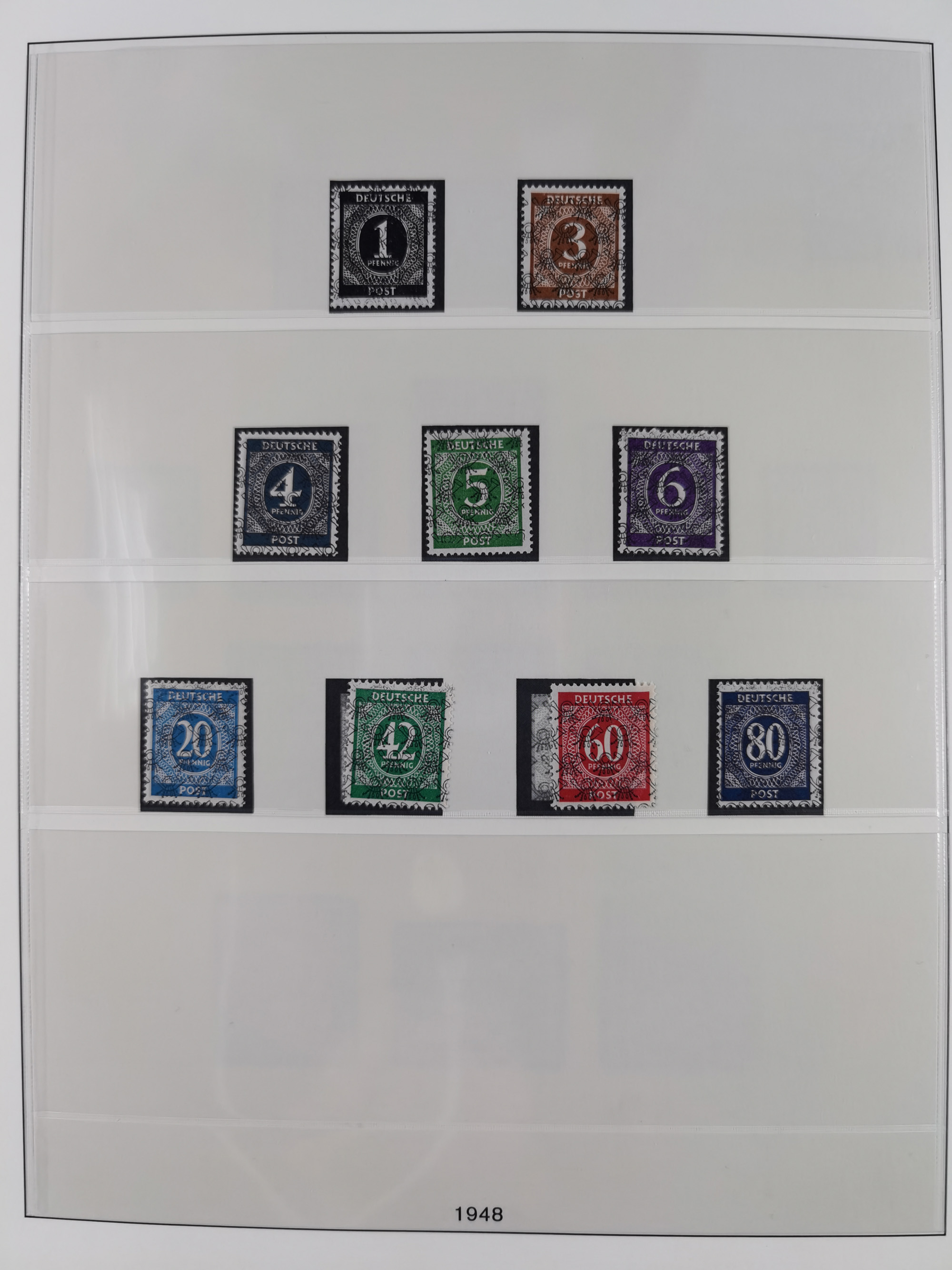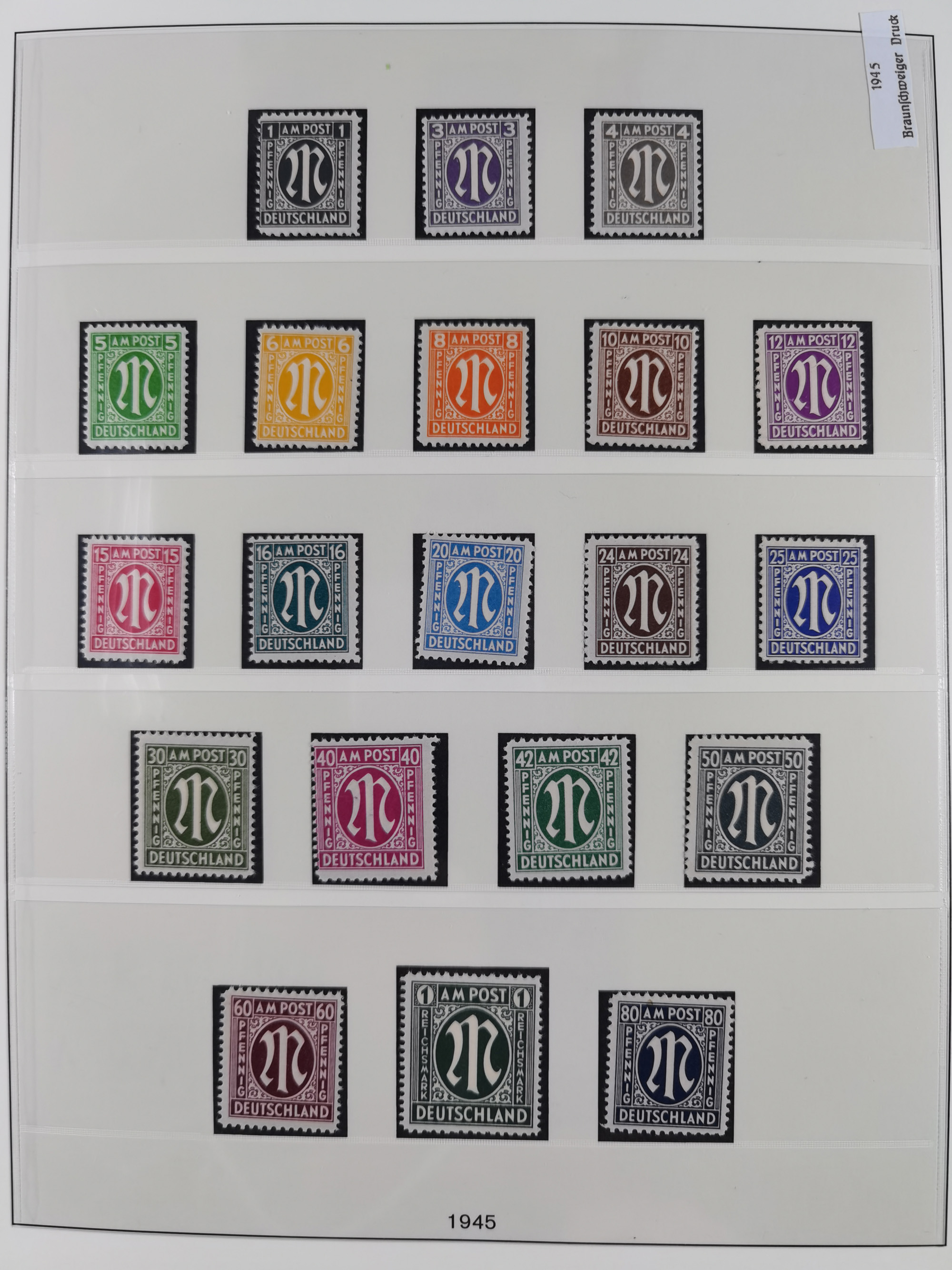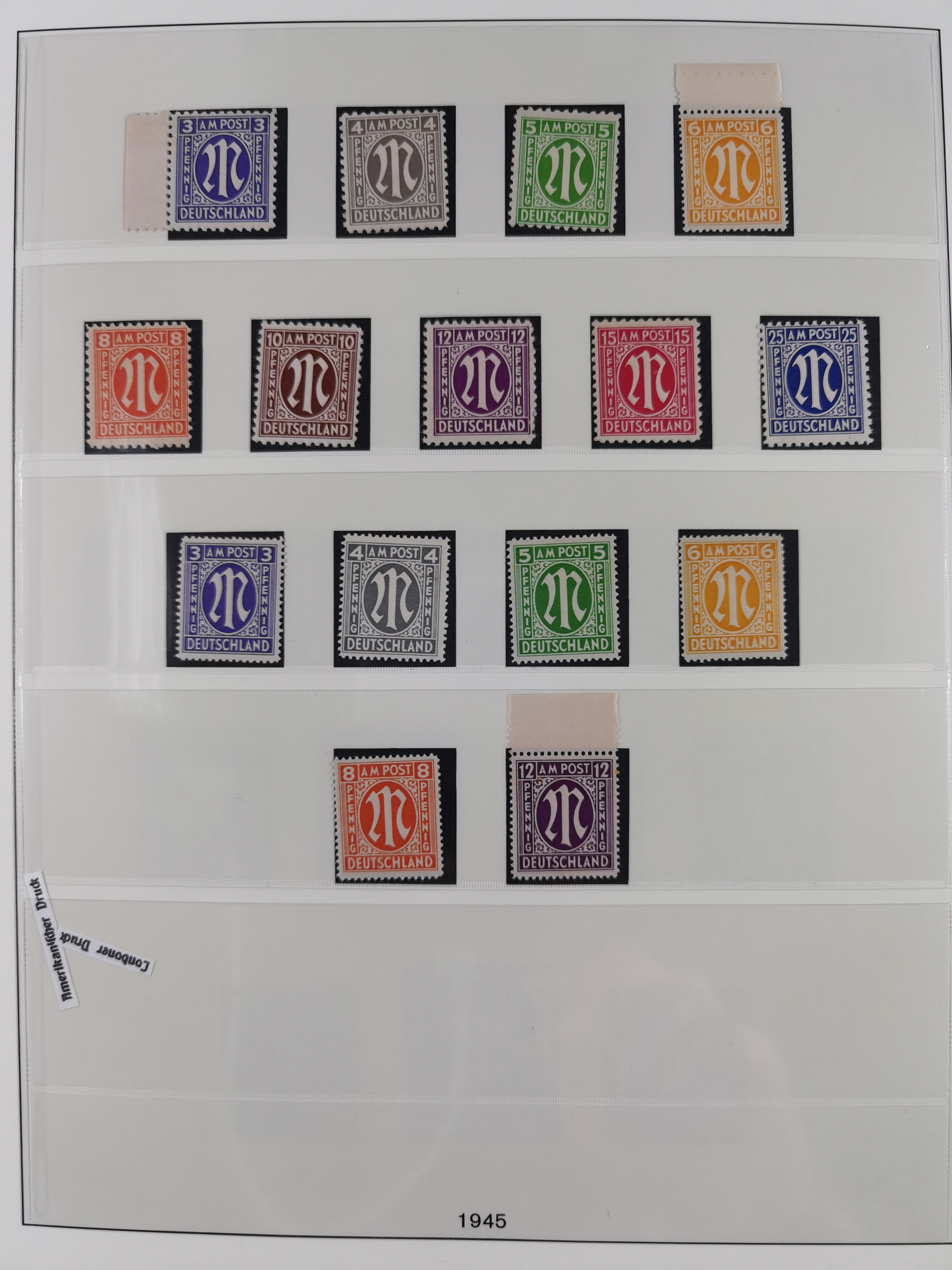 1945/49, postfrische in den Hauptnummern komplette Sammlungen Alliierte Besetzung und Bizone, dabei u.a. Mi.-Nr. A IX/II und Bl. 1c postfrisch je mit Fotoattest A. Schlegel BPP, Bl. 1a postfrisch und gestempelt sign. Schlegel BPP sowie Bauten weit gezähnt mit Oberrand und eng gezähnt teils sign. Salomon BPP, sowie Zusammendrucke, gute Erhaltung