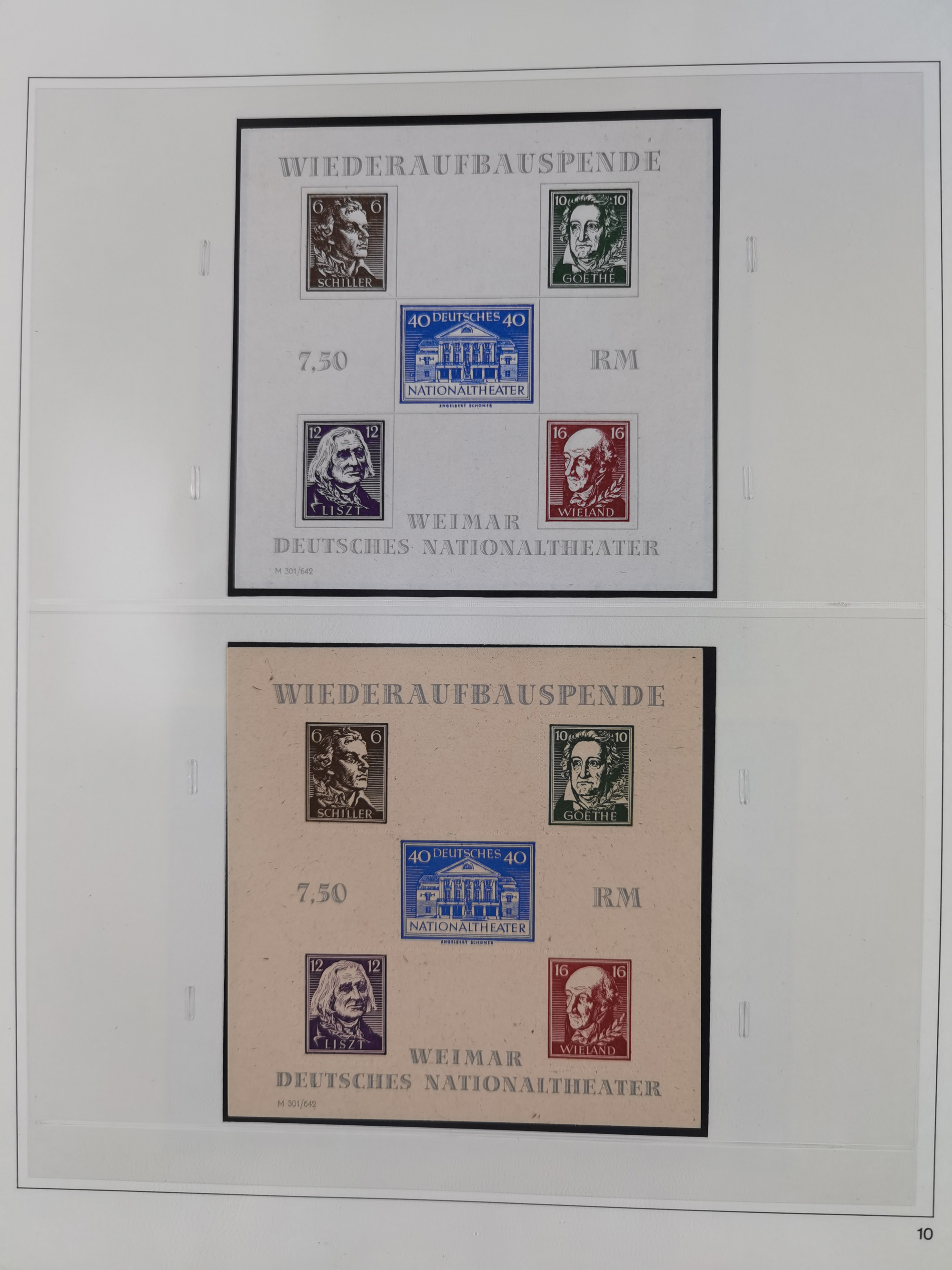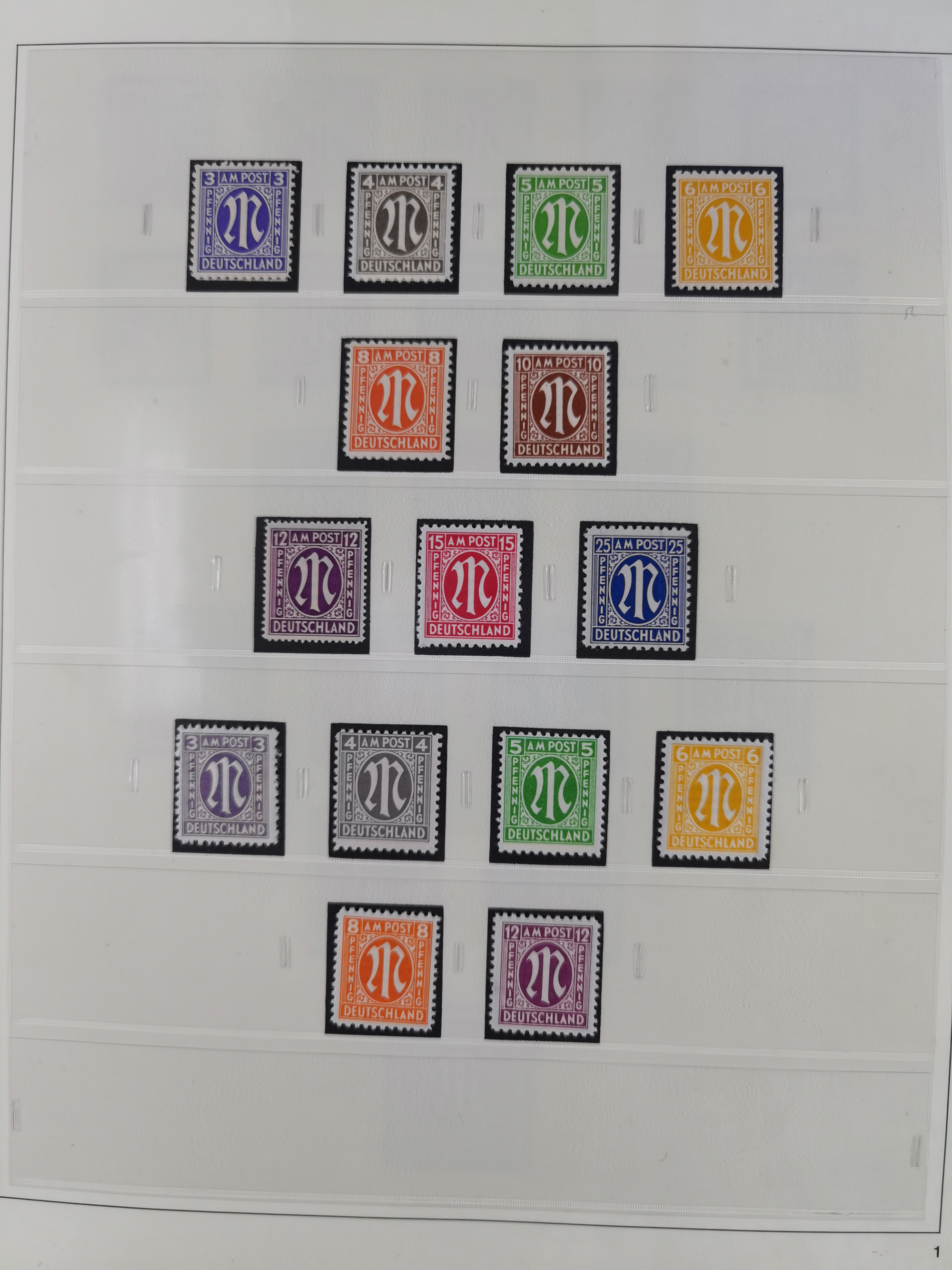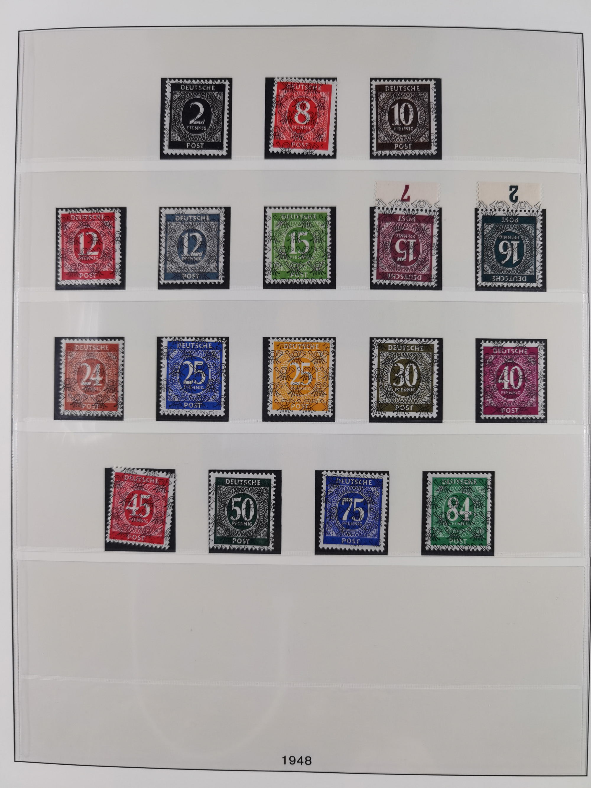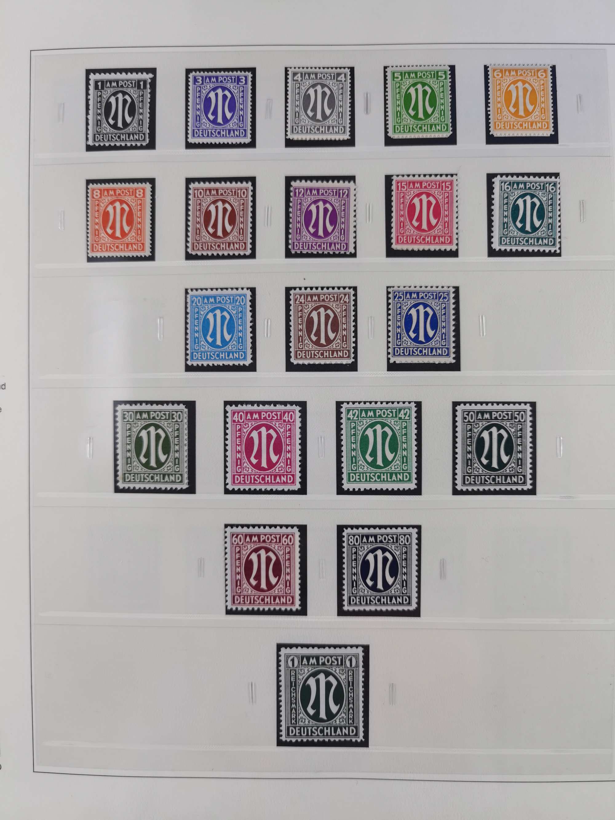 1945/49, postfrische in den Hauptnummern komplette Sammlungen Alliierte Besetzung und Bizone, dabei u.a. Mi.-Nr. A IX/II und Bl. 1c postfrisch je mit Fotoattest A. Schlegel BPP, Bl. 1a postfrisch und gestempelt sign. Schlegel BPP sowie Bauten weit gezähnt mit Oberrand und eng gezähnt teils sign. Salomon BPP, sowie Zusammendrucke, gute Erhaltung
