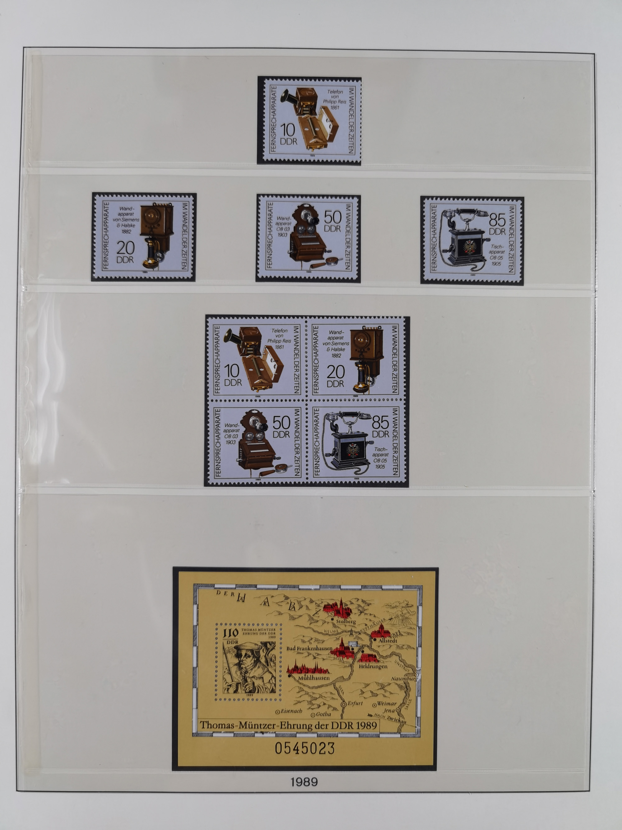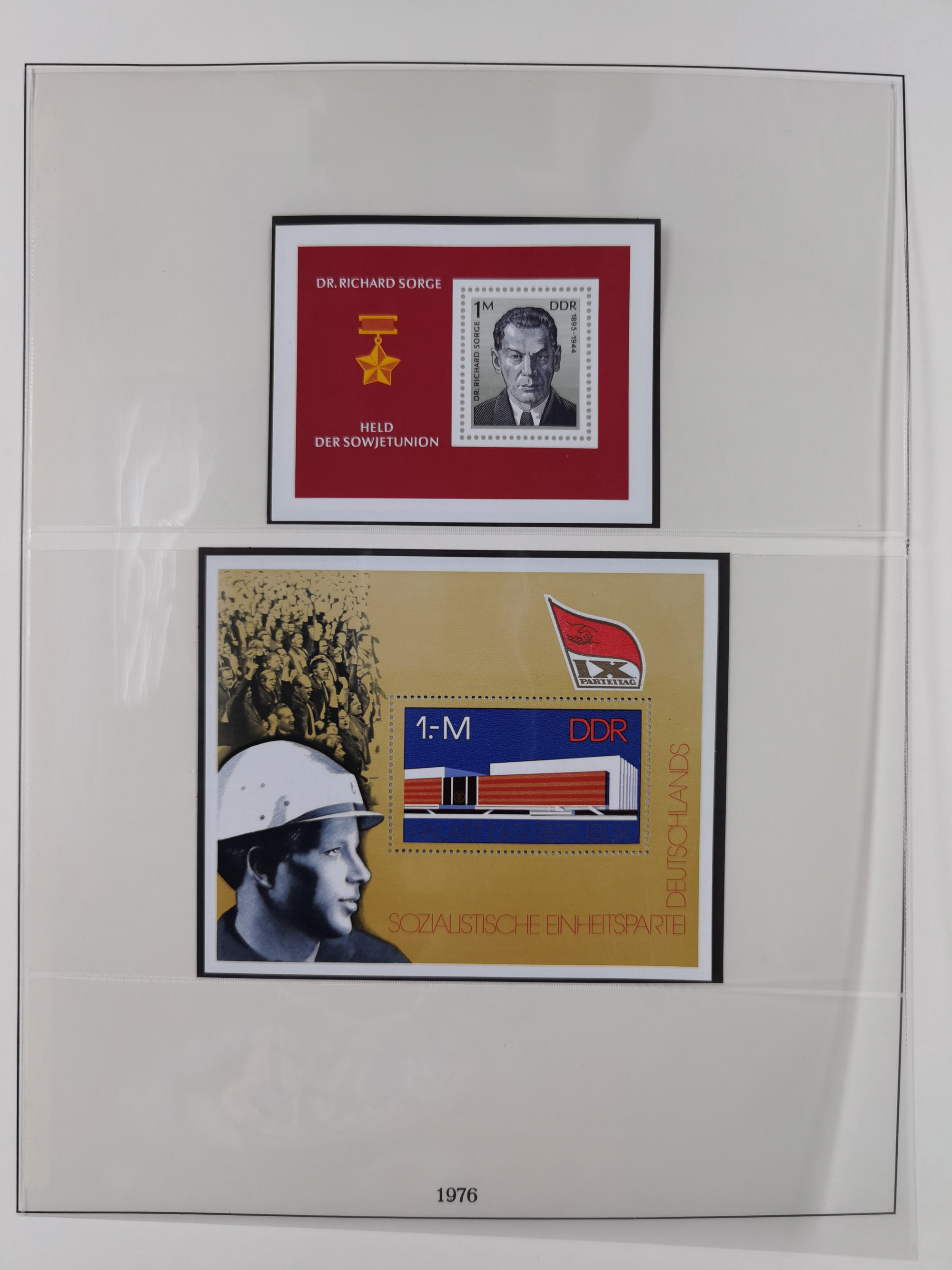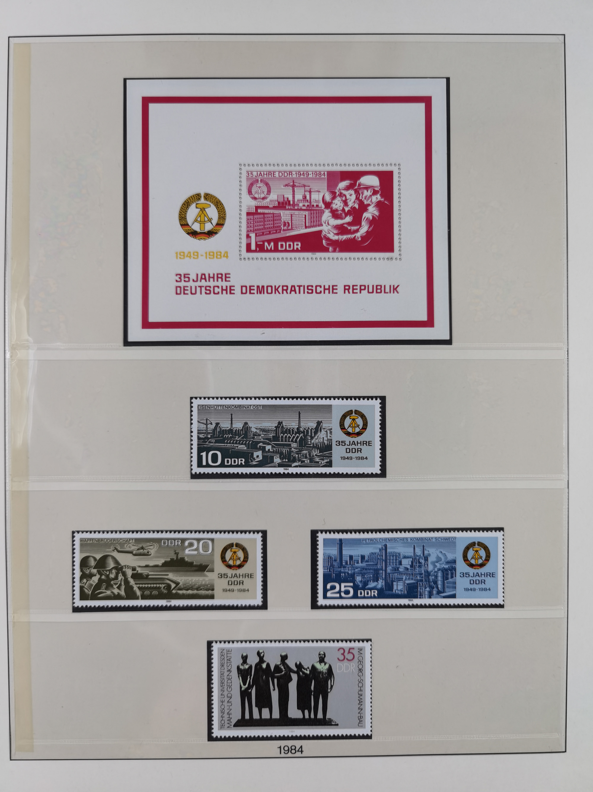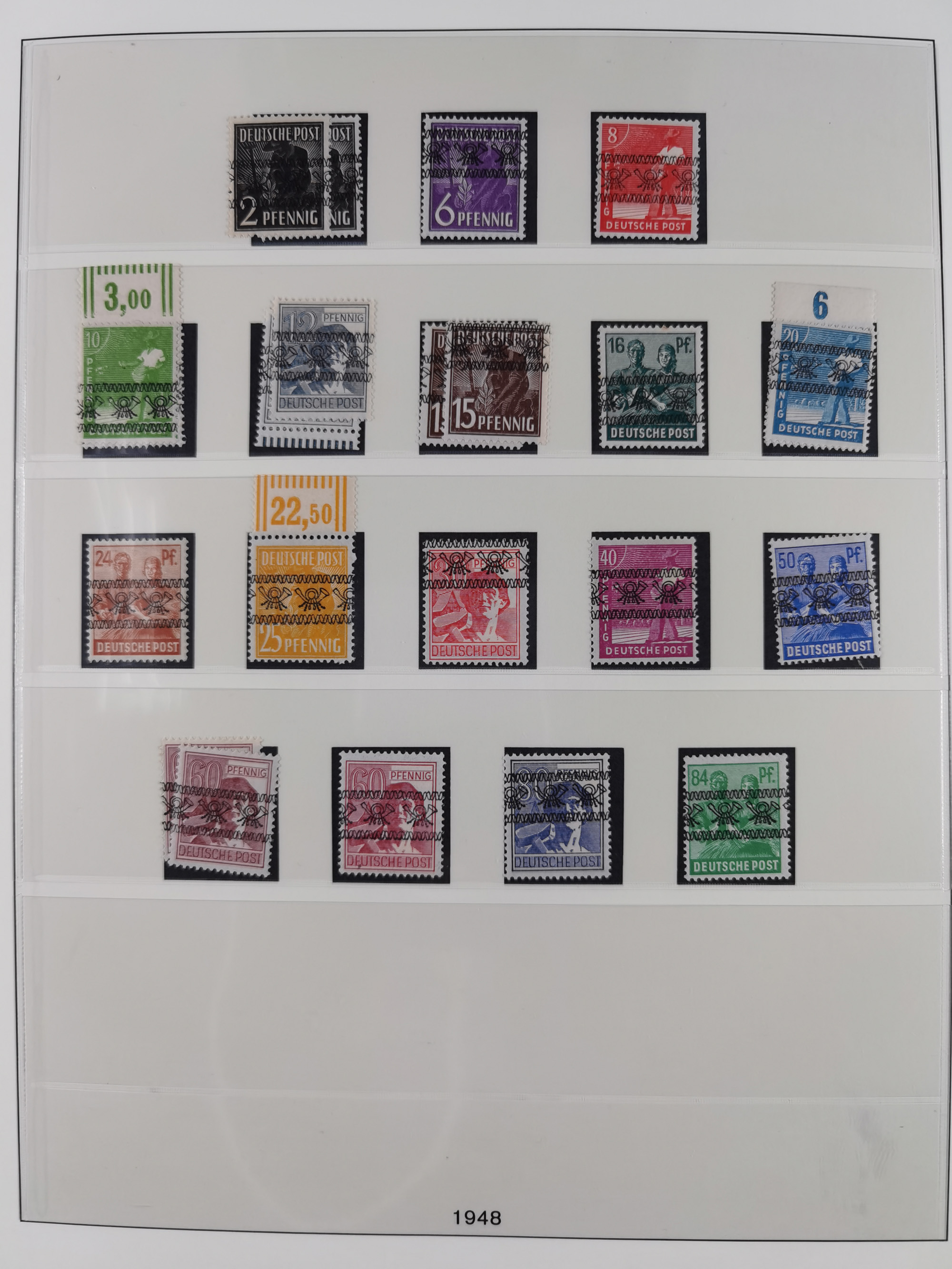 1948/90, in den Hauptnummern augenscheinlich komplette gestempelte Sammlungen Berlin 1948-90 und DDR 1949-90, sowie eine fast ausnahmslos postfrische Sammlung Berlin 1948-76 inkl. Bl. 1 PF I, einiges signiert, in acht Alben