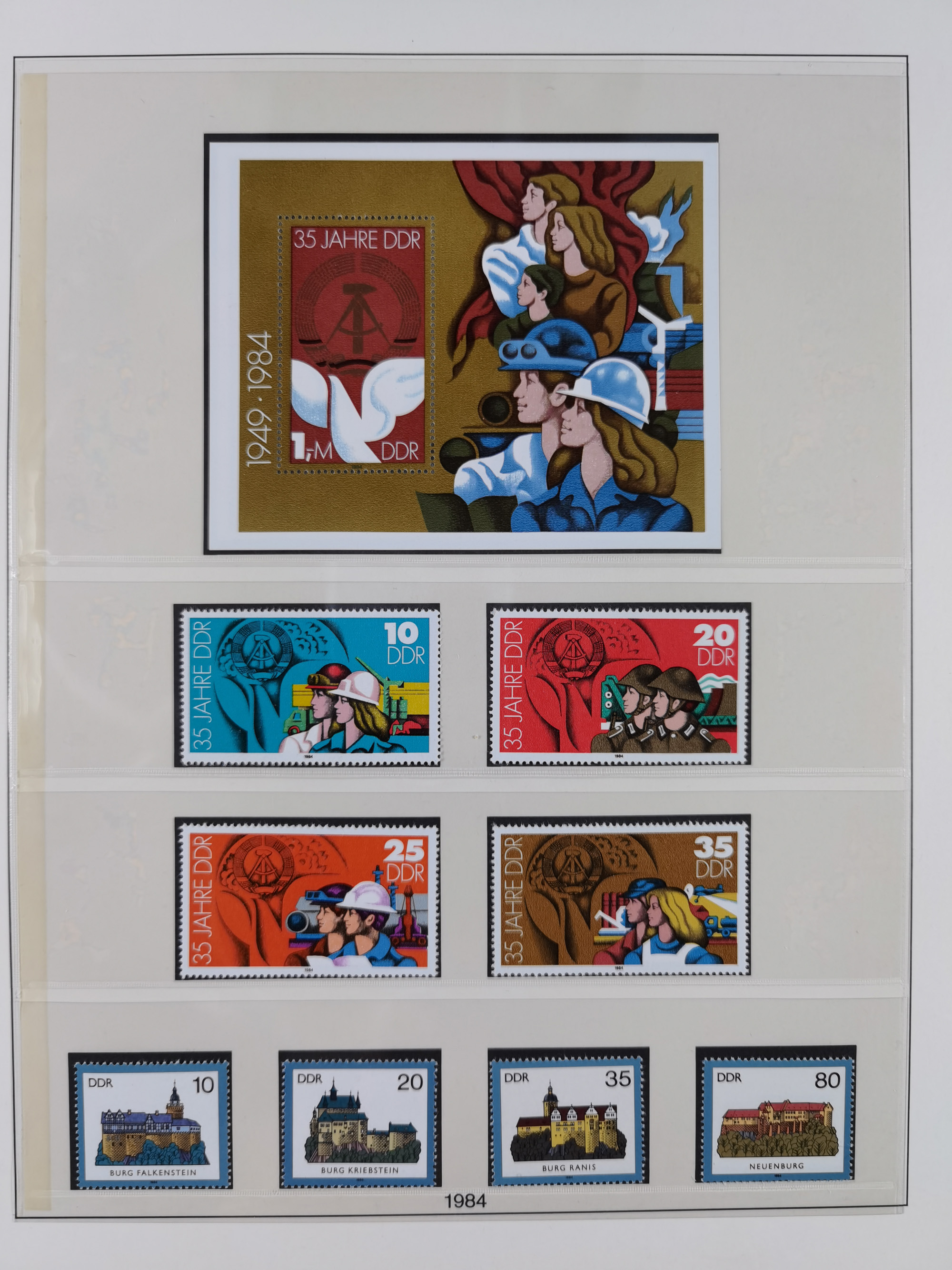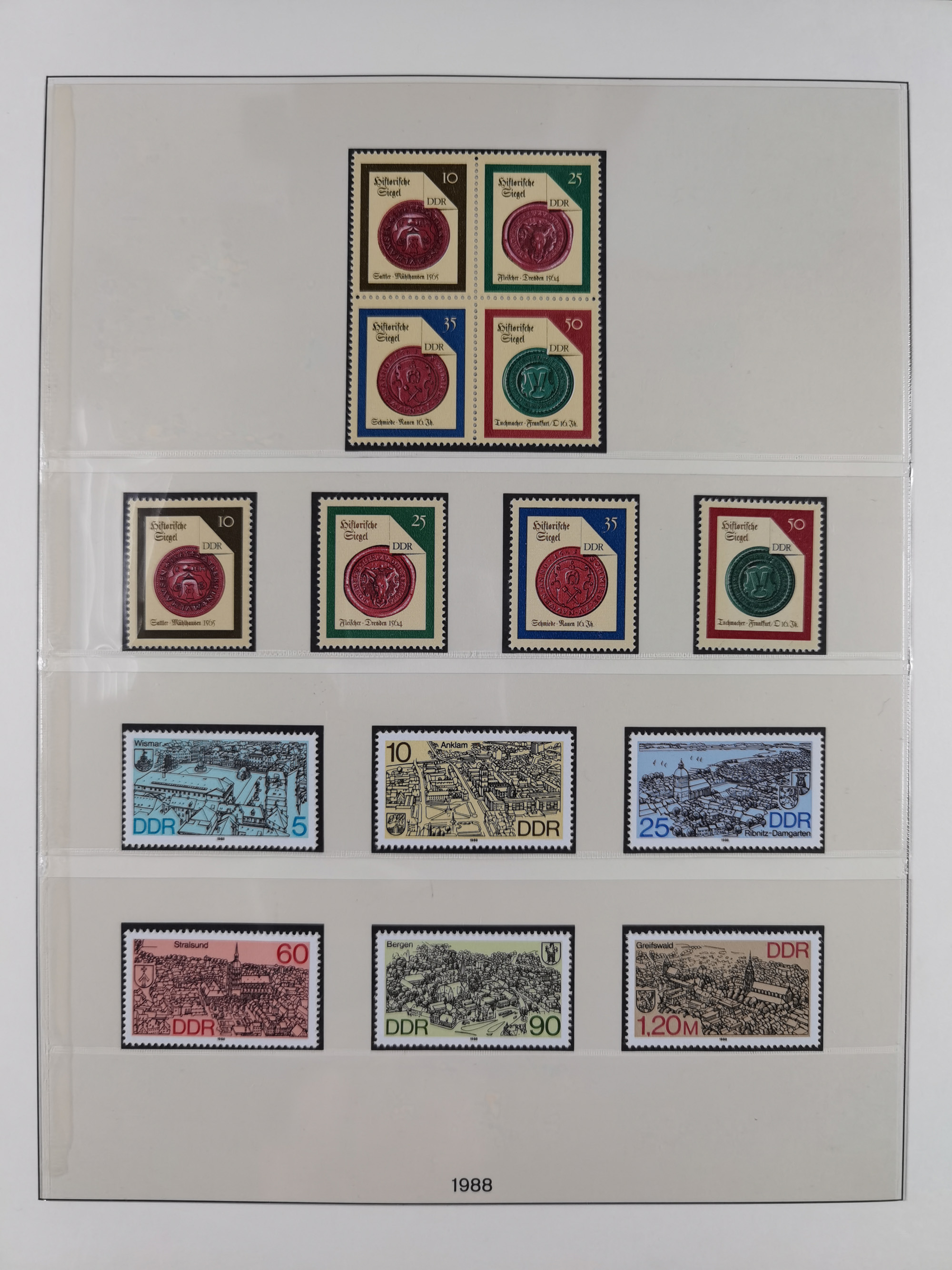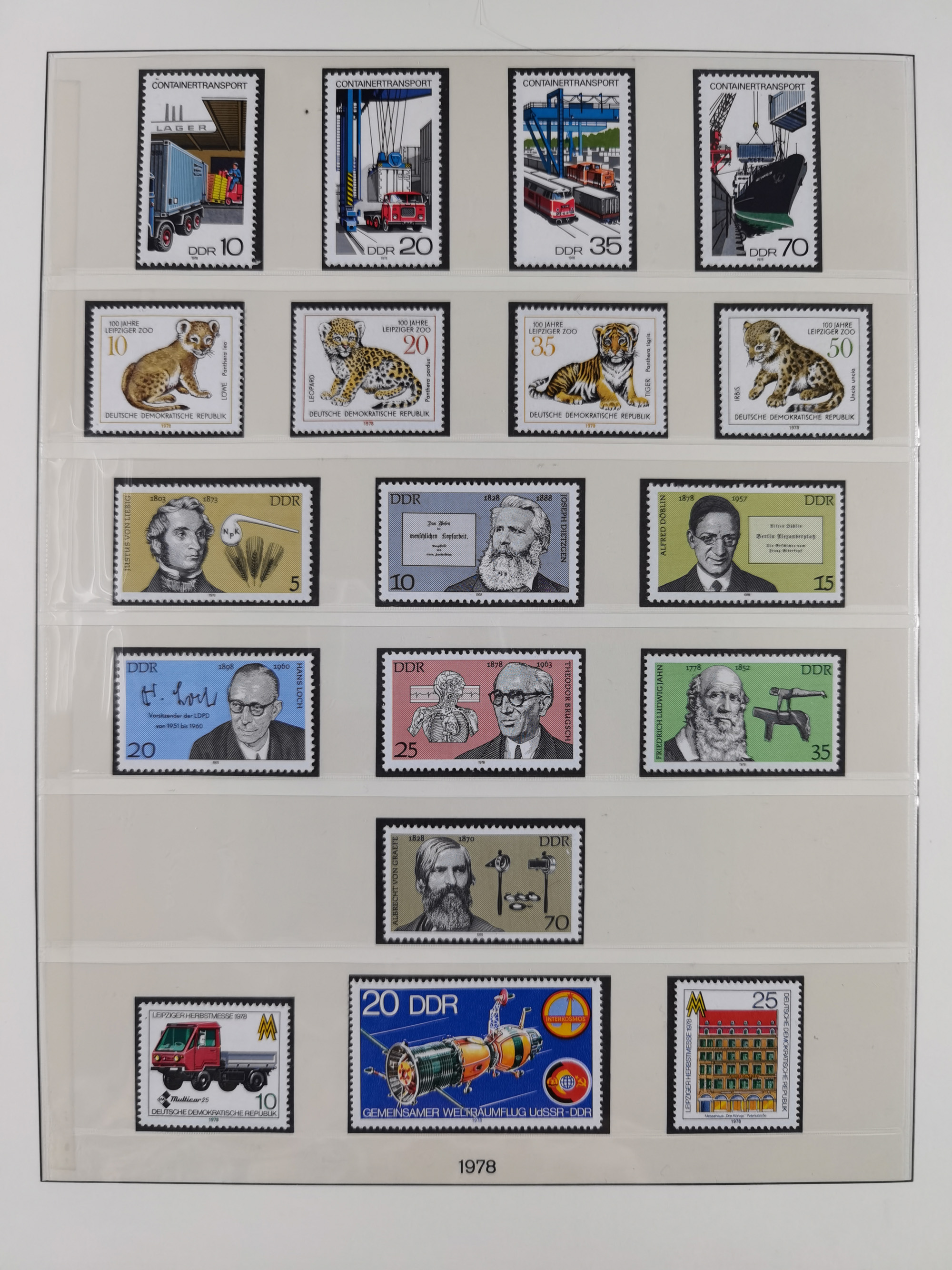 1948/90, in den Hauptnummern augenscheinlich komplette gestempelte Sammlungen Berlin 1948-90 und DDR 1949-90, sowie eine fast ausnahmslos postfrische Sammlung Berlin 1948-76 inkl. Bl. 1 PF I, einiges signiert, in acht Alben