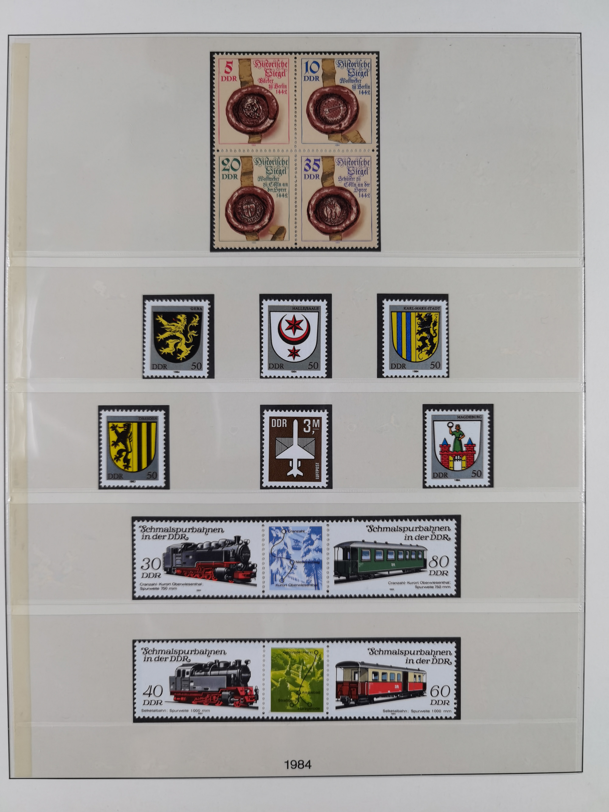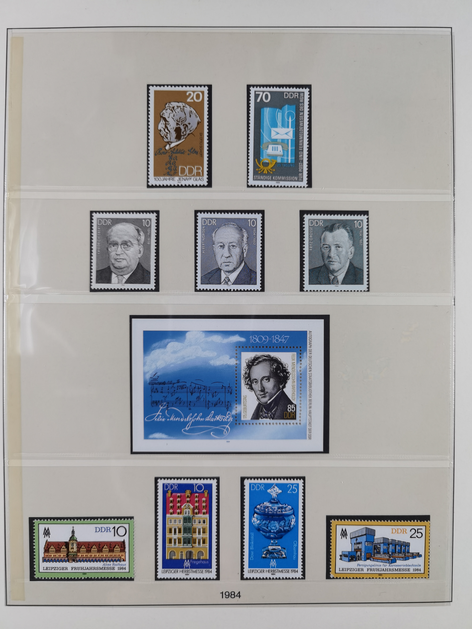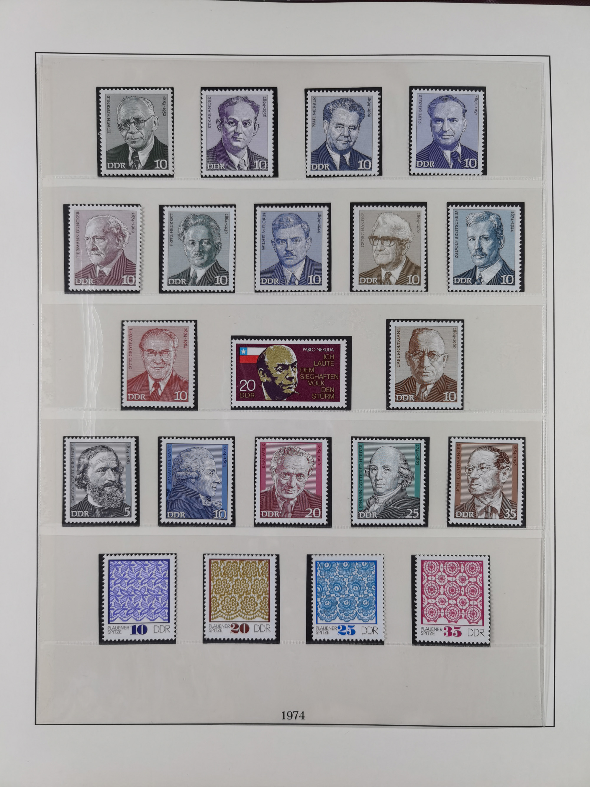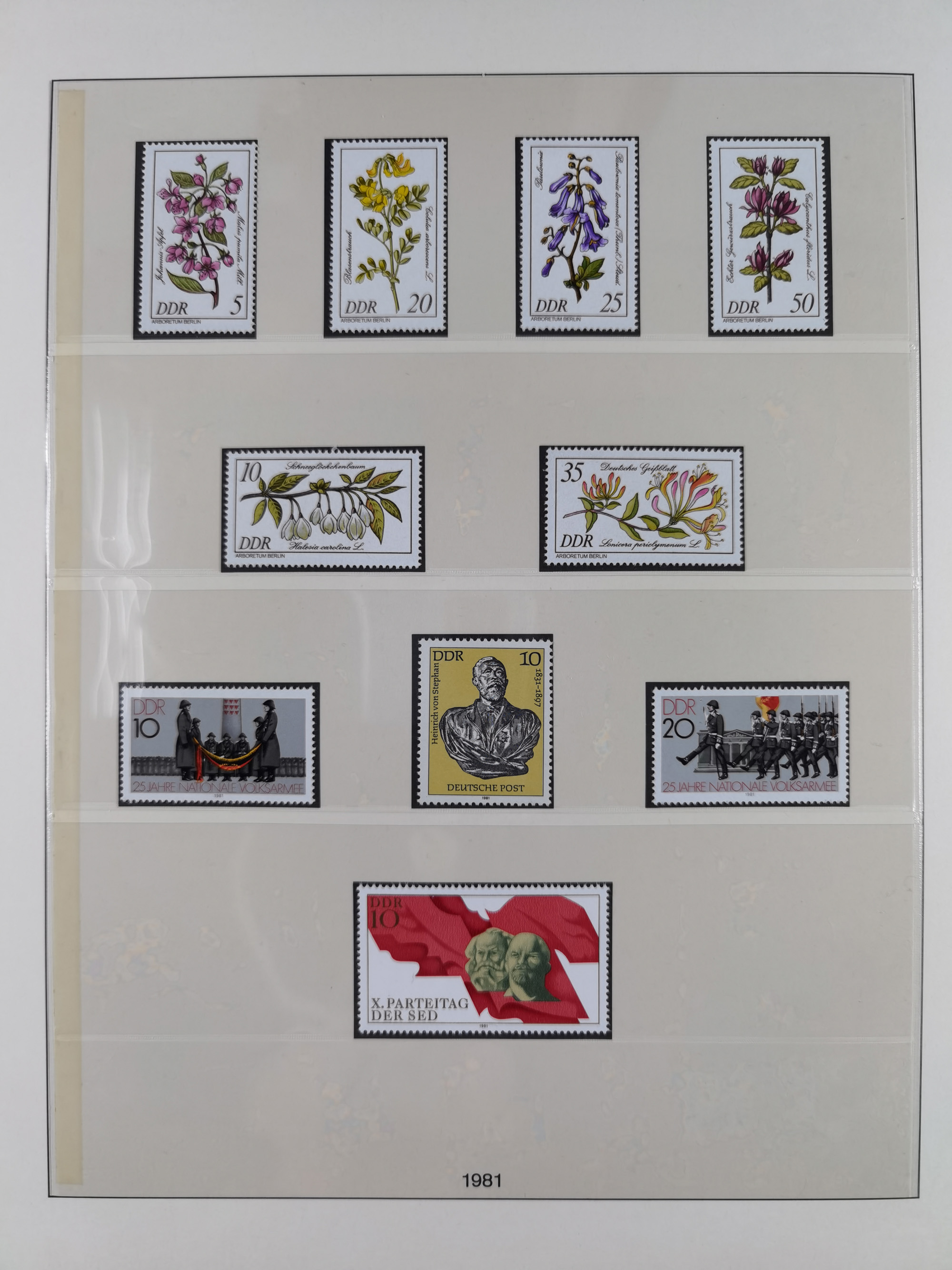 1948/90, in den Hauptnummern augenscheinlich komplette gestempelte Sammlungen Berlin 1948-90 und DDR 1949-90, sowie eine fast ausnahmslos postfrische Sammlung Berlin 1948-76 inkl. Bl. 1 PF I, einiges signiert, in acht Alben