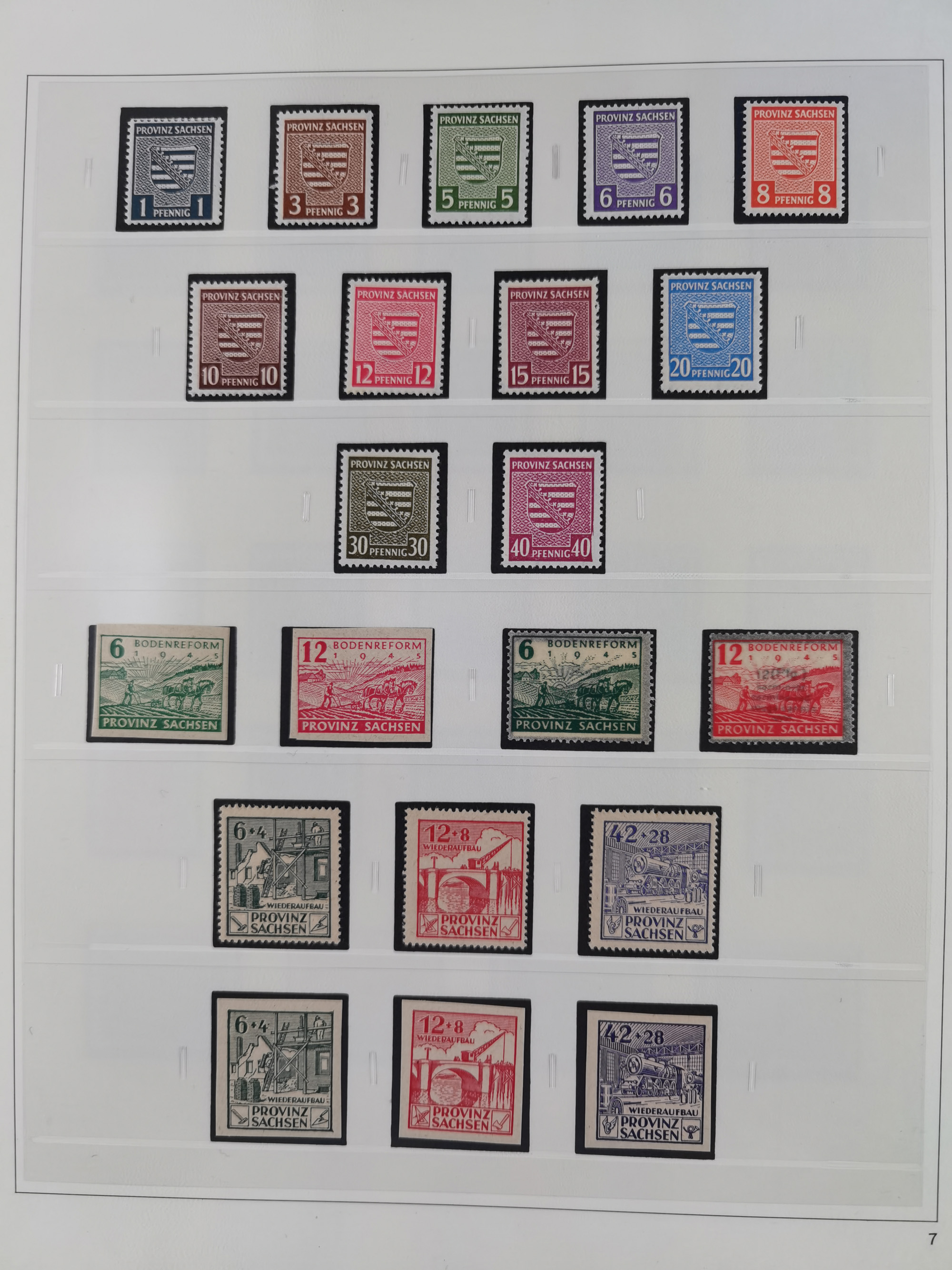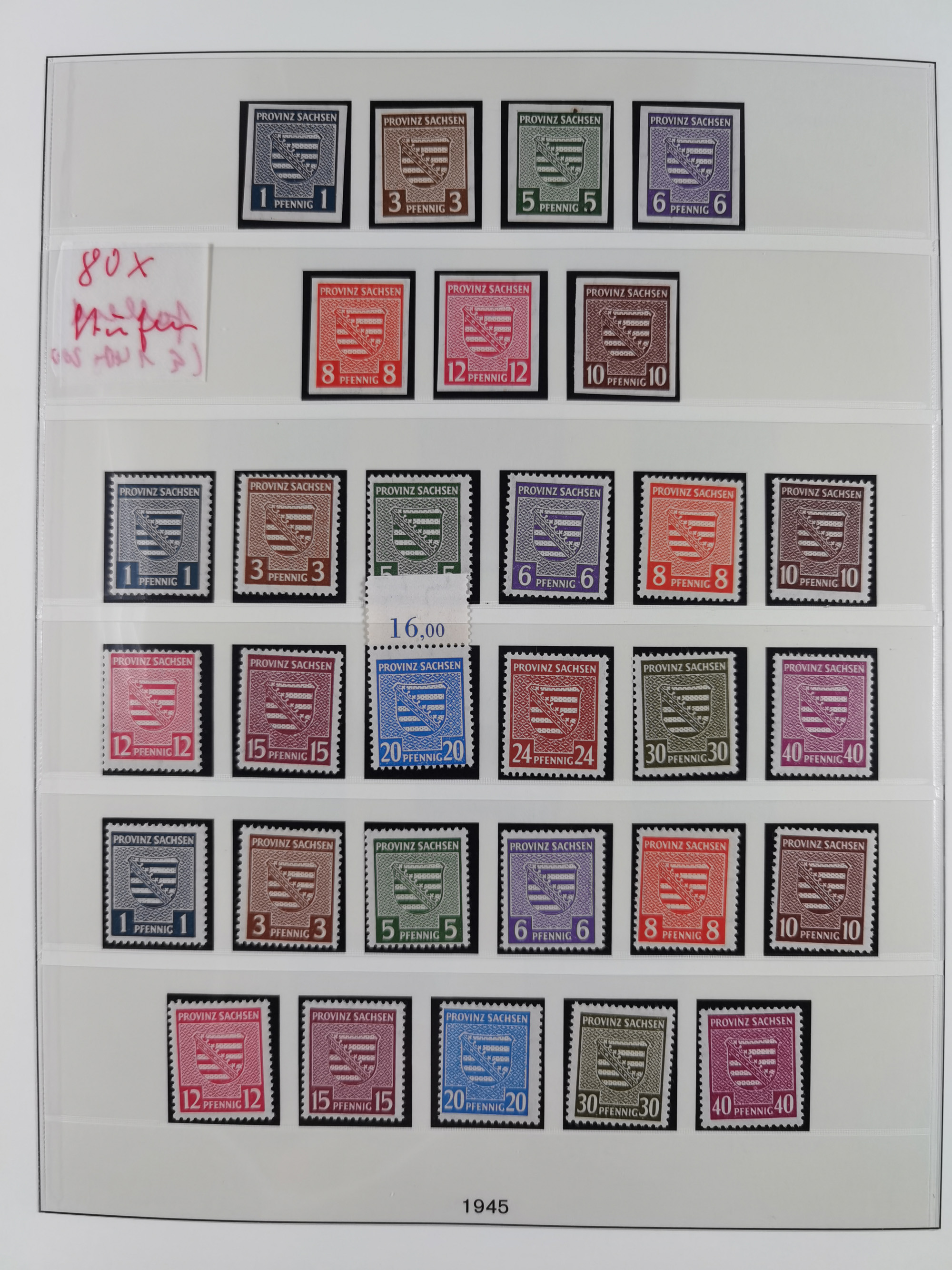 1945/49, ungebraucht/postfrische Sammlung SBZ, Frz. Zone und Kontrollrat/Bizone mit vielen Doubletten, Marken mit Rändern und Farben, in drei Alben