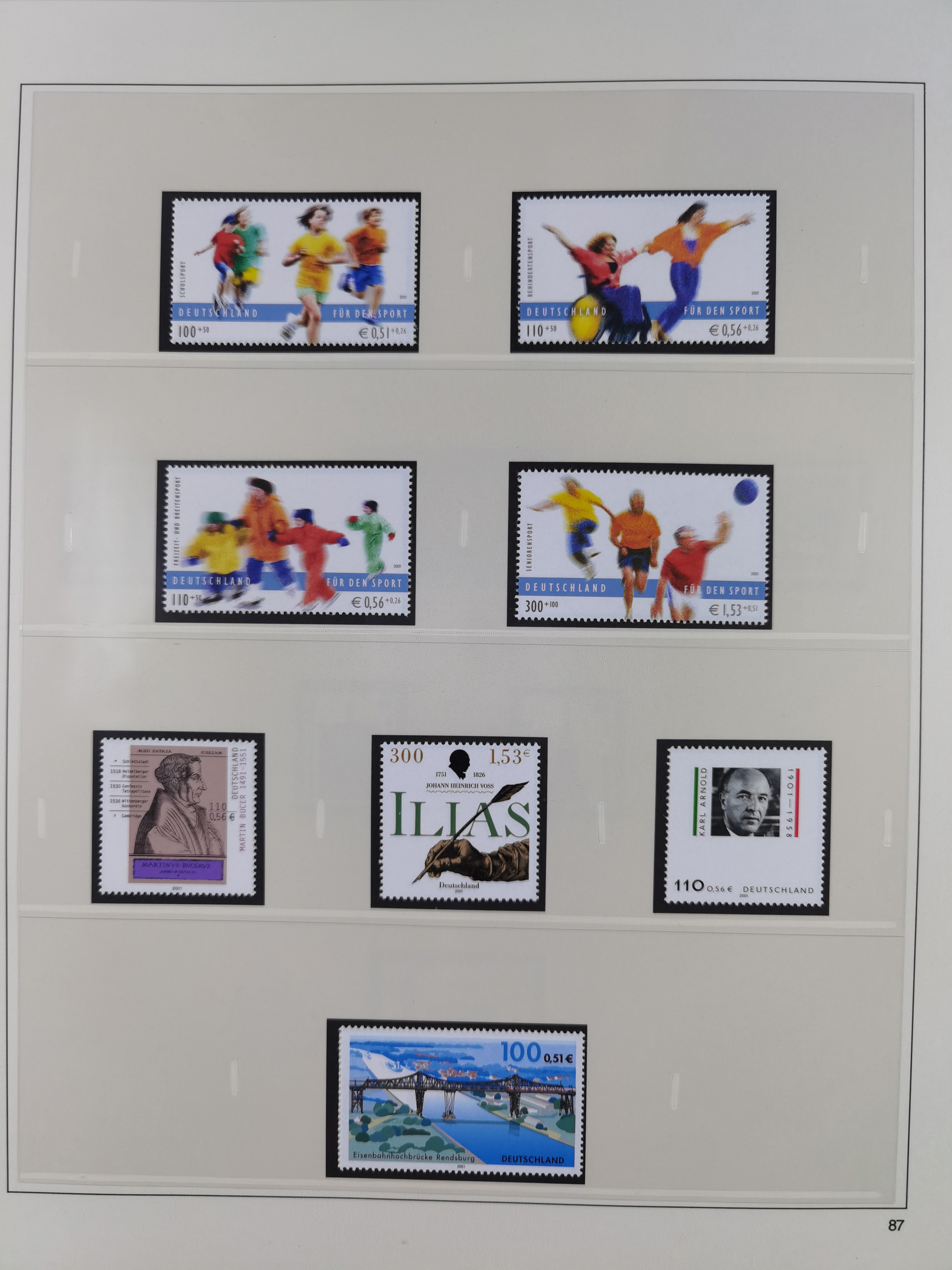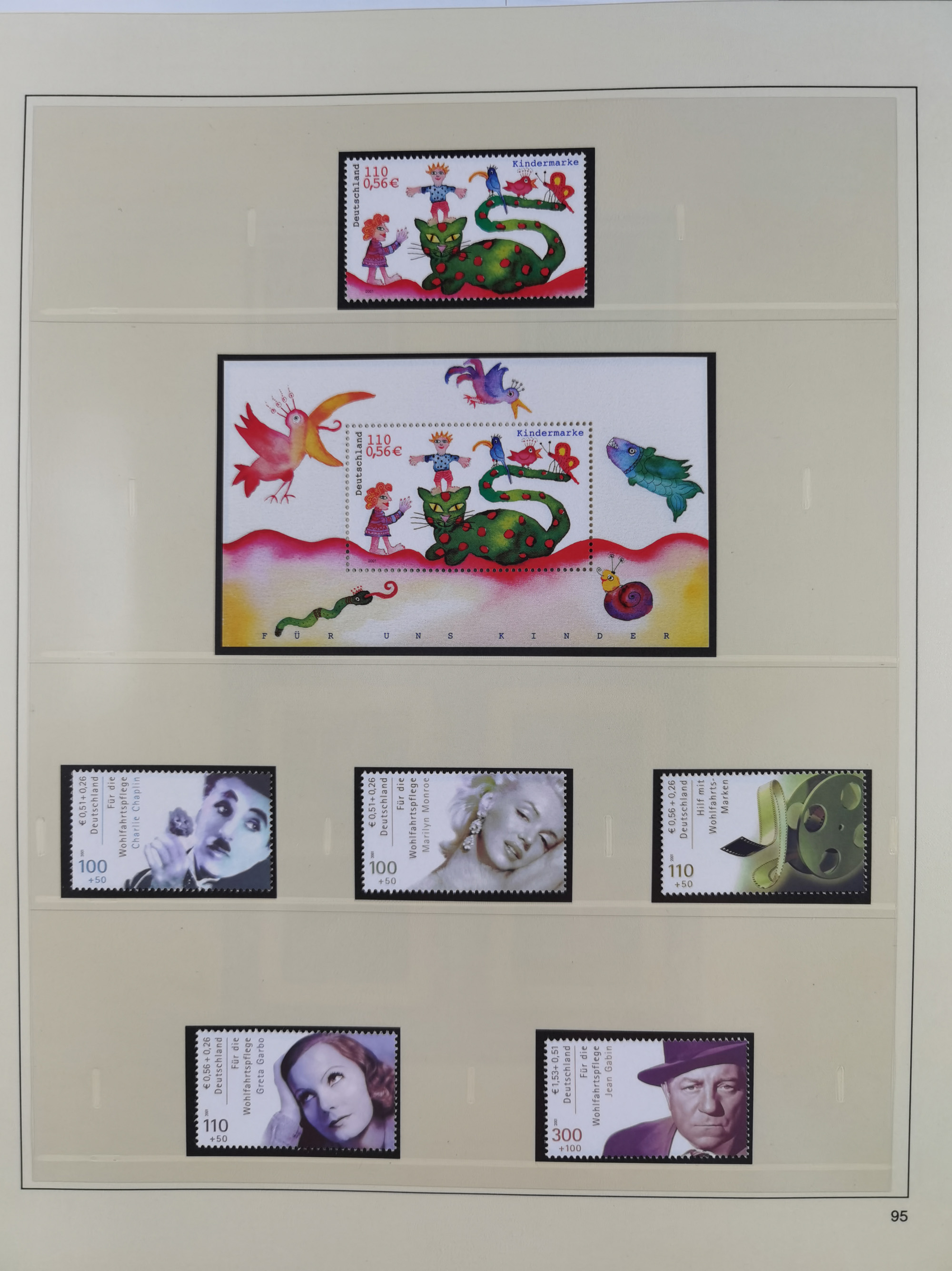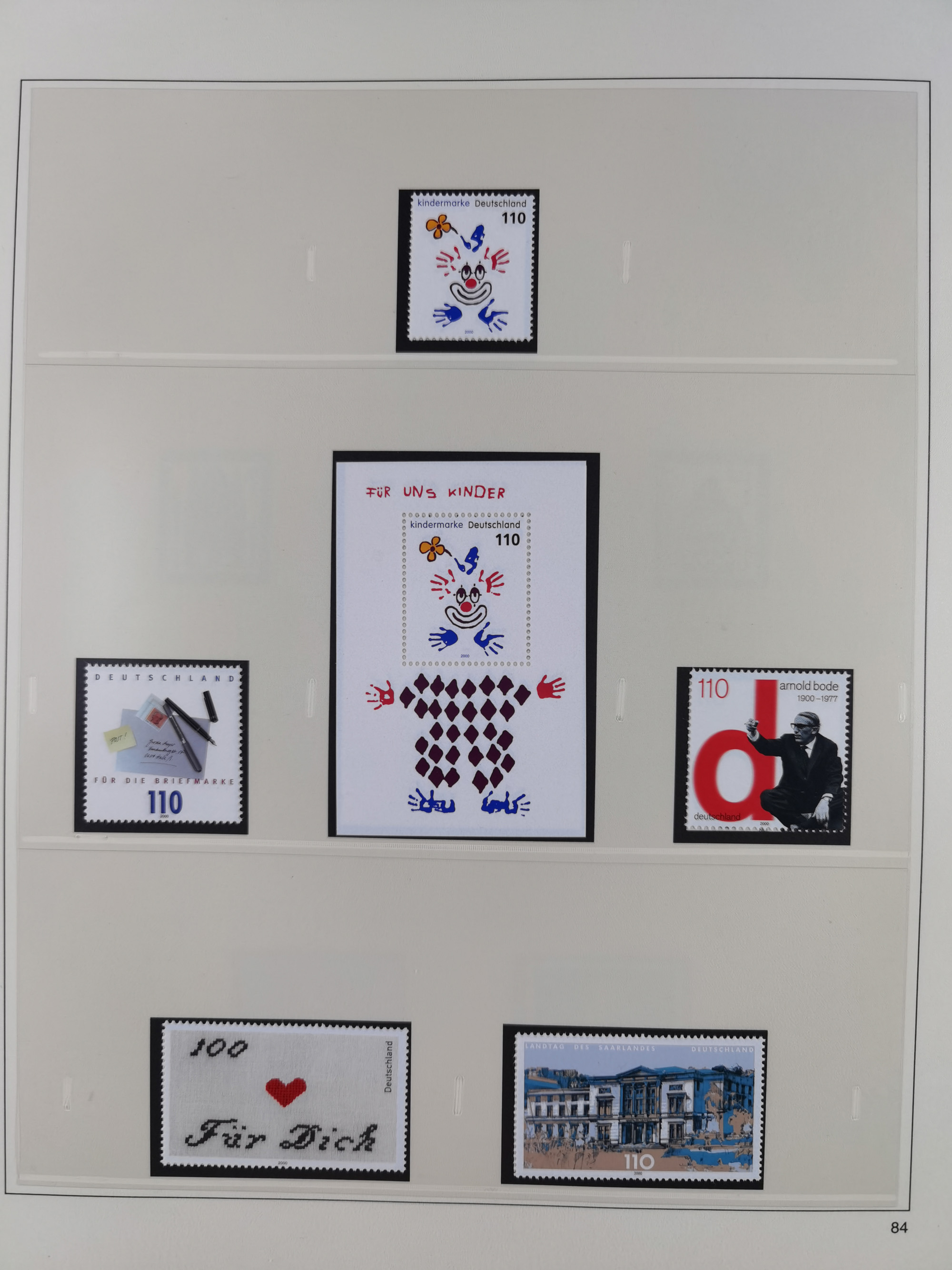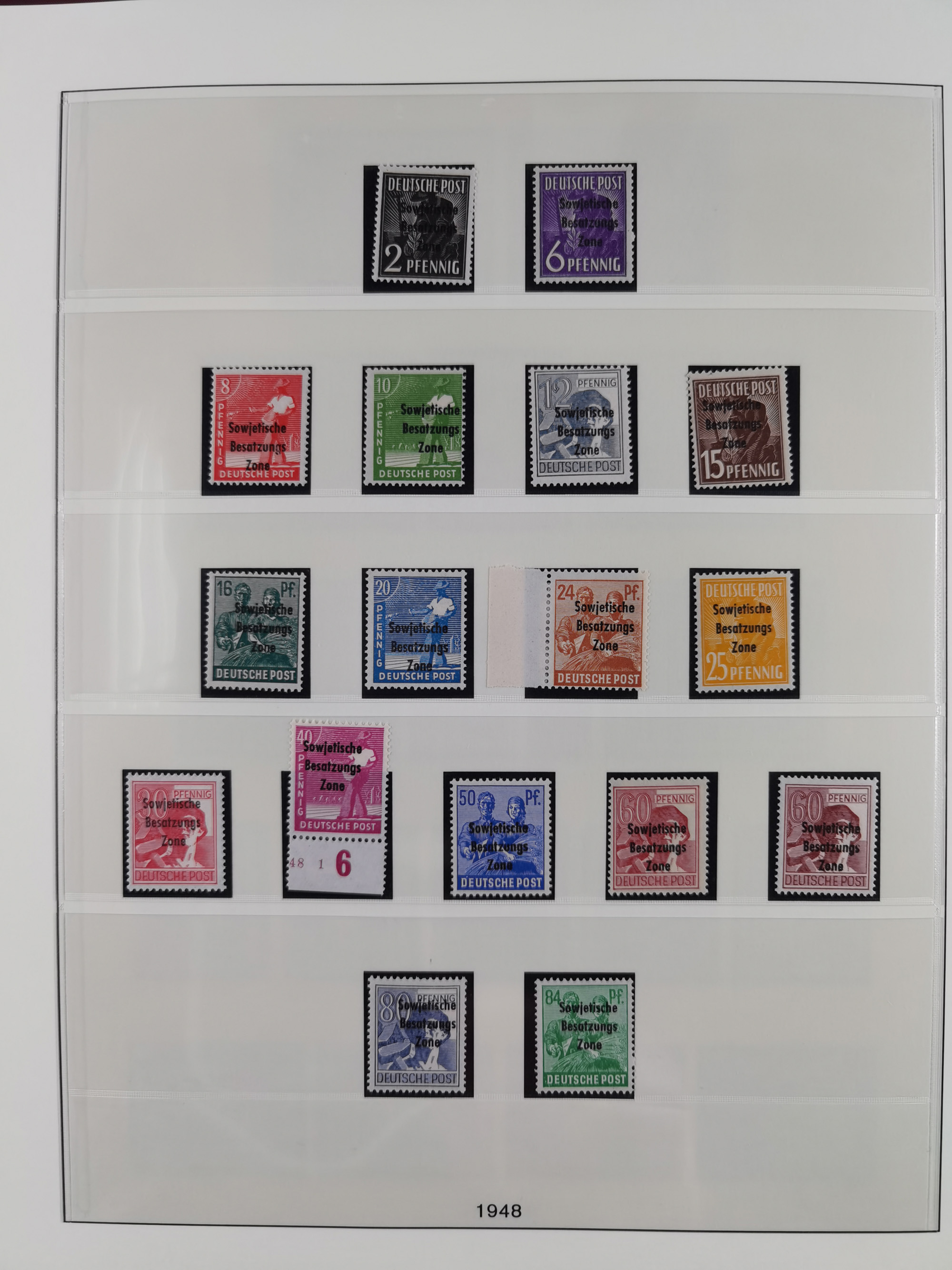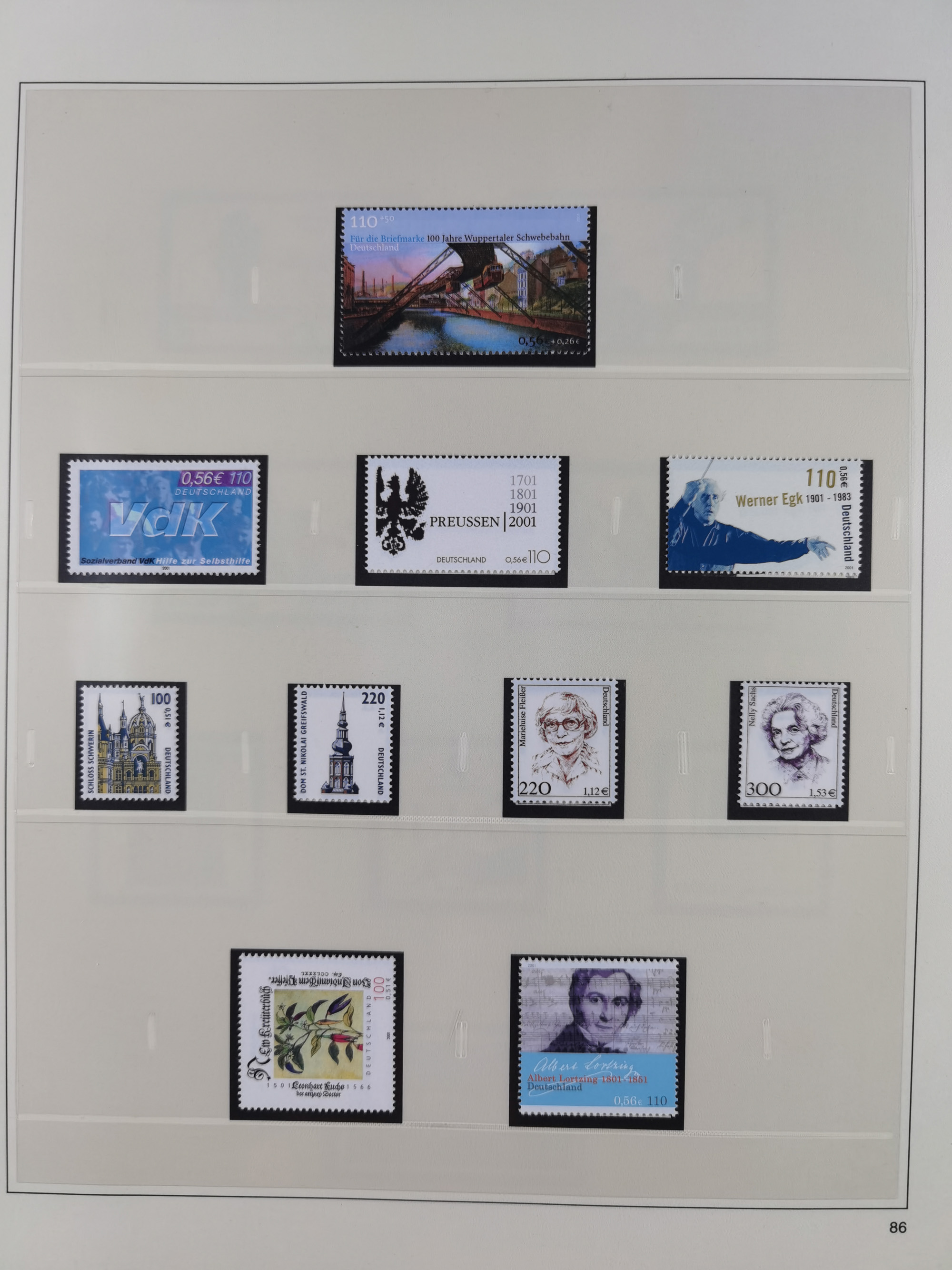 1948/2001, vorwiegend postfrische Sammlung, dabei Bund, Berlin und DDR in den Hauptnummern augenscheinlich komplett, außerdem Französische Zone und Saarland, bis auf einen Rot-Kreuz-Block komplett, SBZ mit besseren inkl. Blockausgaben, Bizone inkl. 52 Werte usw., wenige Werte ungebraucht bzw. nachgummiert, meist gute Erhaltung