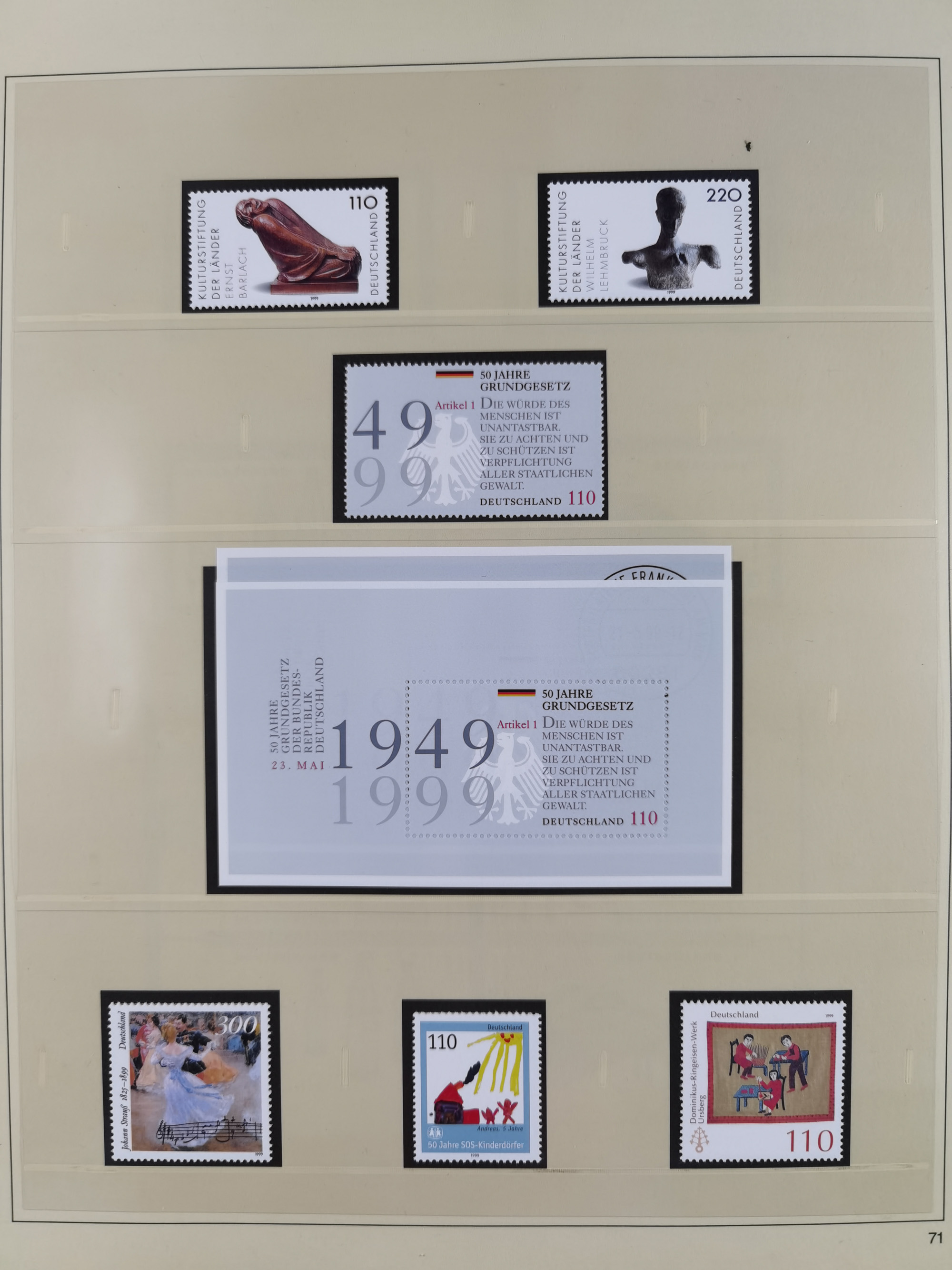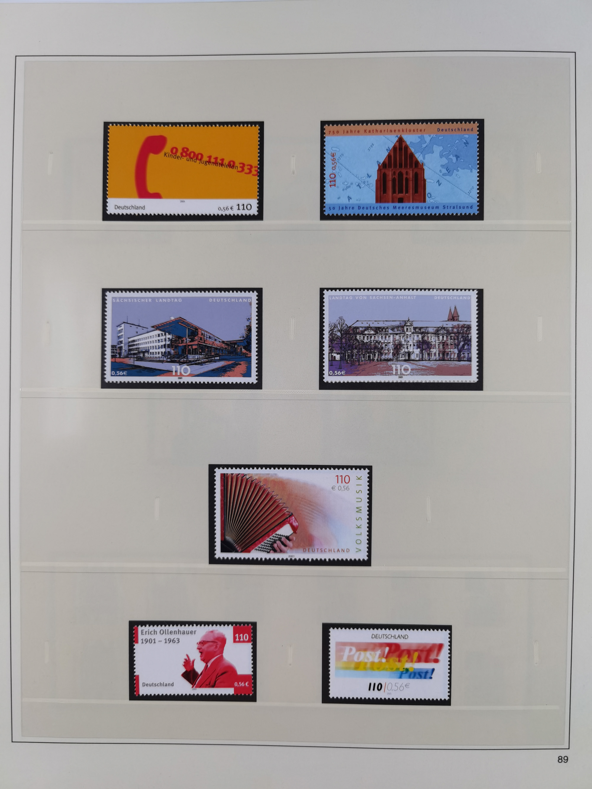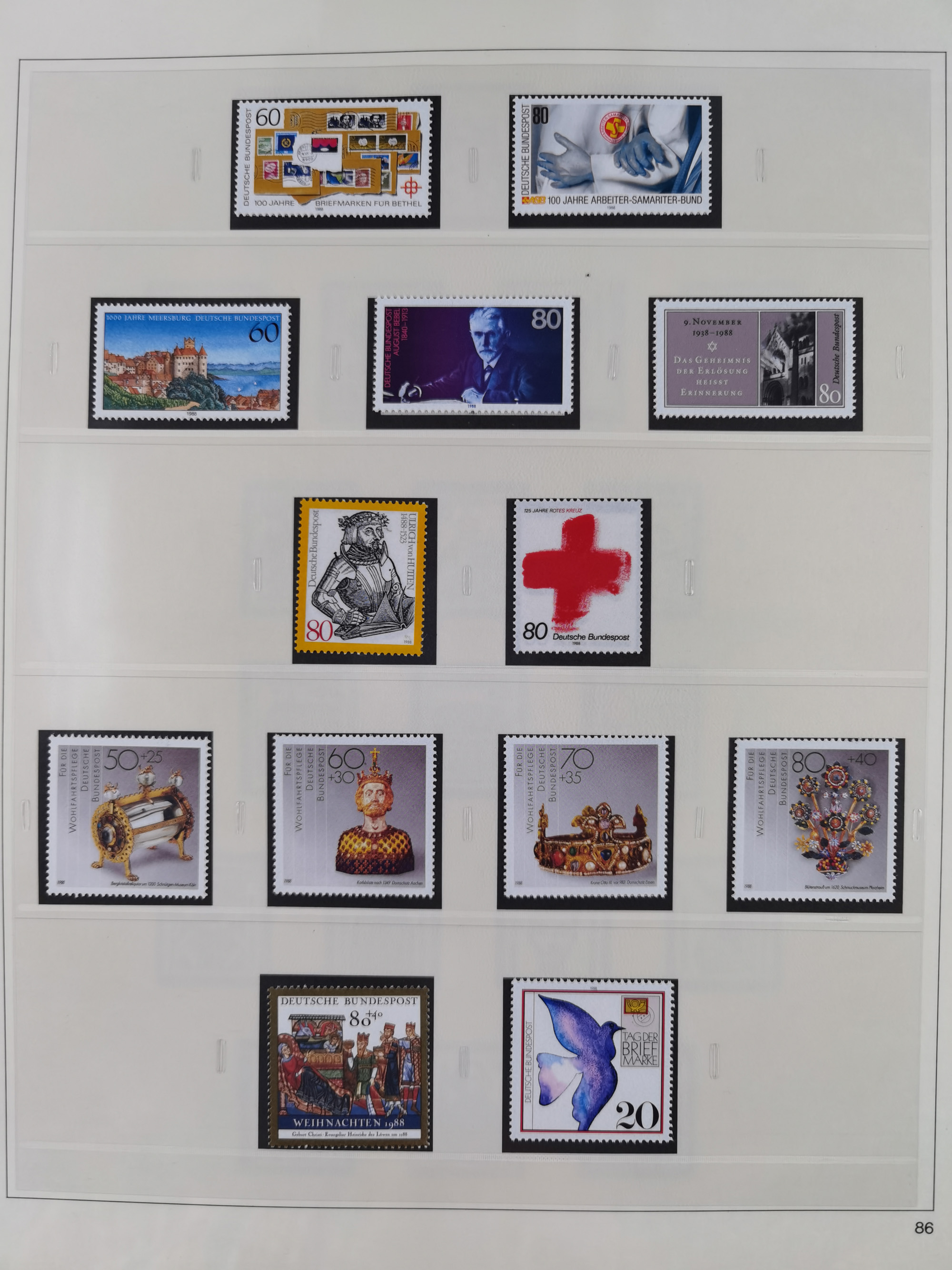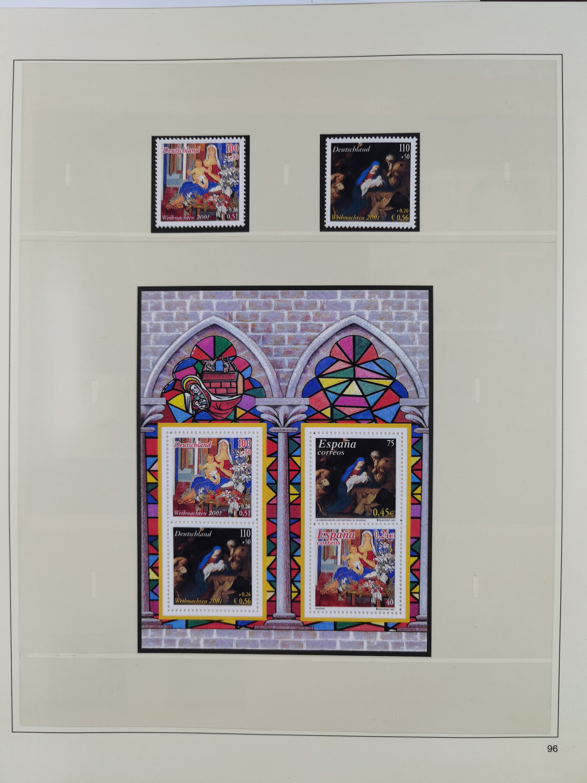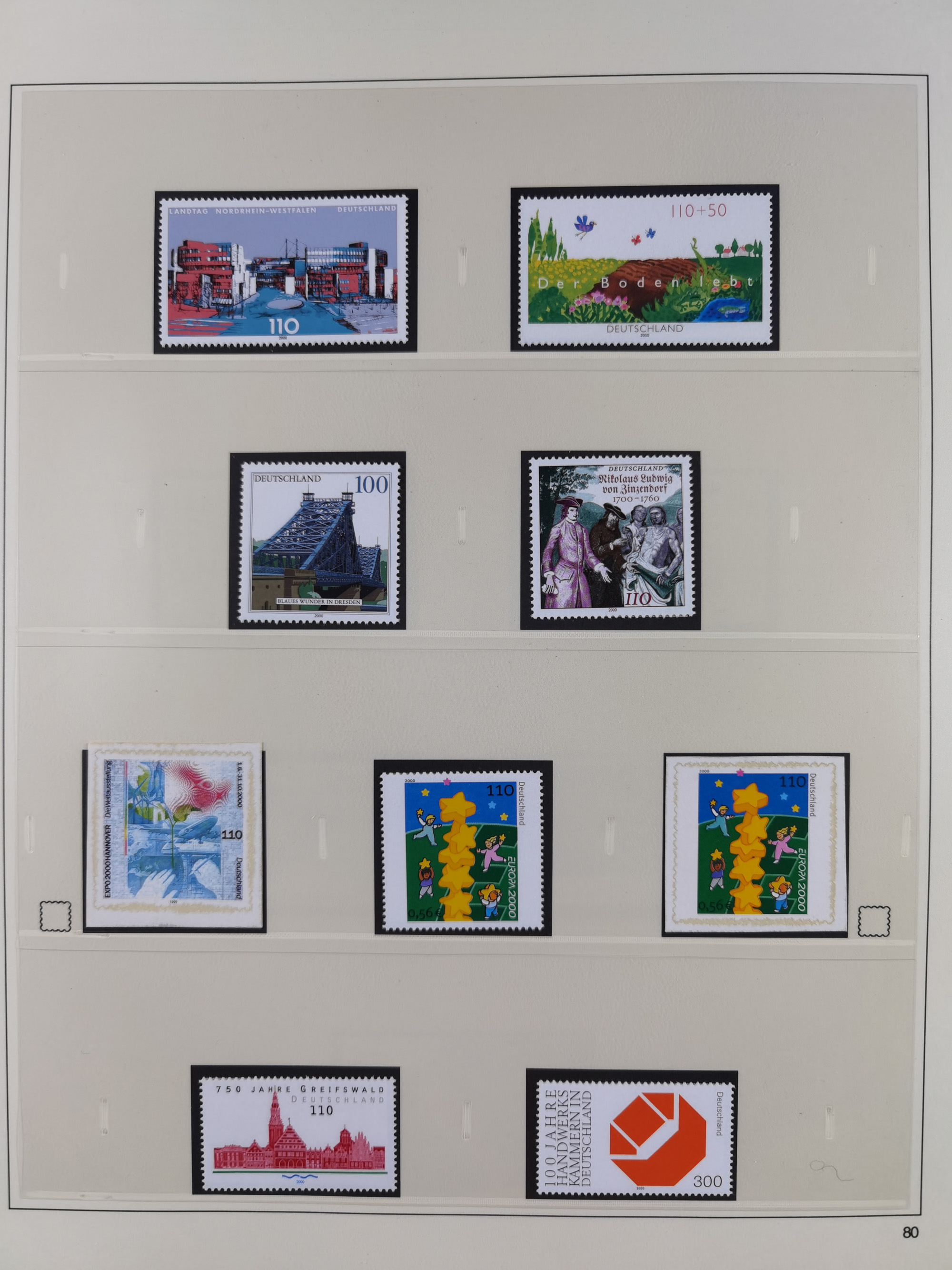 1948/2001, vorwiegend postfrische Sammlung, dabei Bund, Berlin und DDR in den Hauptnummern augenscheinlich komplett, außerdem Französische Zone und Saarland, bis auf einen Rot-Kreuz-Block komplett, SBZ mit besseren inkl. Blockausgaben, Bizone inkl. 52 Werte usw., wenige Werte ungebraucht bzw. nachgummiert, meist gute Erhaltung