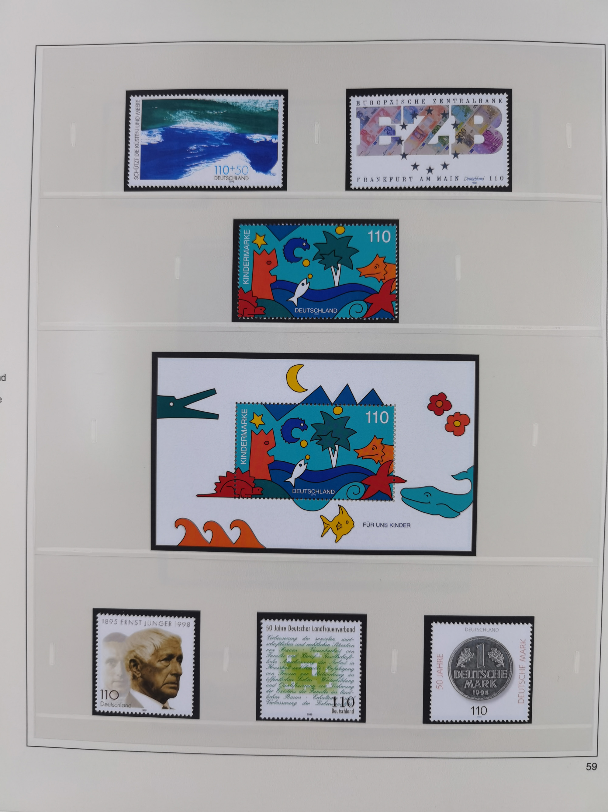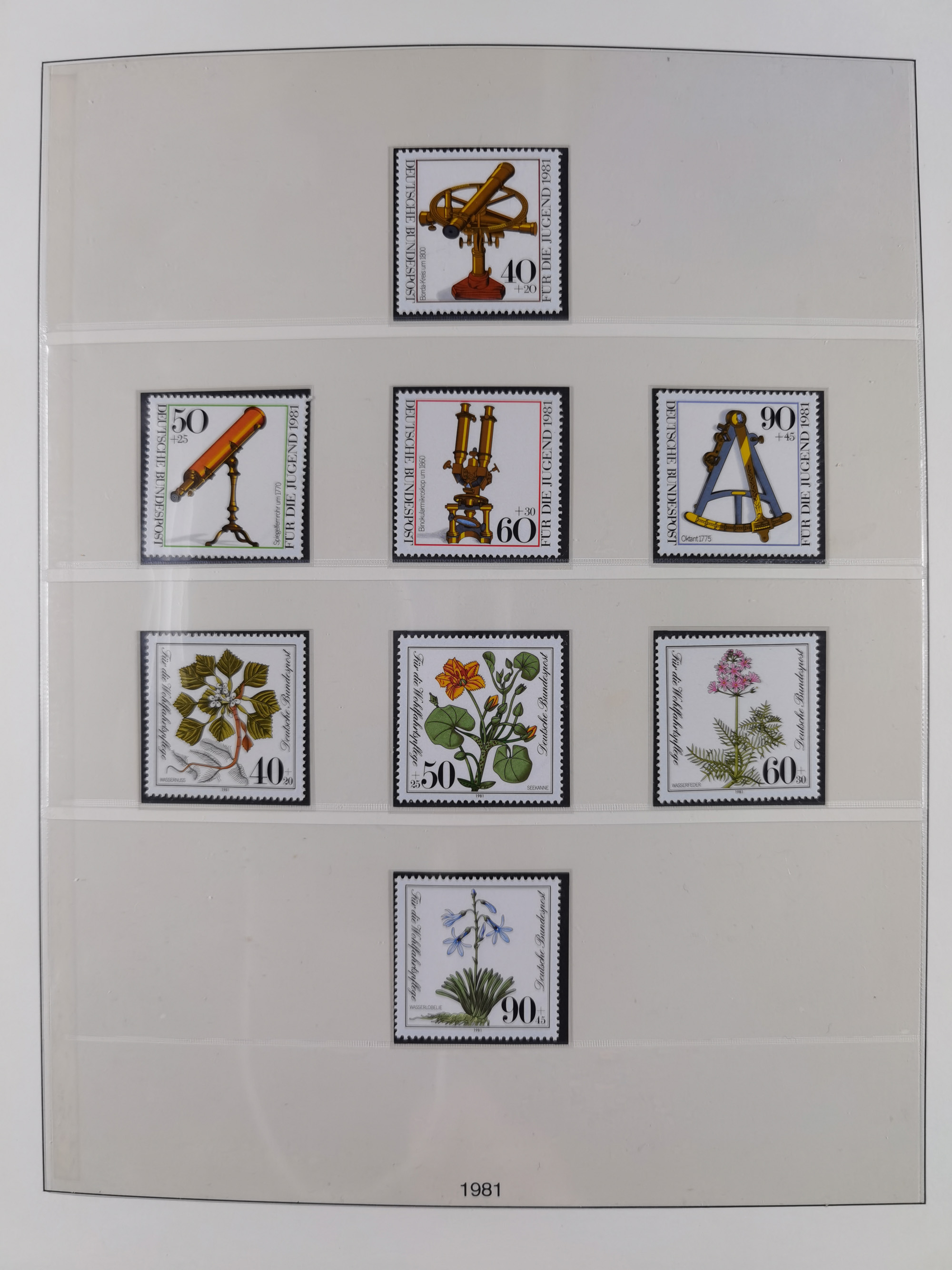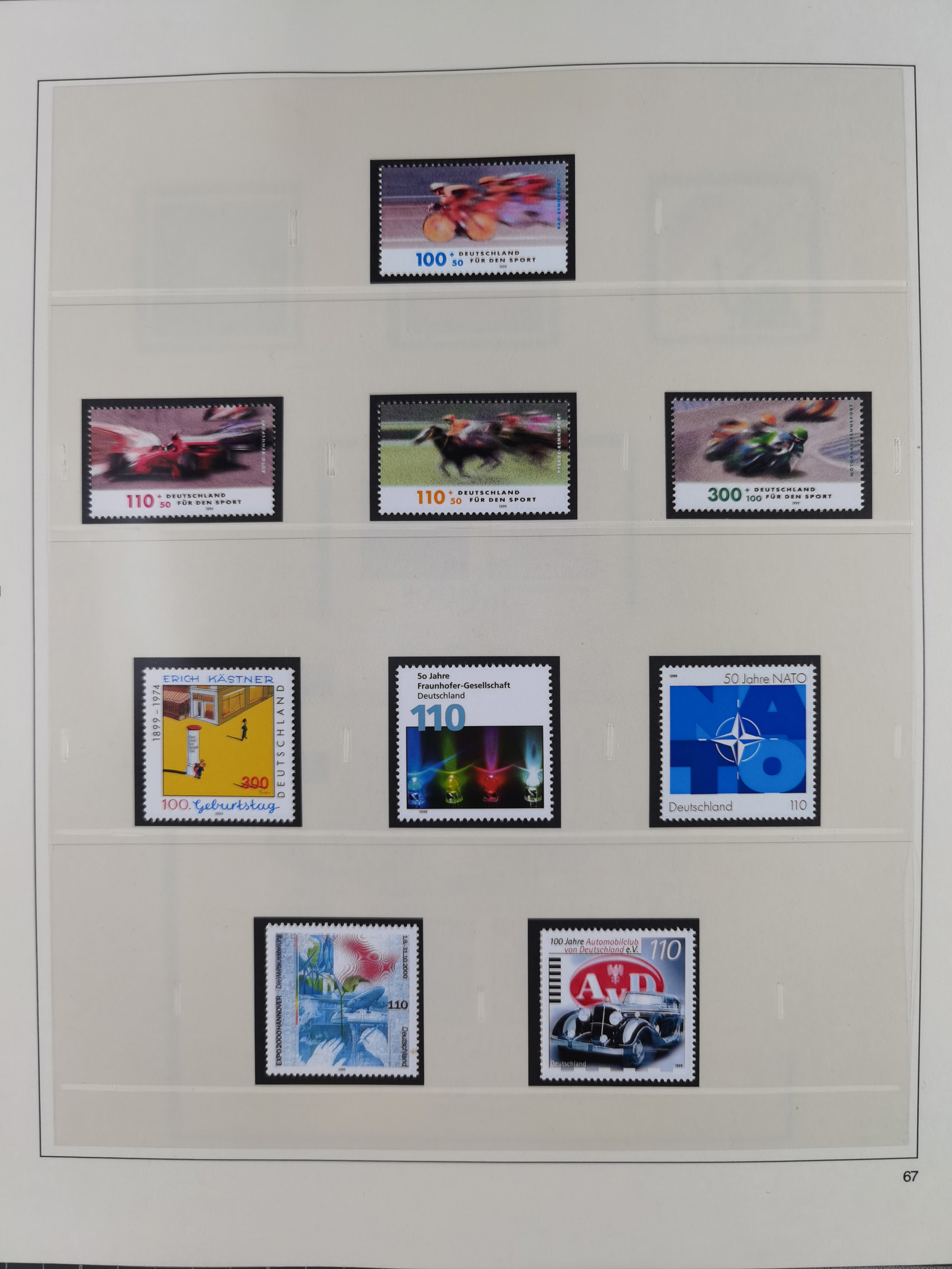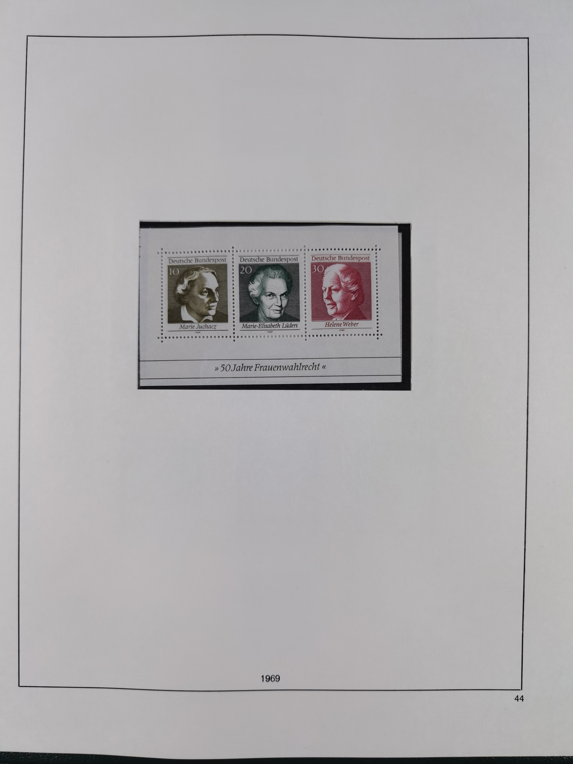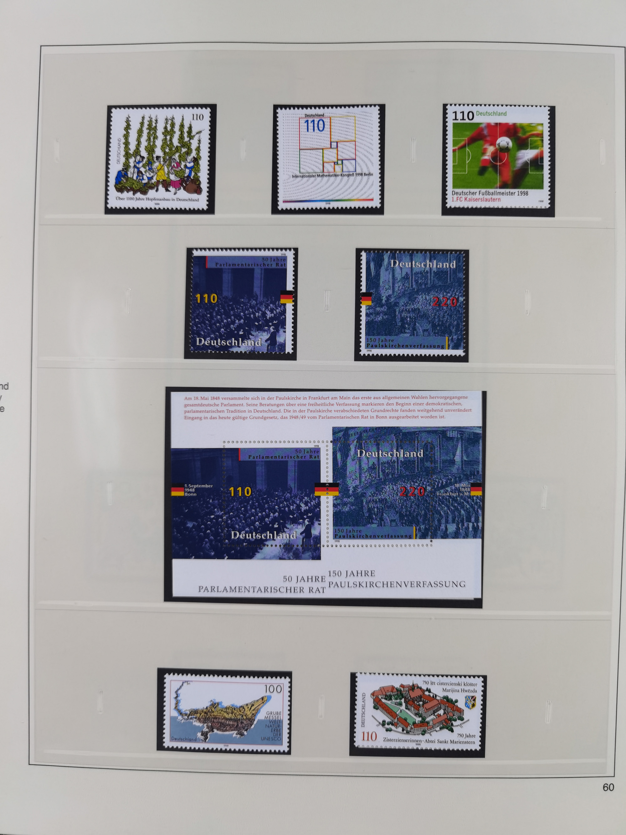 1948/2001, vorwiegend postfrische Sammlung, dabei Bund, Berlin und DDR in den Hauptnummern augenscheinlich komplett, außerdem Französische Zone und Saarland, bis auf einen Rot-Kreuz-Block komplett, SBZ mit besseren inkl. Blockausgaben, Bizone inkl. 52 Werte usw., wenige Werte ungebraucht bzw. nachgummiert, meist gute Erhaltung