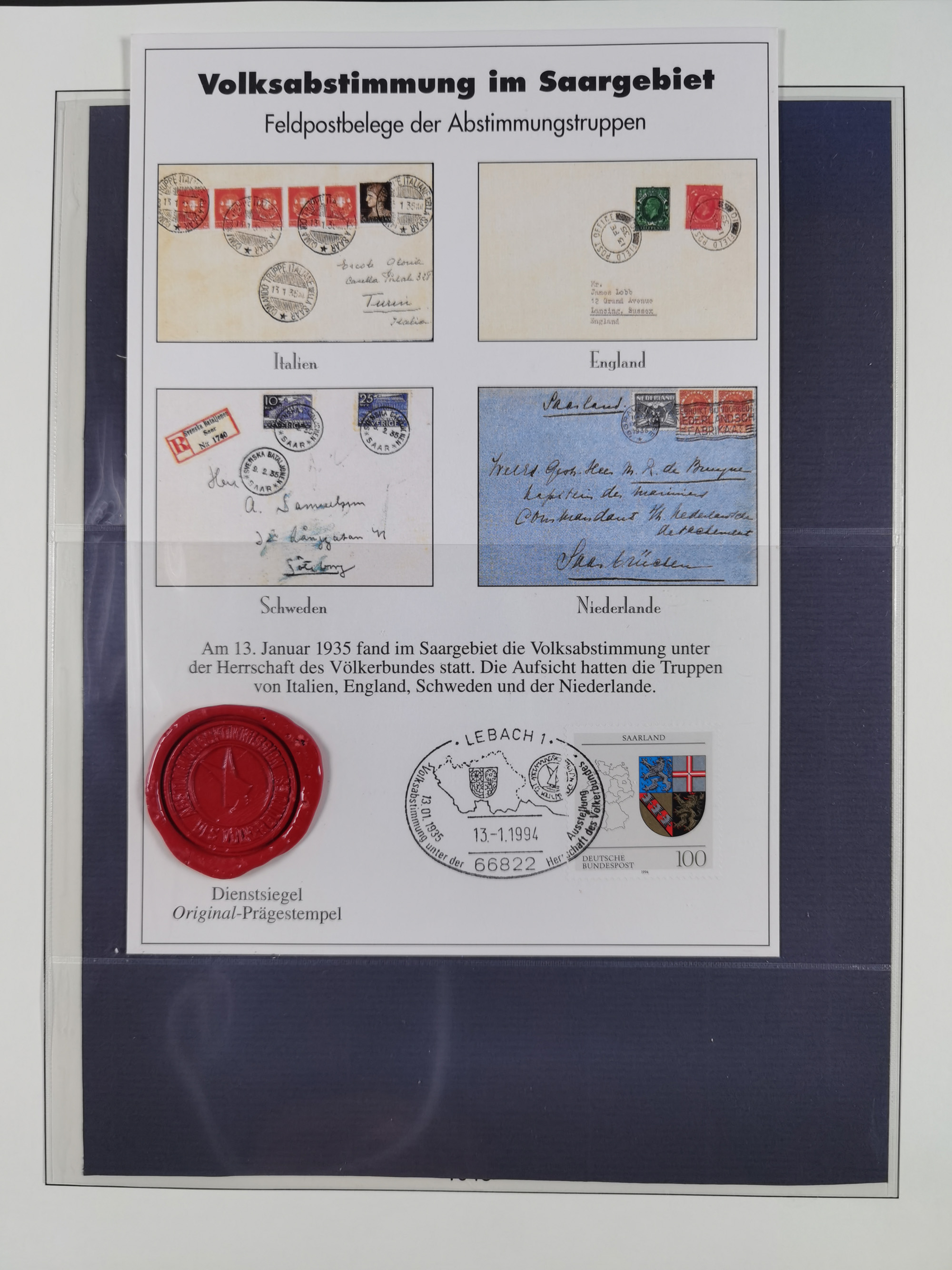 1912/61, Heimatsammlung Saarland mit Flugpost 1912, Erstflu Saarbrücken-Paris 1928, Firmenlochung, Feldpost, Einladungskarte zur Hochzeit 1911, sechs Originalfotographien zur Photoreportage ‘Trampus’ aus den 30er Jahren