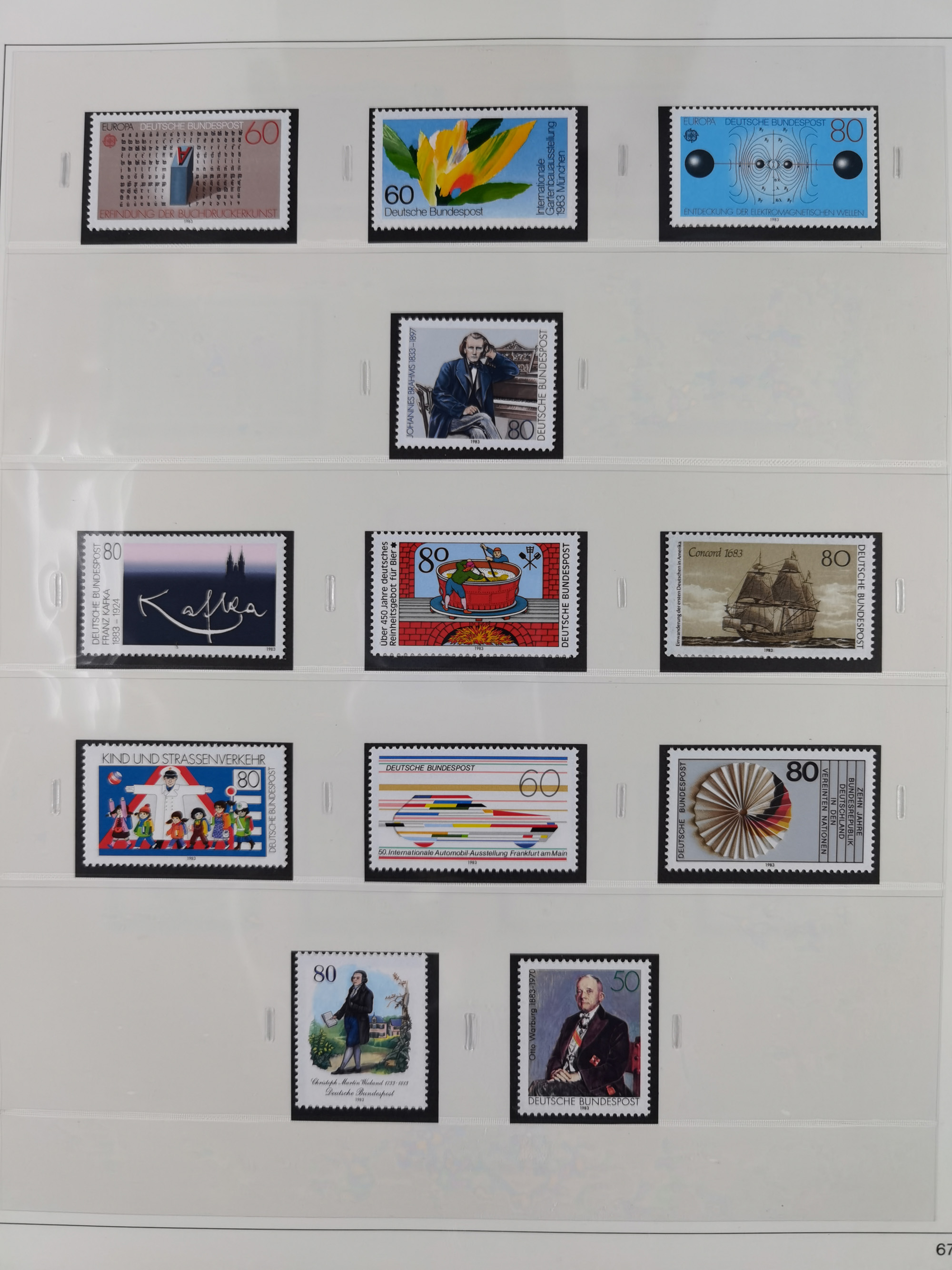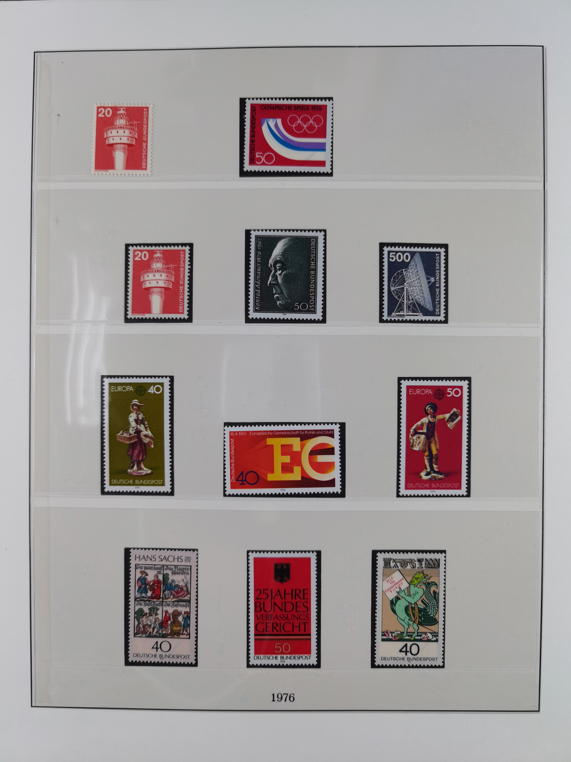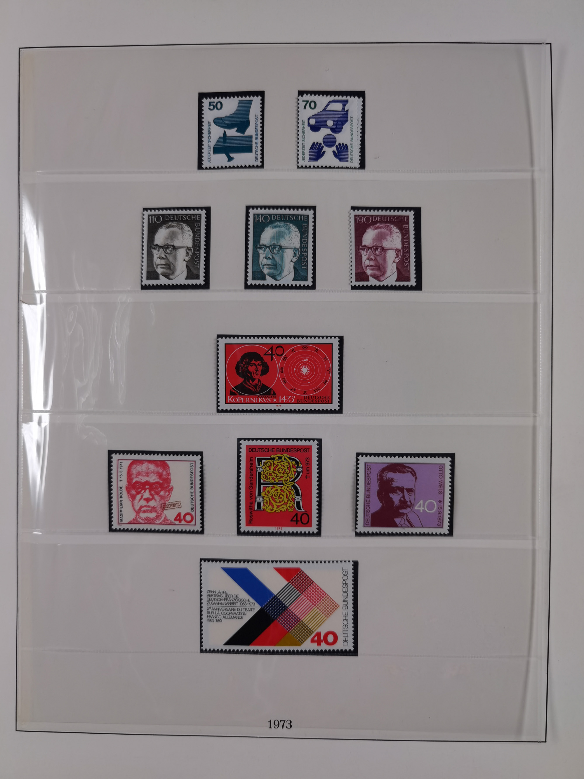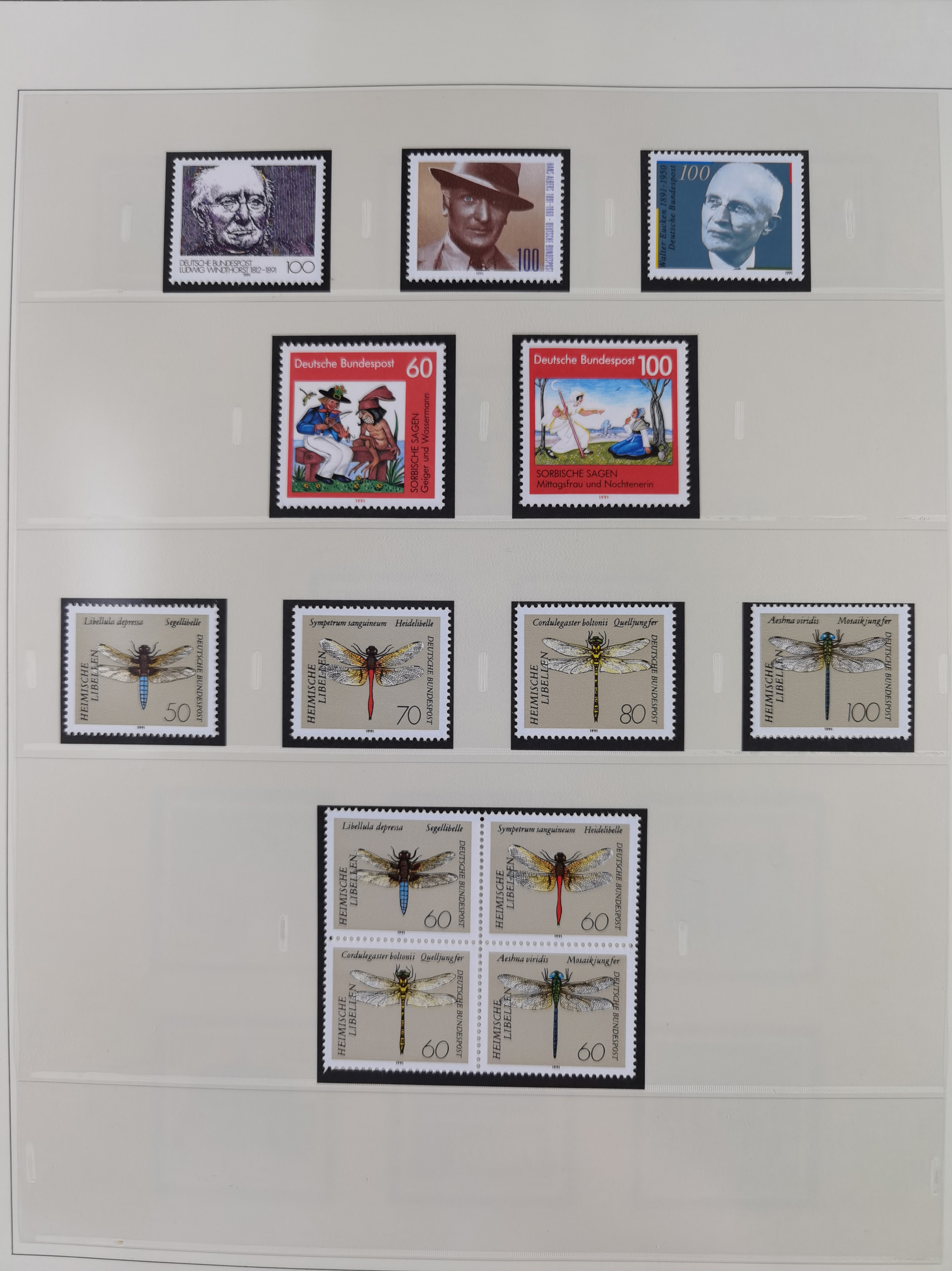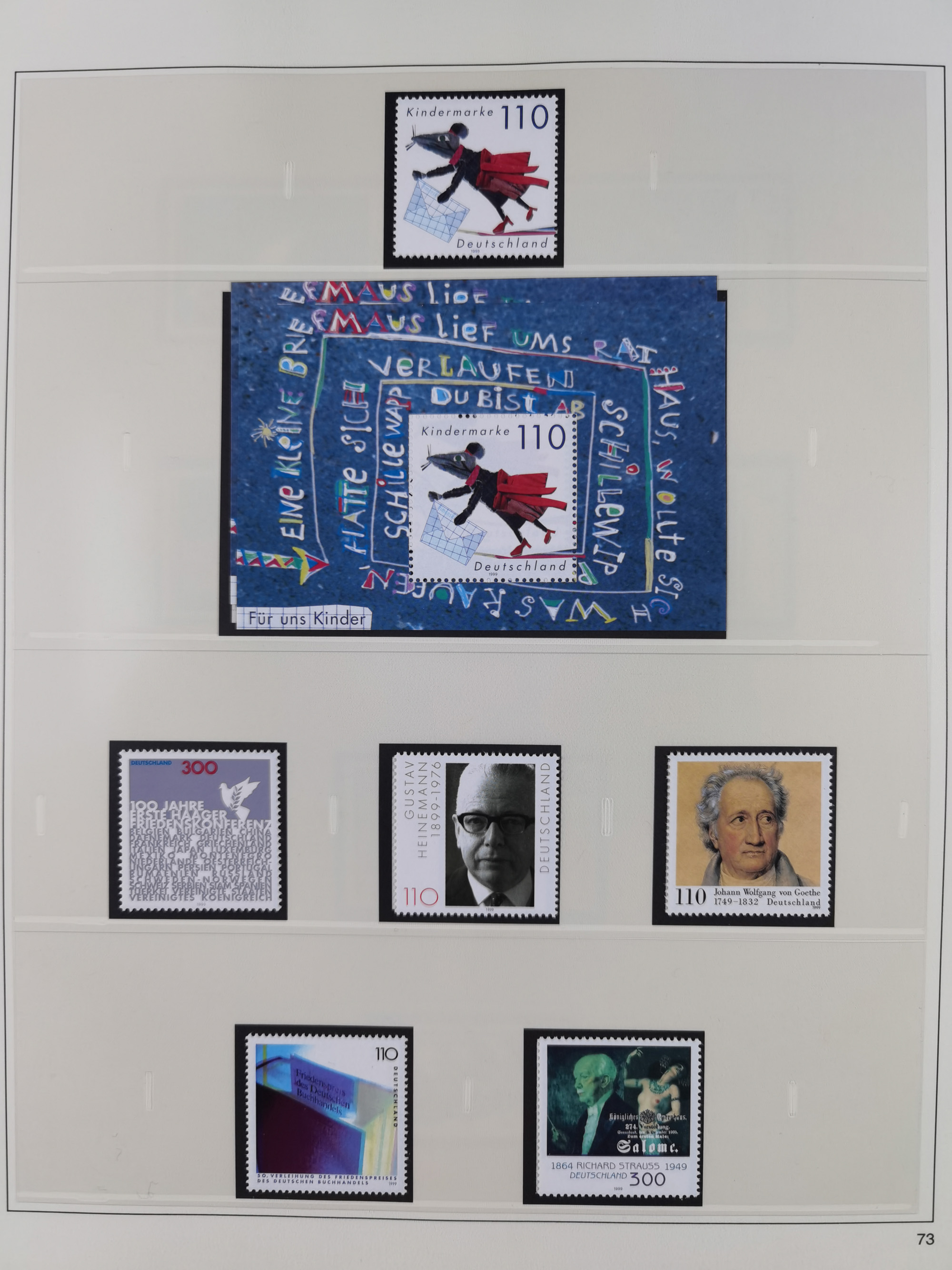 1948/2024, in den Hauptnummern komplette, fast ausschließlich postfrische Sammlungen, dabei Berlin 1948-90 (Bl. 1 mit Haftstellen), DDR 1949-90 und Bundesrepublik inkl. Posthornsatz postfrisch, waagerechte Paare ab Heuss, sowie selbstklebende Marken aus Markensets und Bogen, ATM, Zusammendrucke, Rollenmarken (5er-Streifen), Markenheftchen und Markensets ab 1969 bis 2023 komplett, enormer Frankaturwert, ferner einige Steckbücher mit gestempelten Marken, in vier großen Kartons