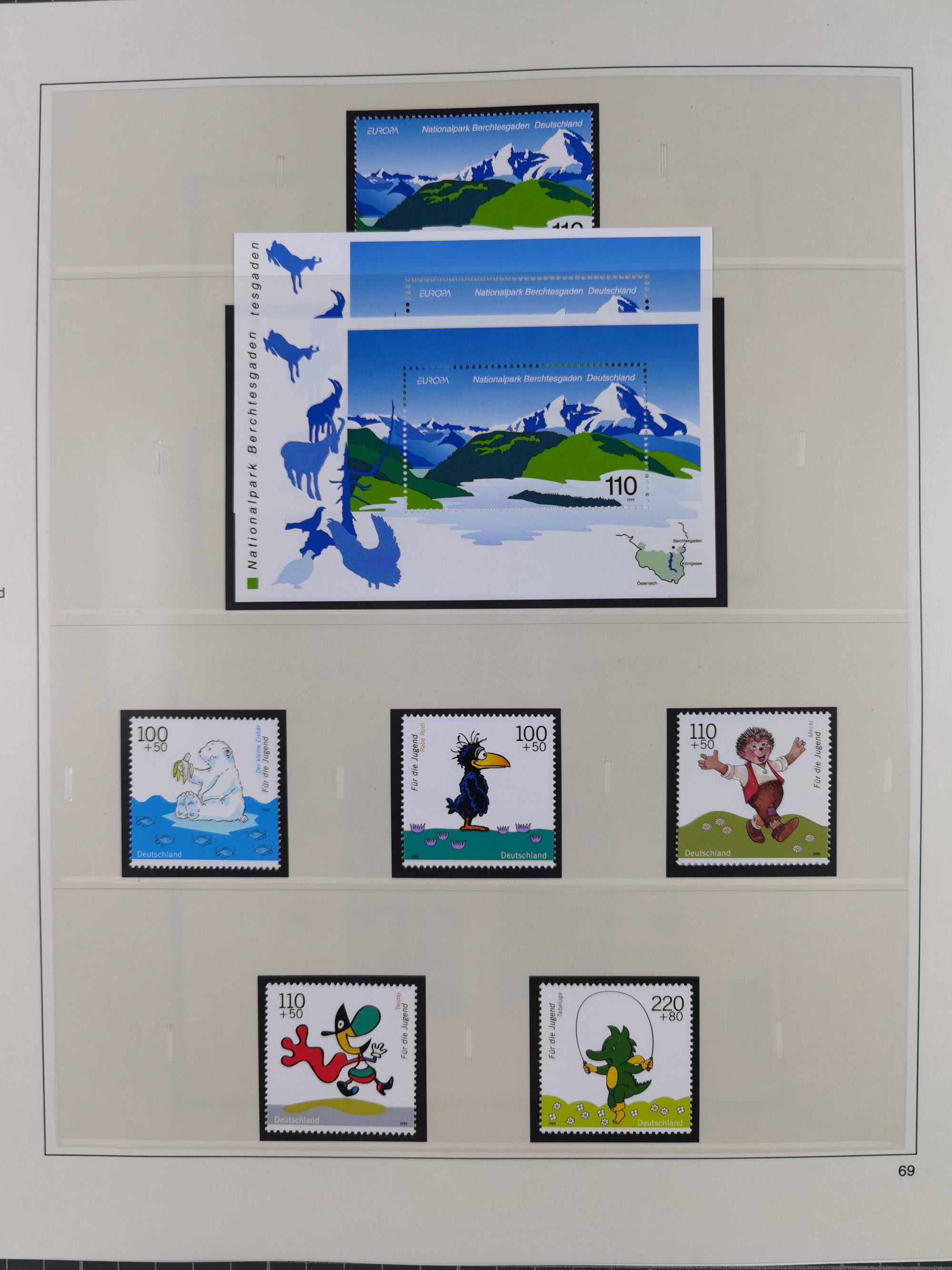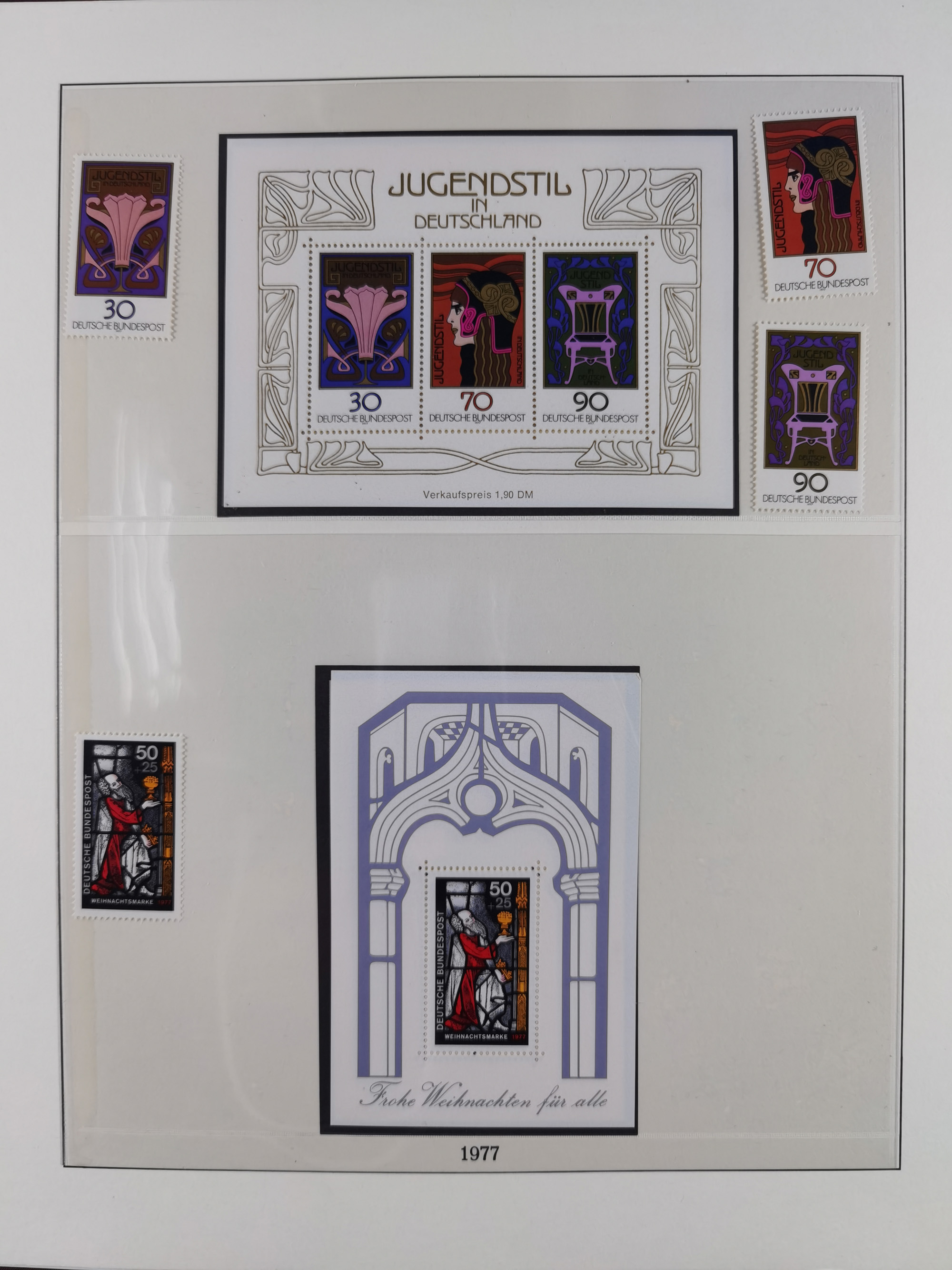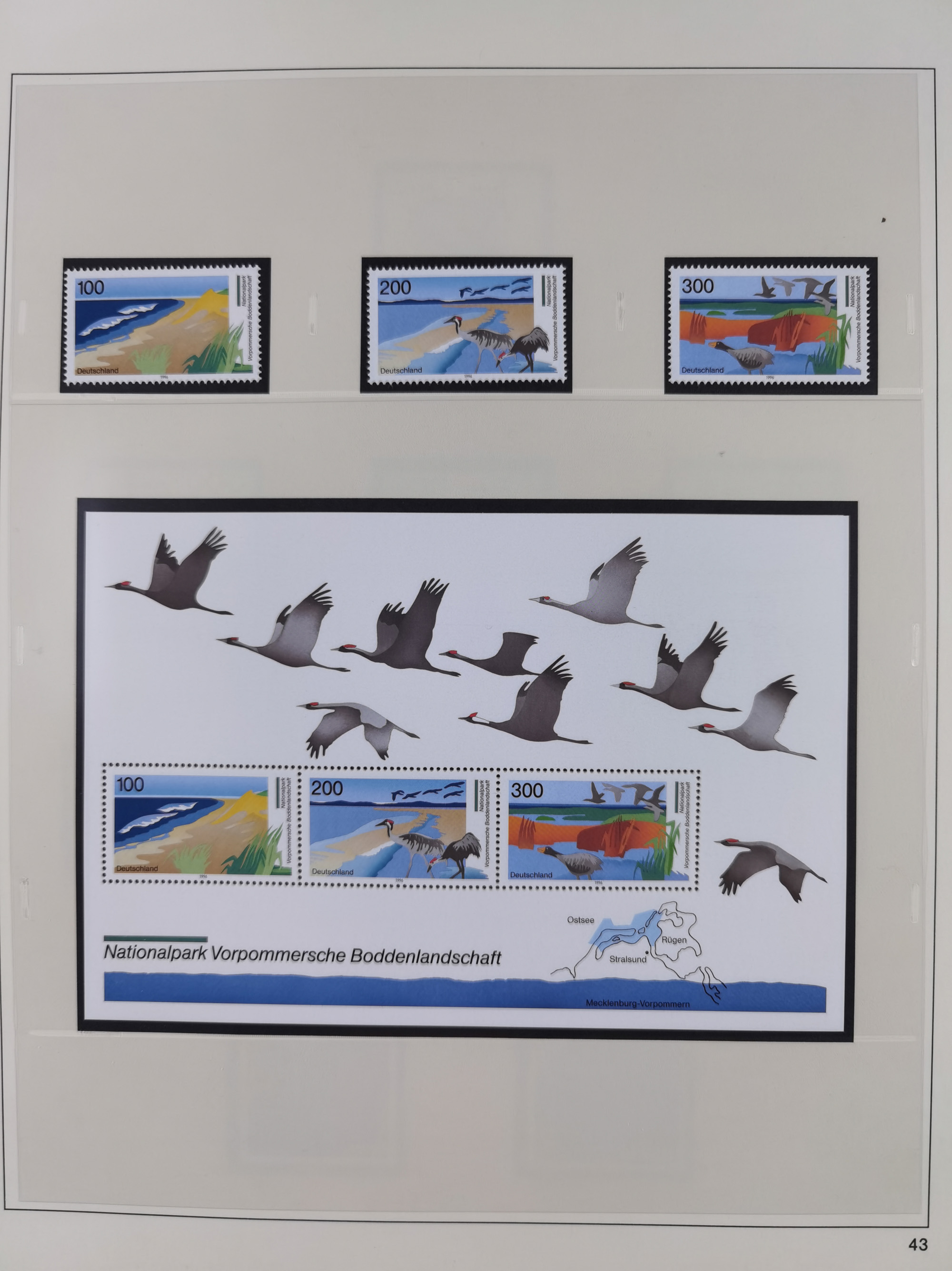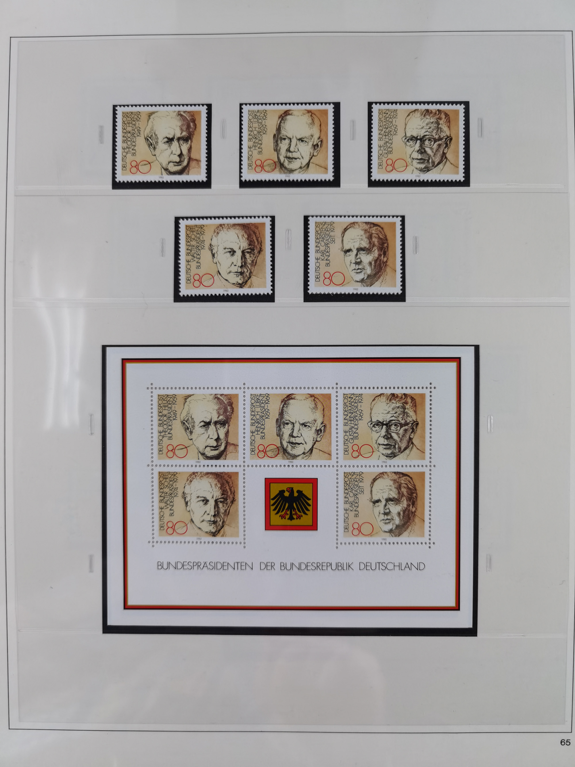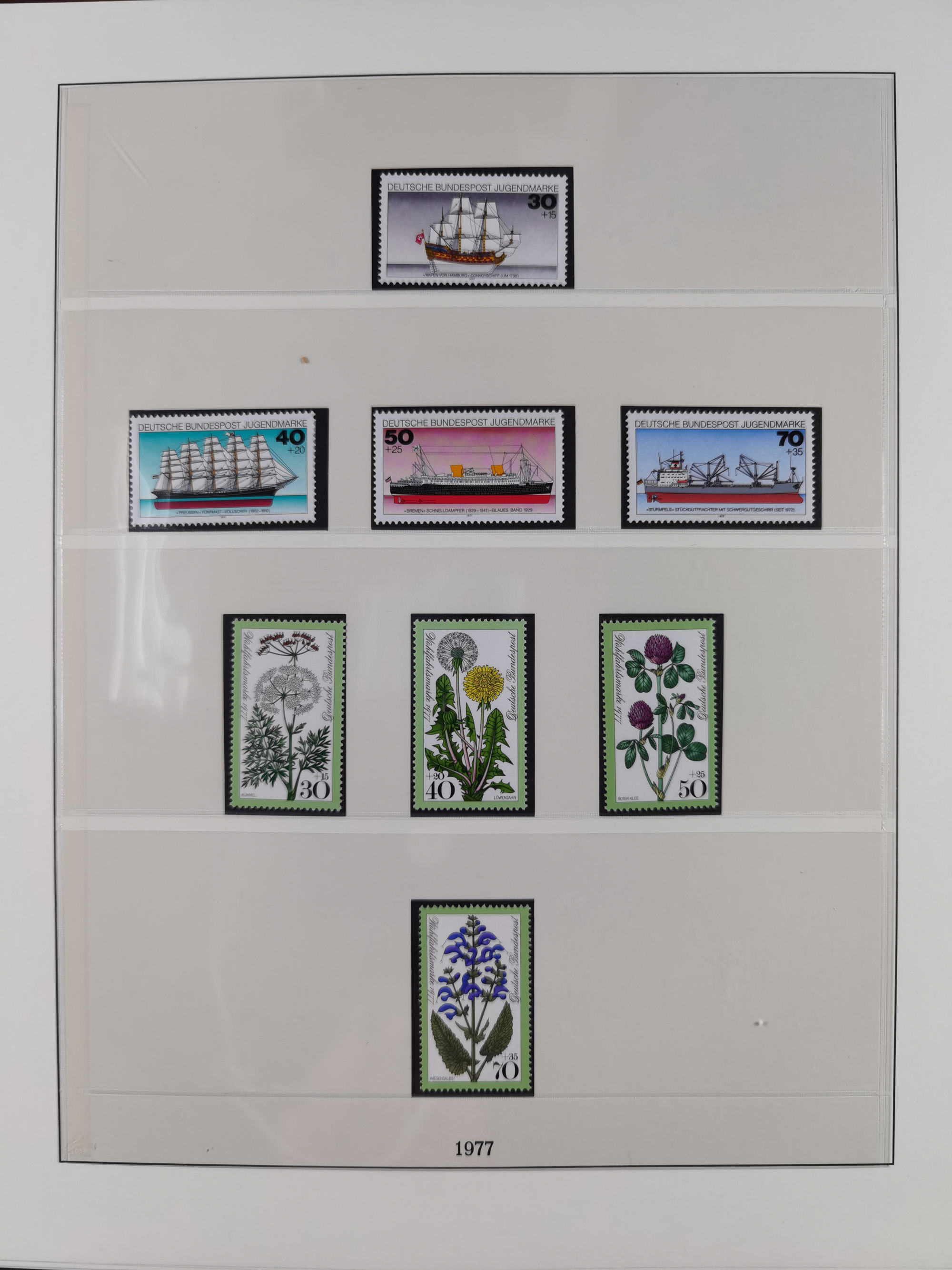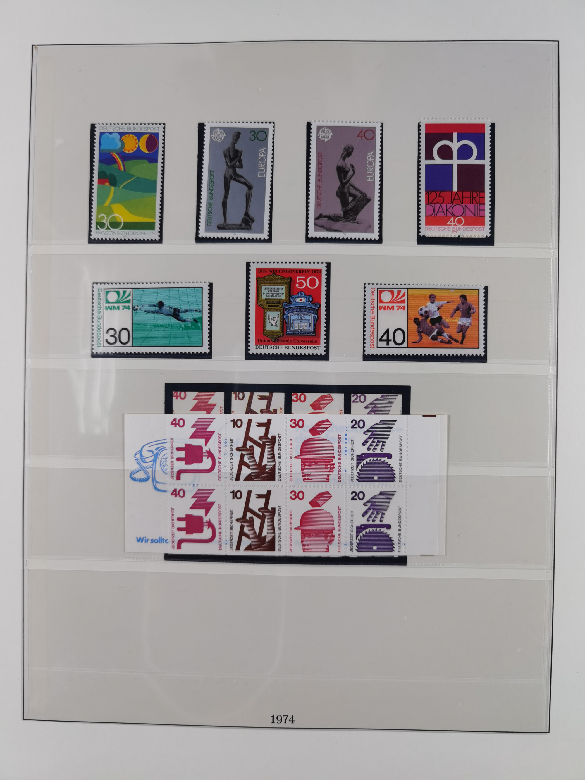 1948/2024, in den Hauptnummern komplette, fast ausschließlich postfrische Sammlungen, dabei Berlin 1948-90 (Bl. 1 mit Haftstellen), DDR 1949-90 und Bundesrepublik inkl. Posthornsatz postfrisch, waagerechte Paare ab Heuss, sowie selbstklebende Marken aus Markensets und Bogen, ATM, Zusammendrucke, Rollenmarken (5er-Streifen), Markenheftchen und Markensets ab 1969 bis 2023 komplett, enormer Frankaturwert, ferner einige Steckbücher mit gestempelten Marken, in vier großen Kartons