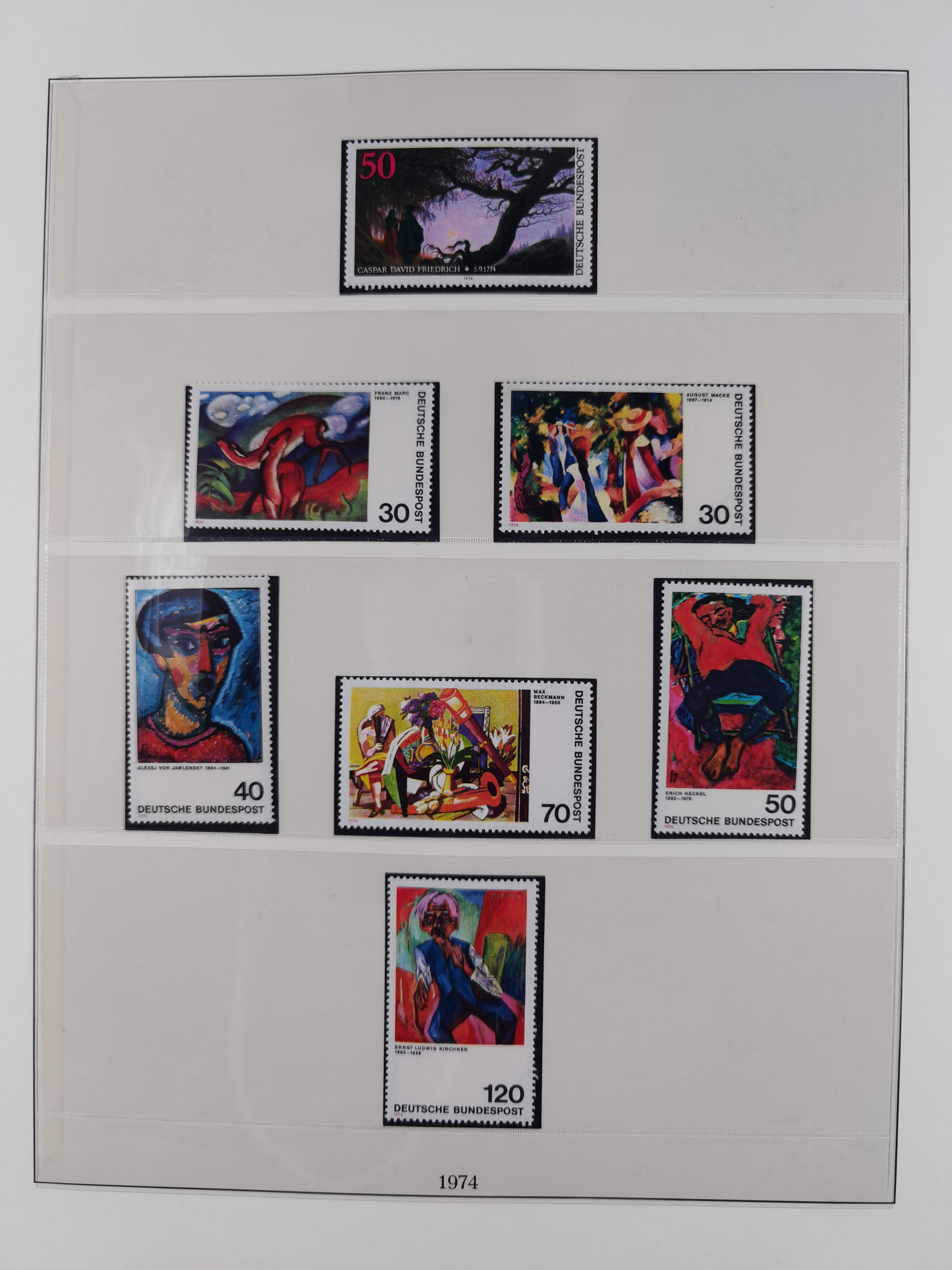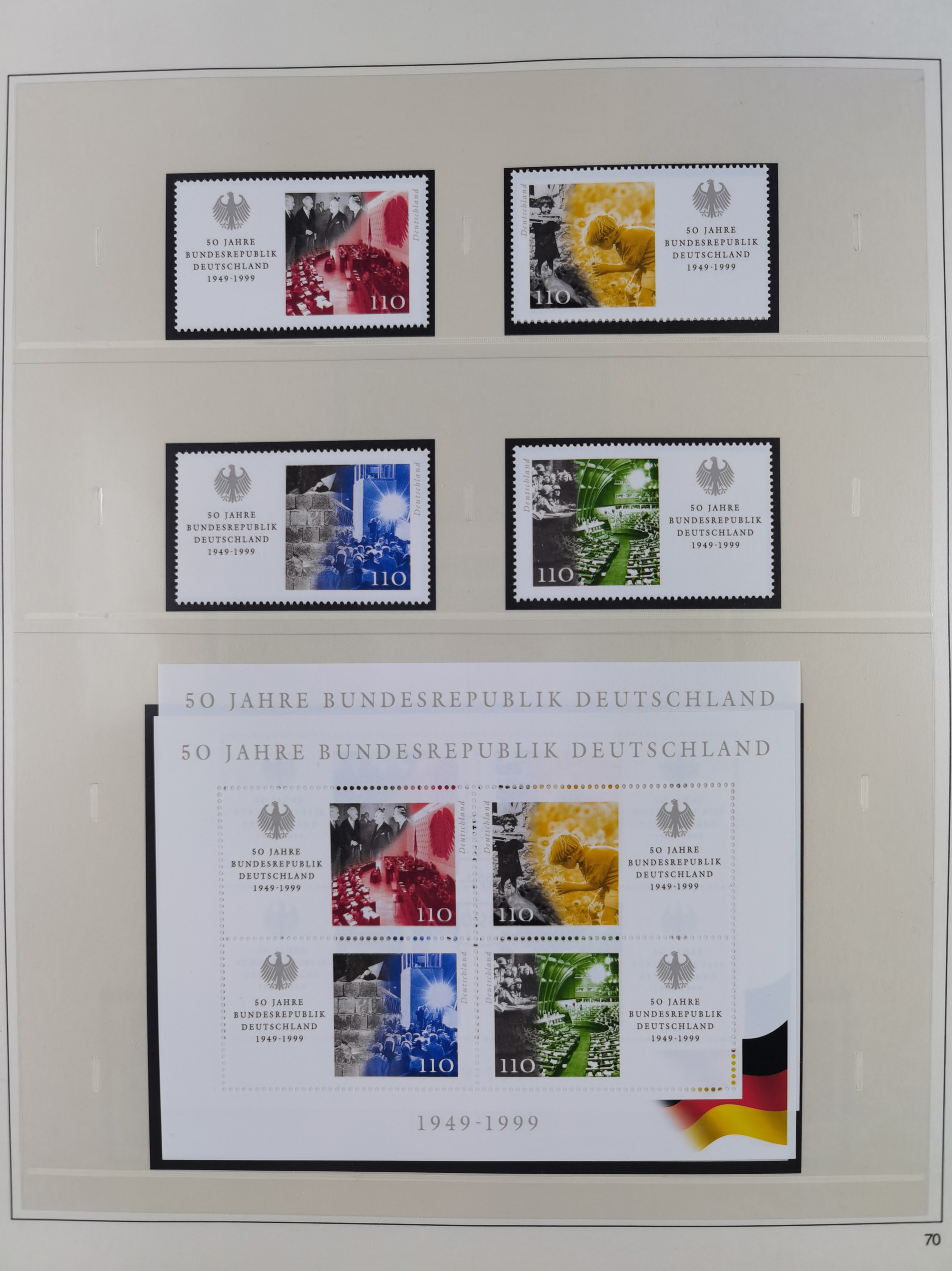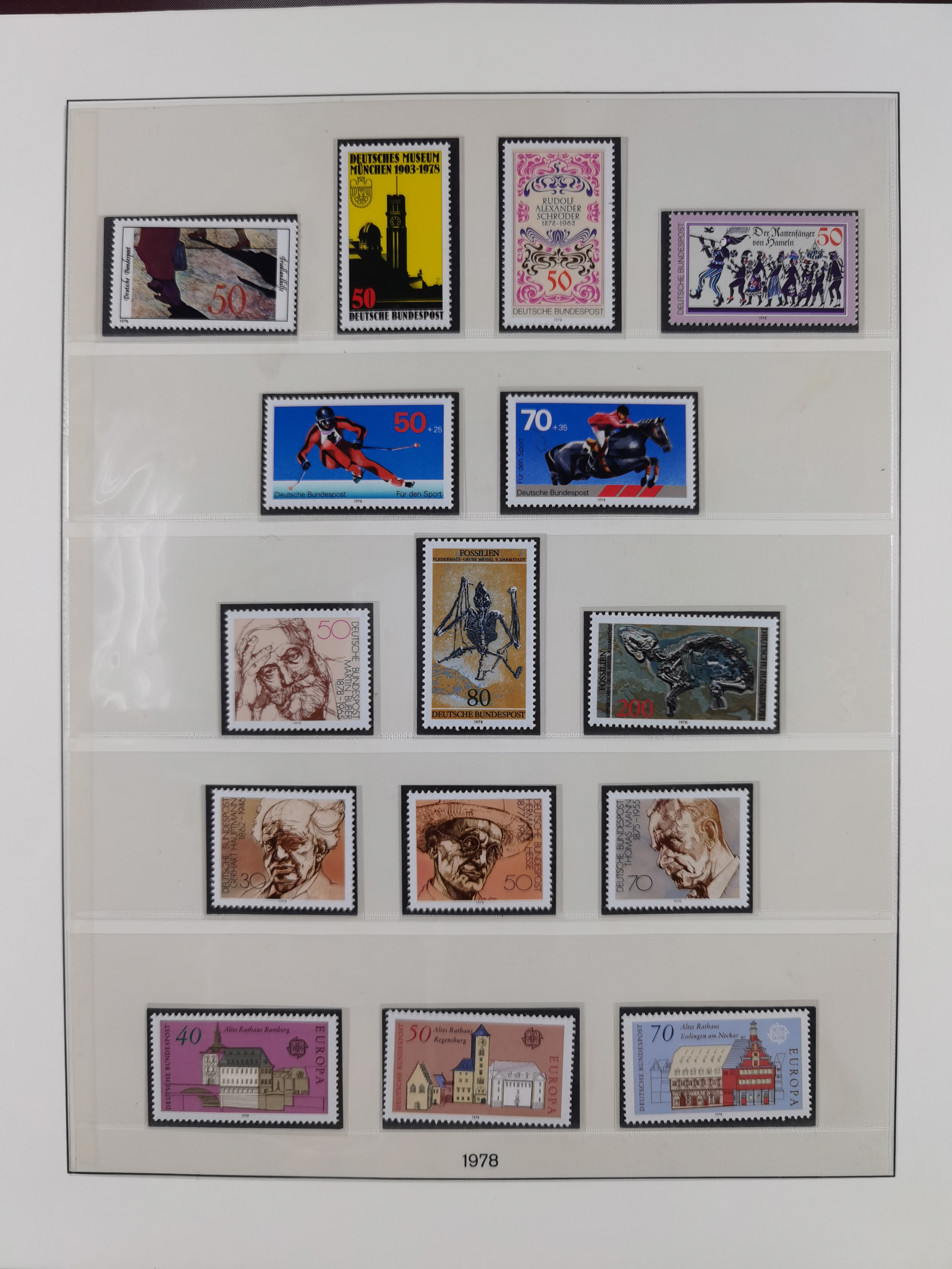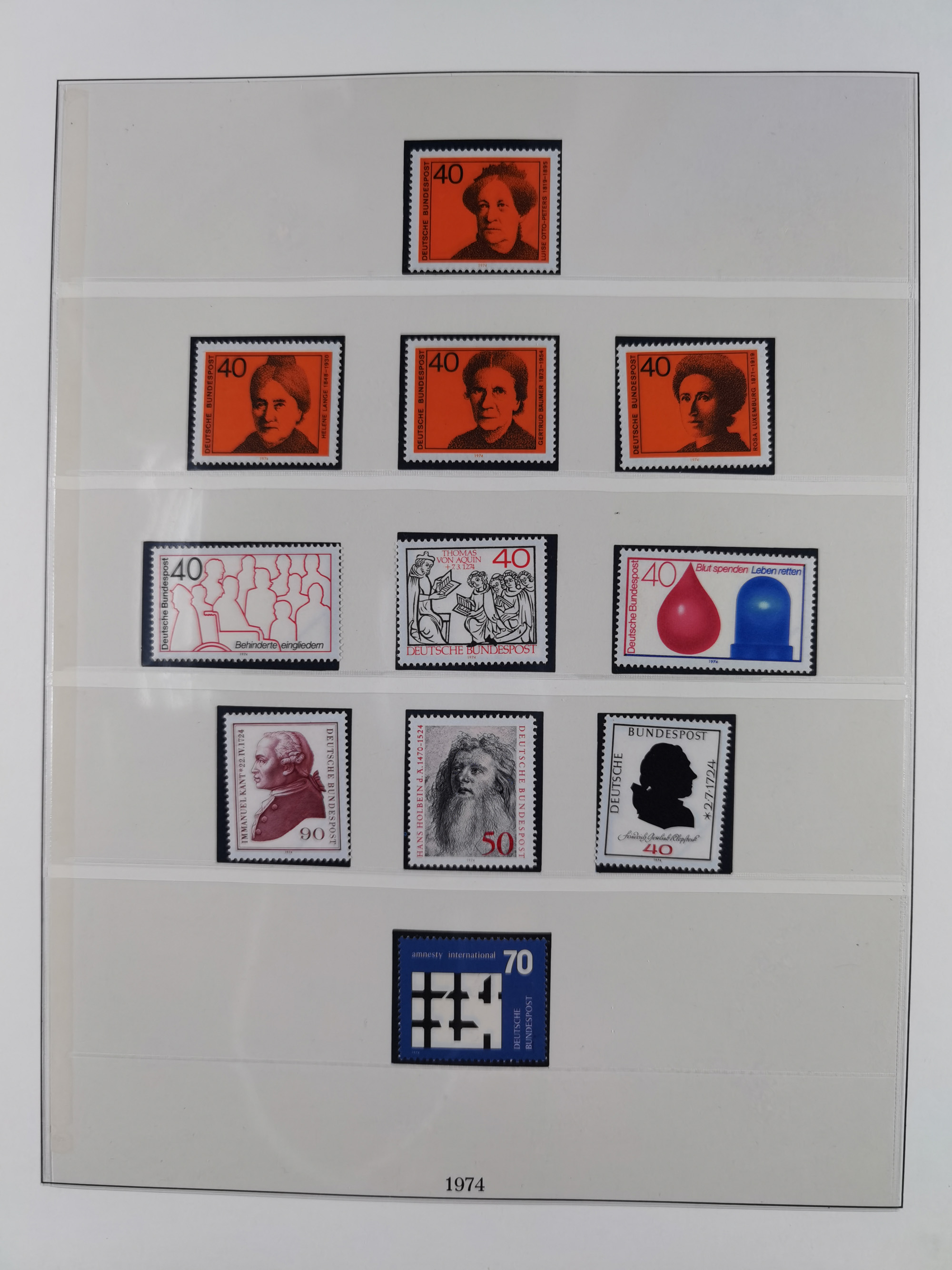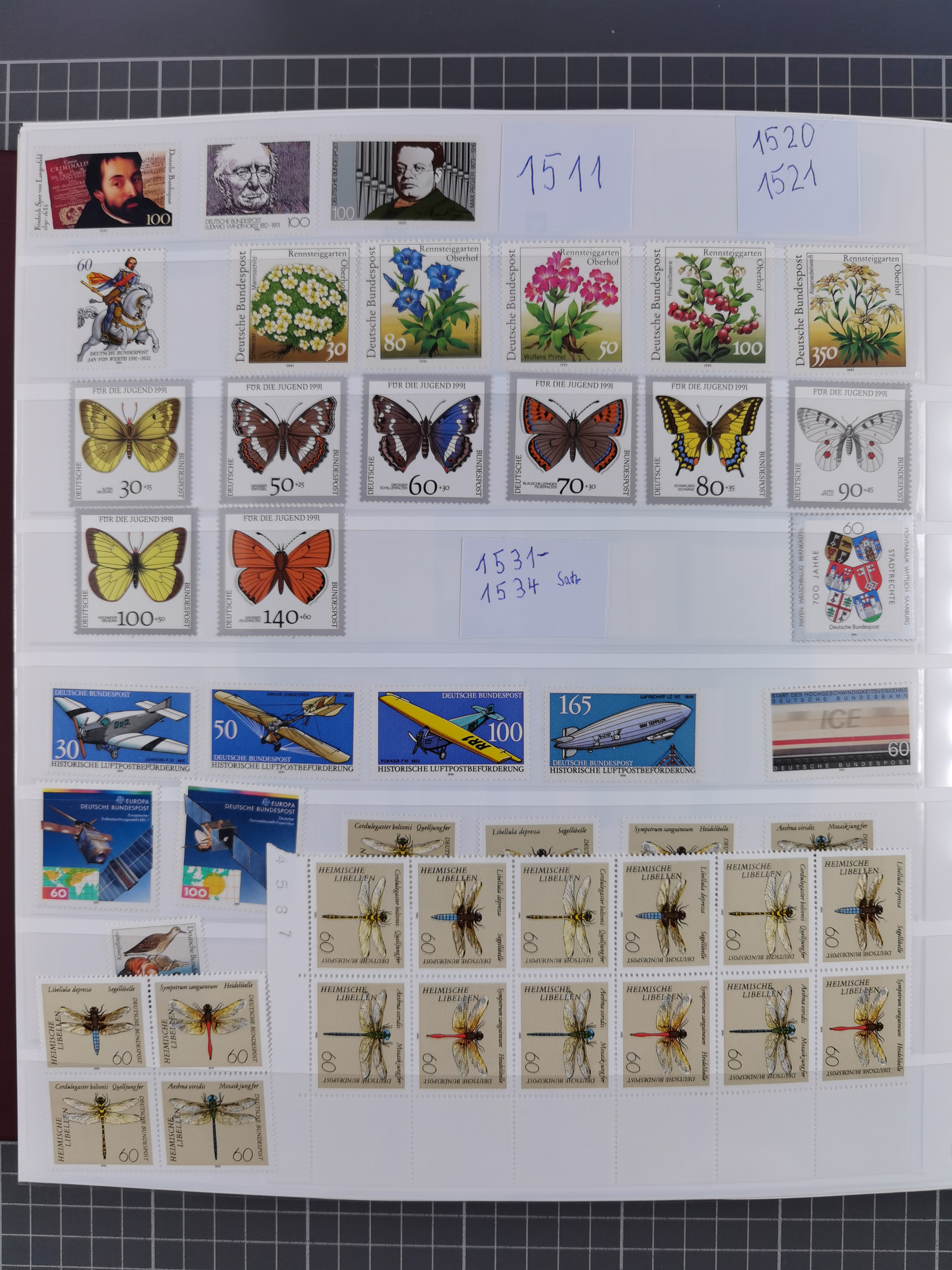 1948/2024, in den Hauptnummern komplette, fast ausschließlich postfrische Sammlungen, dabei Berlin 1948-90 (Bl. 1 mit Haftstellen), DDR 1949-90 und Bundesrepublik inkl. Posthornsatz postfrisch, waagerechte Paare ab Heuss, sowie selbstklebende Marken aus Markensets und Bogen, ATM, Zusammendrucke, Rollenmarken (5er-Streifen), Markenheftchen und Markensets ab 1969 bis 2023 komplett, enormer Frankaturwert, ferner einige Steckbücher mit gestempelten Marken, in vier großen Kartons