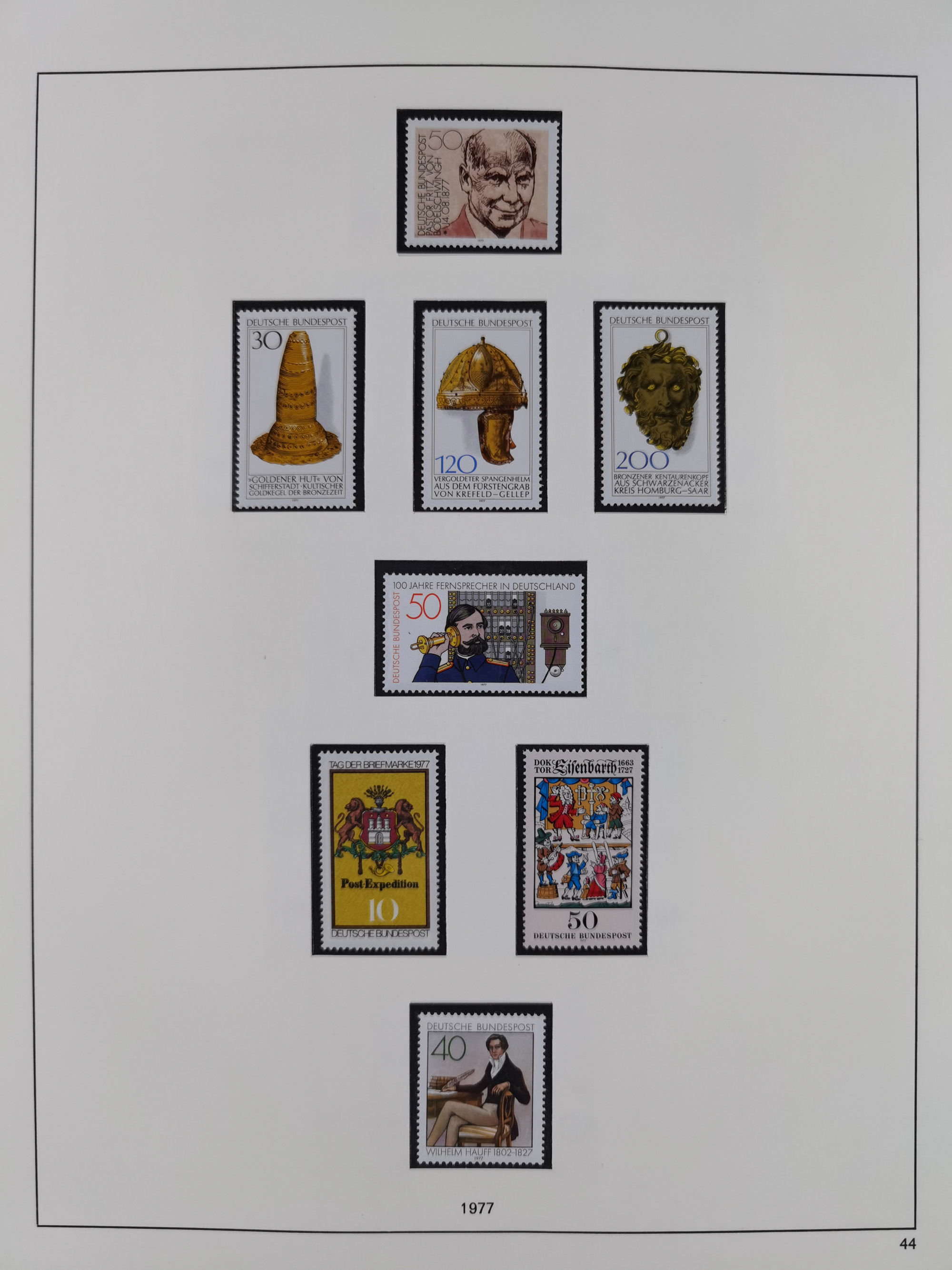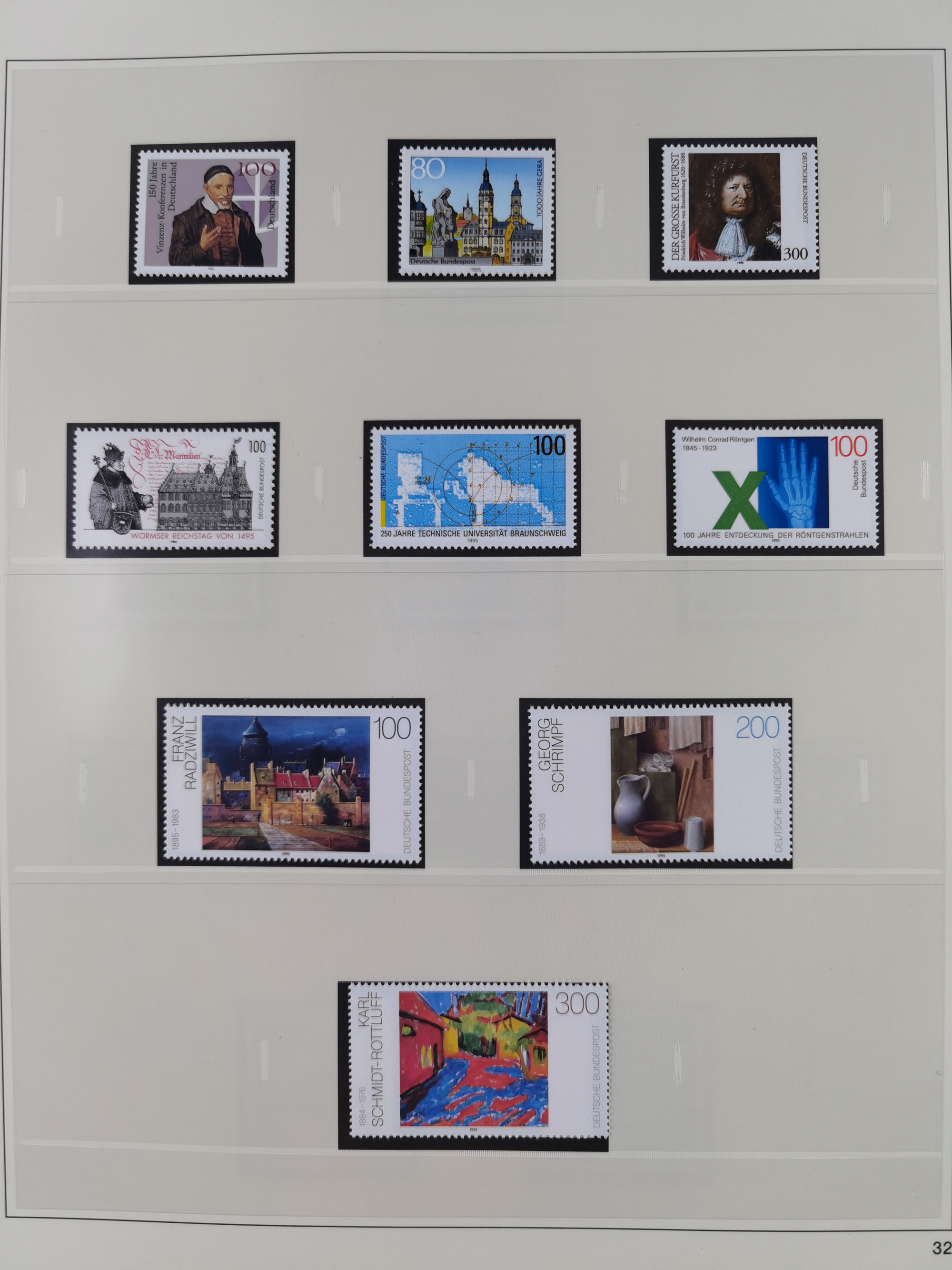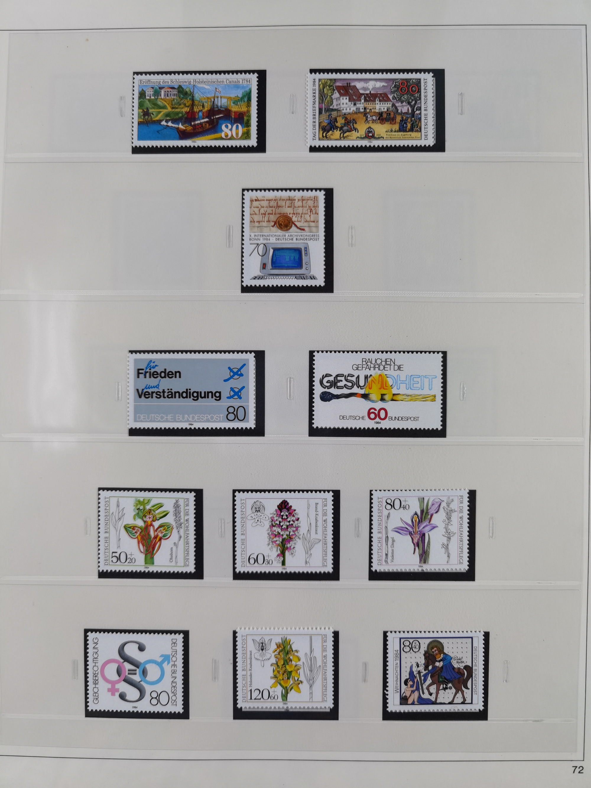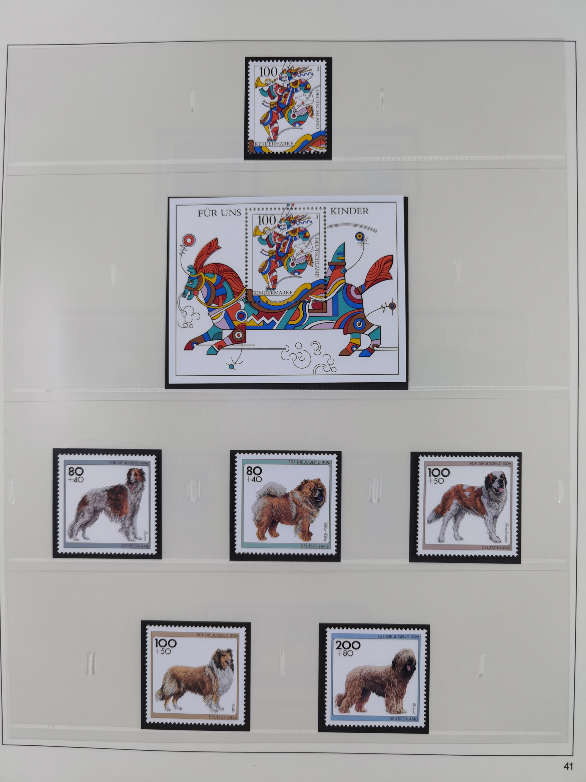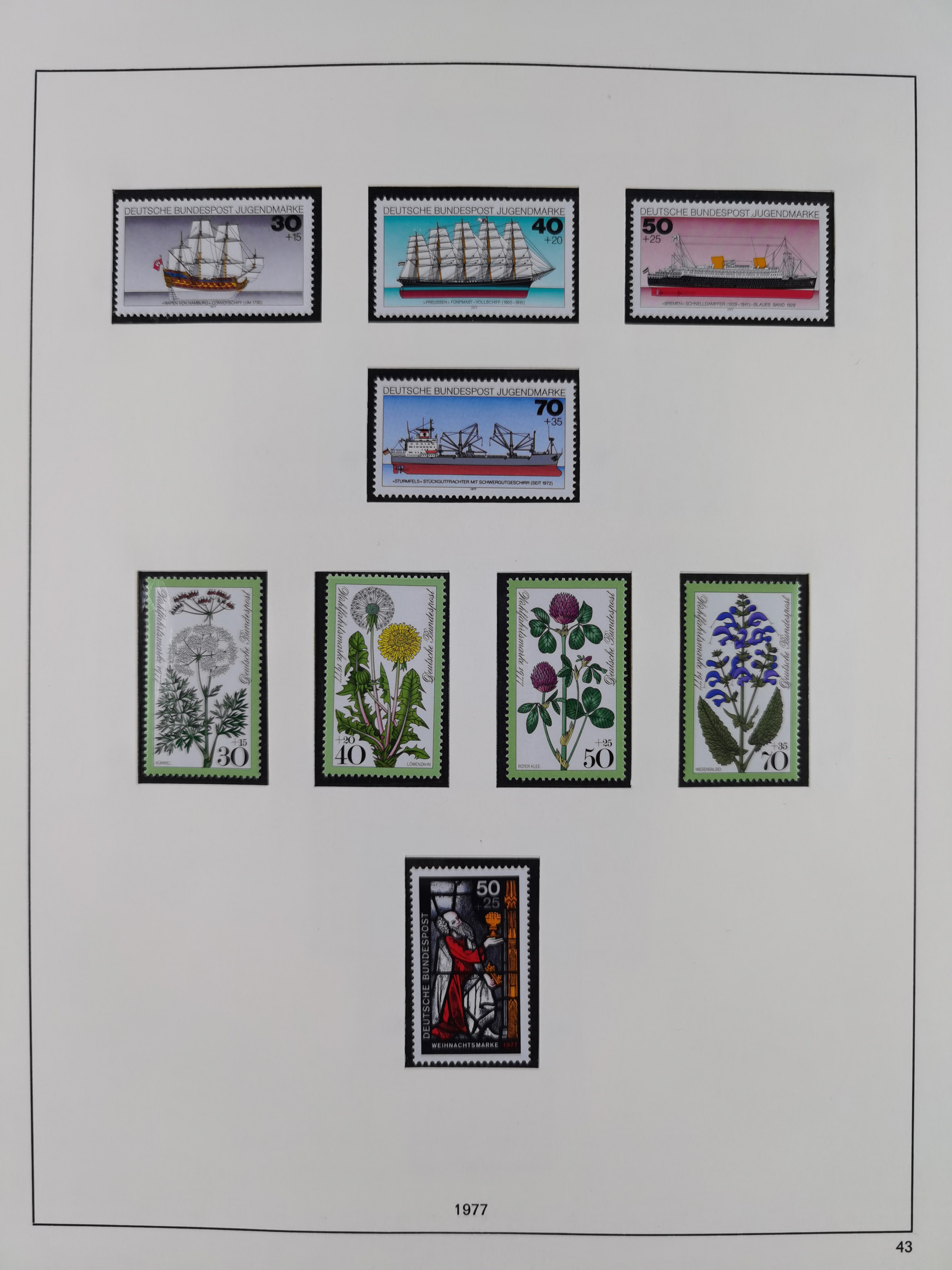 1948/2024, in den Hauptnummern komplette, fast ausschließlich postfrische Sammlungen, dabei Berlin 1948-90 (Bl. 1 mit Haftstellen), DDR 1949-90 und Bundesrepublik inkl. Posthornsatz postfrisch, waagerechte Paare ab Heuss, sowie selbstklebende Marken aus Markensets und Bogen, ATM, Zusammendrucke, Rollenmarken (5er-Streifen), Markenheftchen und Markensets ab 1969 bis 2023 komplett, enormer Frankaturwert, ferner einige Steckbücher mit gestempelten Marken, in vier großen Kartons