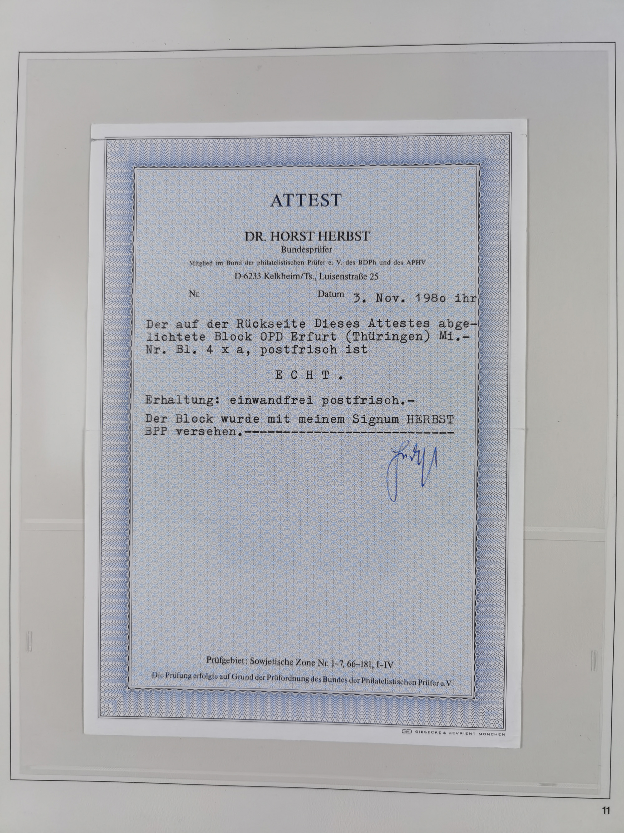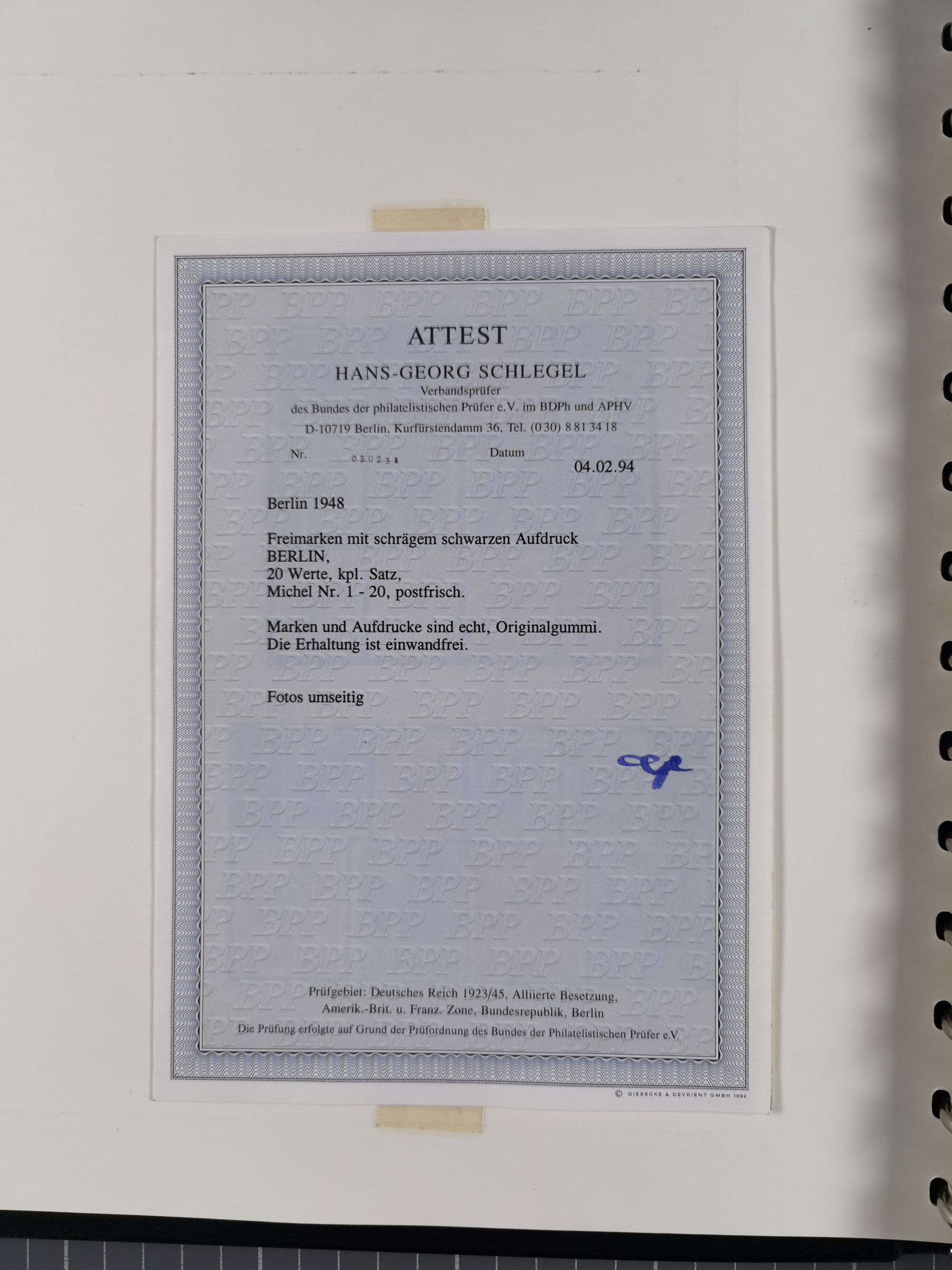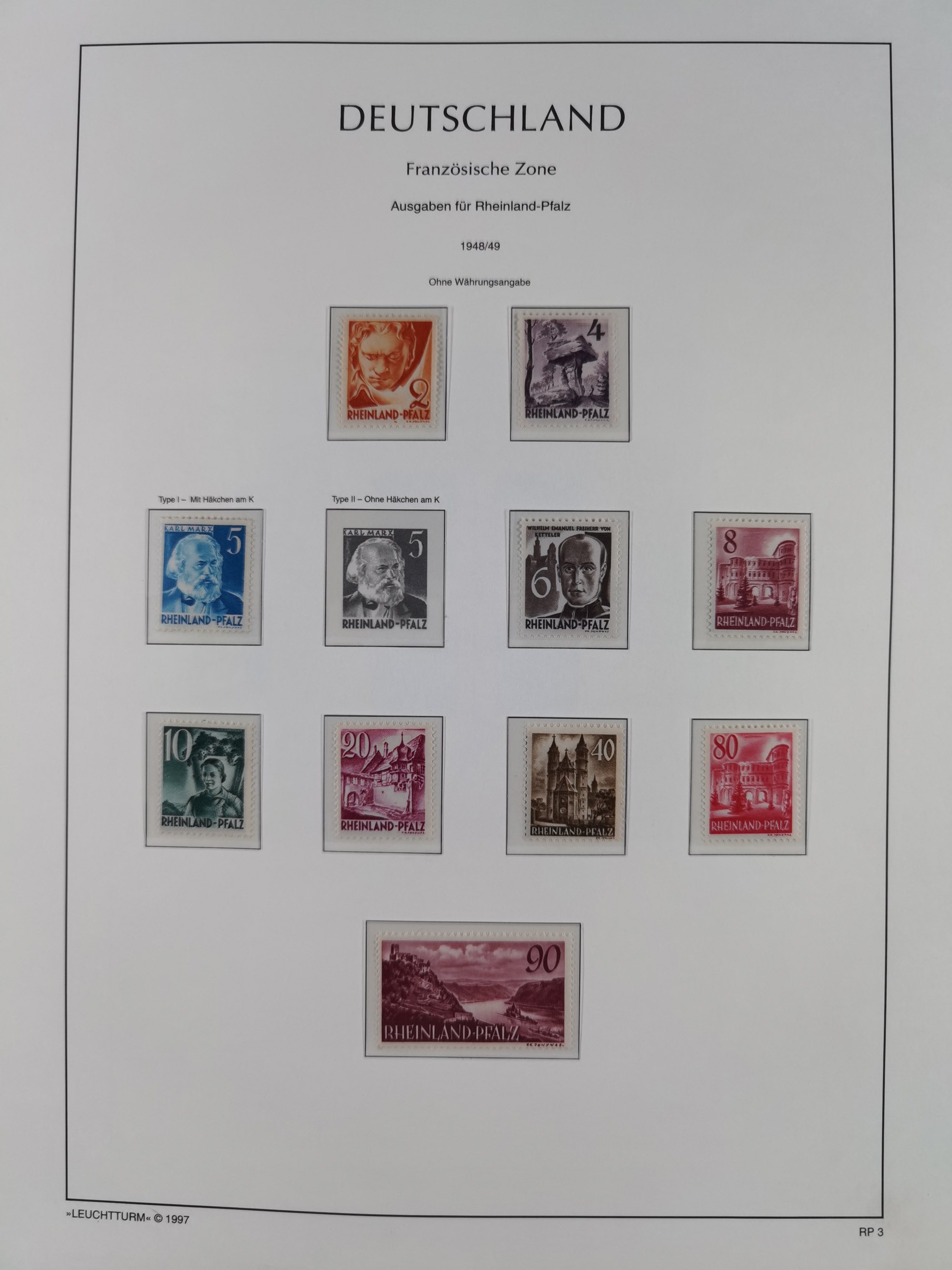 1948/51, meist postfrischer und gestempelter Bestand, angefangen ab Posthornsatz kpl. postfrisch sign. bzw. 70-90 Pfg. unsigniert mit Kurzbefund/Fotoattest Schlegel BPP, ferner 50 Pfg. (1) und 60 (2) doppelt, sowie Französische Zone mit Baden Bl. 1B gestempelt, 1A (2) und 1B postfrisch, Rheinland-Pfalz mit u.a. Mi.-Nr. 36 gestempelt sign. Schlegel BPP, 42-45A Eckrand postfrisch, Bl. 1 (2), sowie unzählige ungezähnte Werte, teils mehrfach, dabei u.a. 2U im Paar (KB D. Schlegel BPP), 7PU sign., 1yL im Paar gestempelt (KB Wehner BPP), etc., im Steckbuch