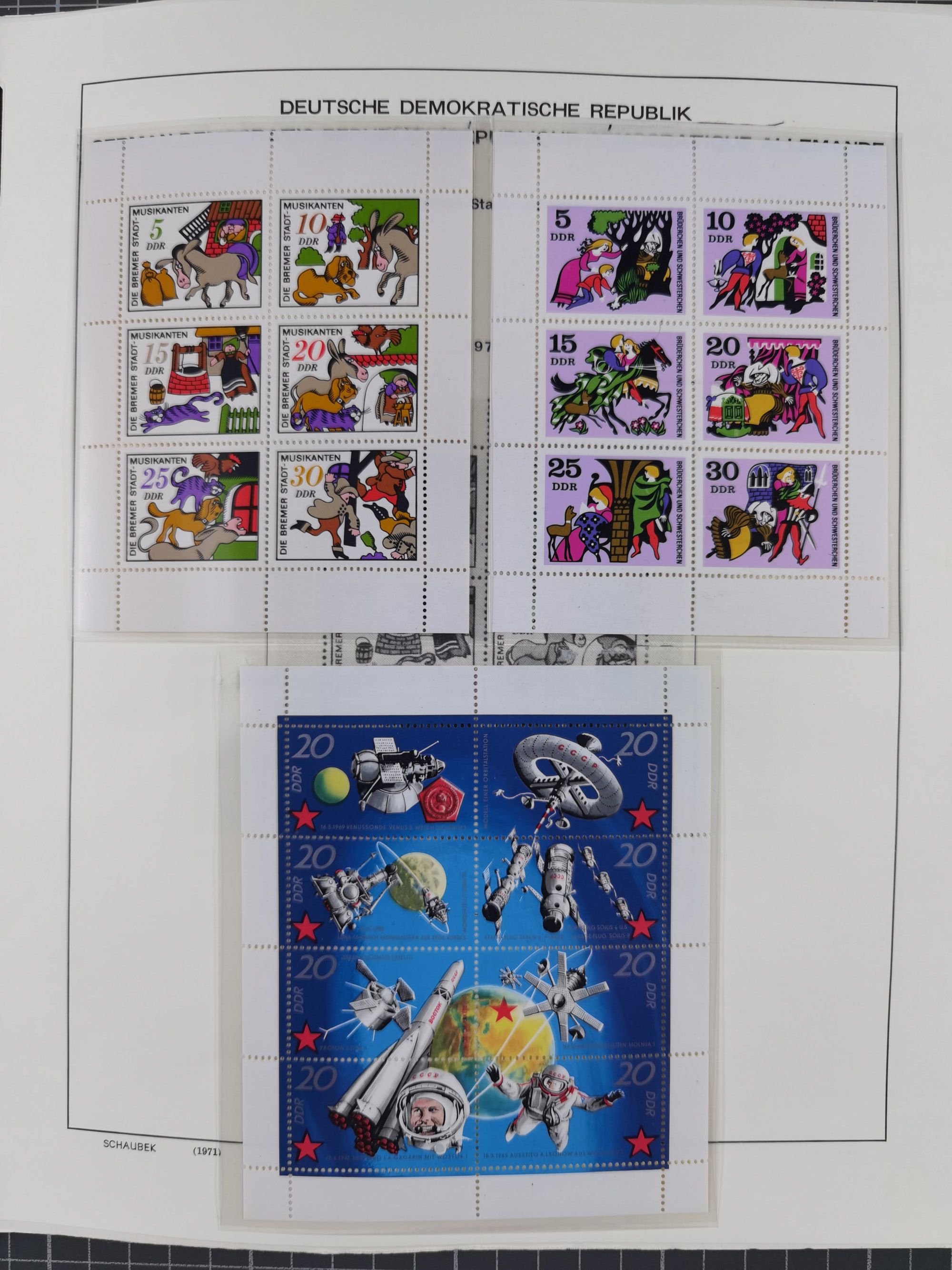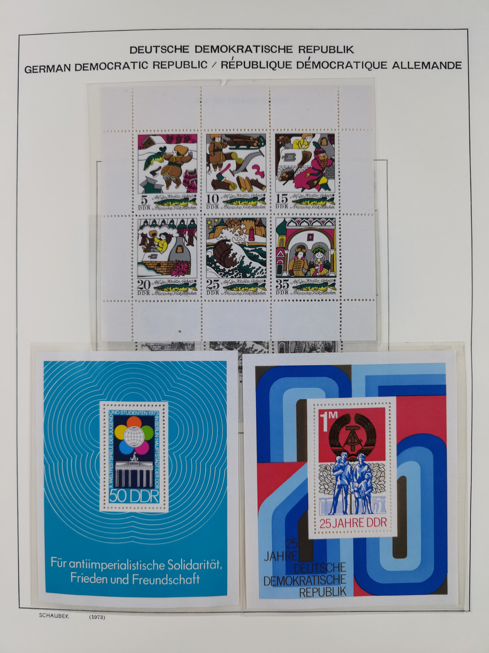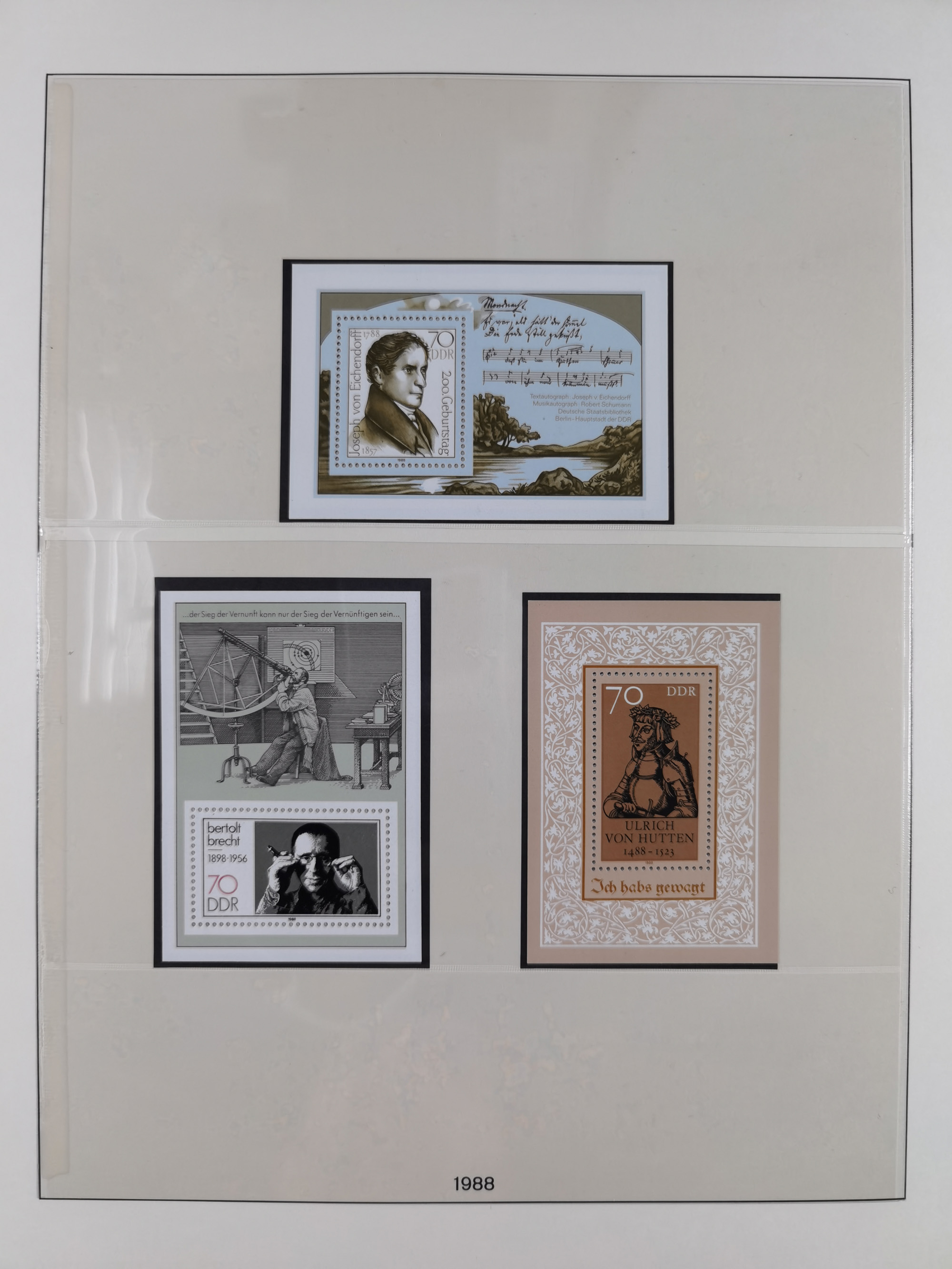 1945/2000 (ca.), meist postfrischer und gestempelter Bestand mit Blocks, Kleinbögen und später einigen 10er-Bögen, ab SBZ mit Schwerpunkt DDR, mit besseren, dabei u.a. Bl. 1t, 2t, 3A/B, 4, Bl. 6 (3), ferner ausgiebiger Teil DDR mit u.a. Bl. 7 (6) sowie auf Brief, Bl. 8 (14), 9 (9), 10 (12), 11 (12), 12 (21), 13 (11), etc., später in der Moderne meist postfrisch und in Mengen zwischen 20 und 60 Stück, ferner Mi.-Nr. 286-88 zu 3 gestempelten und 6 postfrischen Sätzen, meist gute Erhaltung, im Karton