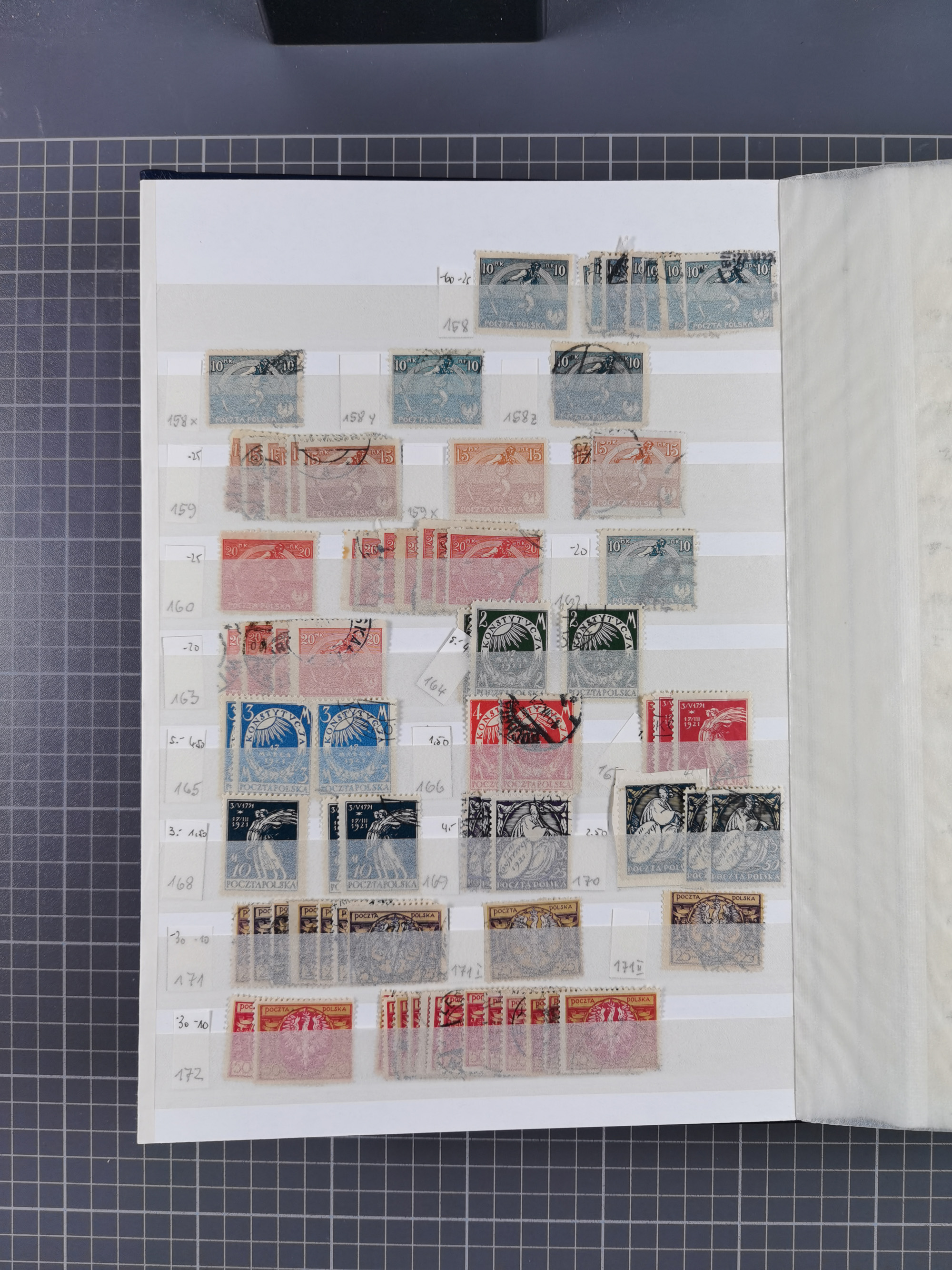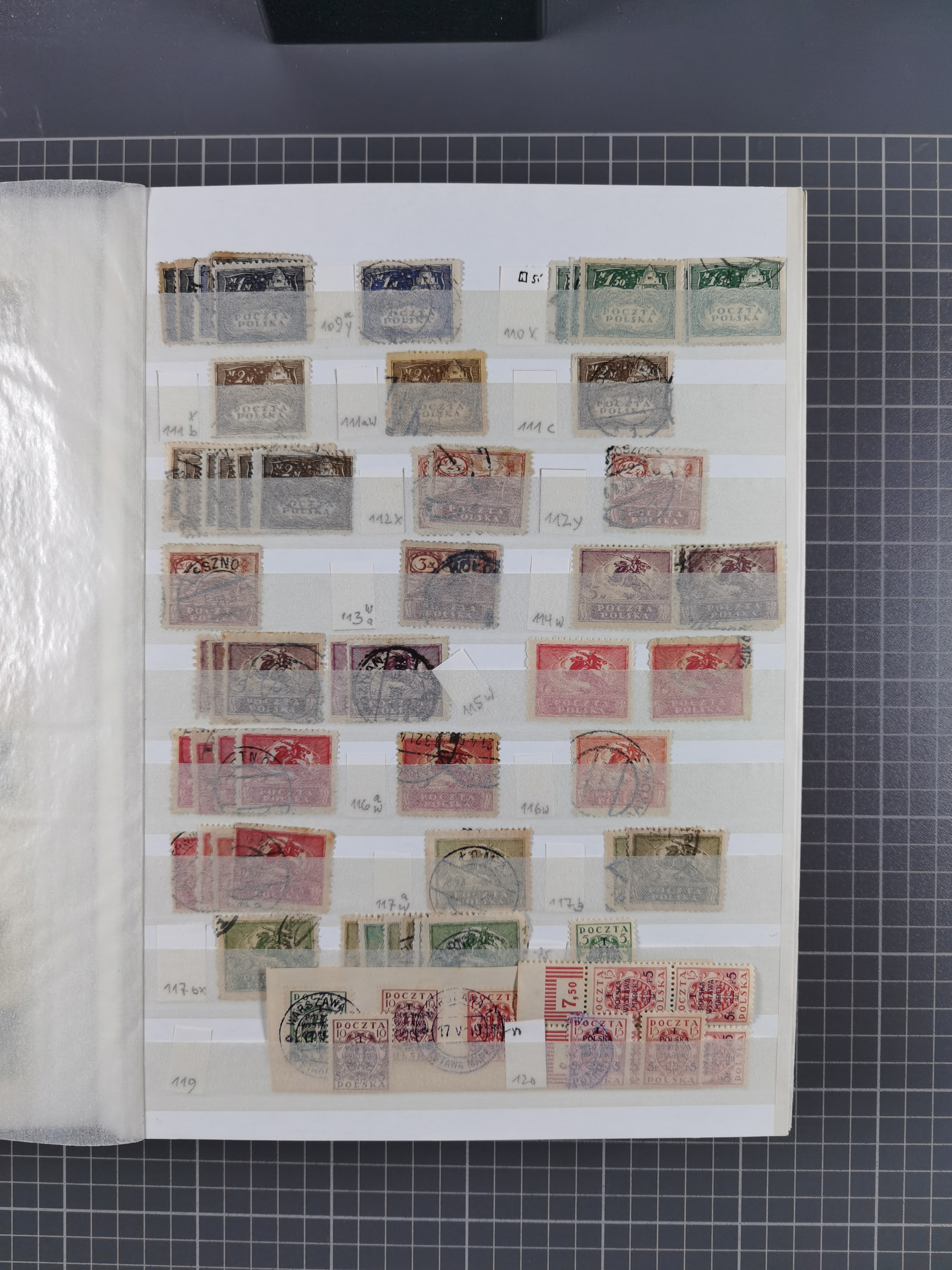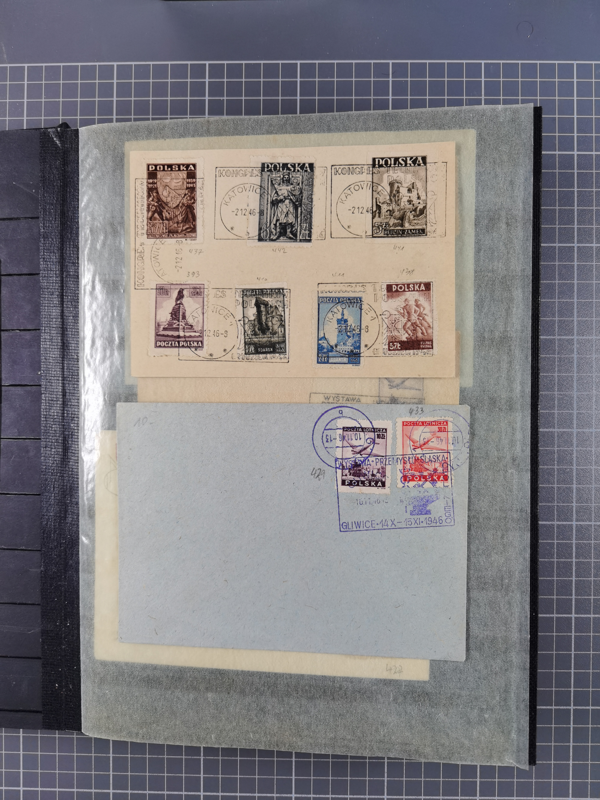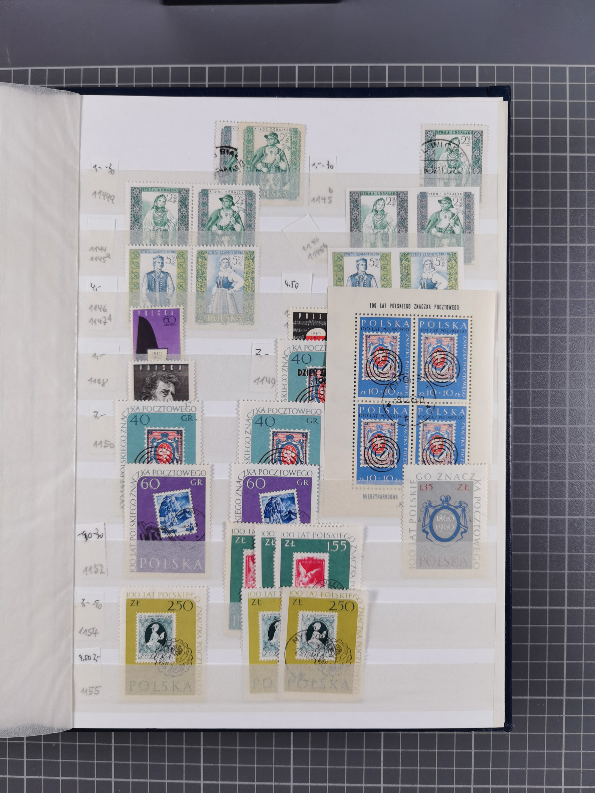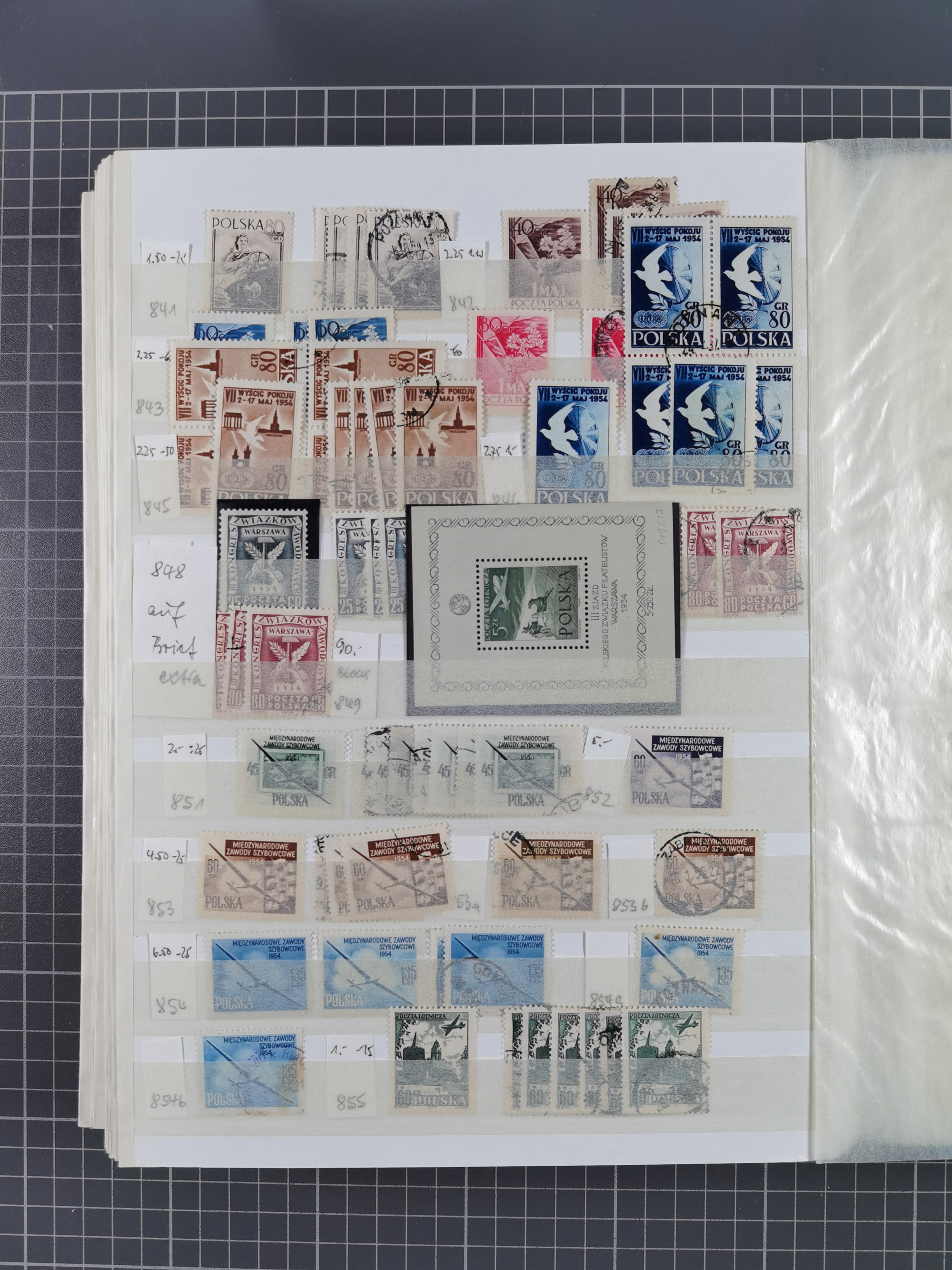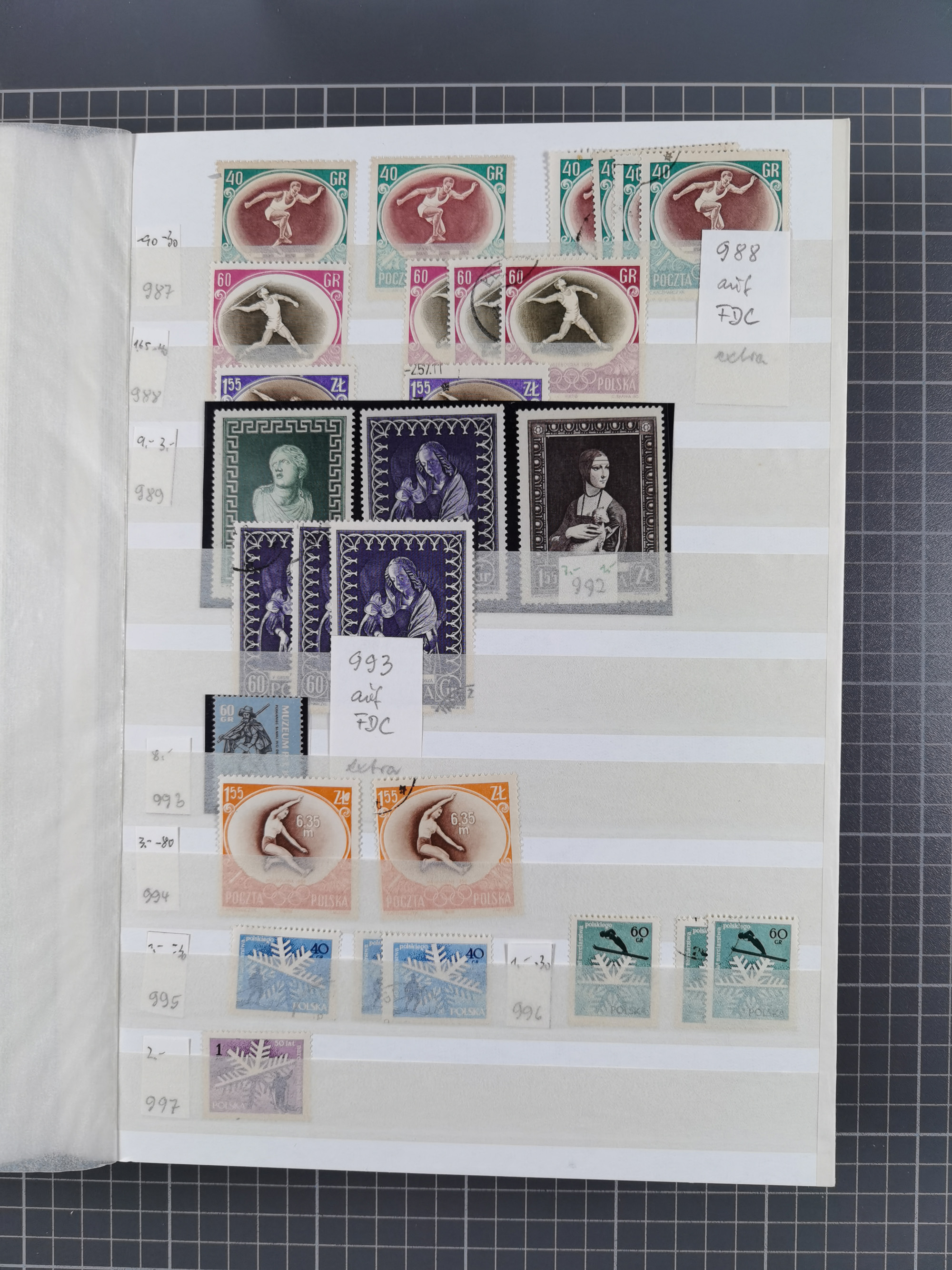 1918/19, interesting, unused/mint never hinged/used collection “Germania overprint issues,” including local issues with better items, including Mi.-No. 135-136, overprint varieties, stamps with margins, multiples, better postmarks, and some covers, including Mi.-No. 10 DD and 11 DD unused, Mi.-Nr. 135 as unused and mint never hinged block of four, and local issues including Brzeziny 2½-60 pfg. complete on letter fragments, Kolo Type II 2½-60 pfg. complete, unused, Ostroleka 40 pfg. unused, Ostrow with several values unused or on letter fragments, Pultusk with nine unused and used stamps, and Wloclawek with many stamps/overprints, including inverted overprints, many with good signatures Jungjohann BPP, Landré, etc. In addition, various overprint forgeries (some on covers) and some defective stamps from the so-called “Poznan find 1939,” mostly neatly on written-up album pages