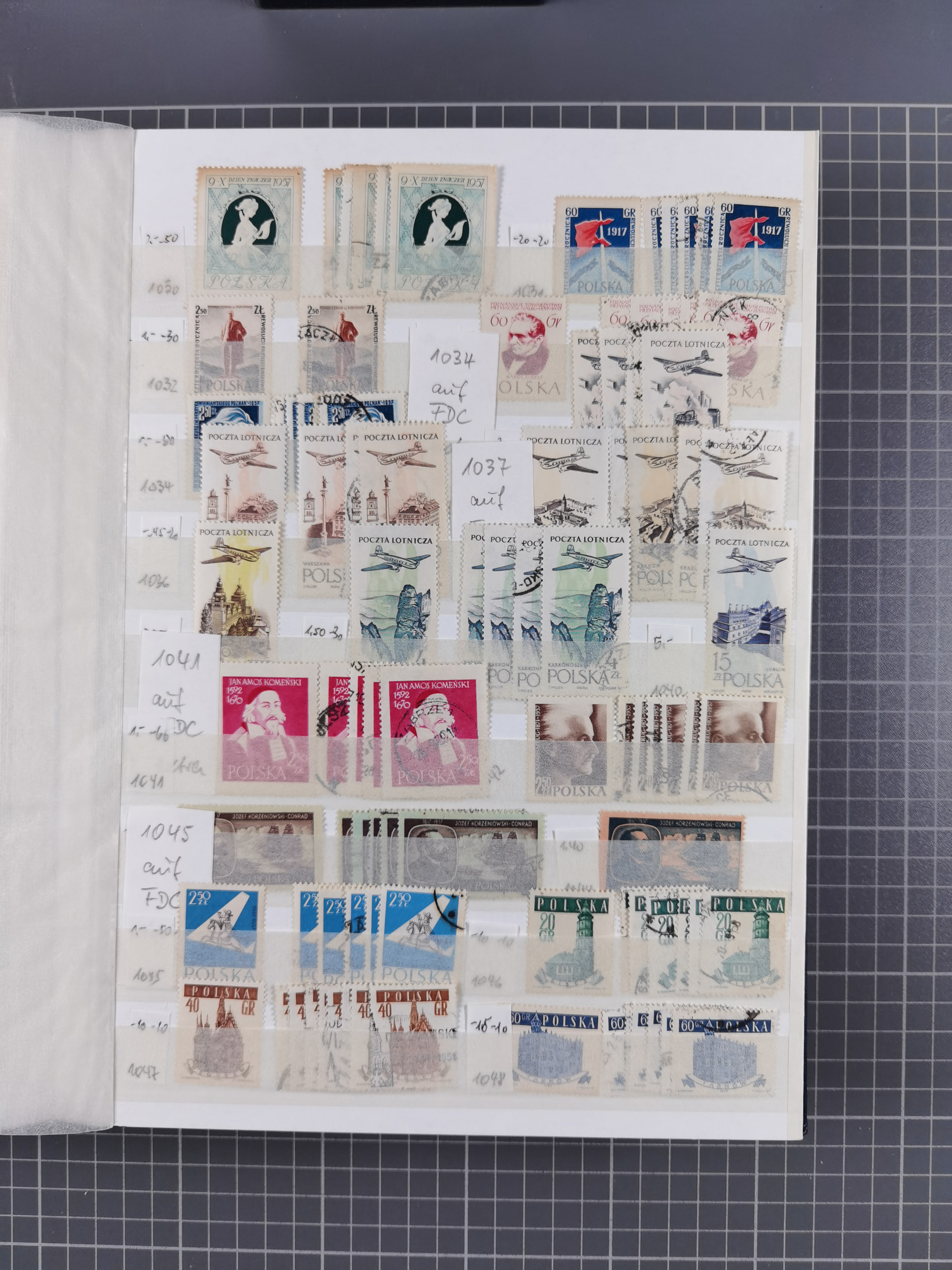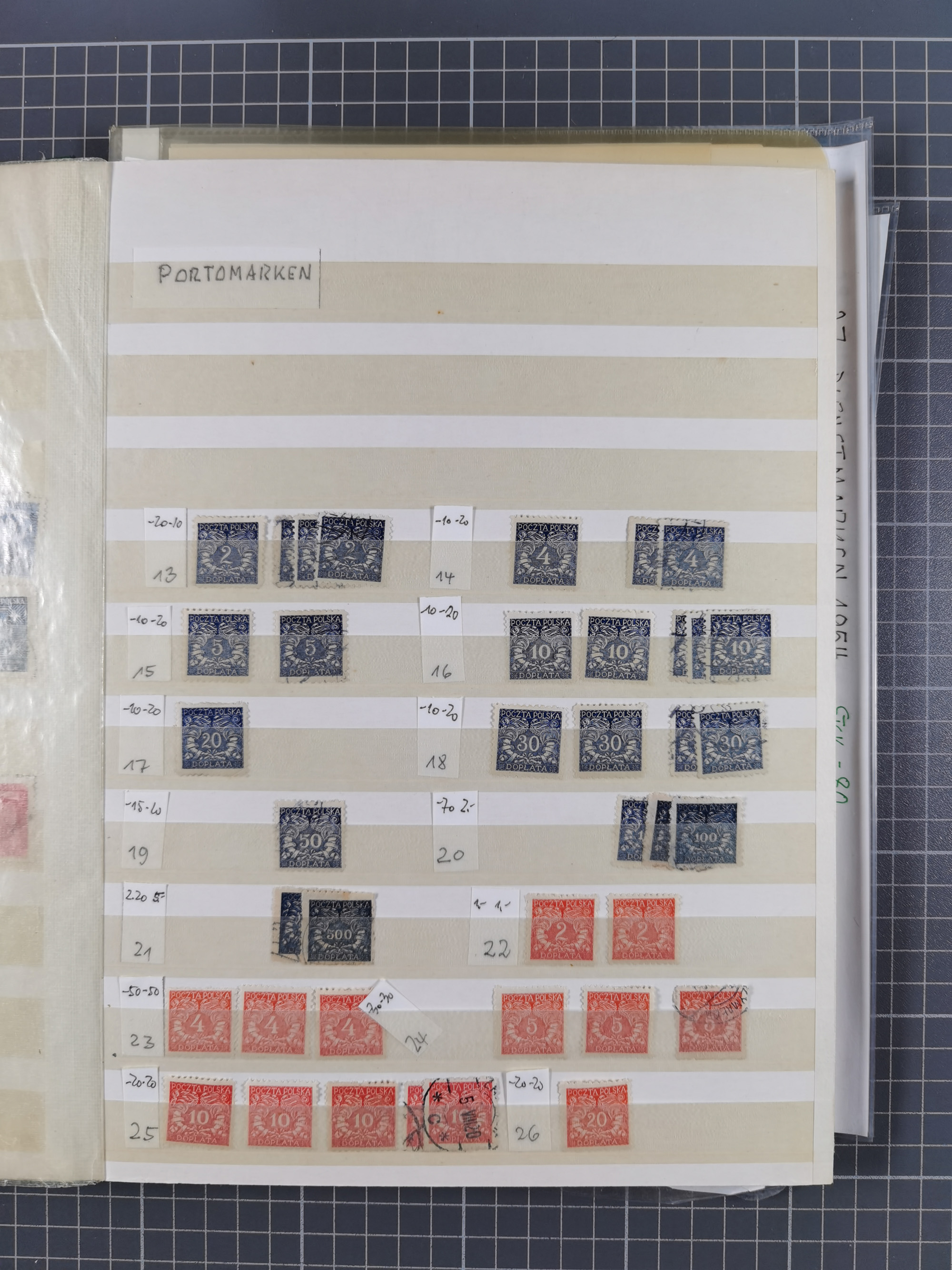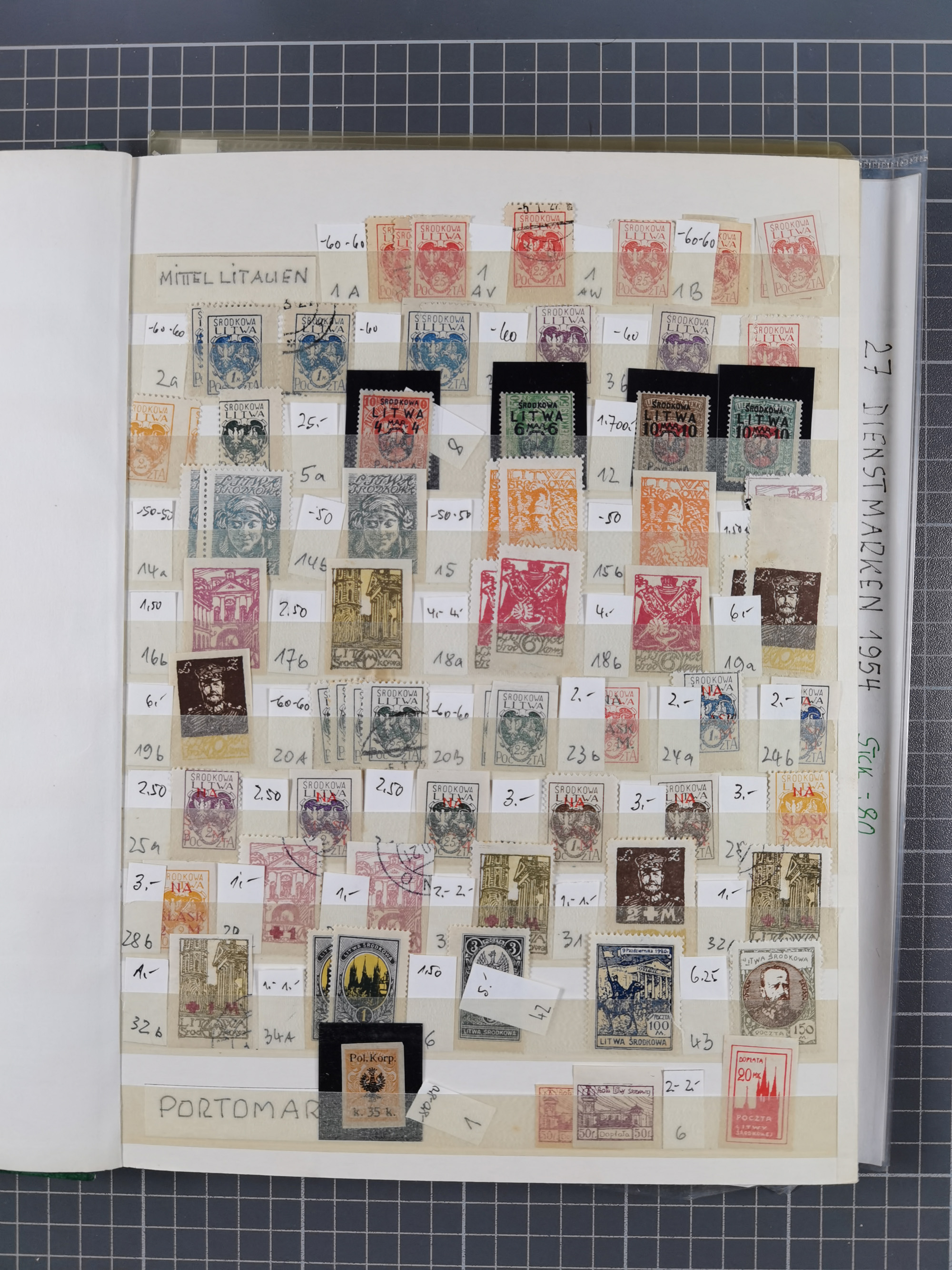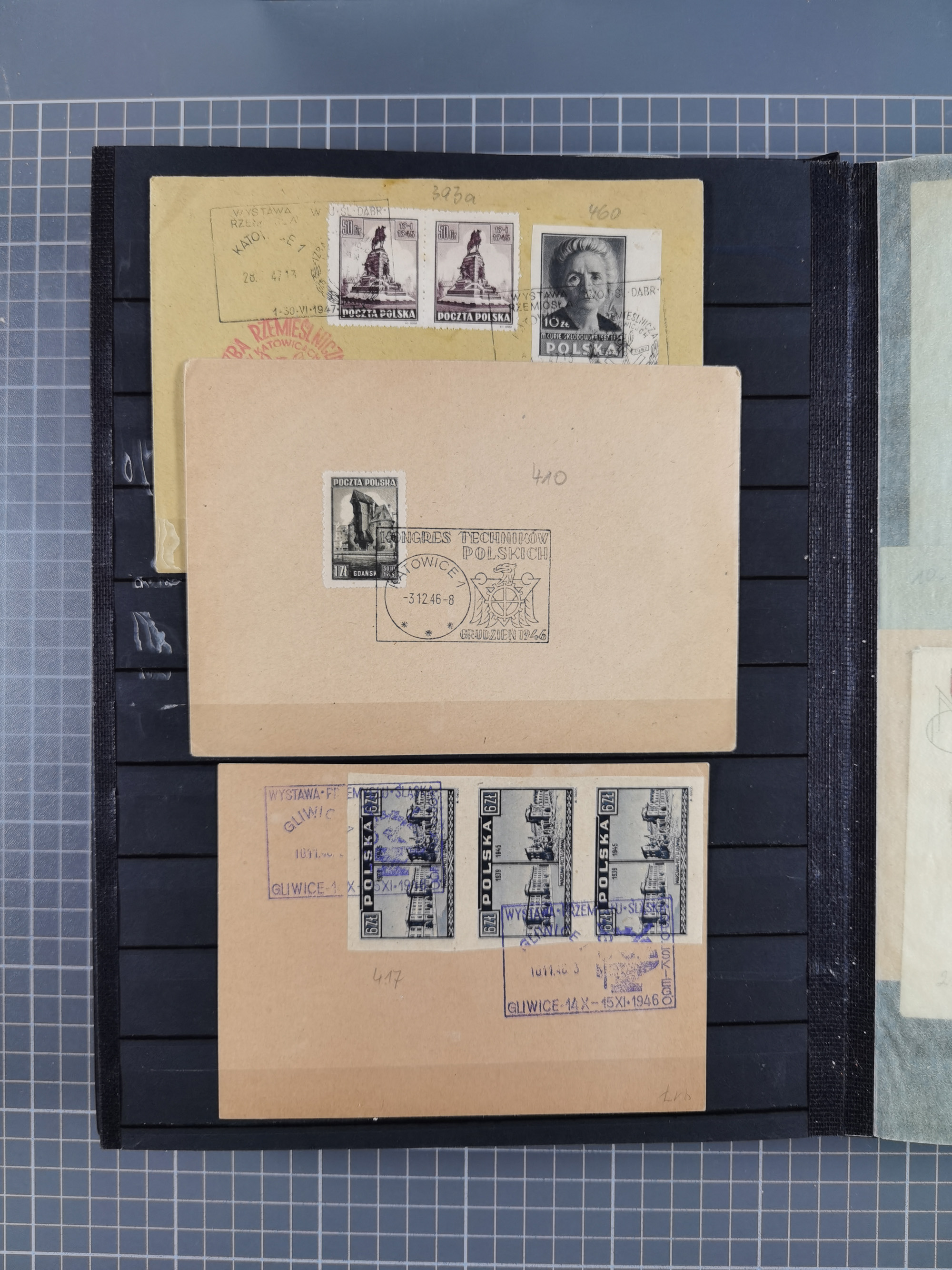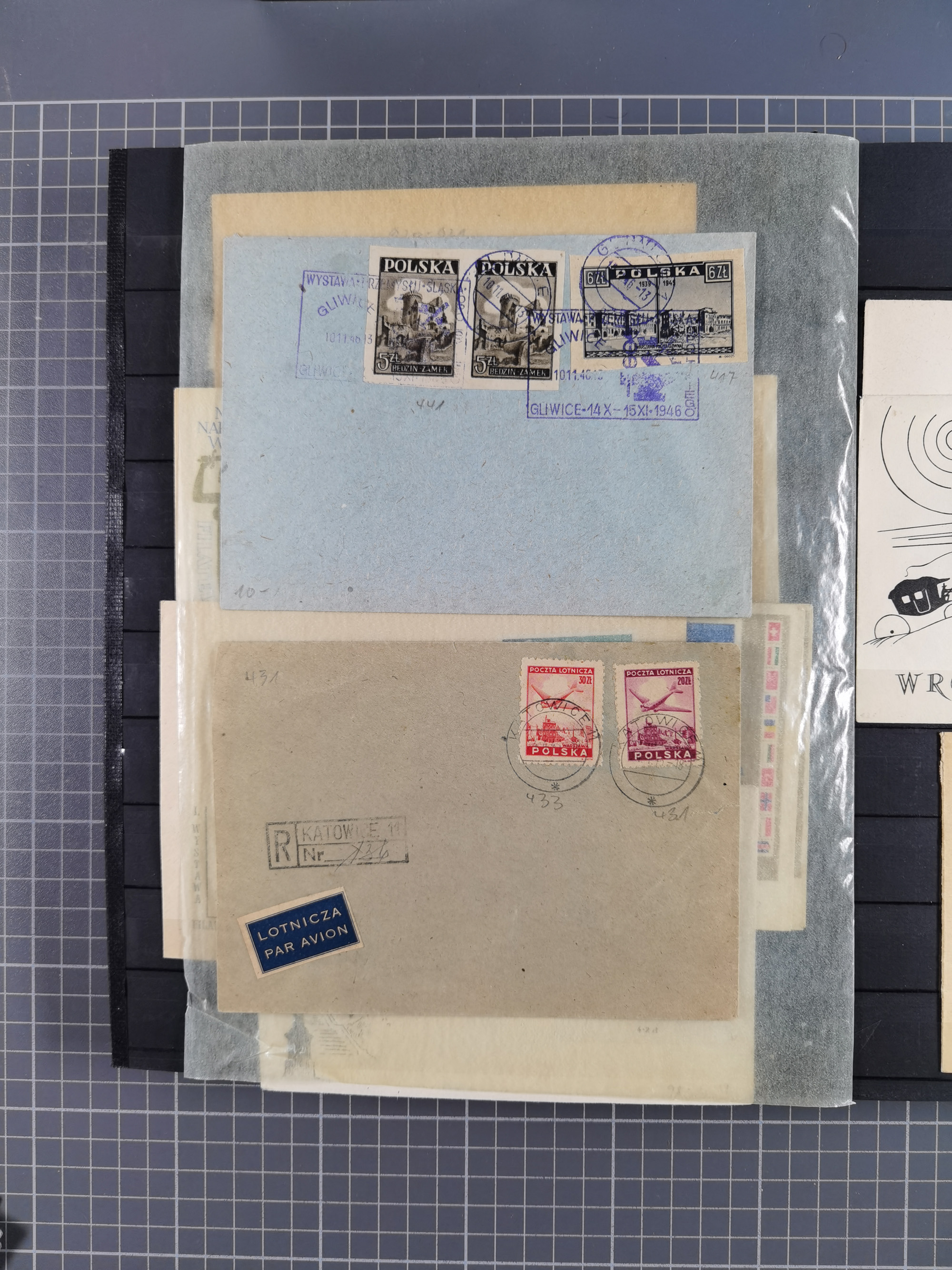 1918/19, interesting, unused/mint never hinged/used collection “Germania overprint issues,” including local issues with better items, including Mi.-No. 135-136, overprint varieties, stamps with margins, multiples, better postmarks, and some covers, including Mi.-No. 10 DD and 11 DD unused, Mi.-Nr. 135 as unused and mint never hinged block of four, and local issues including Brzeziny 2½-60 pfg. complete on letter fragments, Kolo Type II 2½-60 pfg. complete, unused, Ostroleka 40 pfg. unused, Ostrow with several values unused or on letter fragments, Pultusk with nine unused and used stamps, and Wloclawek with many stamps/overprints, including inverted overprints, many with good signatures Jungjohann BPP, Landré, etc. In addition, various overprint forgeries (some on covers) and some defective stamps from the so-called “Poznan find 1939,” mostly neatly on written-up album pages