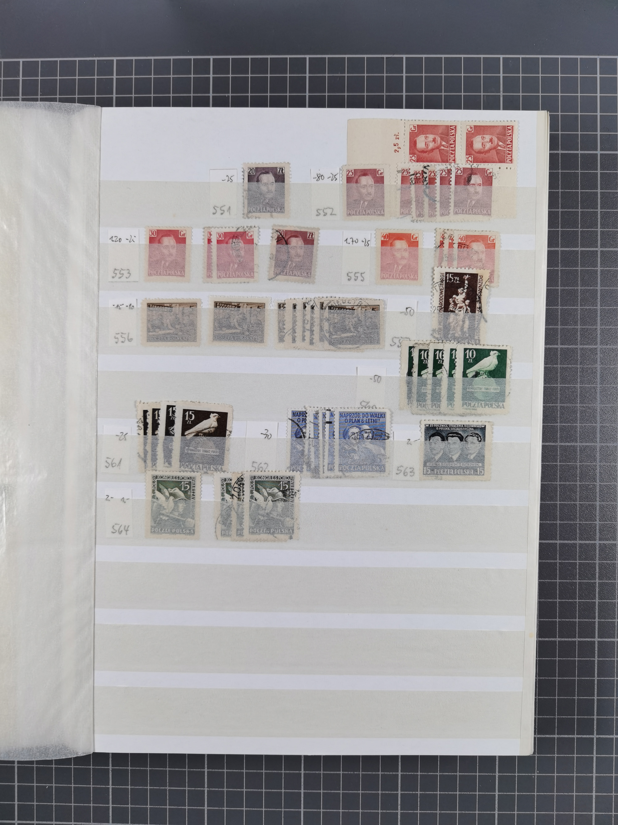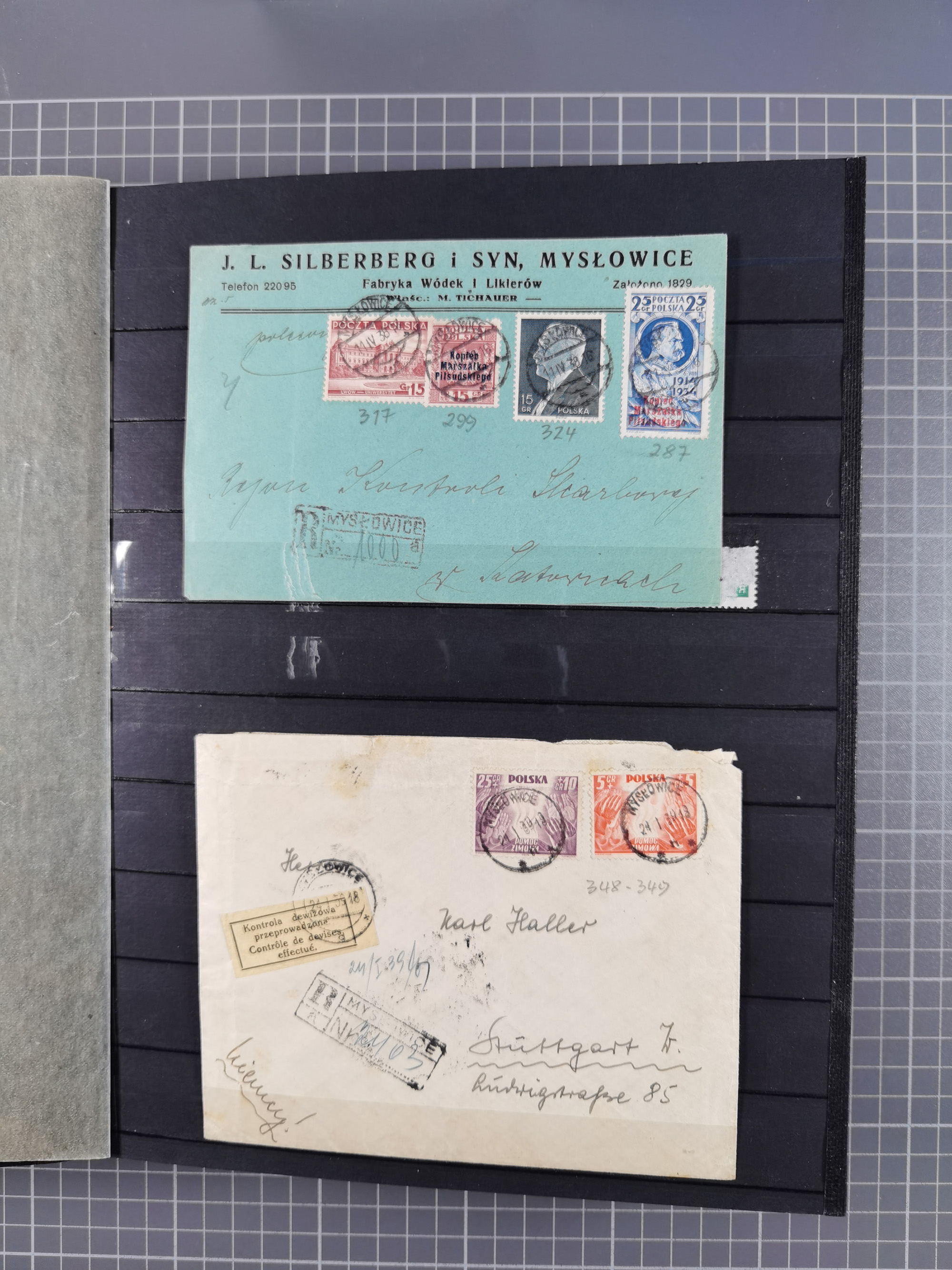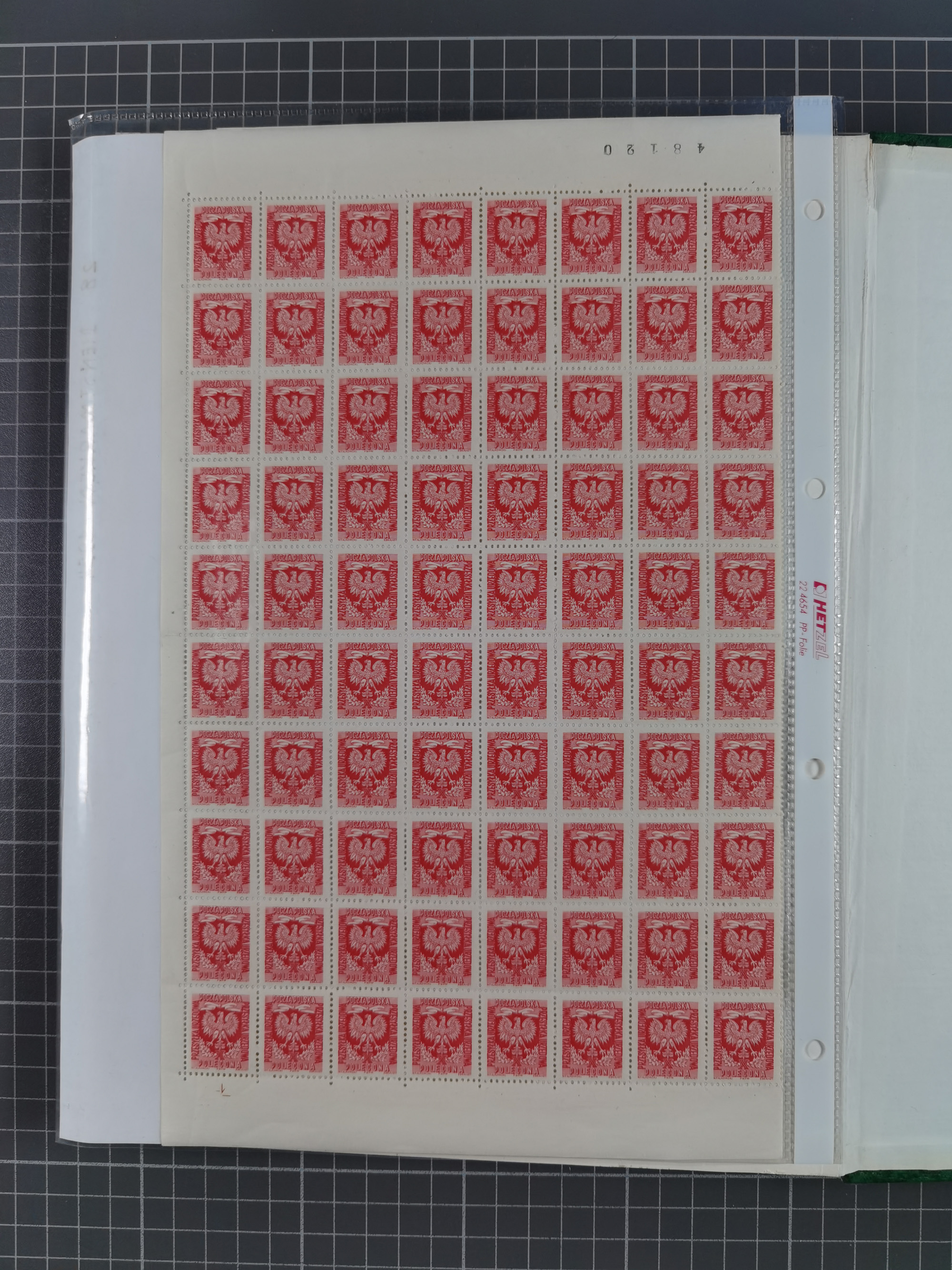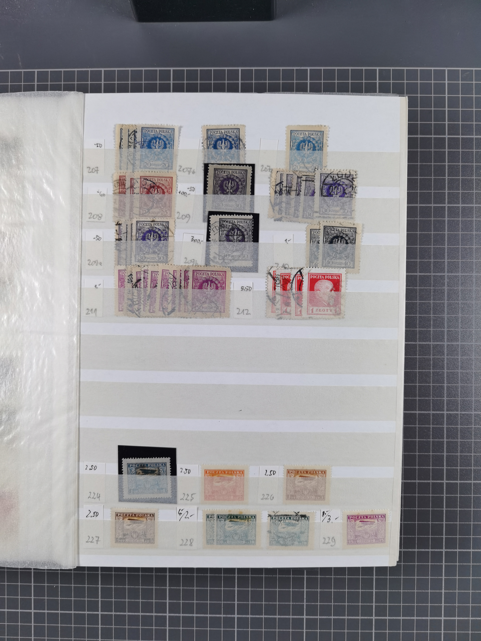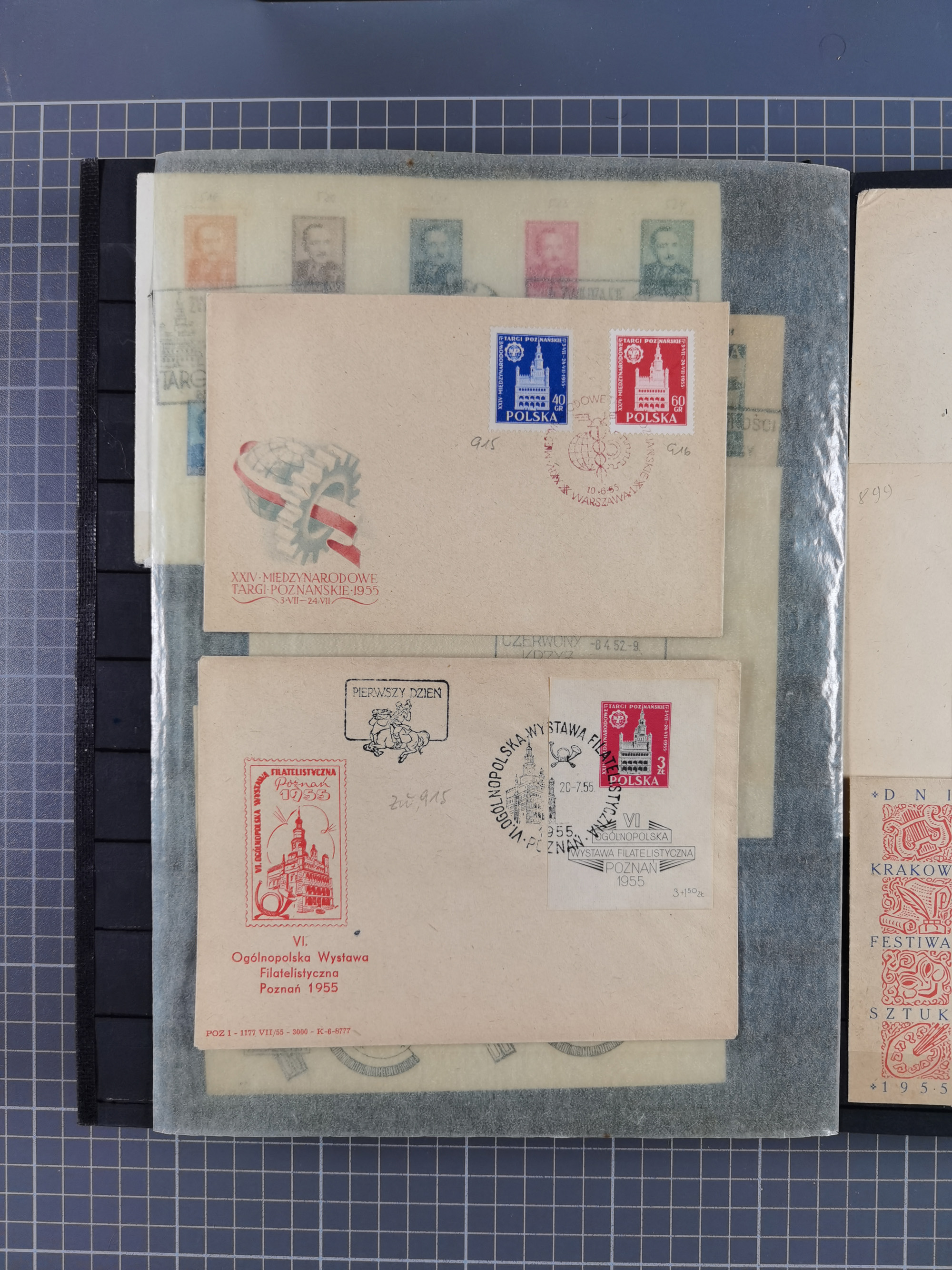 1918/19, interesting, unused/mint never hinged/used collection “Germania overprint issues,” including local issues with better items, including Mi.-No. 135-136, overprint varieties, stamps with margins, multiples, better postmarks, and some covers, including Mi.-No. 10 DD and 11 DD unused, Mi.-Nr. 135 as unused and mint never hinged block of four, and local issues including Brzeziny 2½-60 pfg. complete on letter fragments, Kolo Type II 2½-60 pfg. complete, unused, Ostroleka 40 pfg. unused, Ostrow with several values unused or on letter fragments, Pultusk with nine unused and used stamps, and Wloclawek with many stamps/overprints, including inverted overprints, many with good signatures Jungjohann BPP, Landré, etc. In addition, various overprint forgeries (some on covers) and some defective stamps from the so-called “Poznan find 1939,” mostly neatly on written-up album pages