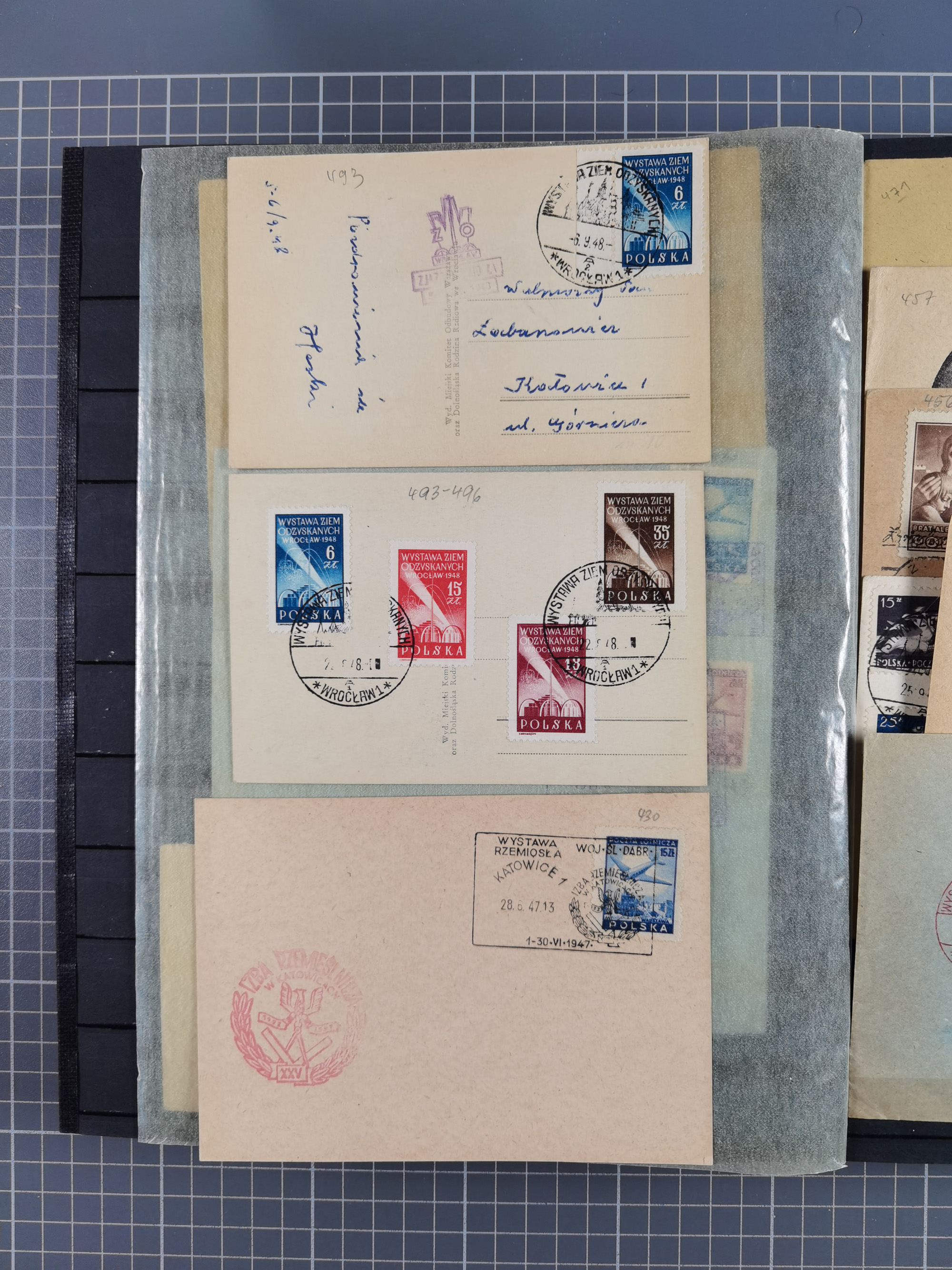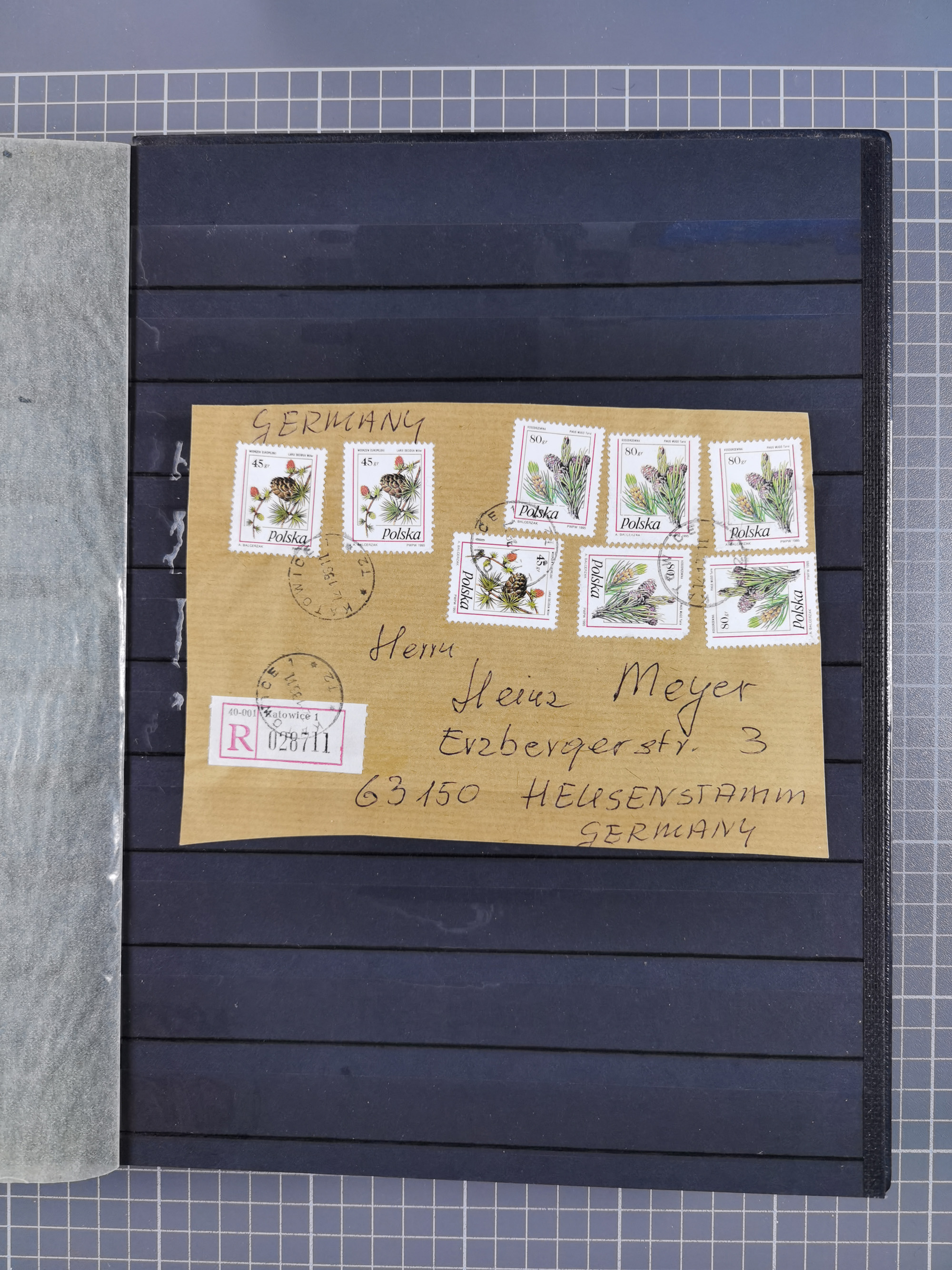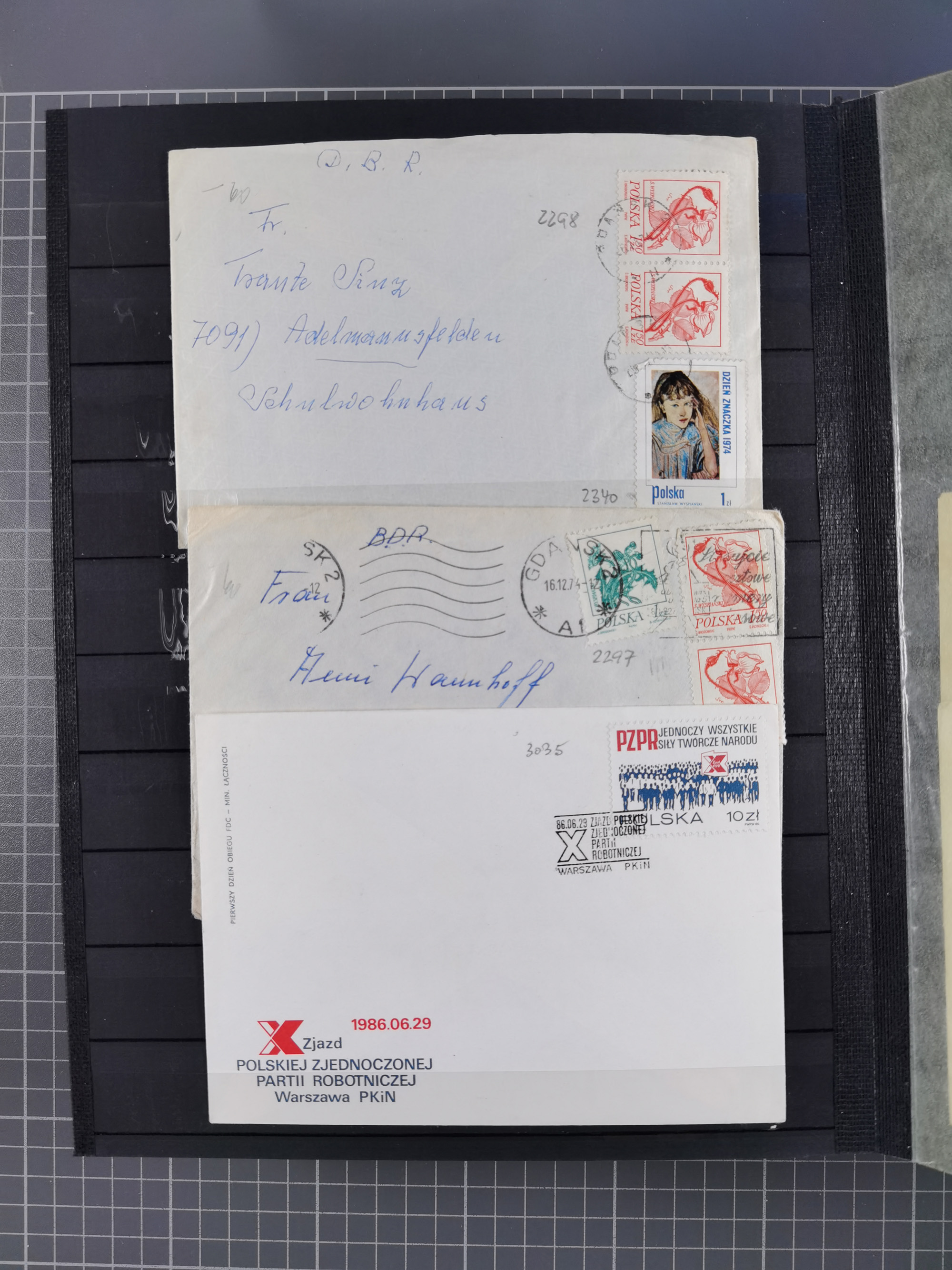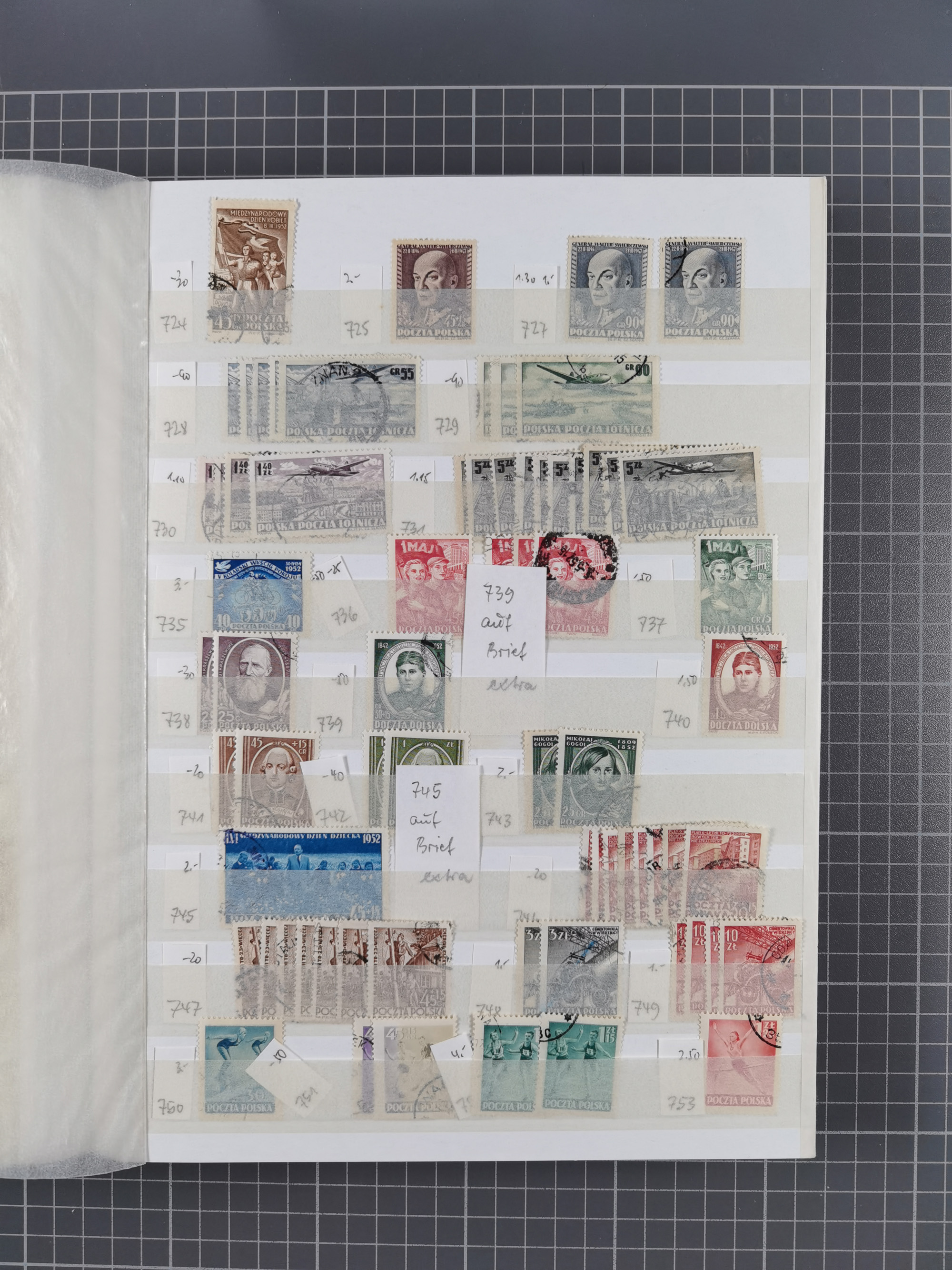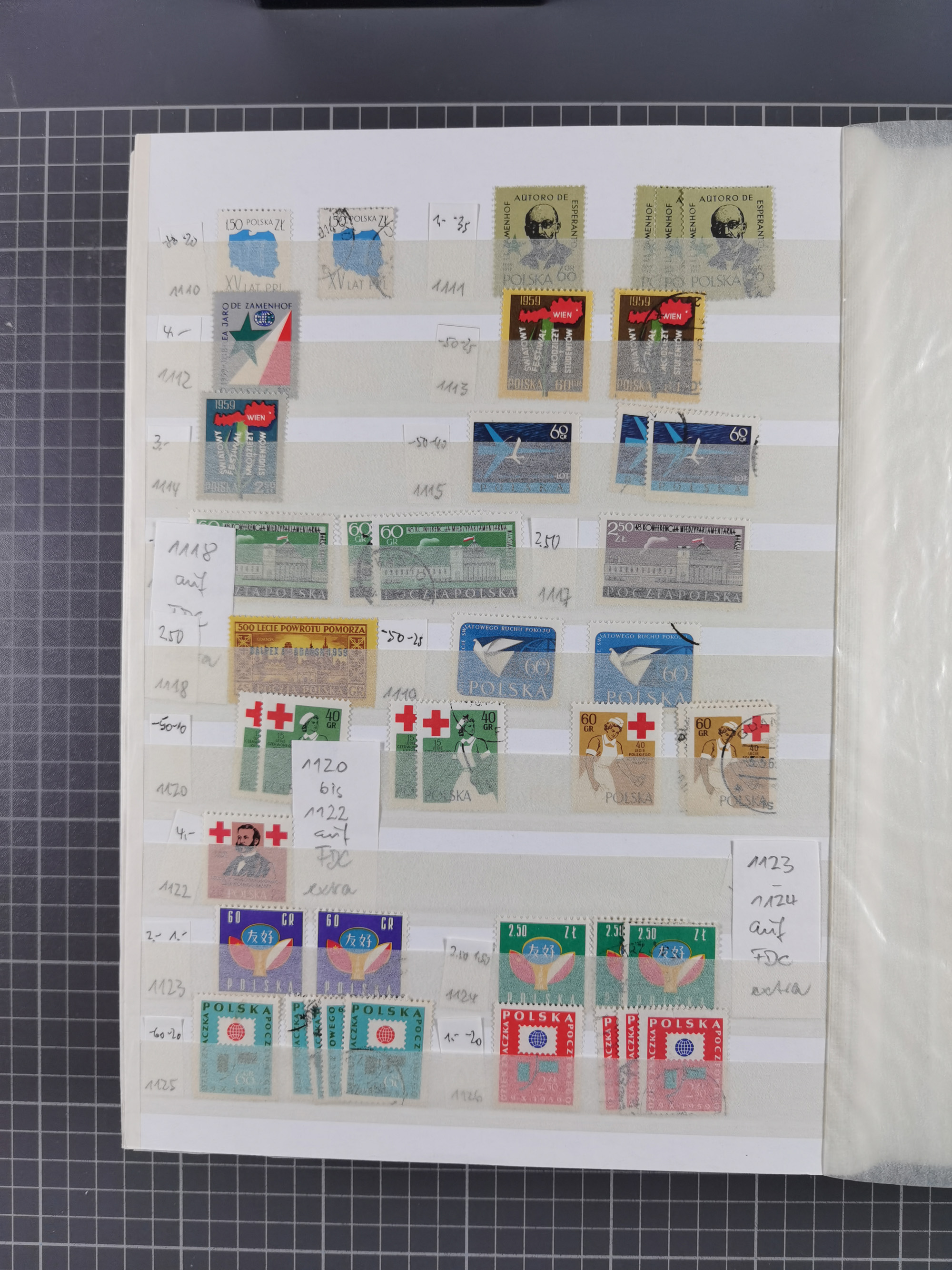 1918/19, interesting, unused/mint never hinged/used collection “Germania overprint issues,” including local issues with better items, including Mi.-No. 135-136, overprint varieties, stamps with margins, multiples, better postmarks, and some covers, including Mi.-No. 10 DD and 11 DD unused, Mi.-Nr. 135 as unused and mint never hinged block of four, and local issues including Brzeziny 2½-60 pfg. complete on letter fragments, Kolo Type II 2½-60 pfg. complete, unused, Ostroleka 40 pfg. unused, Ostrow with several values unused or on letter fragments, Pultusk with nine unused and used stamps, and Wloclawek with many stamps/overprints, including inverted overprints, many with good signatures Jungjohann BPP, Landré, etc. In addition, various overprint forgeries (some on covers) and some defective stamps from the so-called “Poznan find 1939,” mostly neatly on written-up album pages