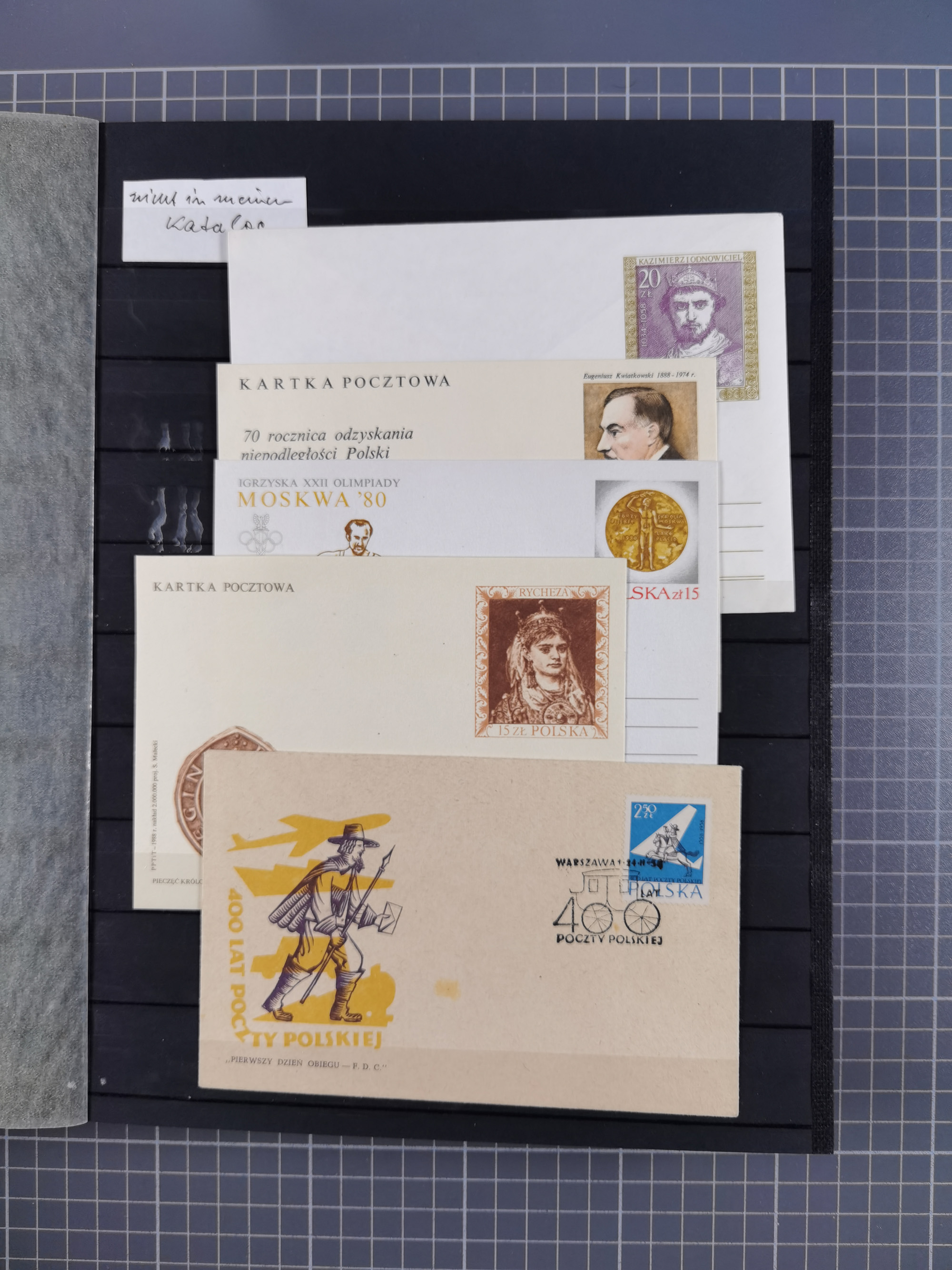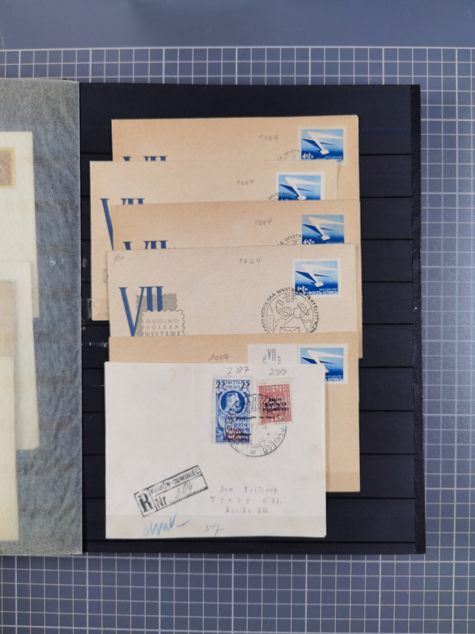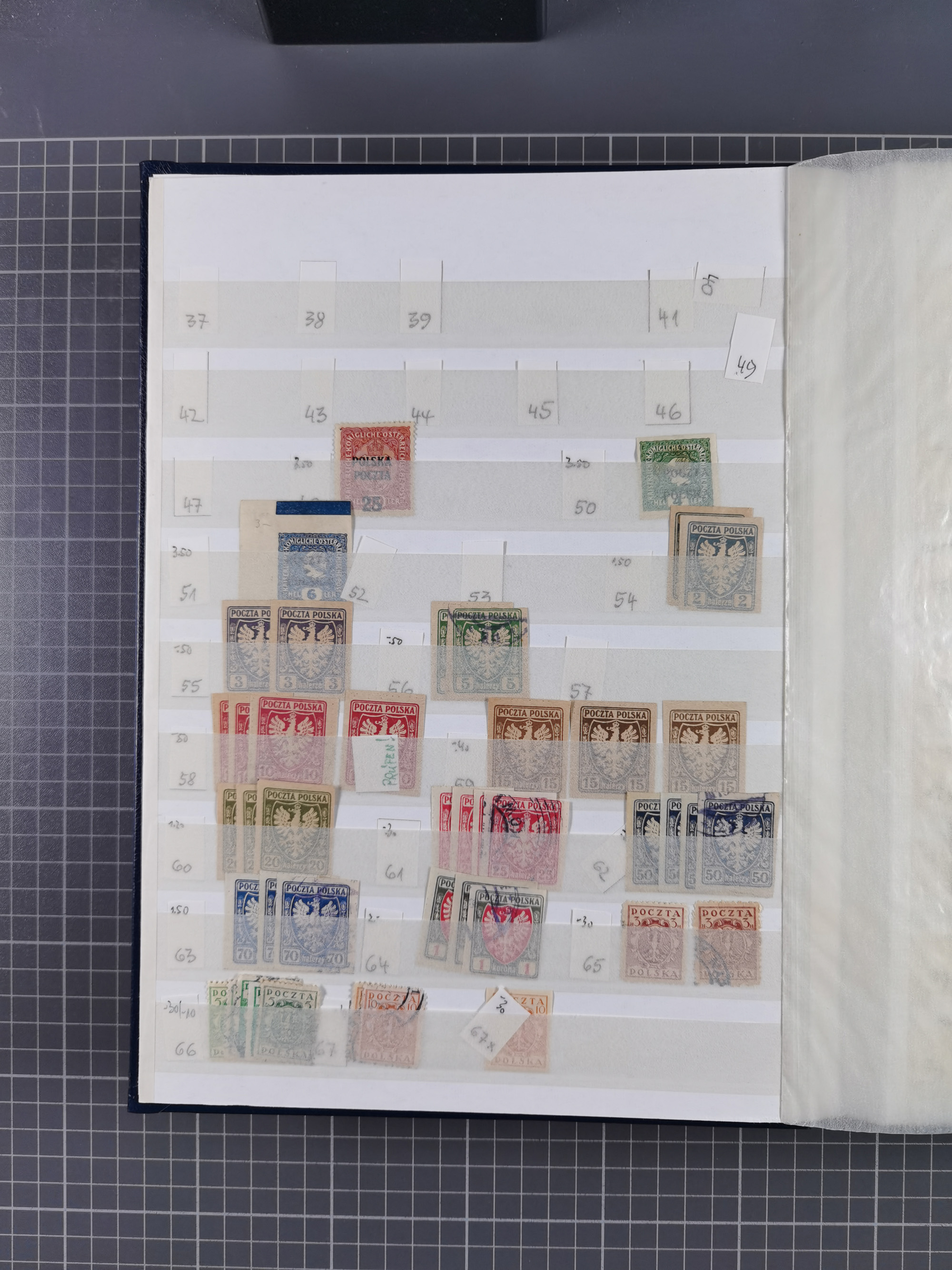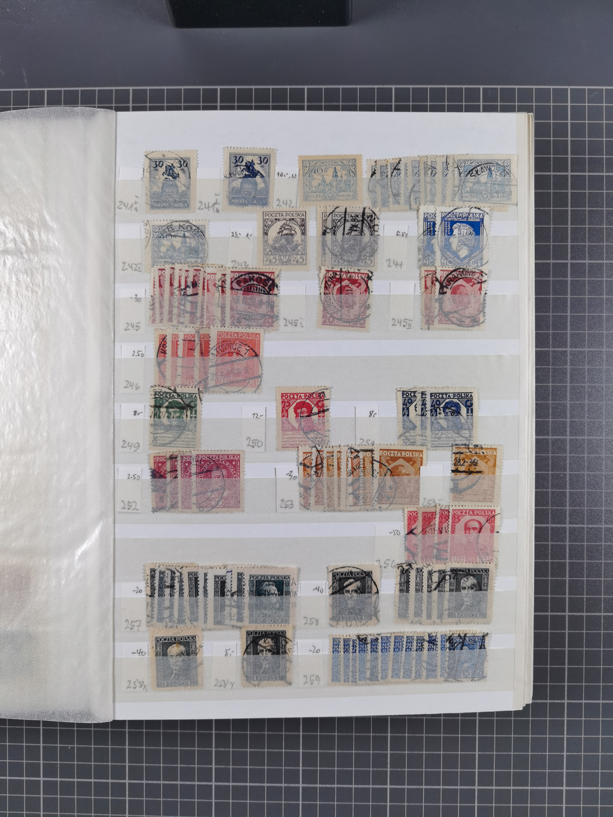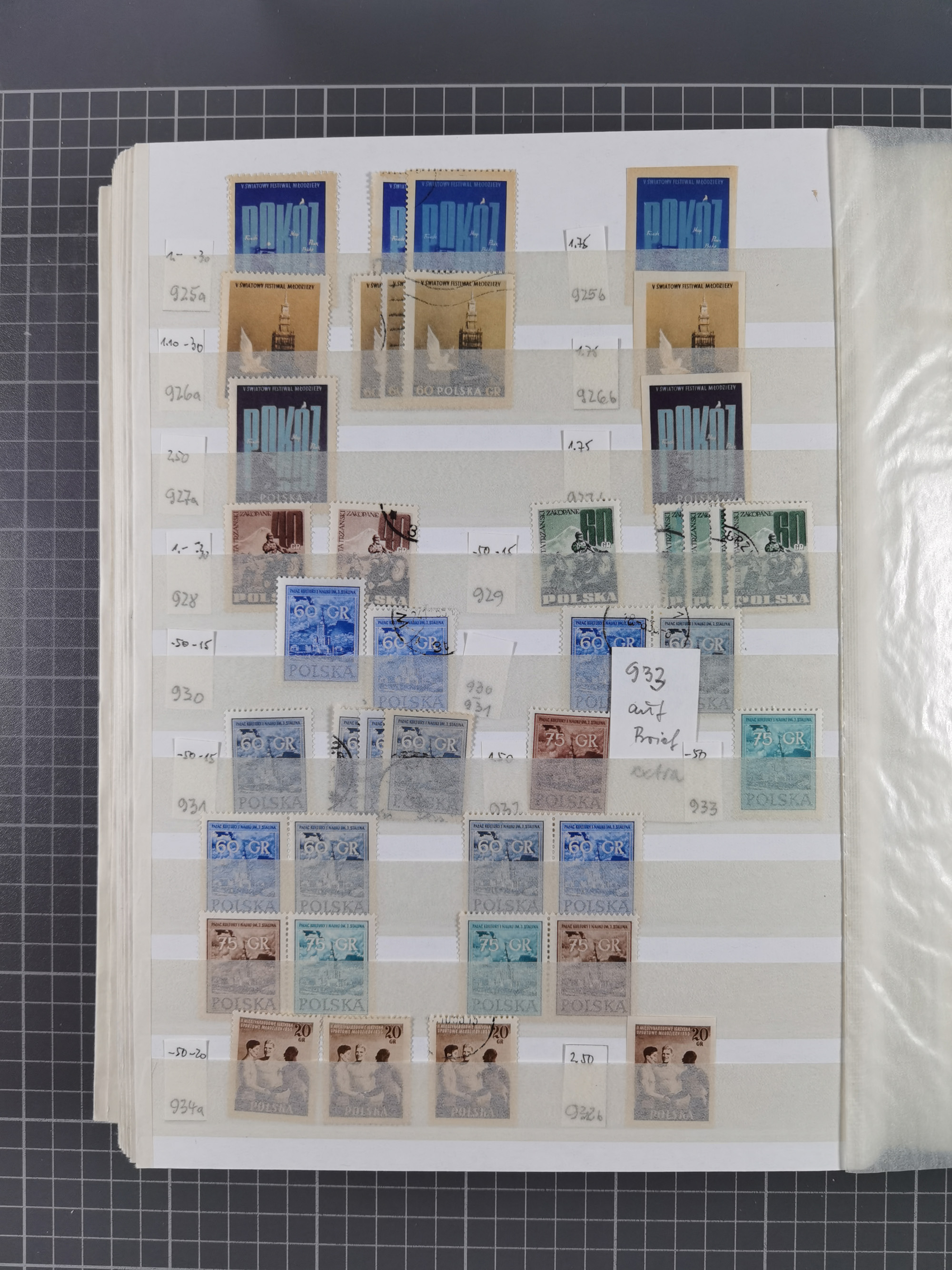 1918/19, interesting, unused/mint never hinged/used collection “Germania overprint issues,” including local issues with better items, including Mi.-No. 135-136, overprint varieties, stamps with margins, multiples, better postmarks, and some covers, including Mi.-No. 10 DD and 11 DD unused, Mi.-Nr. 135 as unused and mint never hinged block of four, and local issues including Brzeziny 2½-60 pfg. complete on letter fragments, Kolo Type II 2½-60 pfg. complete, unused, Ostroleka 40 pfg. unused, Ostrow with several values unused or on letter fragments, Pultusk with nine unused and used stamps, and Wloclawek with many stamps/overprints, including inverted overprints, many with good signatures Jungjohann BPP, Landré, etc. In addition, various overprint forgeries (some on covers) and some defective stamps from the so-called “Poznan find 1939,” mostly neatly on written-up album pages
