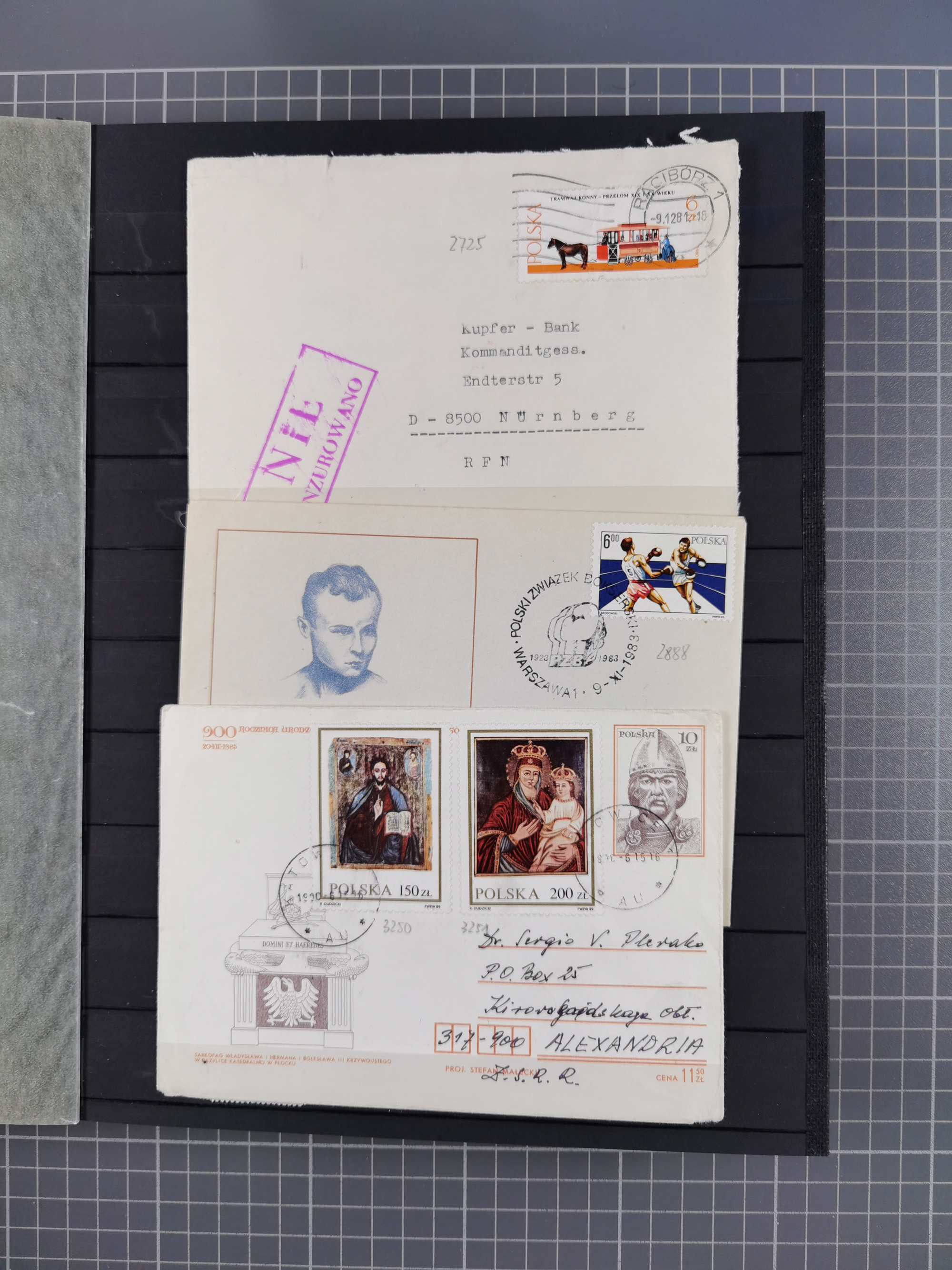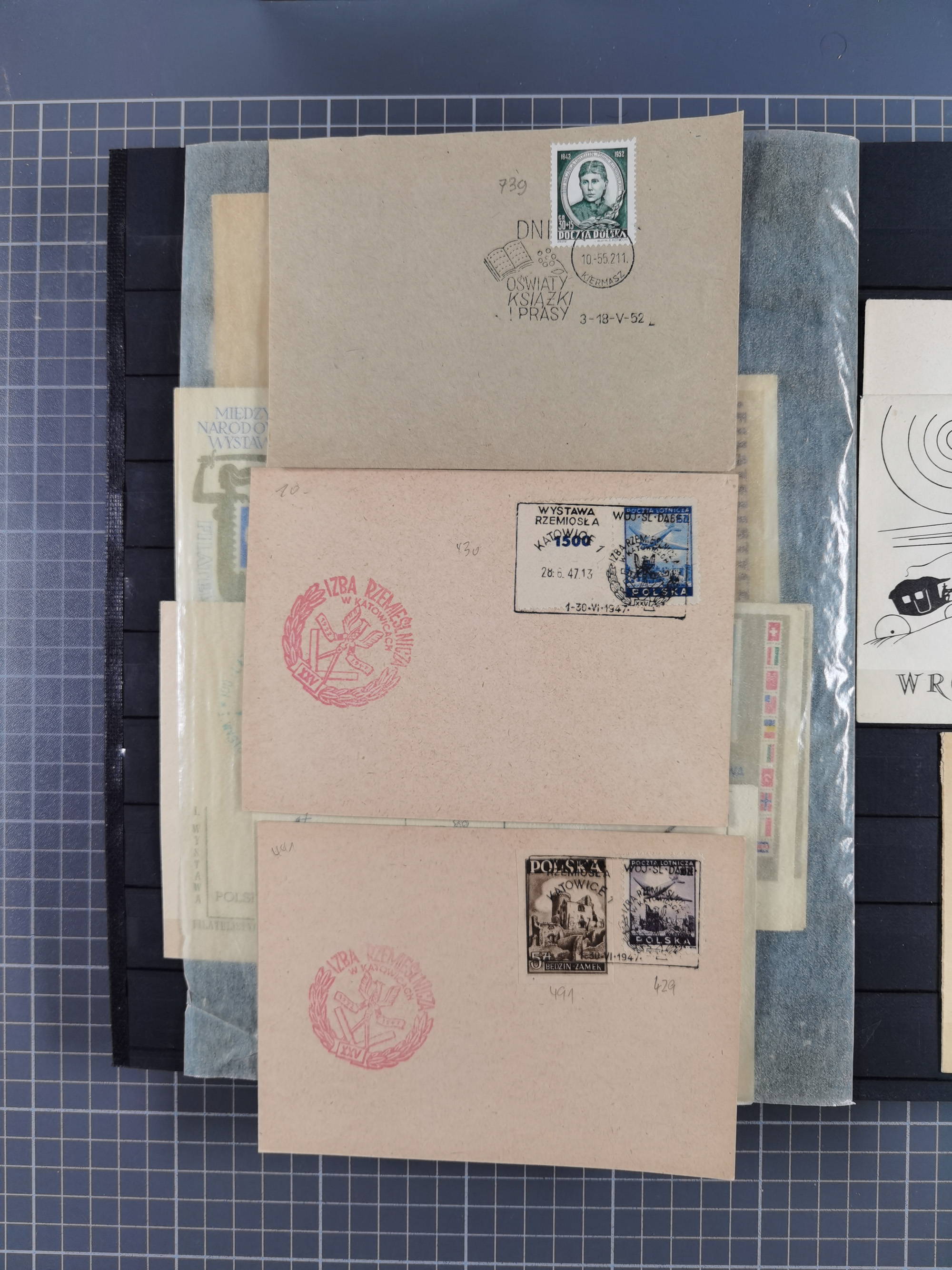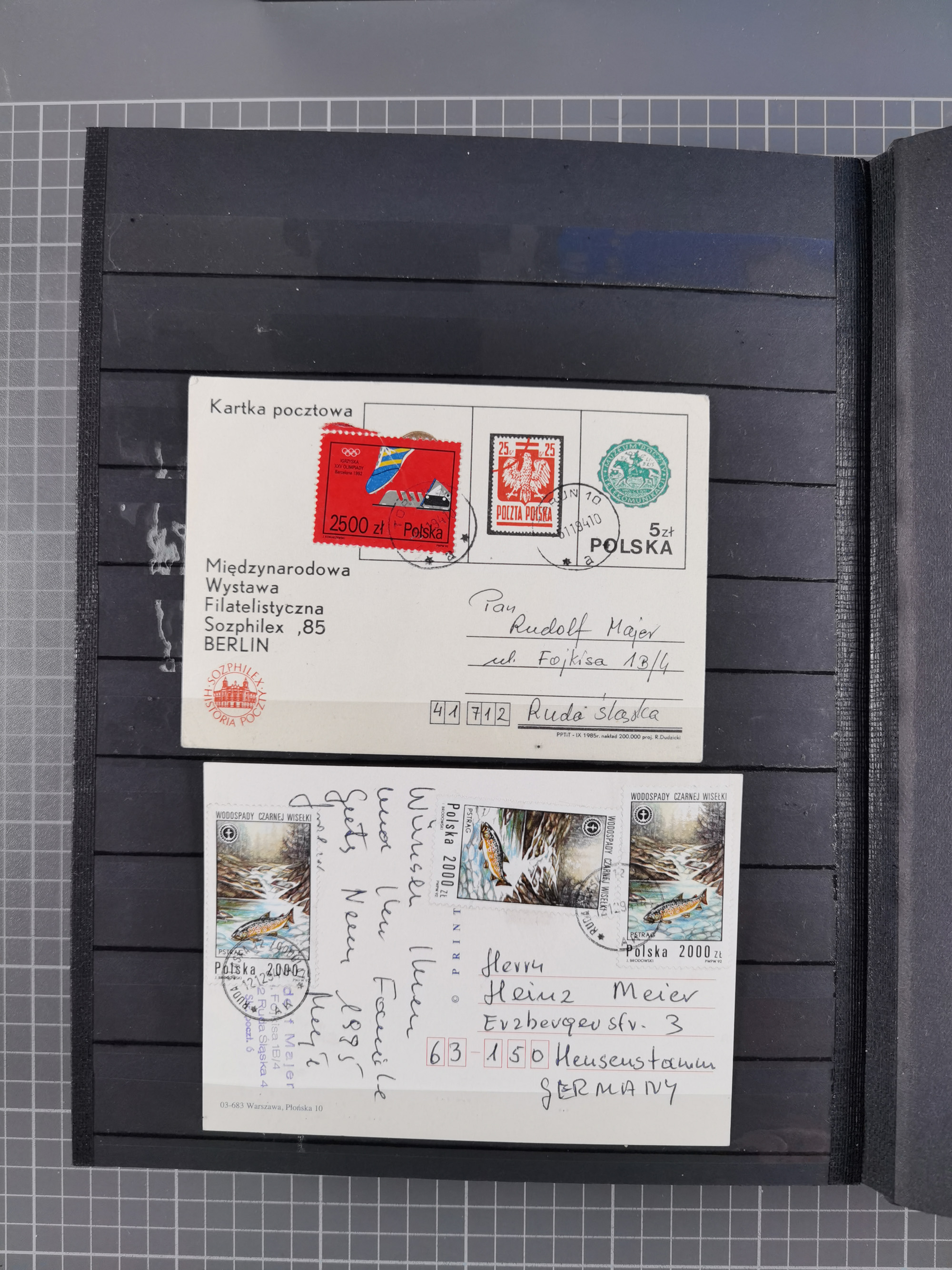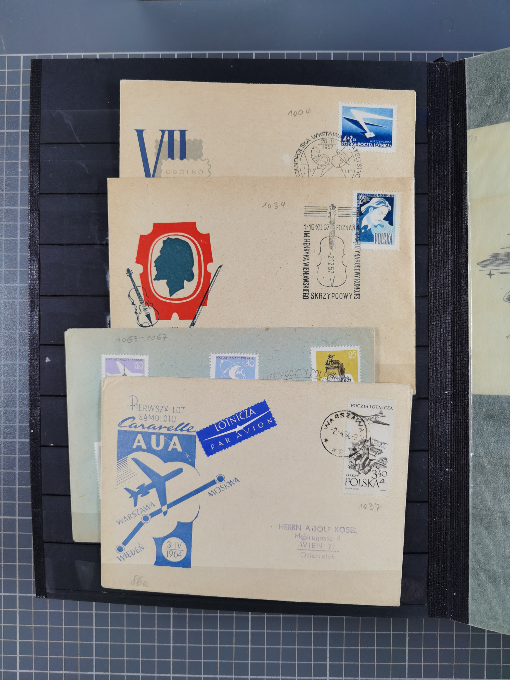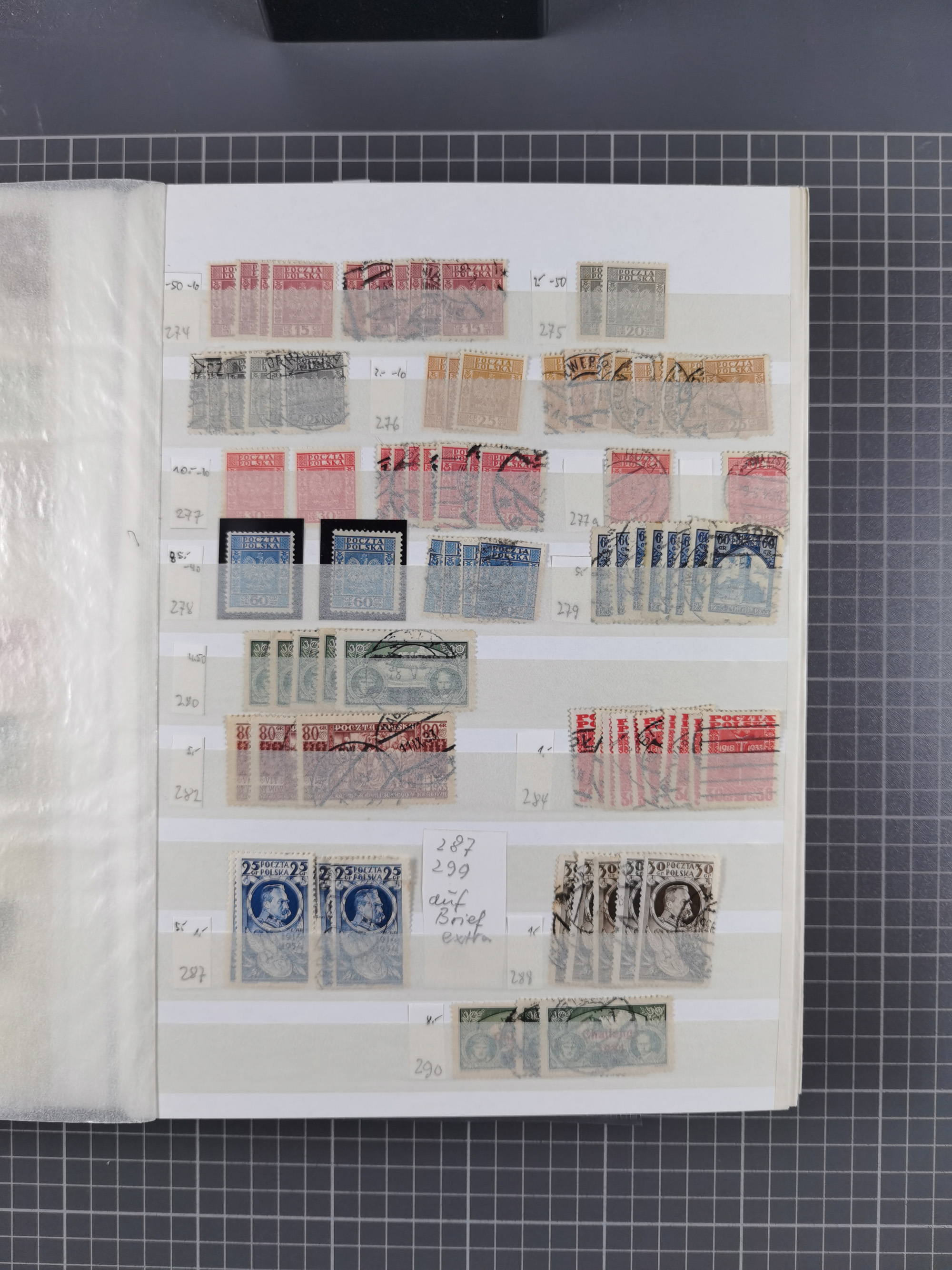 1918/19, interesting, unused/mint never hinged/used collection “Germania overprint issues,” including local issues with better items, including Mi.-No. 135-136, overprint varieties, stamps with margins, multiples, better postmarks, and some covers, including Mi.-No. 10 DD and 11 DD unused, Mi.-Nr. 135 as unused and mint never hinged block of four, and local issues including Brzeziny 2½-60 pfg. complete on letter fragments, Kolo Type II 2½-60 pfg. complete, unused, Ostroleka 40 pfg. unused, Ostrow with several values unused or on letter fragments, Pultusk with nine unused and used stamps, and Wloclawek with many stamps/overprints, including inverted overprints, many with good signatures Jungjohann BPP, Landré, etc. In addition, various overprint forgeries (some on covers) and some defective stamps from the so-called “Poznan find 1939,” mostly neatly on written-up album pages