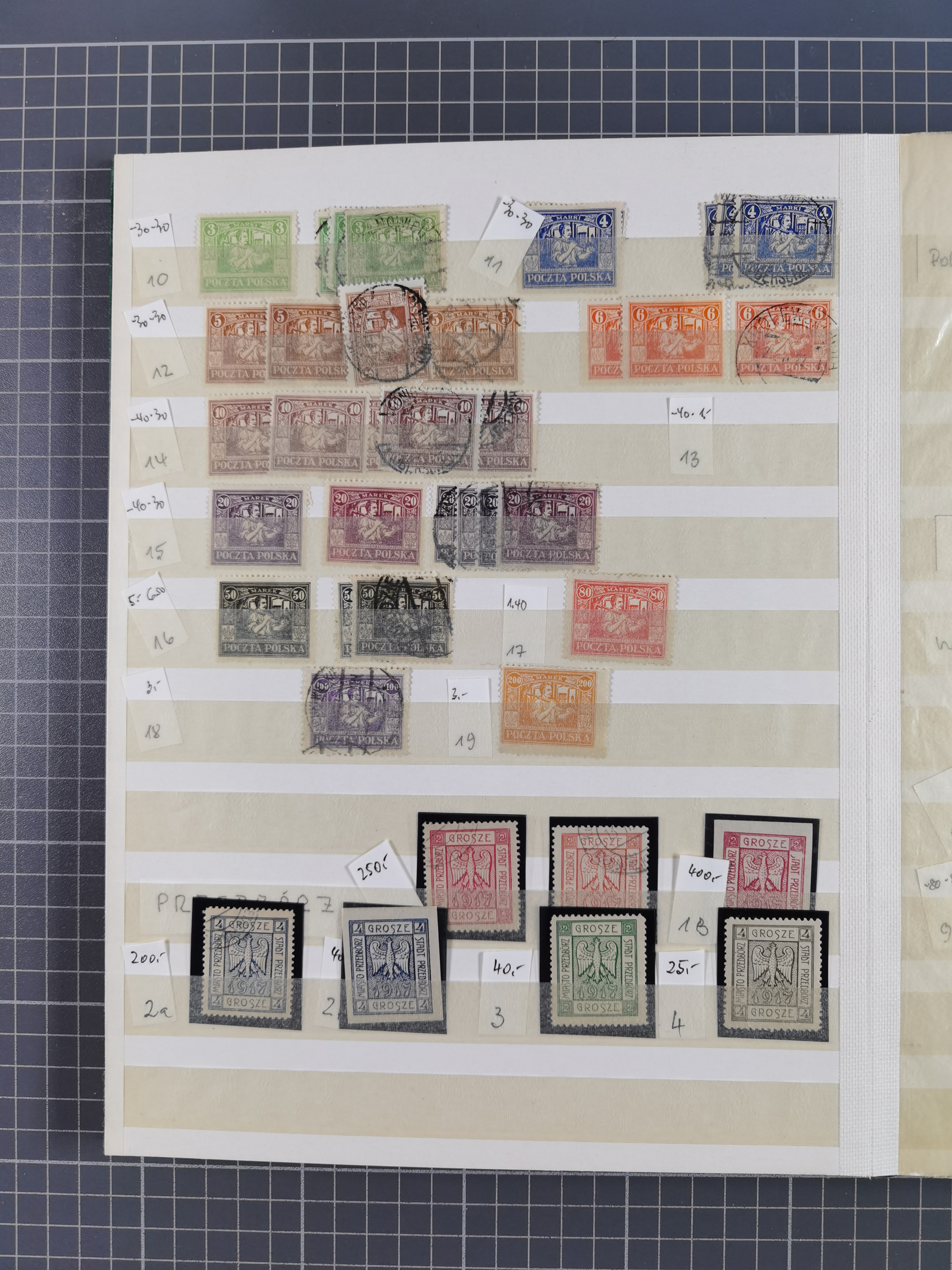 1918/90, unused and used collection starting with “Stadtpost Warschau”, Przedborz, Luboml and Zawierce, later some better issues like Naskarb unused, extensive duplicates with mint never hinged including souvenir sheets etc., mostly good condition