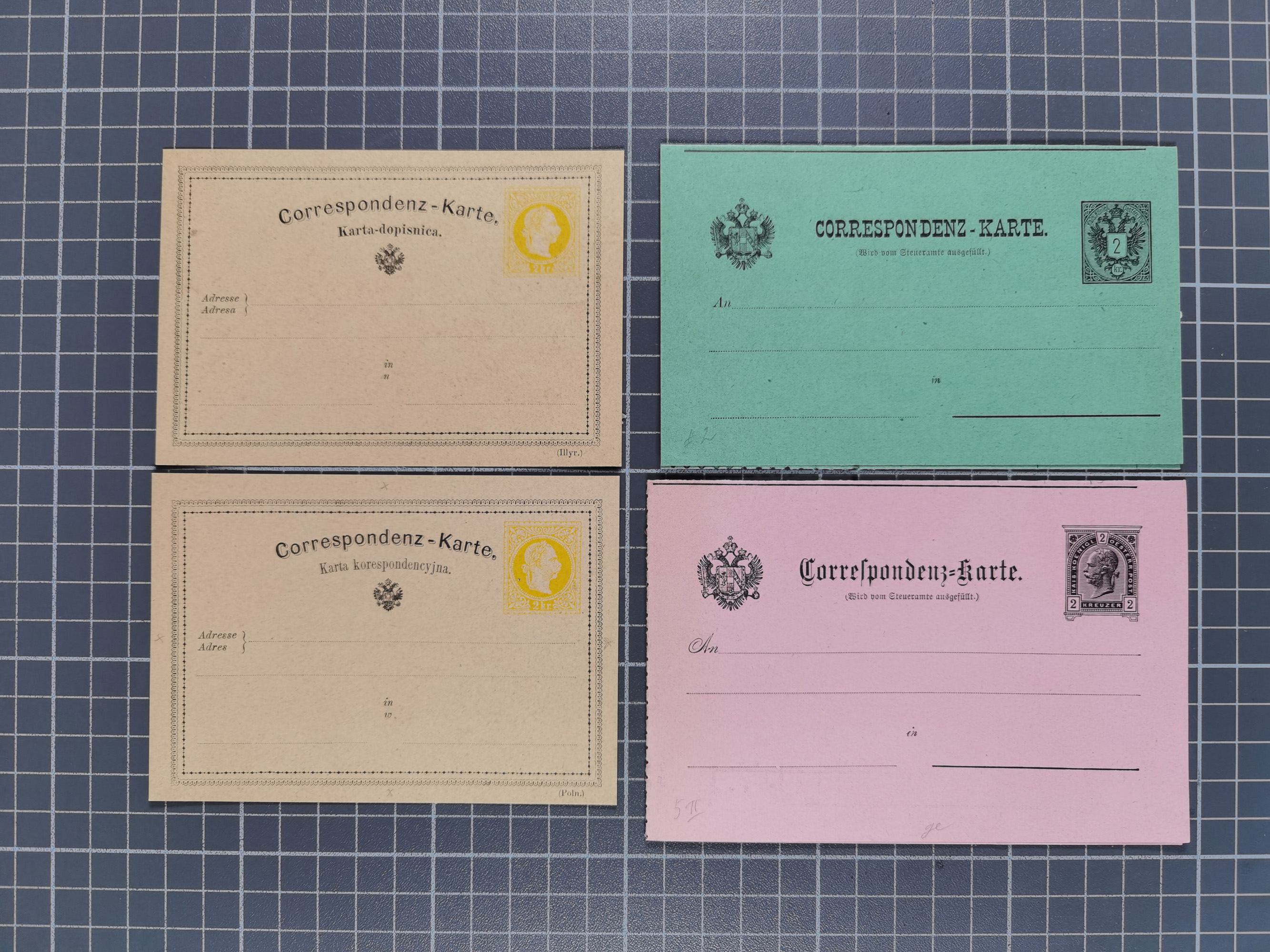 1850/95 (ca.), umfangreiche Stempelsammlung mit über 150 Briefen und Karten, Schwerpunkt Farbstempeln, dabei u.a. Mi.-Nr. 4X frühe 1850 Verwendung von “TROFAYACH JUN.” (mit kopfstehend eingesetztem Monat und handschriftlicher “10”) auf Brief nach Warasdin mit Ankunftsstempel, schöner Teil Farbstempel mit “SACHSENFELD” auf Brief und Briefstücken (Mueller-Nr. 2426b), “PONIGL” in blau auf Briefstück (2207bI, 250 Punkte), “PRASSBERG” in blau auf Briefstück (2240bV), “FELDBACH” in blau, weiterhin spätere 1867 Ausgabe mit blauem “VEGLIA”, “BLATTA”, “GELSA” sowie blauem “BOZZO 24 6 73” auf 2 kr. gelb Ganzsachenkarte nach Parenzo, etc., dazu einige lose Marken, zum Teil etwas leicht unterschiedlich, meist aber in schöner Gesamterhaltung, sauber in Album