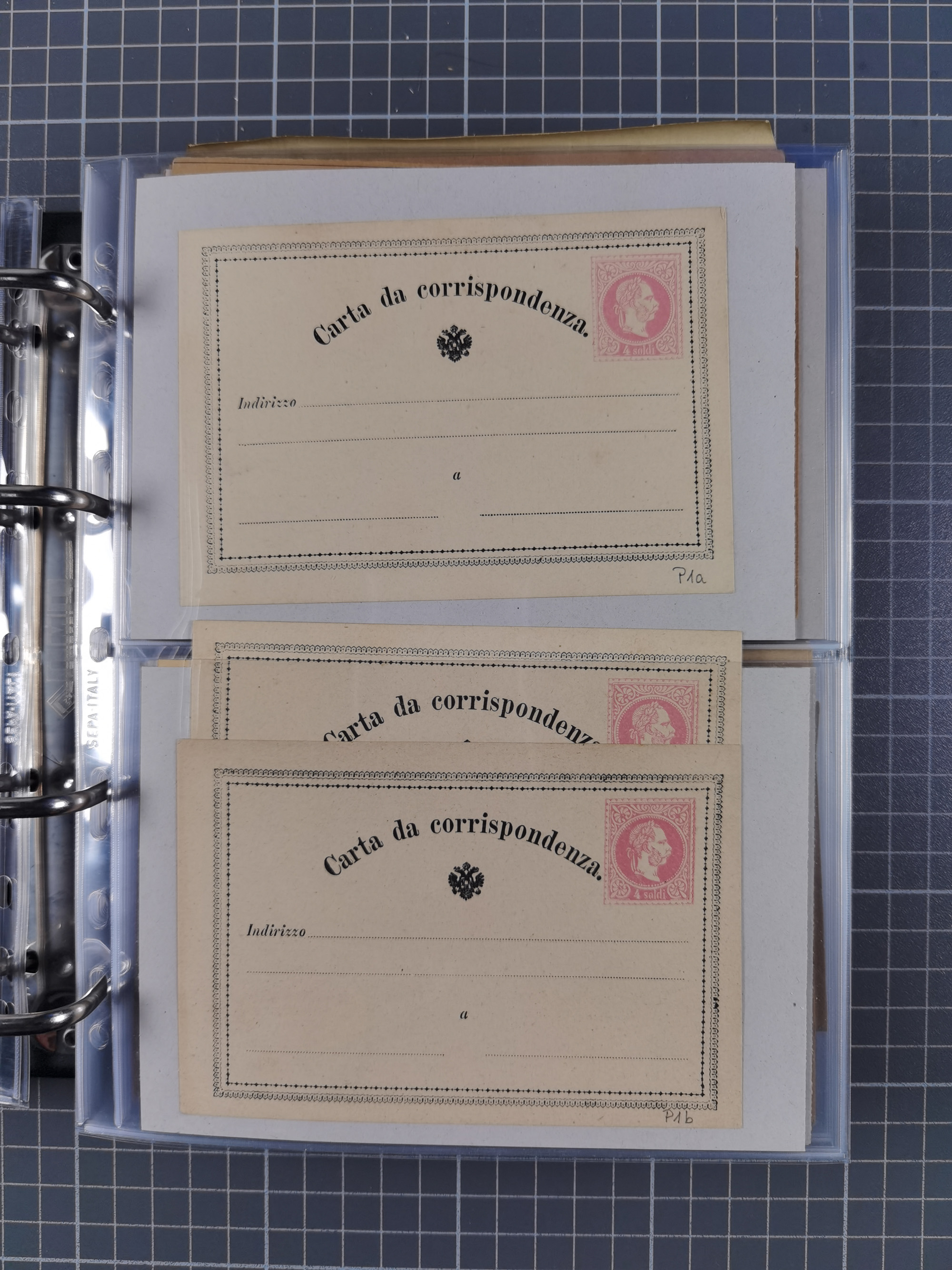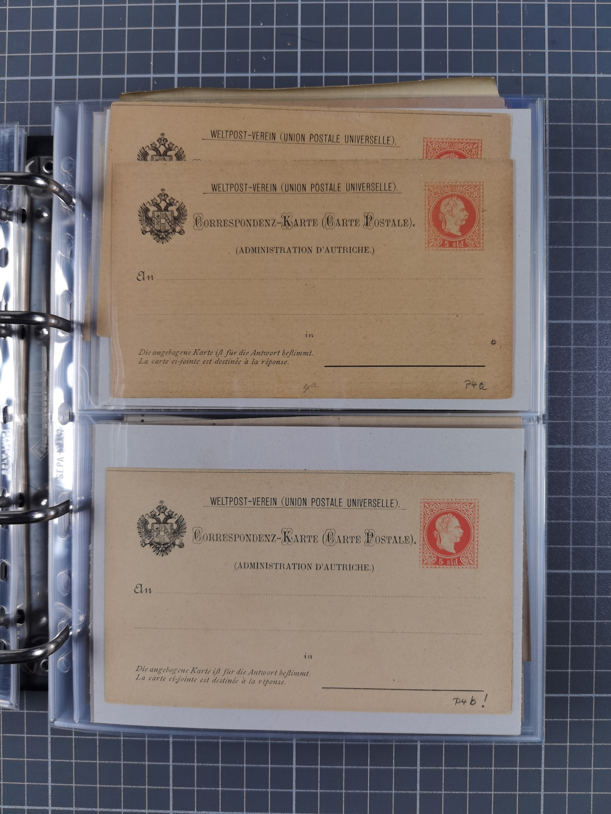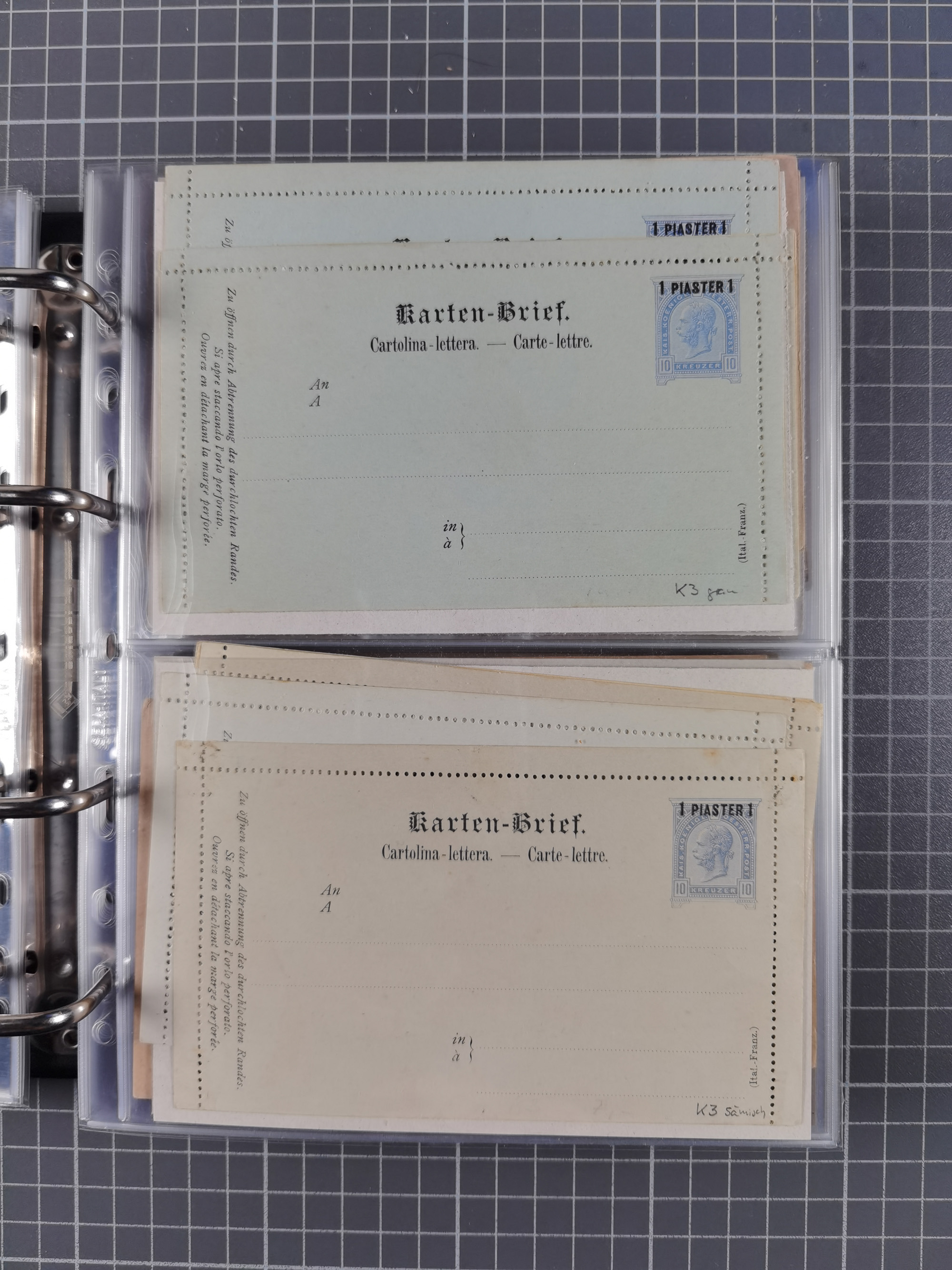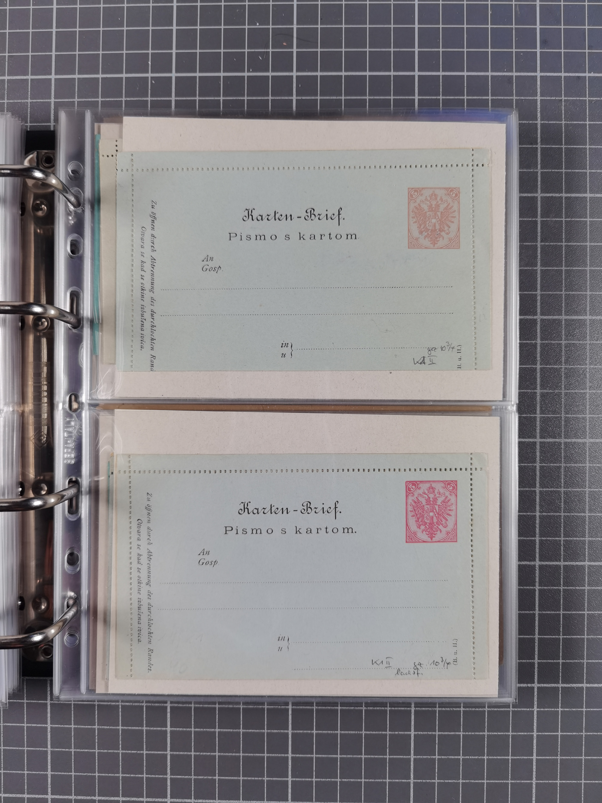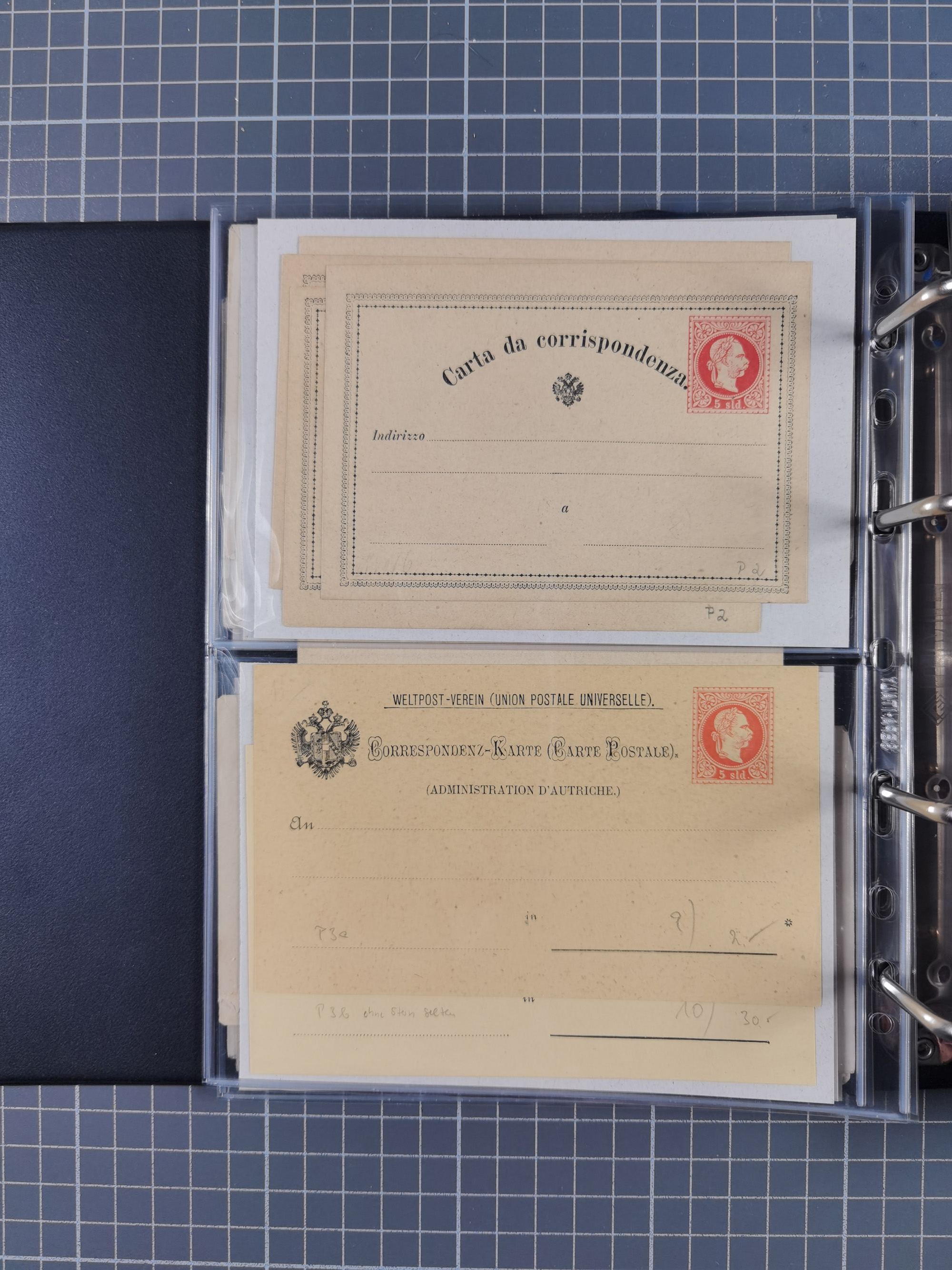 1869/1900, Sammlung von über 100 meist verschiedenen Ganzsachenkarten, überwiegend ungebraucht, spezialisiert mit Katalognummern auf sehr alten Blättern teils mit Falz befestigt, dabei auch Lombardei etc., urig.
