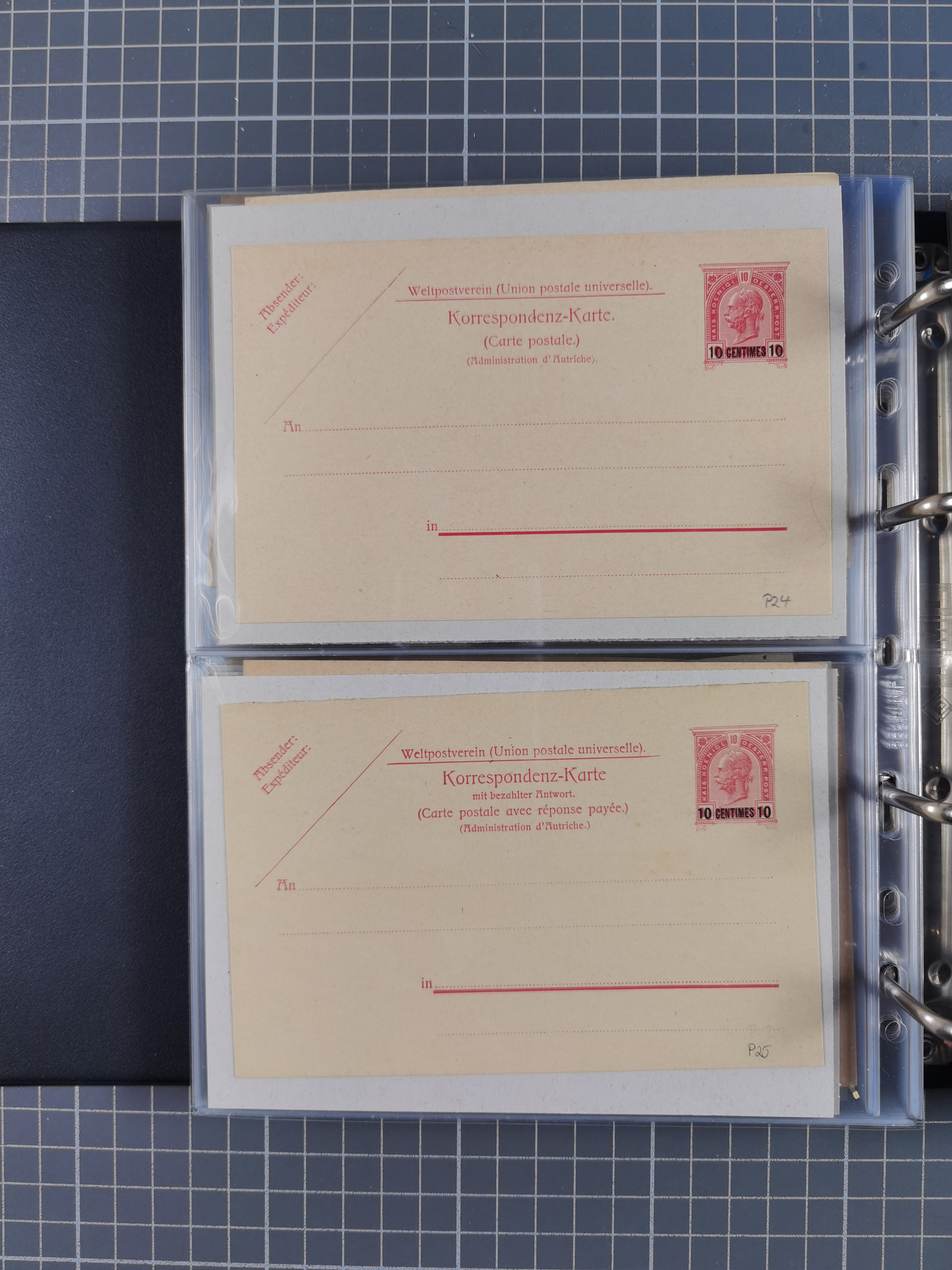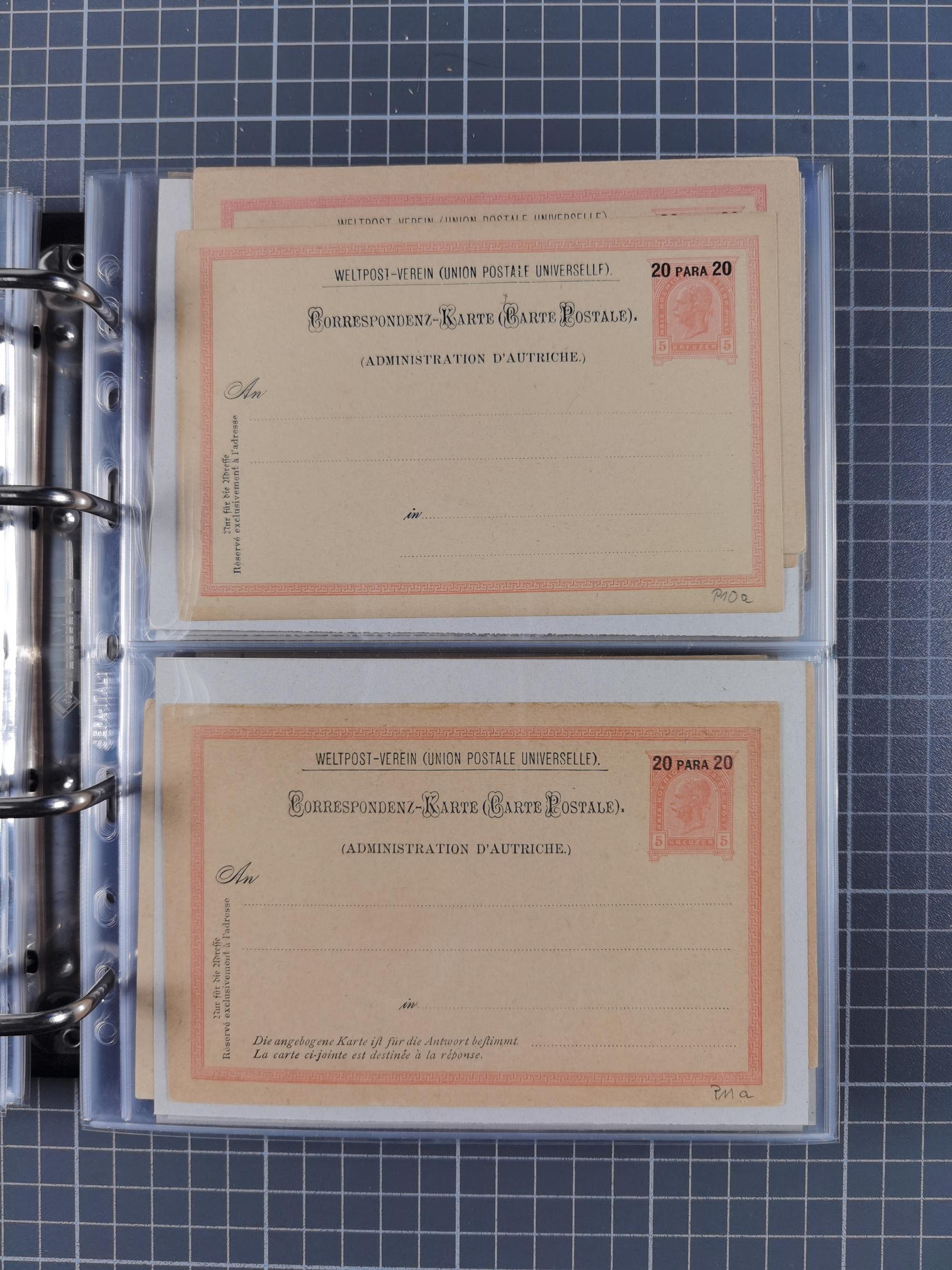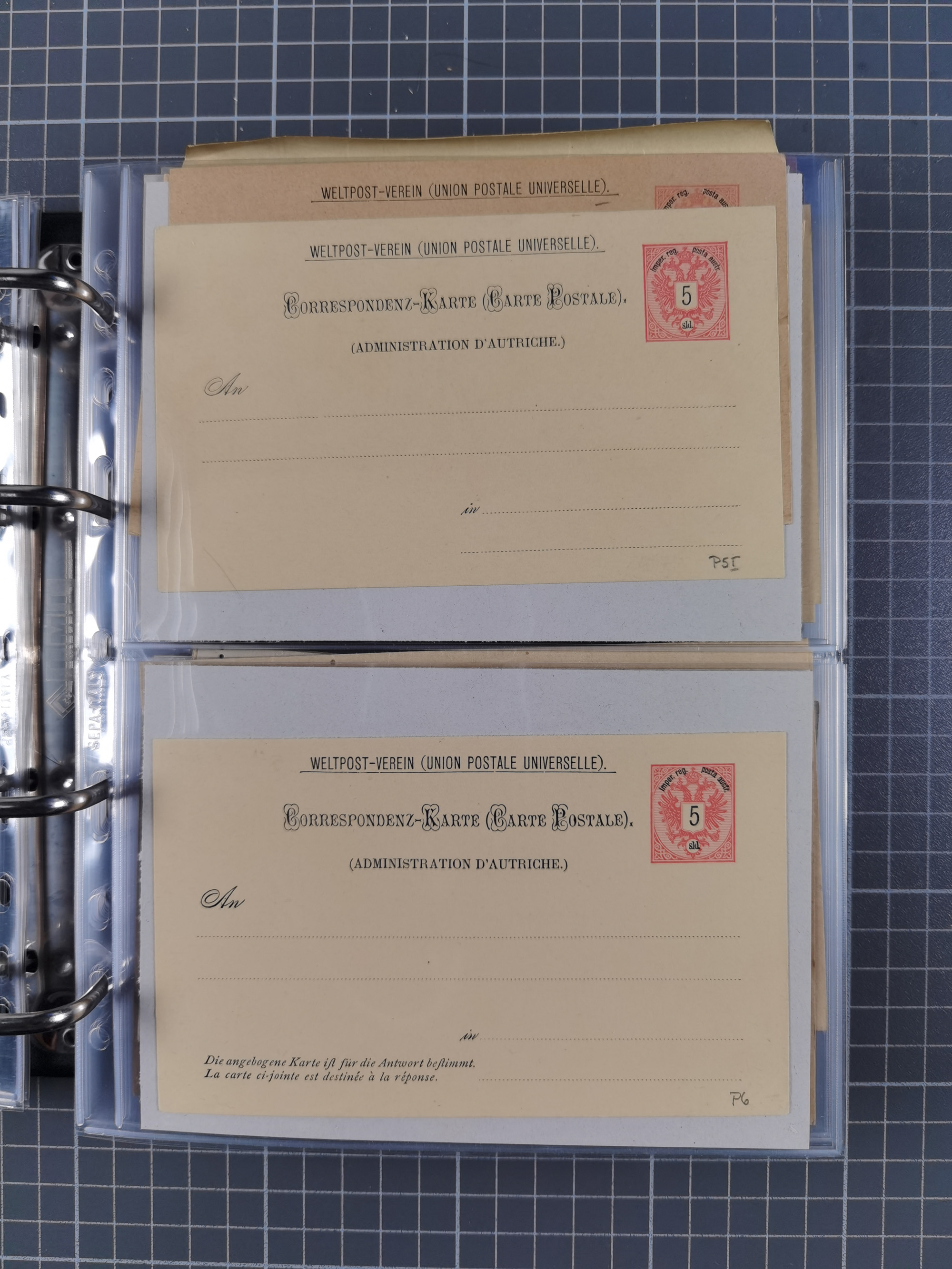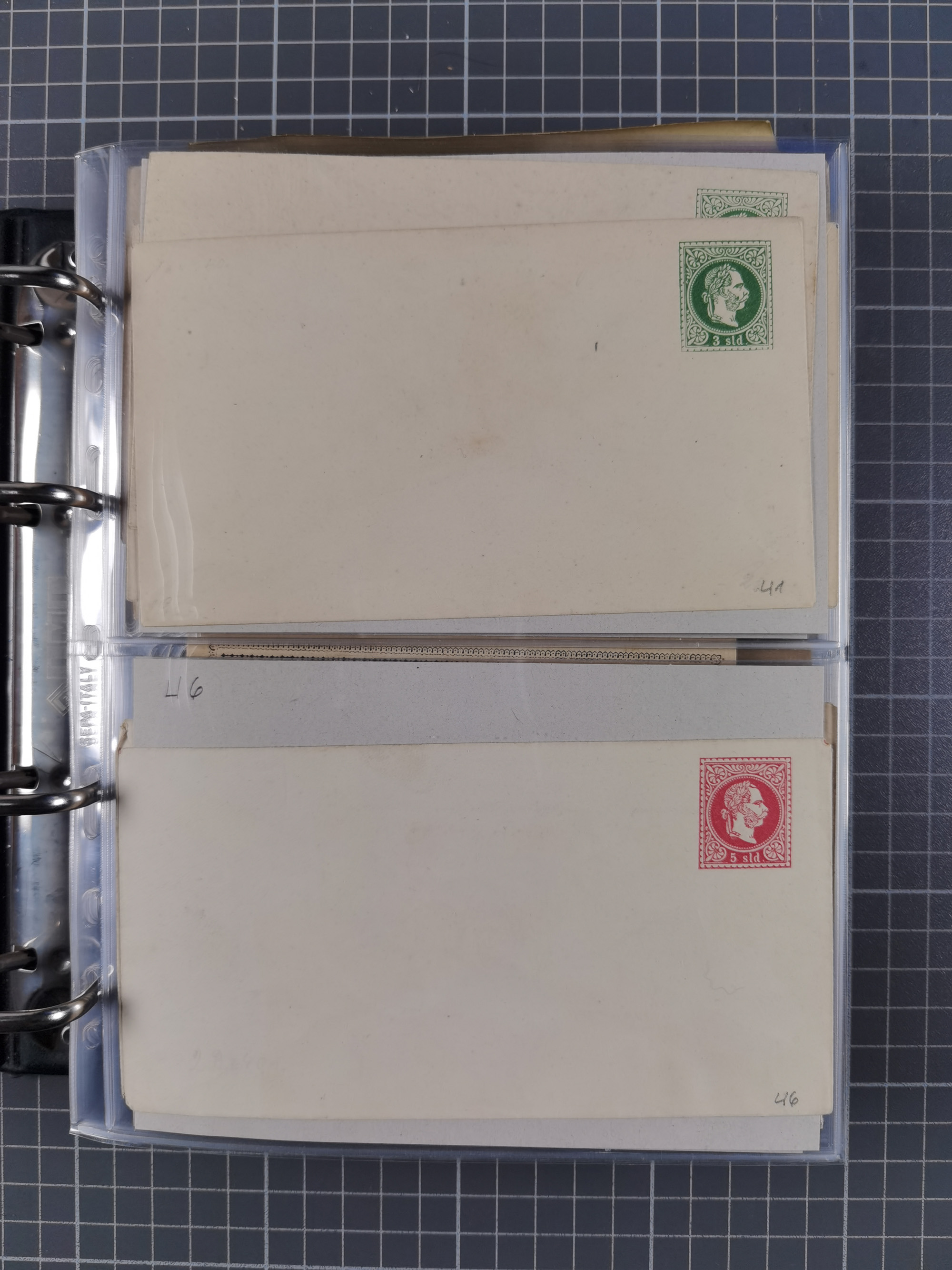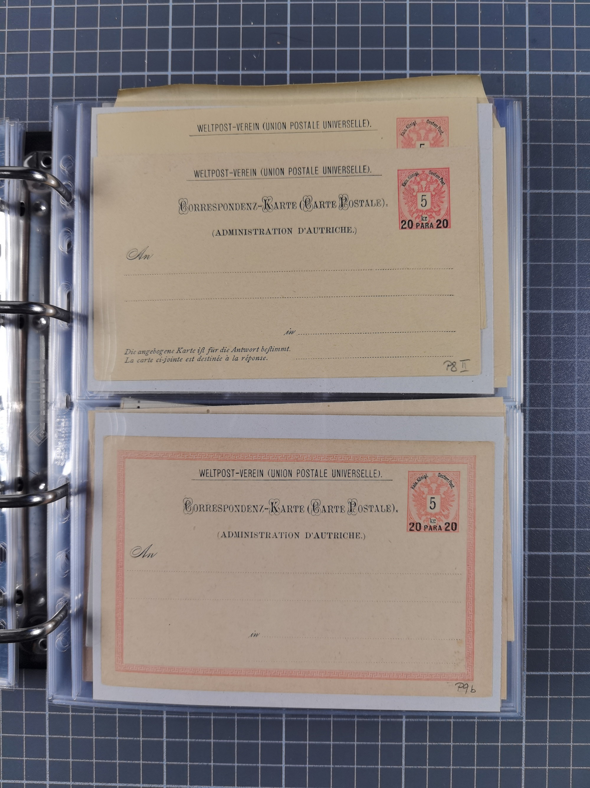 1869/1900, Sammlung von über 100 meist verschiedenen Ganzsachenkarten, überwiegend ungebraucht, spezialisiert mit Katalognummern auf sehr alten Blättern teils mit Falz befestigt, dabei auch Lombardei etc., urig.