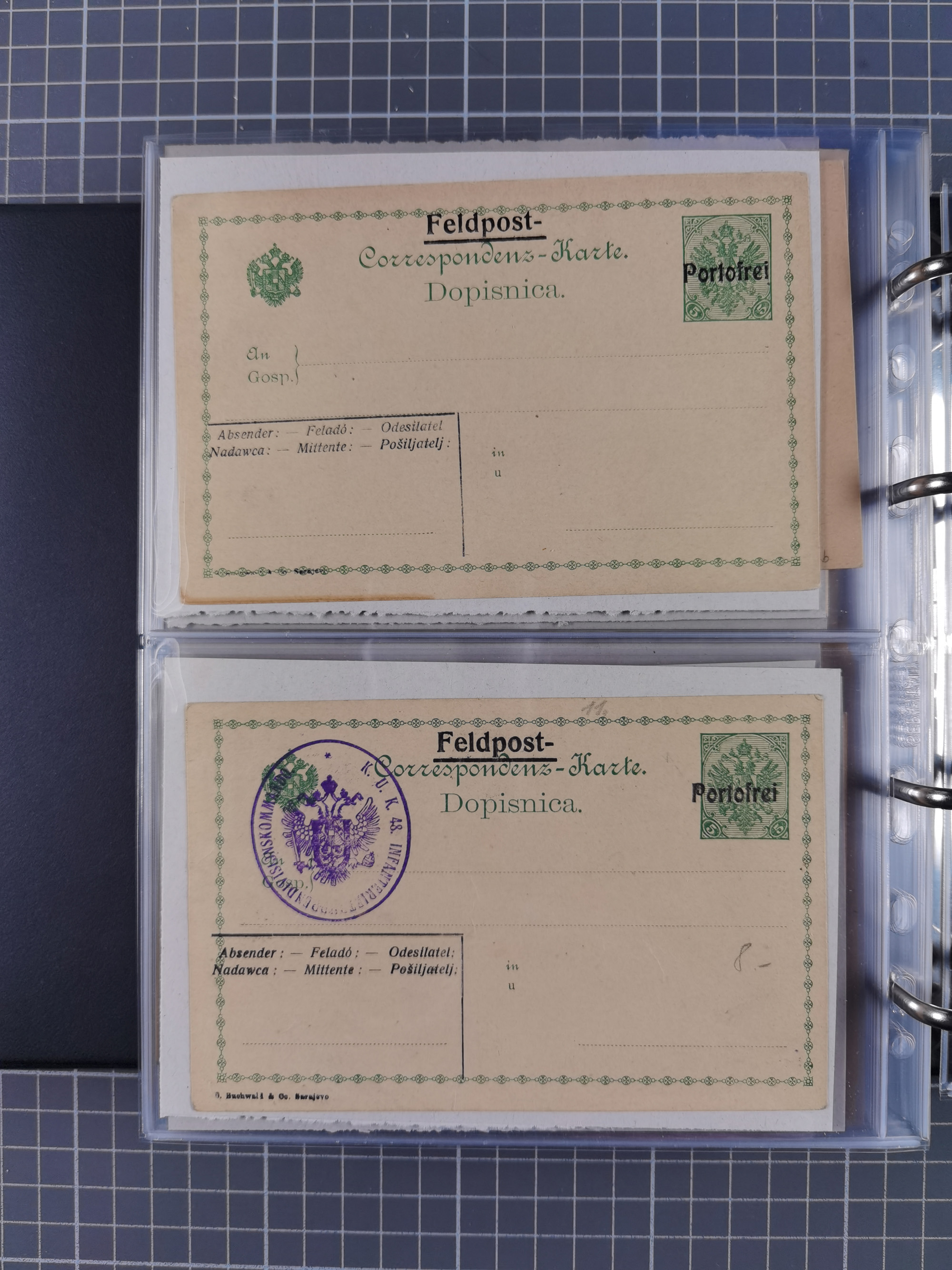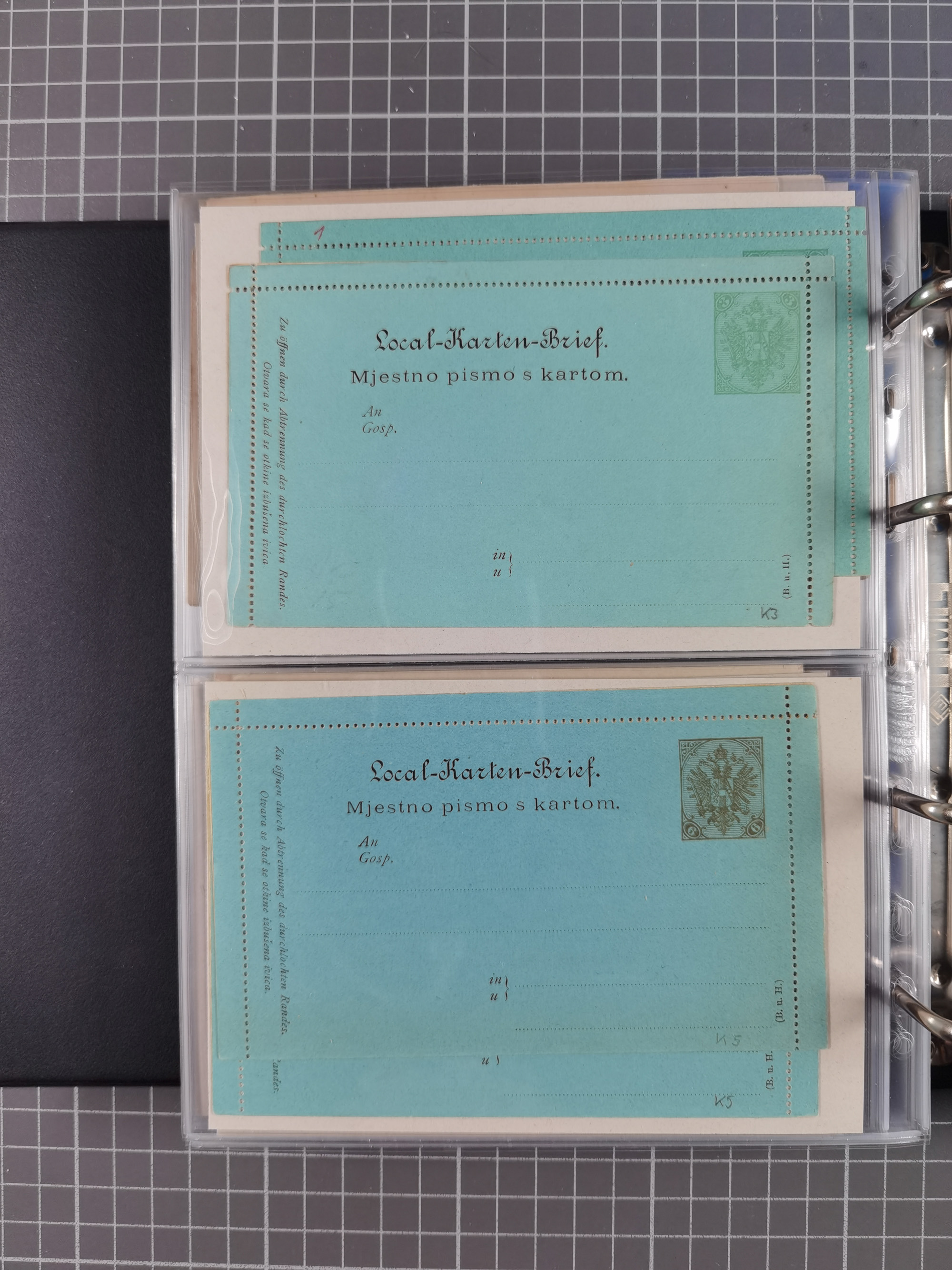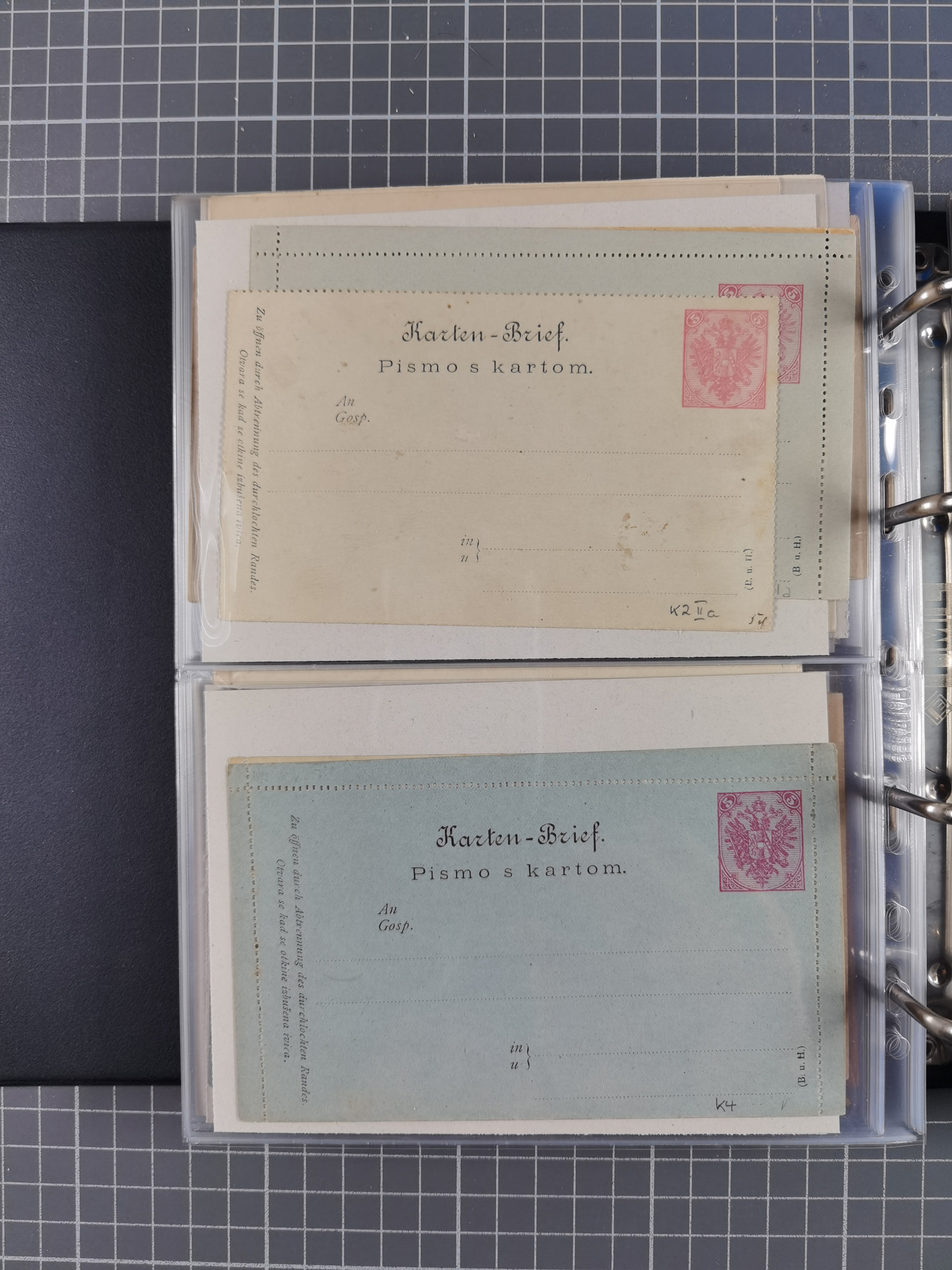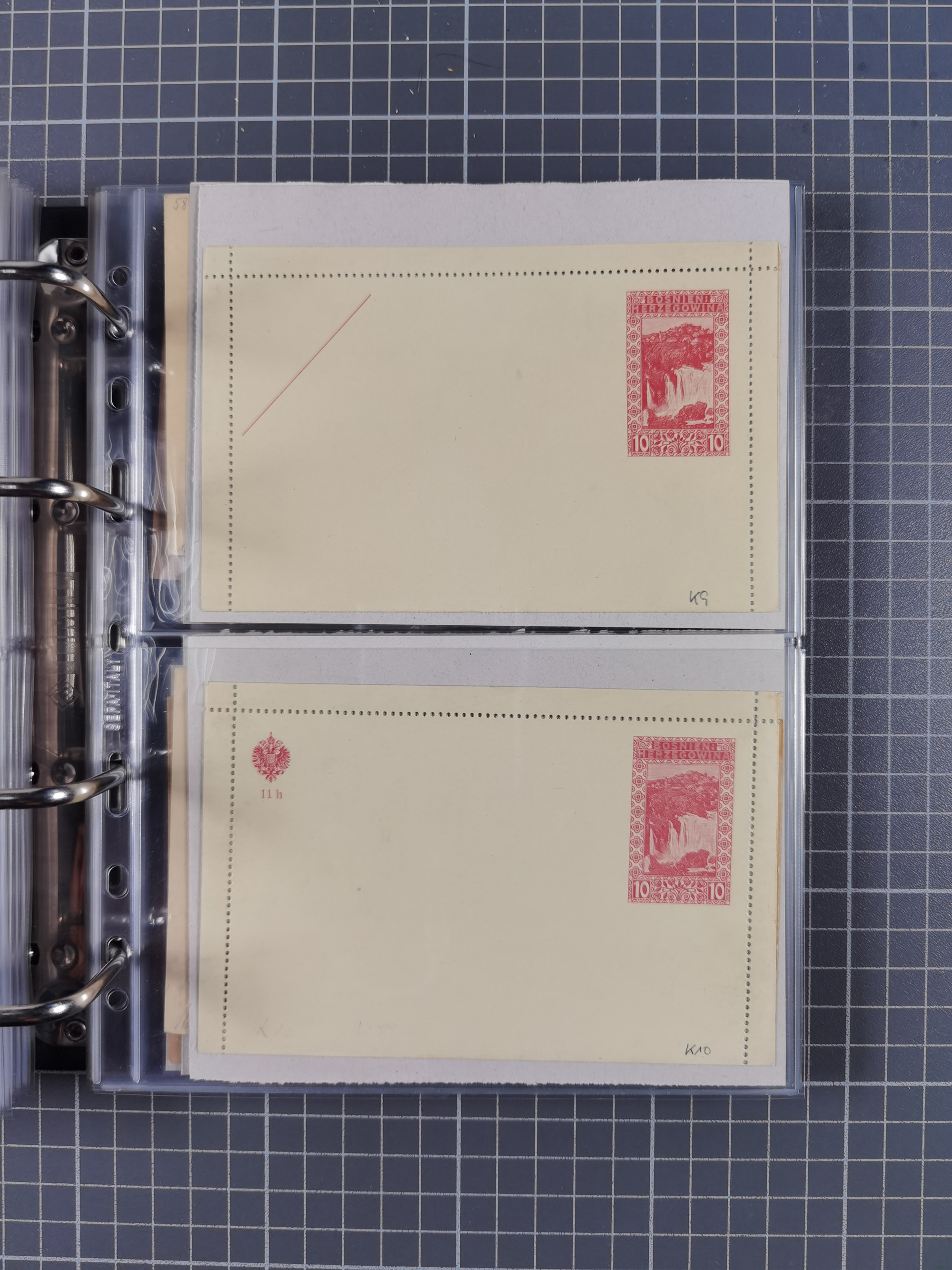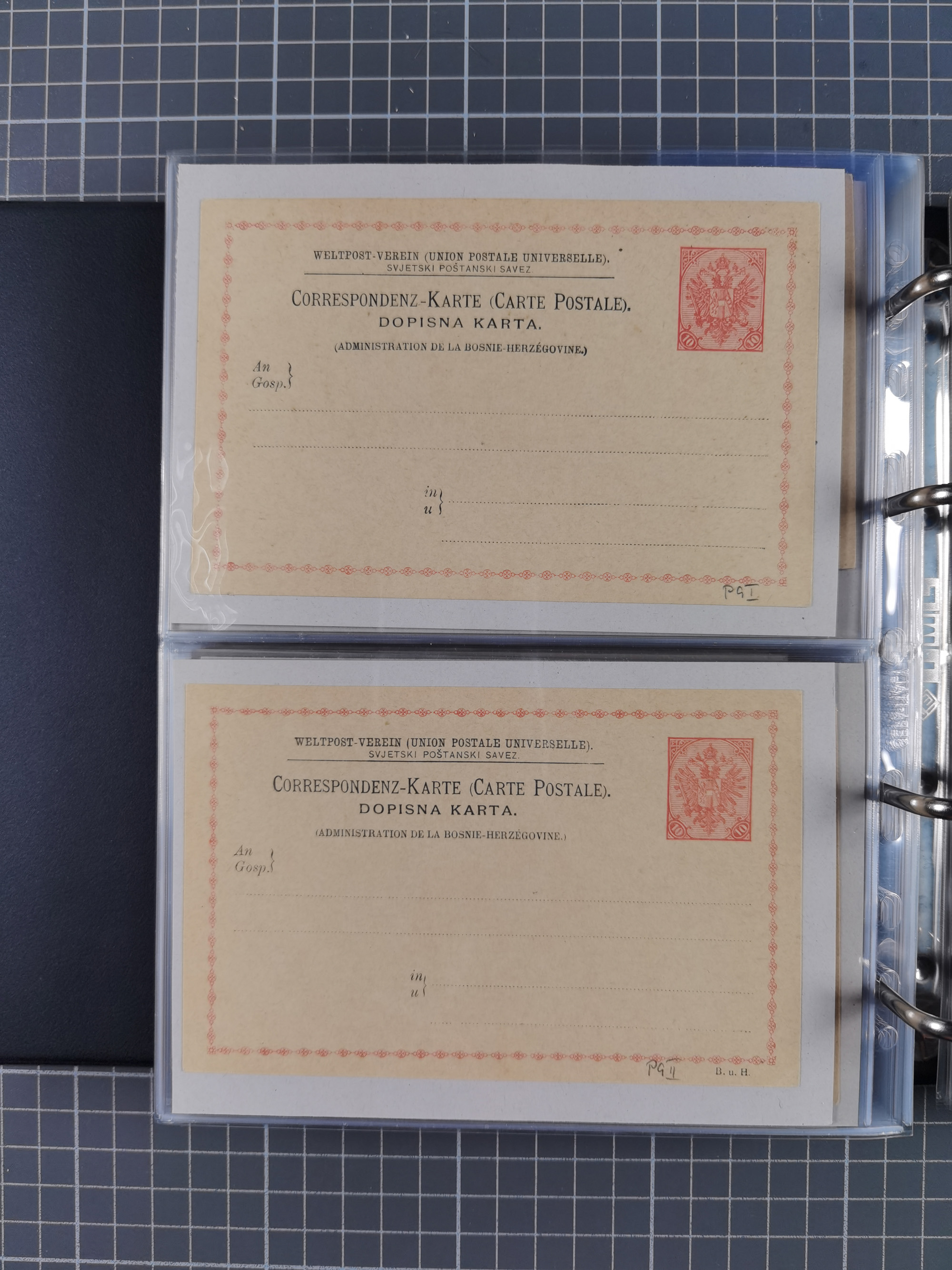 1879/1918, Ganzsachensammlung im Album mit Antwortkarten und Kartenbriefen, insgesamt über 60 Stück. Doppelzensurkarte nach Konstantinopel 1915 mit Bericht über das Kriegsgeschehen, meist gebraucht mit gesuchten Stempeln, dabei Gracanica, Samac, Tuzla-Doboj, Gorazda, Drvar, Trebinje, Foca, Livno und einige Feldpost.