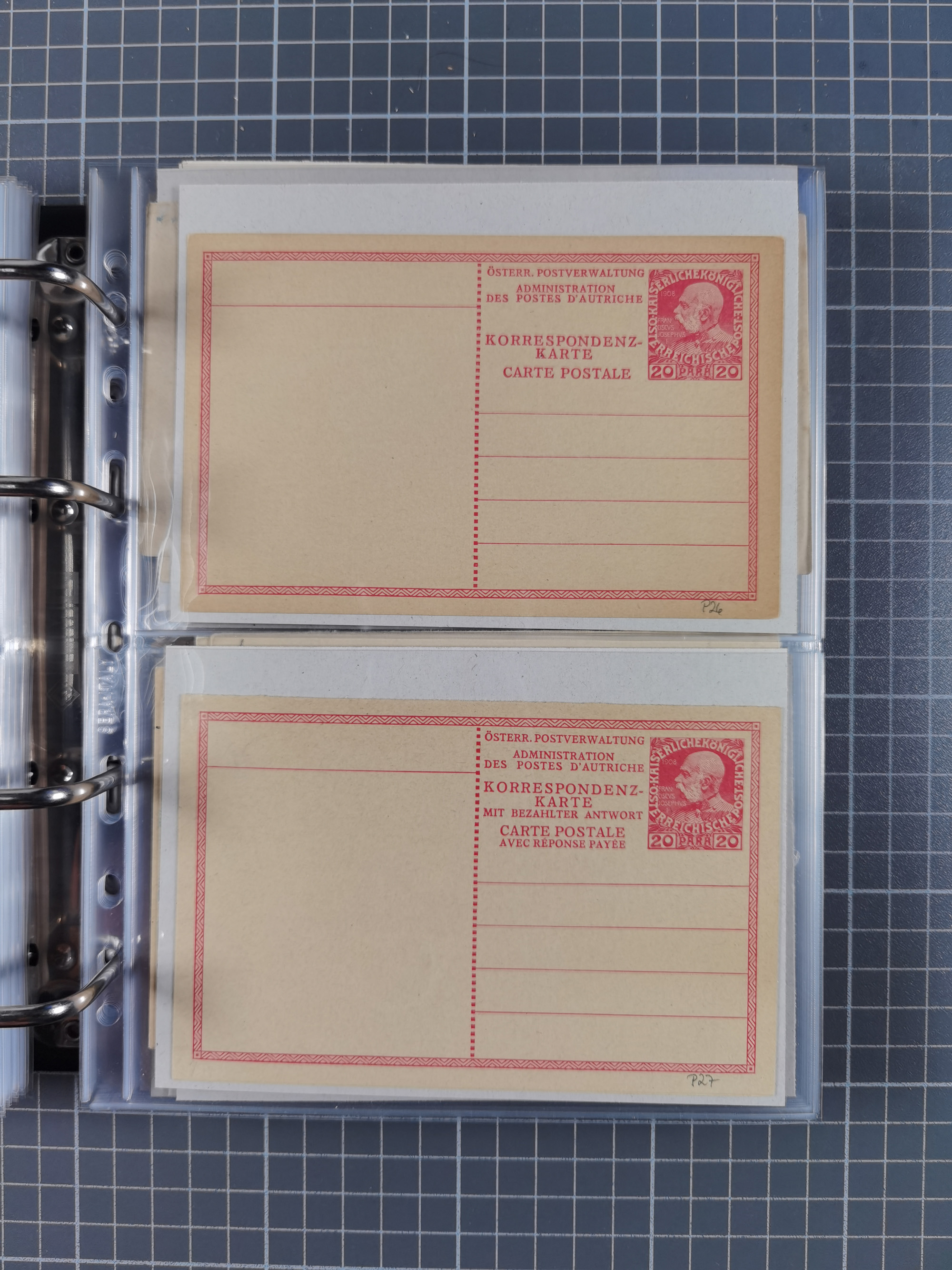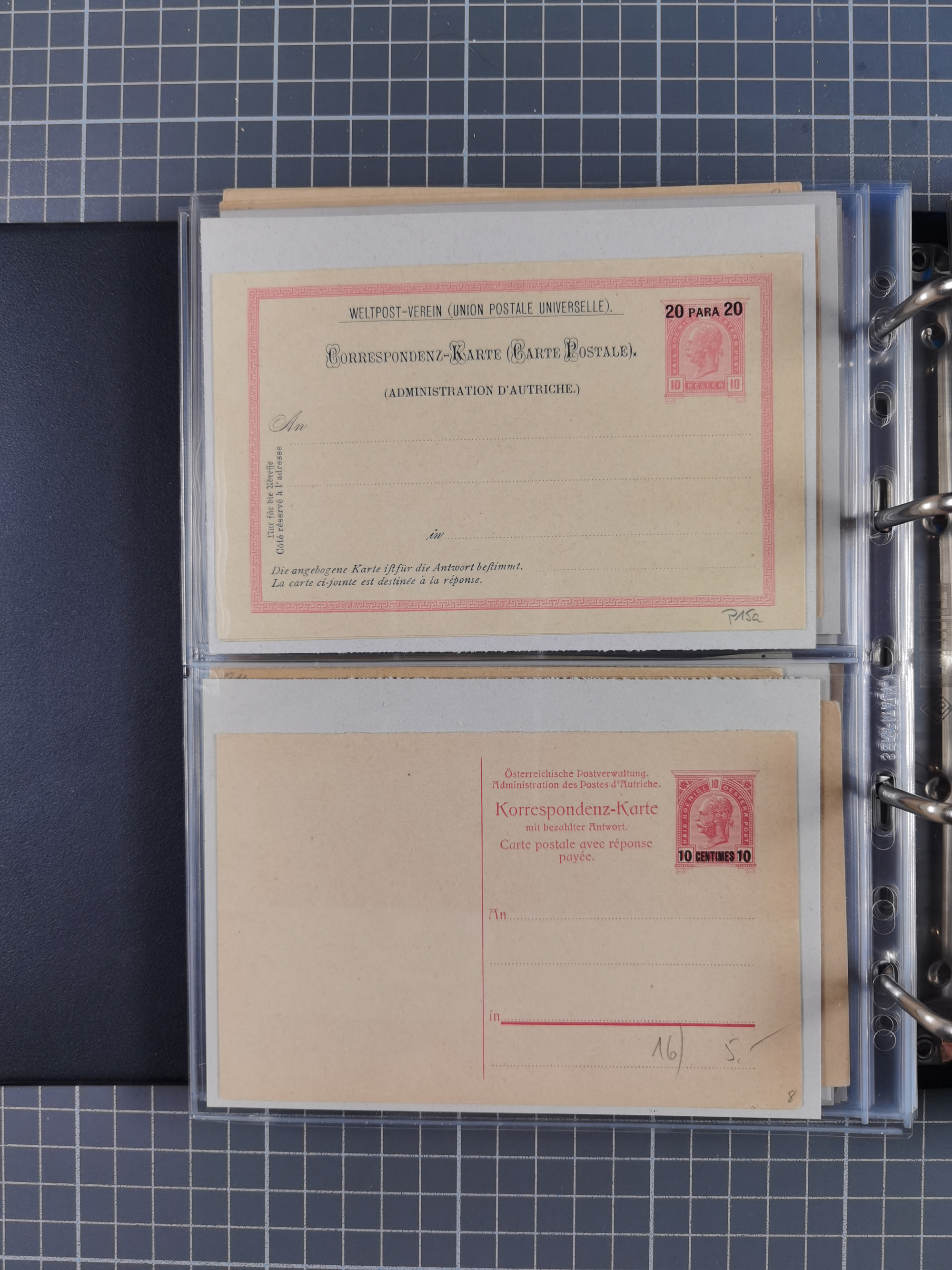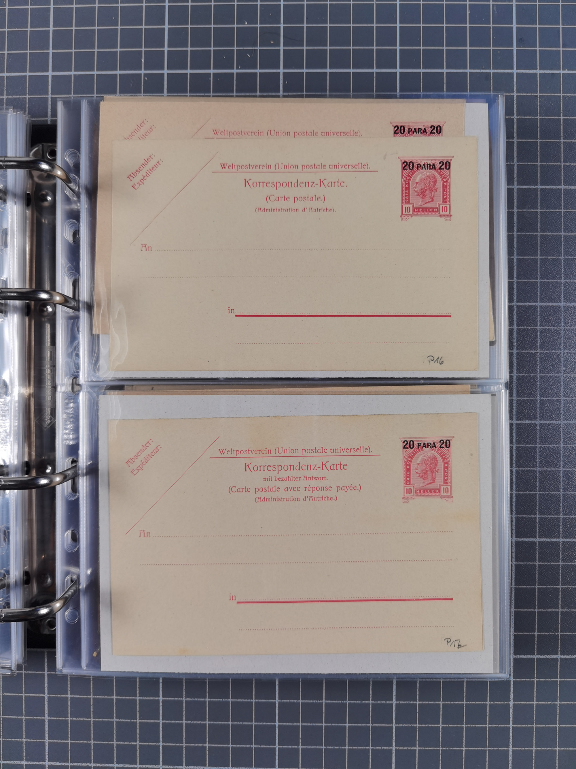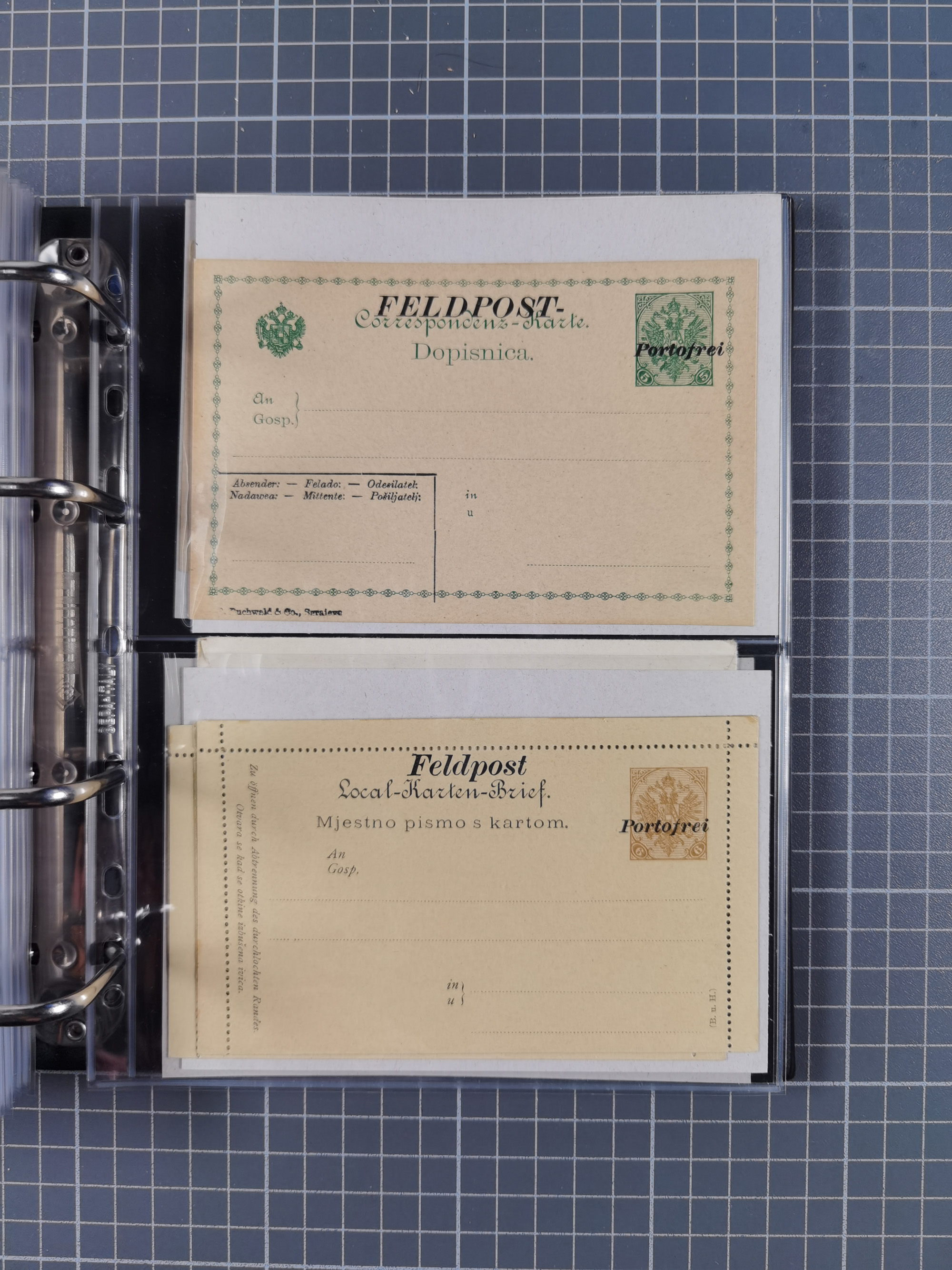 1879/1918, Ganzsachensammlung im Album mit Antwortkarten und Kartenbriefen, insgesamt über 60 Stück. Doppelzensurkarte nach Konstantinopel 1915 mit Bericht über das Kriegsgeschehen, meist gebraucht mit gesuchten Stempeln, dabei Gracanica, Samac, Tuzla-Doboj, Gorazda, Drvar, Trebinje, Foca, Livno und einige Feldpost.