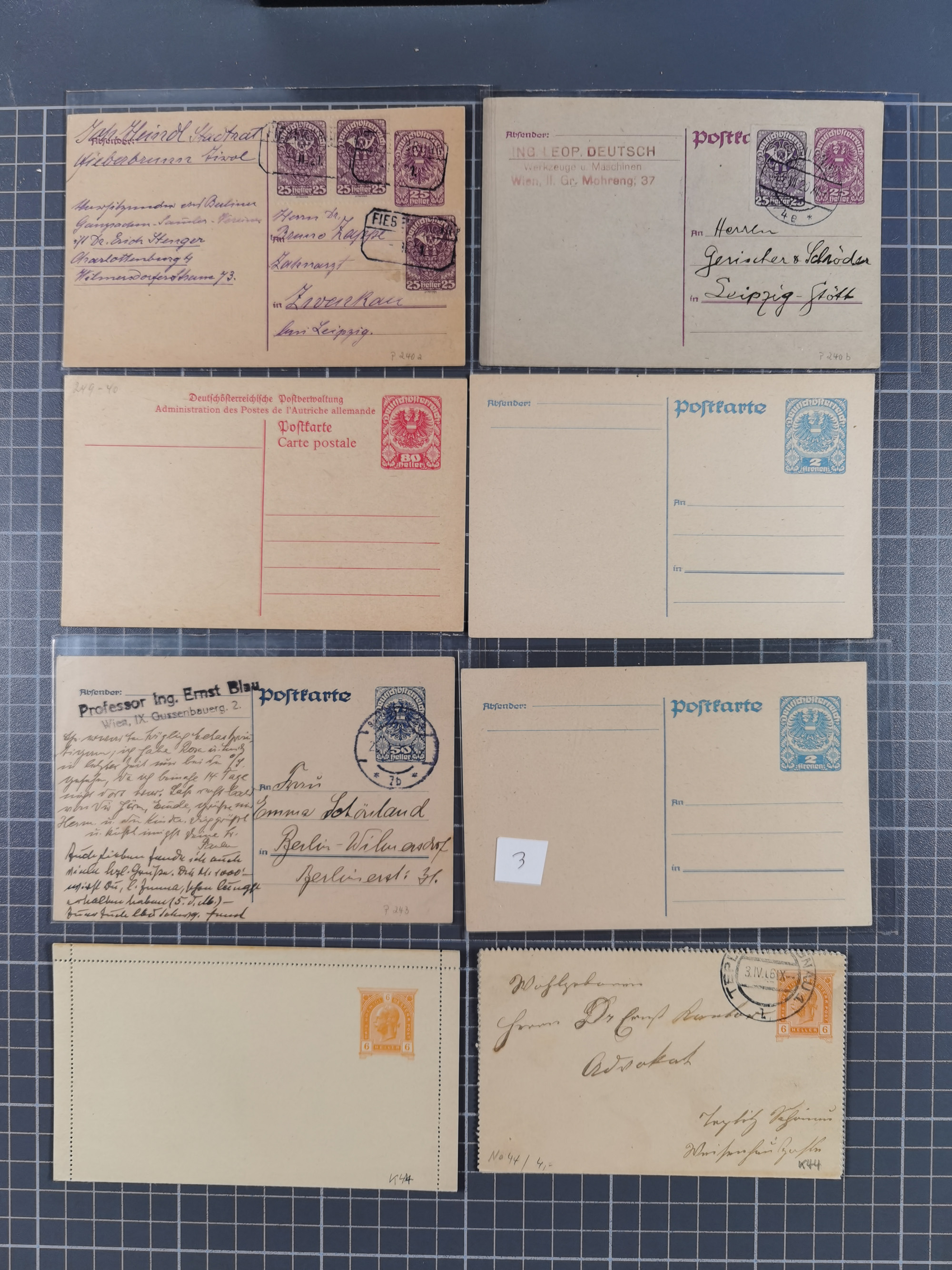 1864/1943 (ca.), interessanter Bestand mit über 180 Briefen und Karten, hauptsächlich Verwendungen im heutigen Gebiet der Ukraine oder Polens, Schwerpunkt Ganzsachen, schöner Teil K.u.K Feldpost, dazu Paketkarte, etc., die Erhaltung etwas leicht unterschiedlich, in 3 Steckbüchern