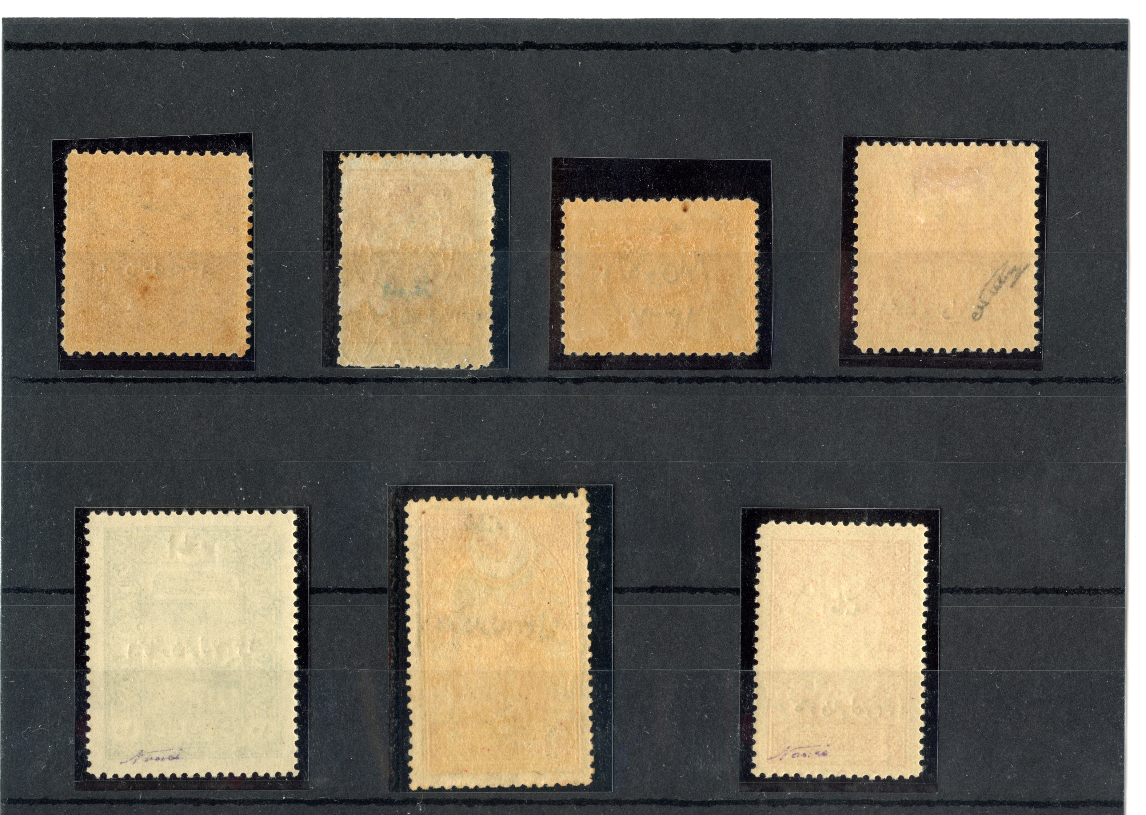 1863, Tughra Postage Due issues, unused sets of singles in red-brown, brick red, and brown, mix of original gum and without gum examples, mostly good to large margins, some trivial imperfections as expected of this very thin paper, a difficult set to assemble, fine. (Isf 7-18)