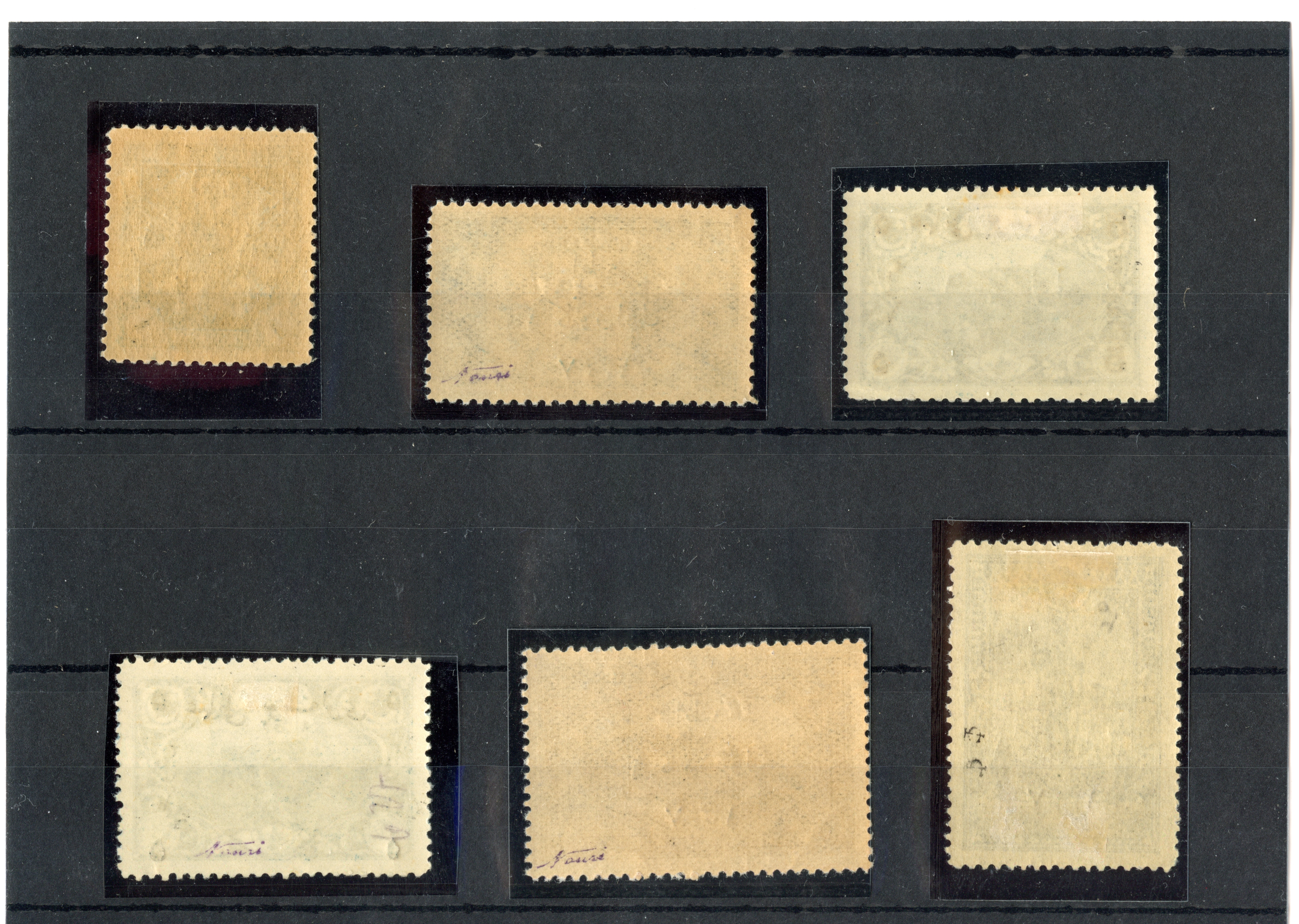 1875, SHEHIR overprints (isfila Type II) in black, blue and red on 1868 Duloz postage due issue 20 pa. brown and 1 pia. brown, perf 13¼. The complete set of 6 stamps unused and very fresh, mostly catalogue unpriced and in unused condition extremely scarce.