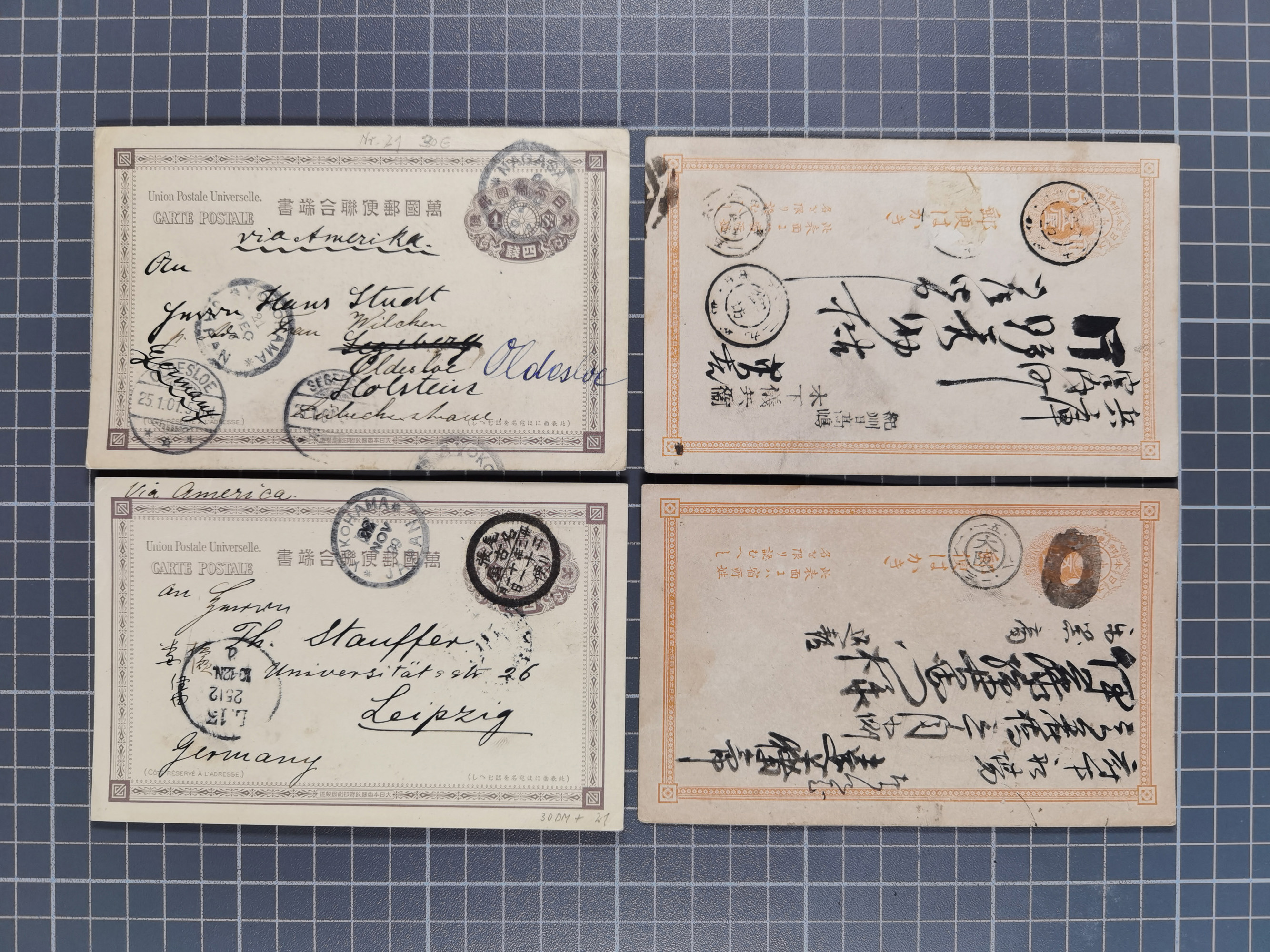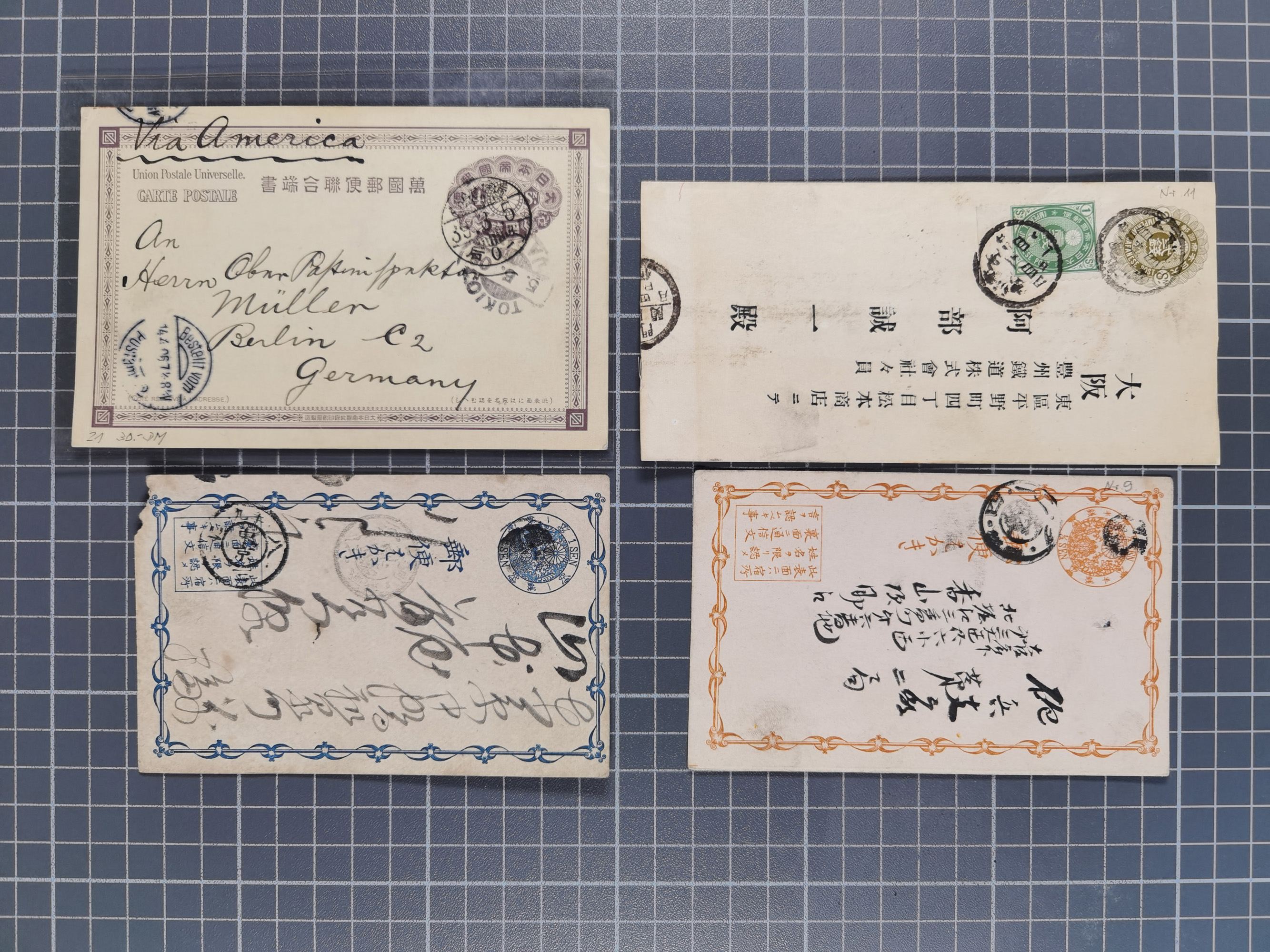1893/1940, Stationery cards and envelopes including good cancellations,1935 Manchukuo set with spec. cancel, 1936 German Reich incoming air mail via Amsterdam-Batavia-Singapore, good air mail covers, some occasional faults, mostly in good condition