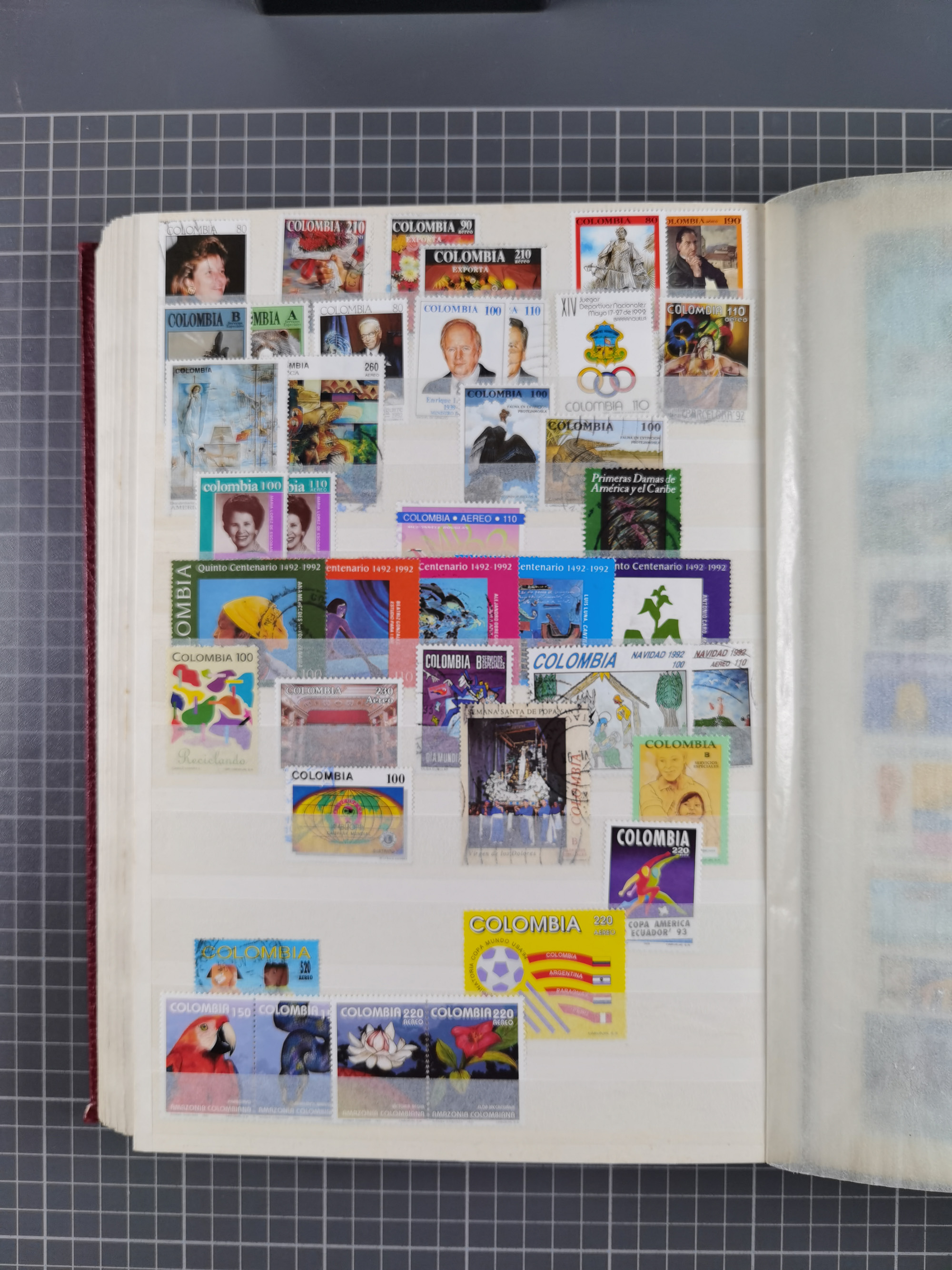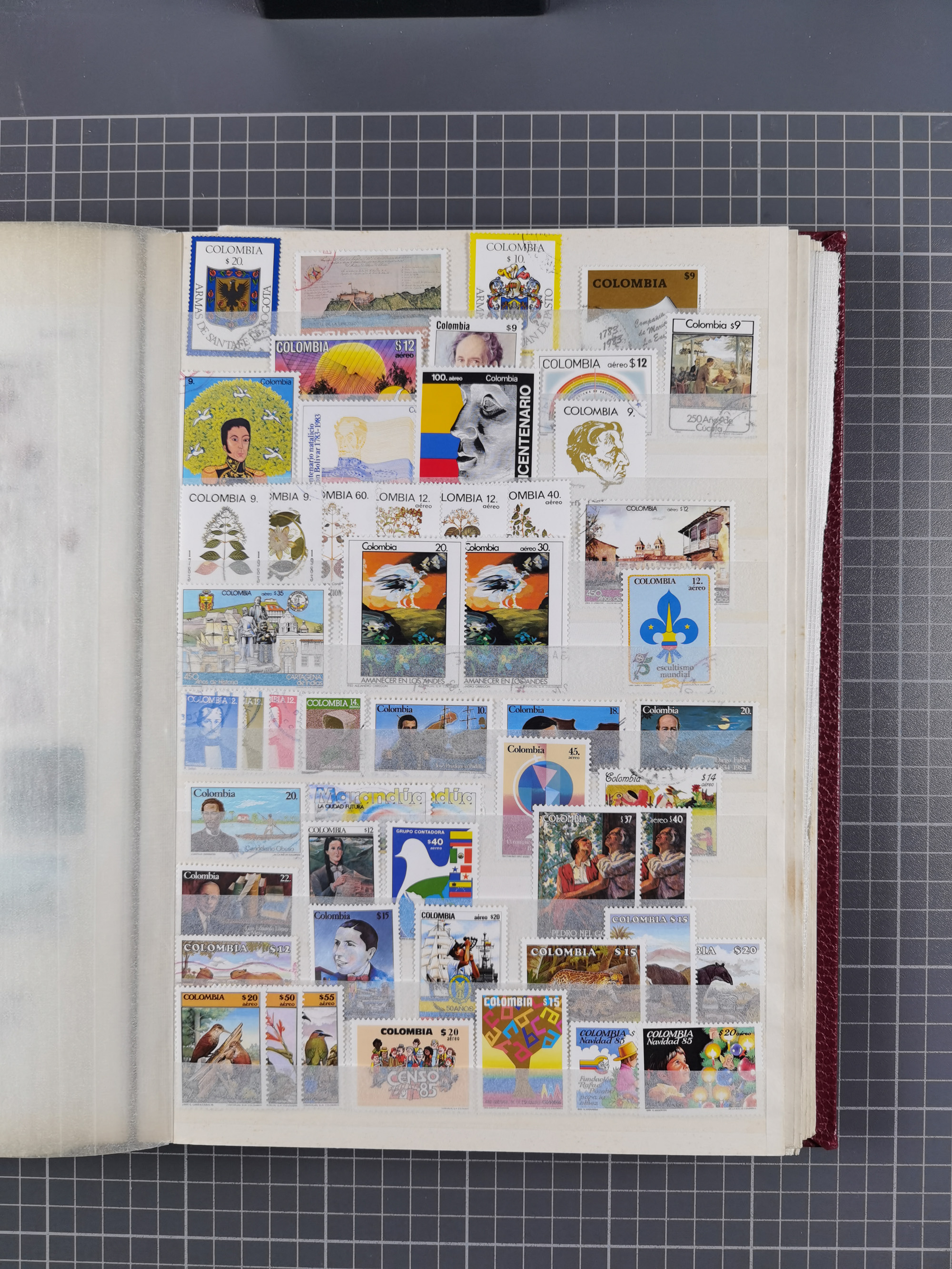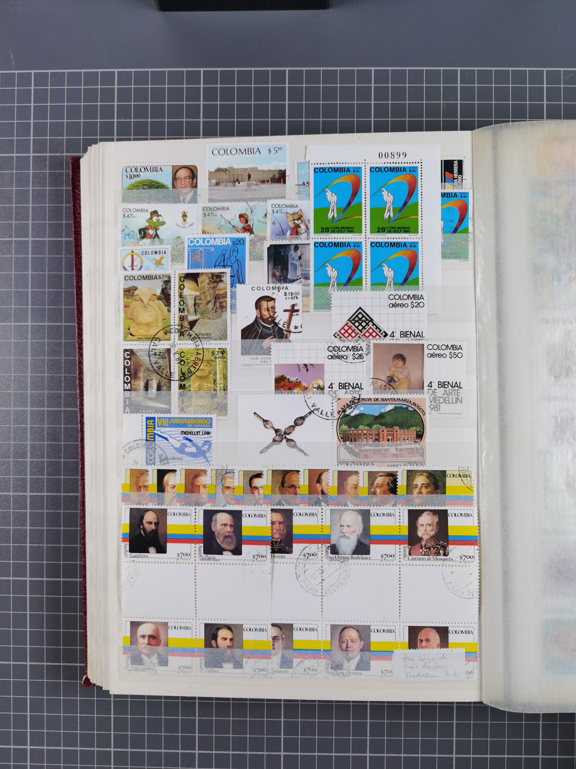 1917, Camilo Torres 1 c., plate proofs in black, green, sepia and orange, each in block of ten without gum, the orange block with horizontal crease affecting the bottom row, the sepia one toned and a few minor faults, otherwise fine, scarce assembly