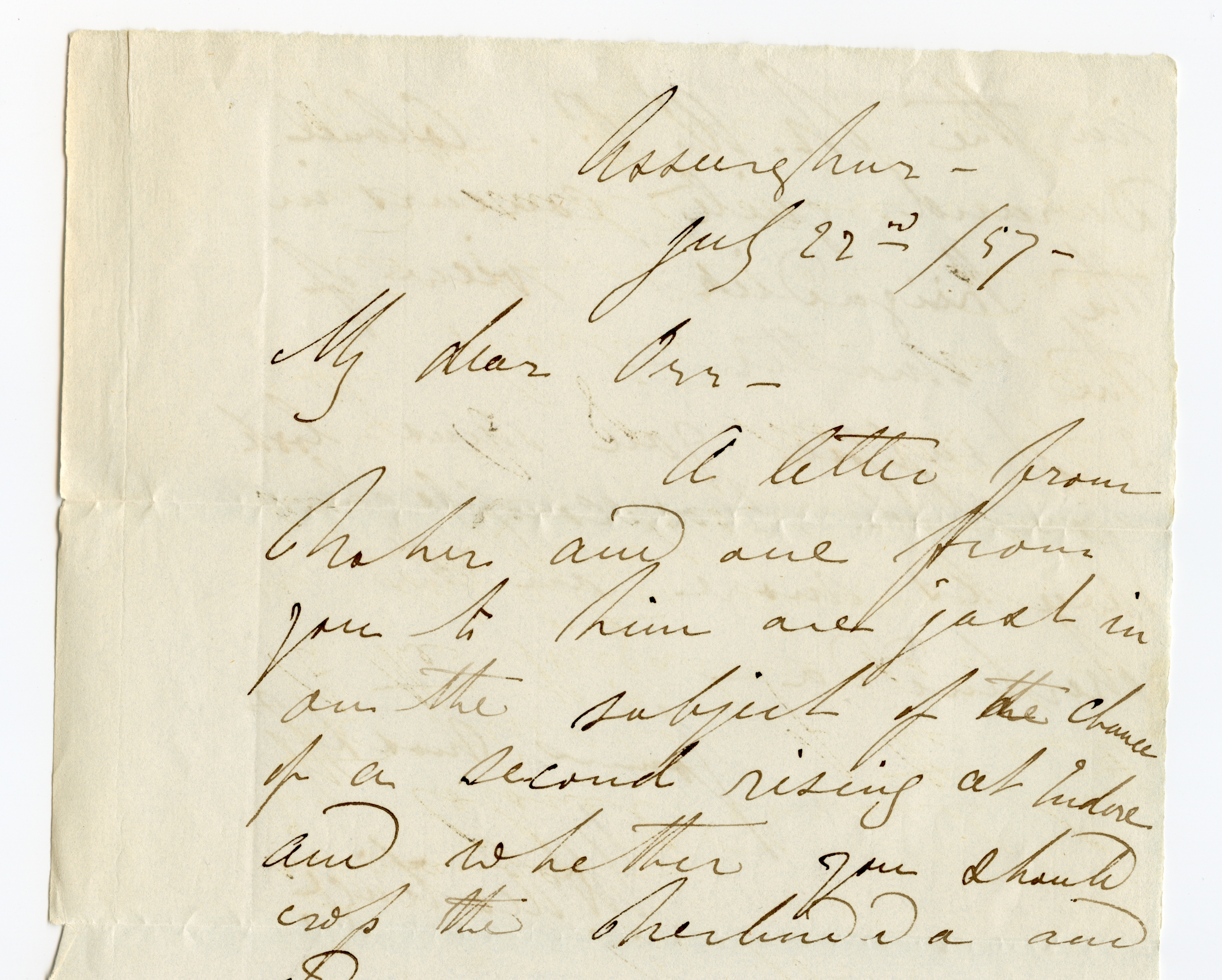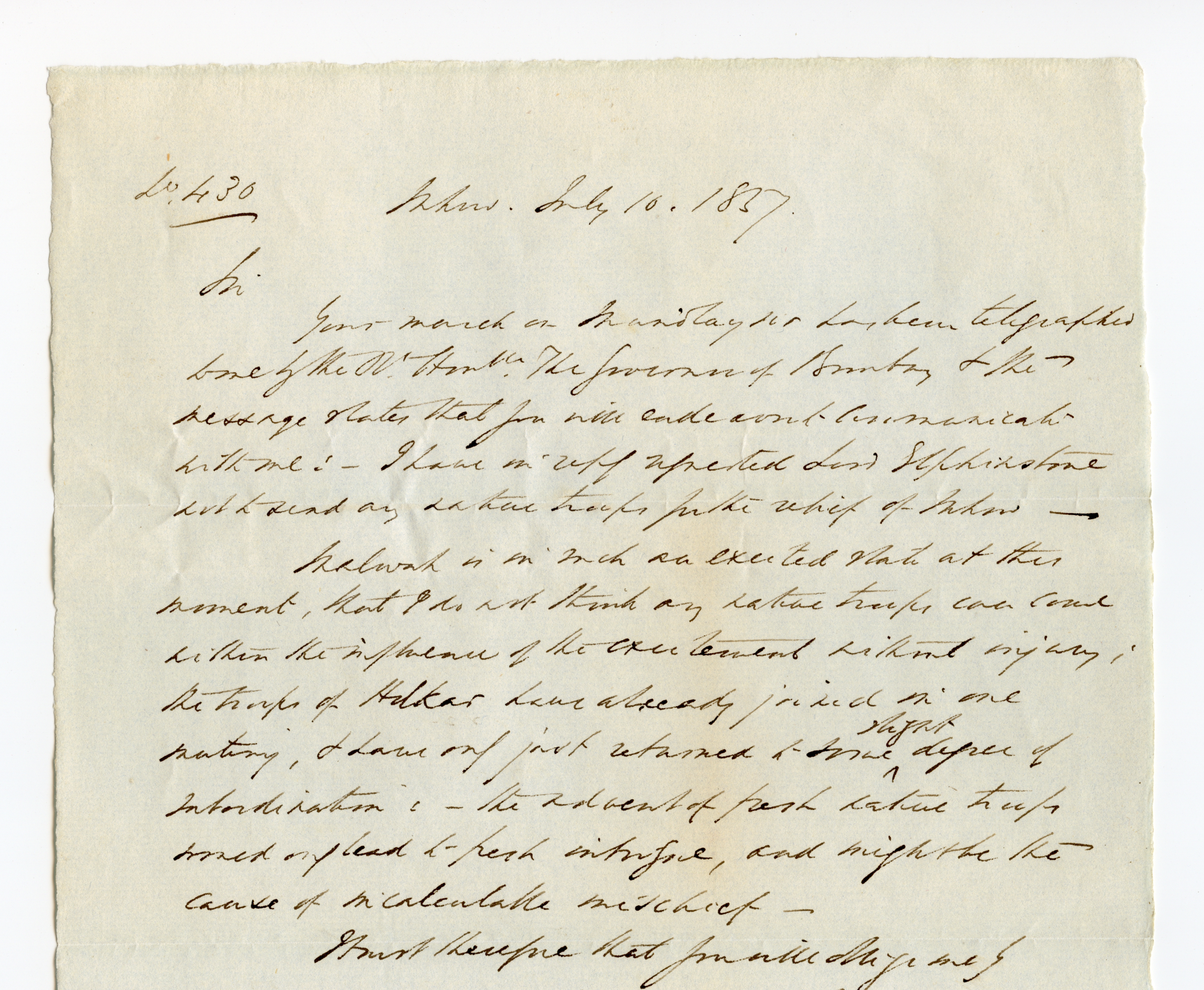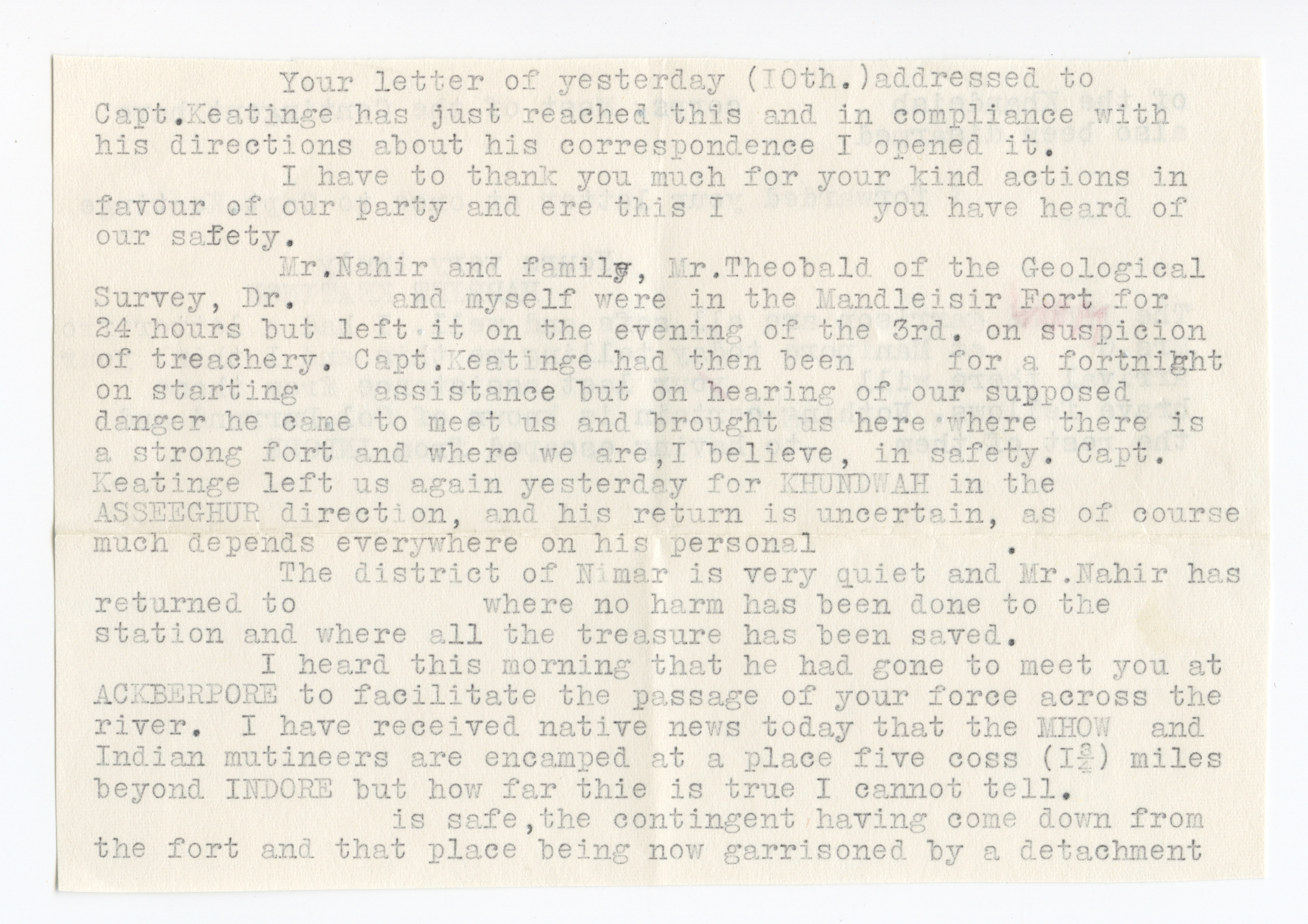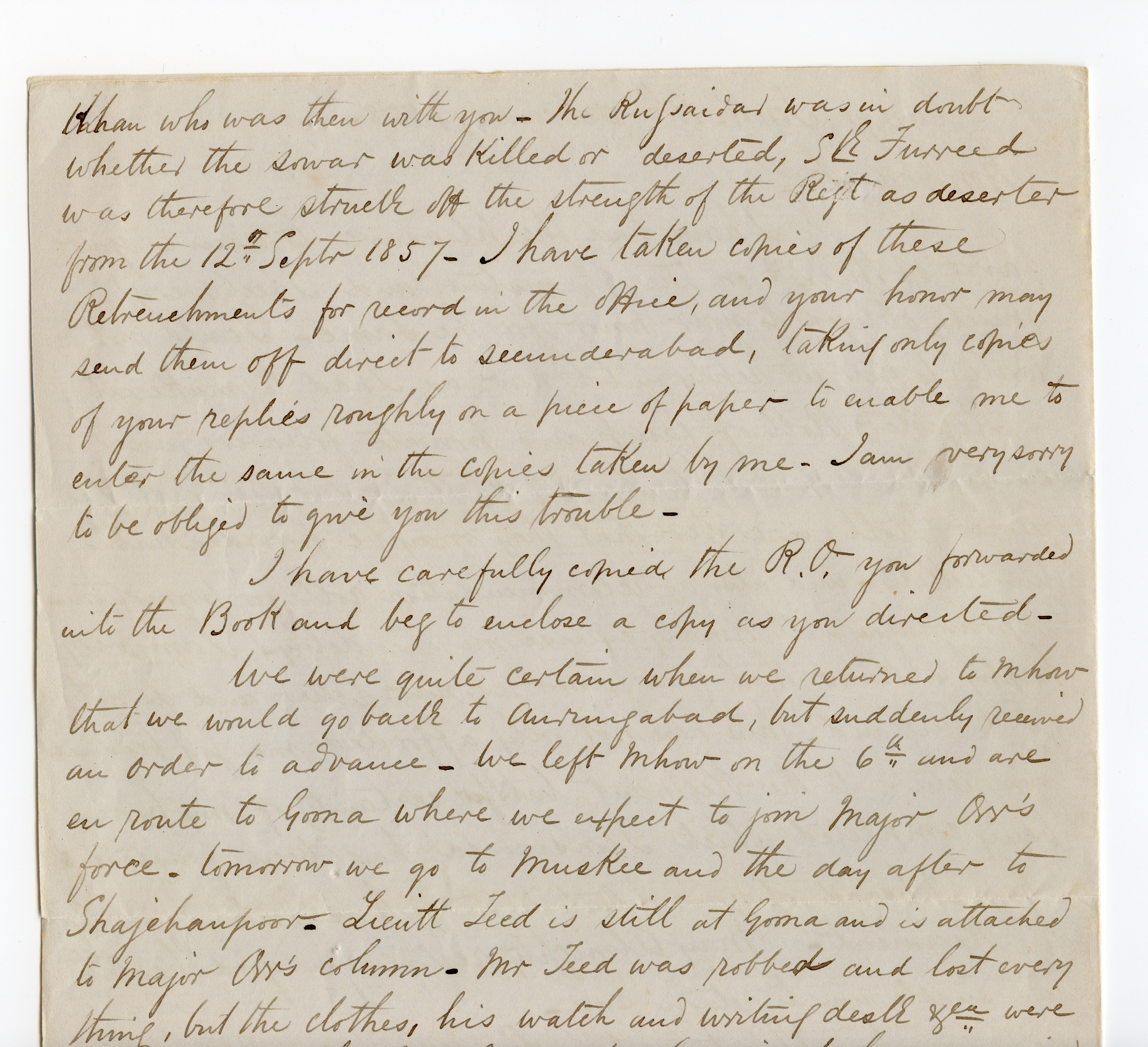 1857/58, Indian Rebellion, 4 covers (one weak in the folds) with original contens to Captain Patrick James Orr, all endorsed "On public service". Partly interesting contens about the uprising, one letter with transcription.