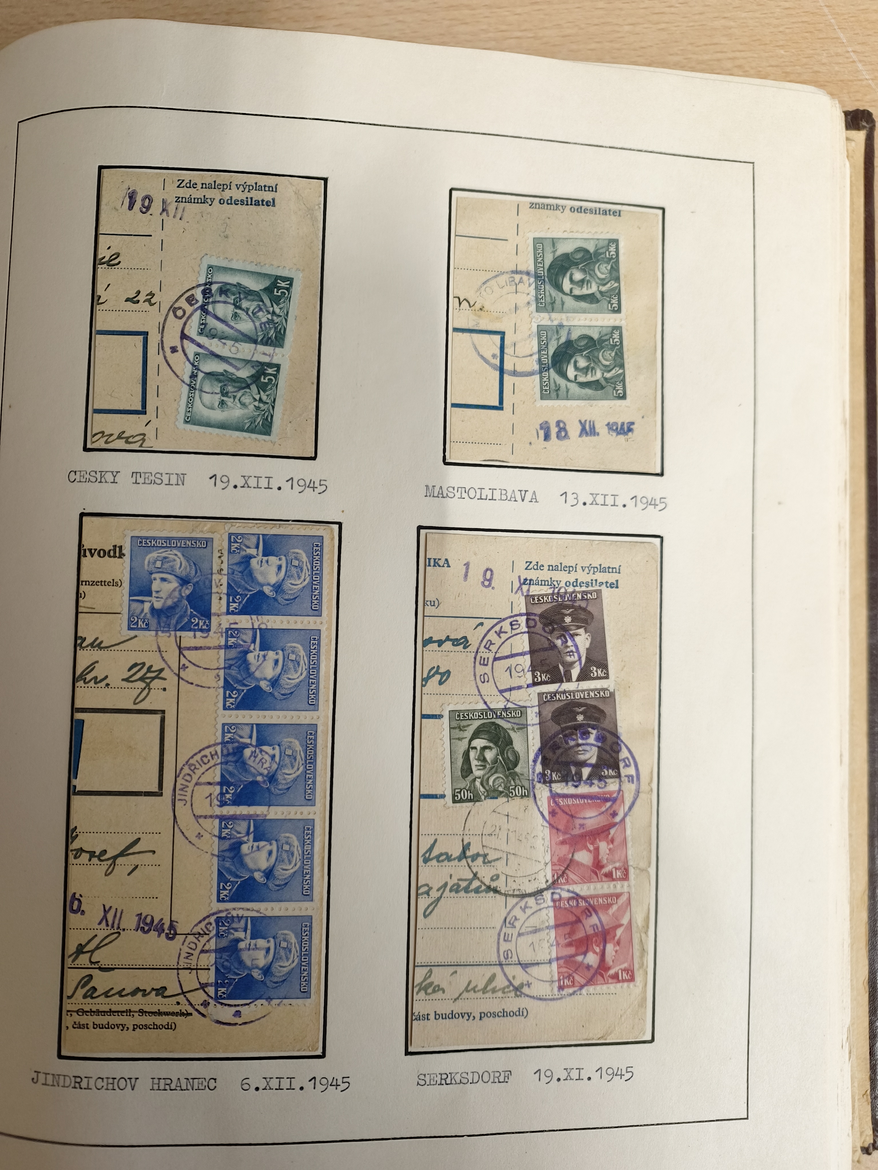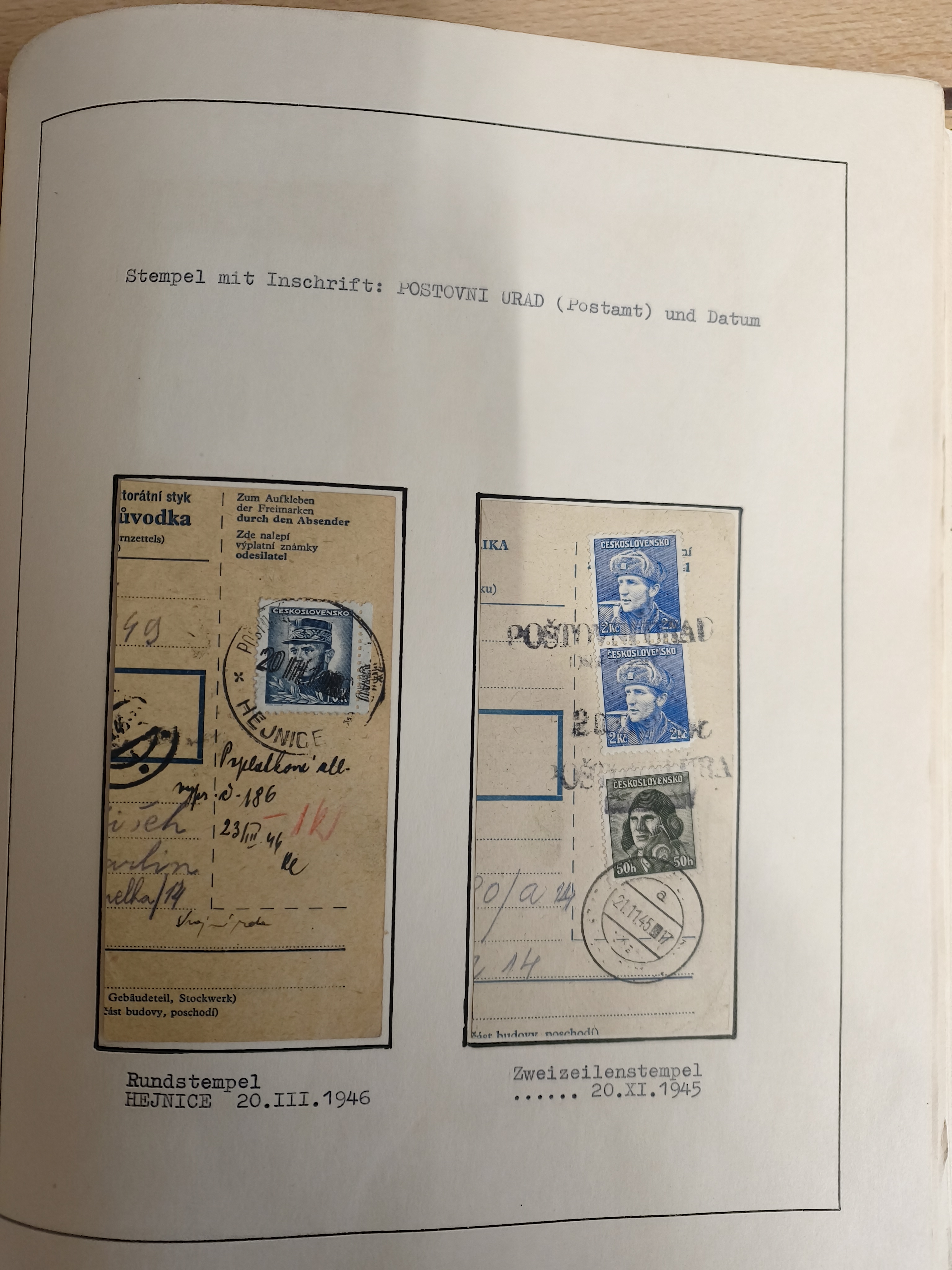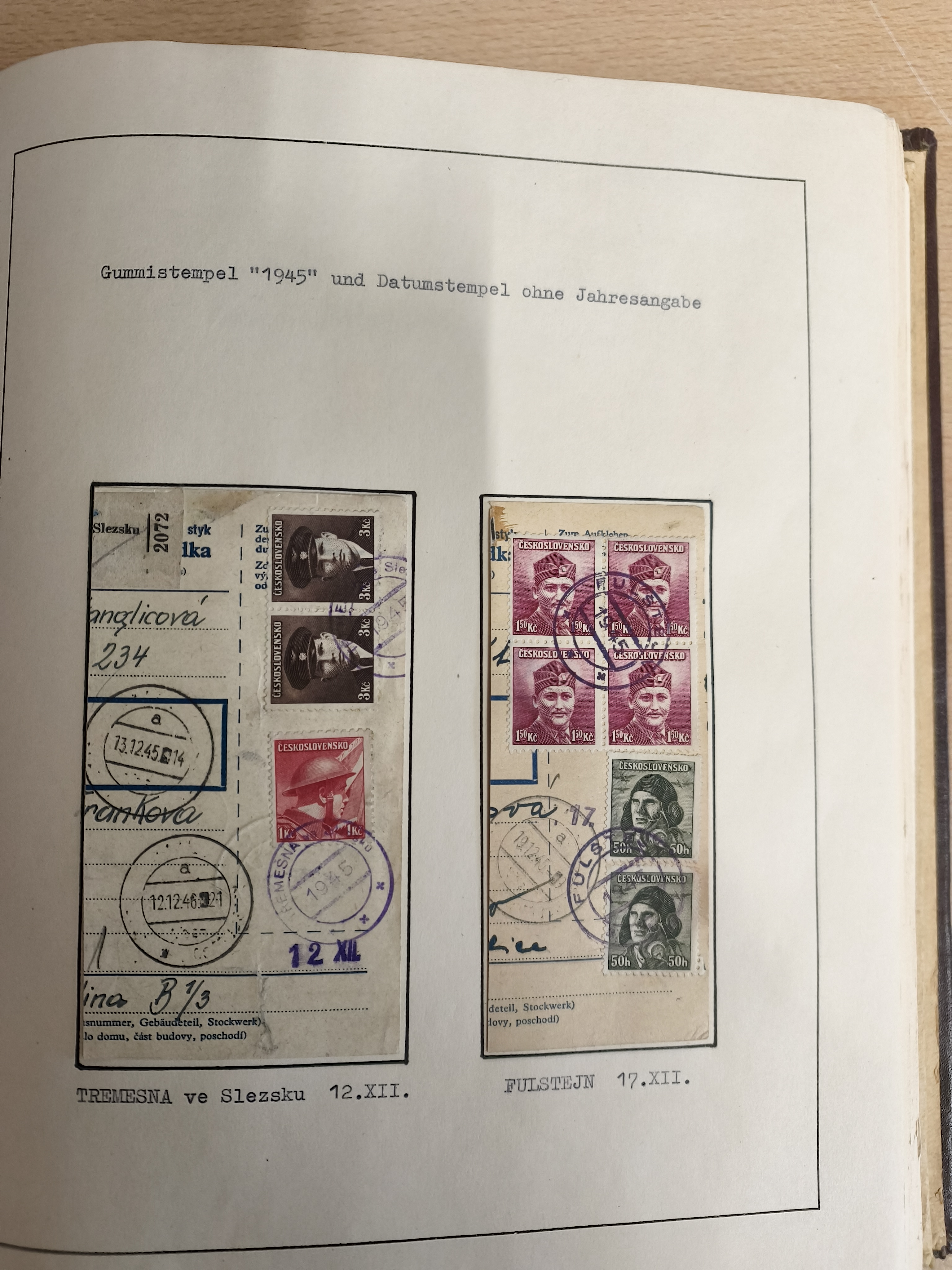 1920/45, HLUCIN - 'Hultschiner Ländchen' collection on 30 album leaves in album, starting with first Czechoslovakian post 4.2.1920, registered and official mail, receipts, postage due, postcards, german occupation, many different railway cancellation types, provisional cancellation 31.6.1945 coat of arms, overall a lovely collection.