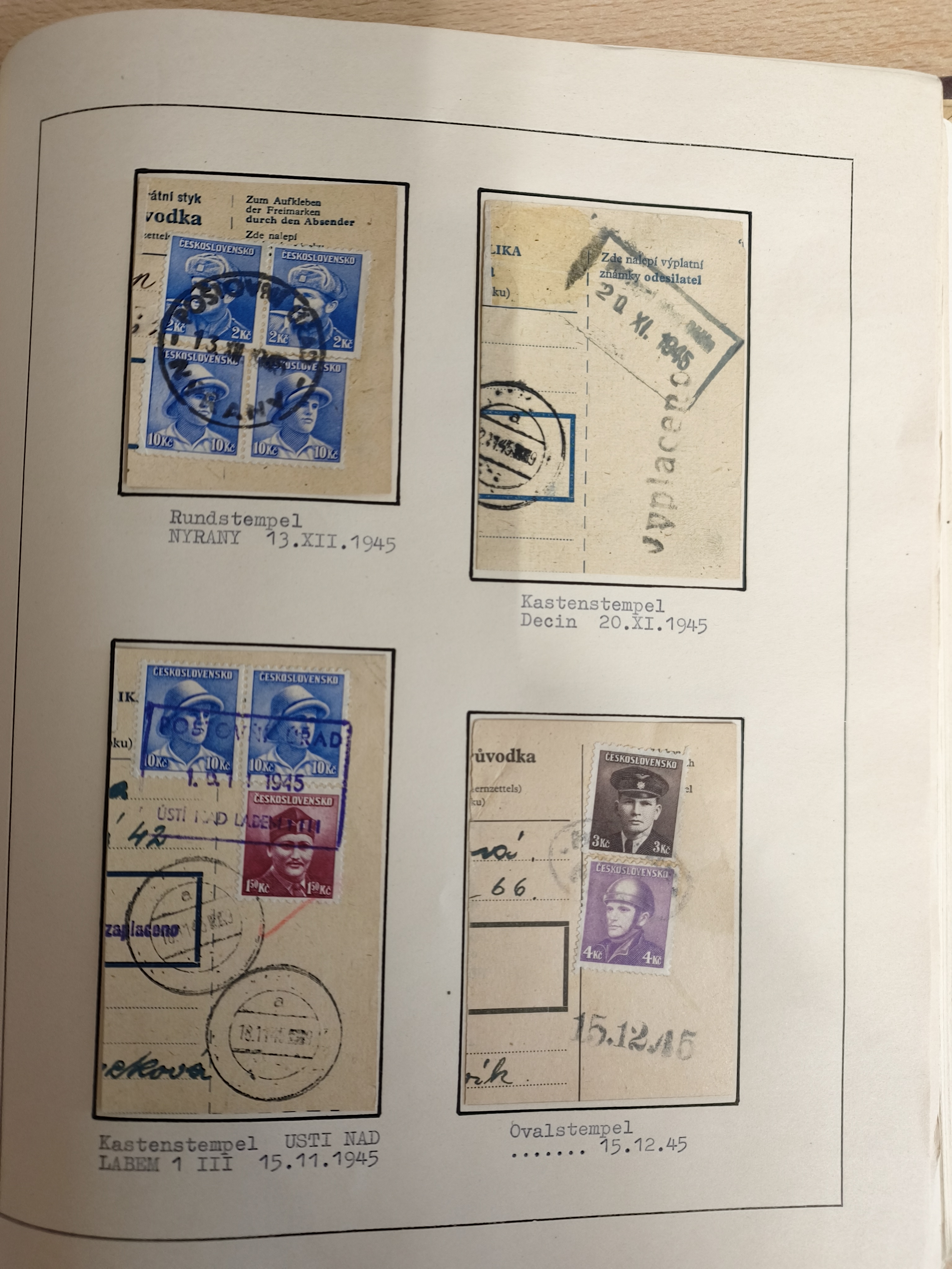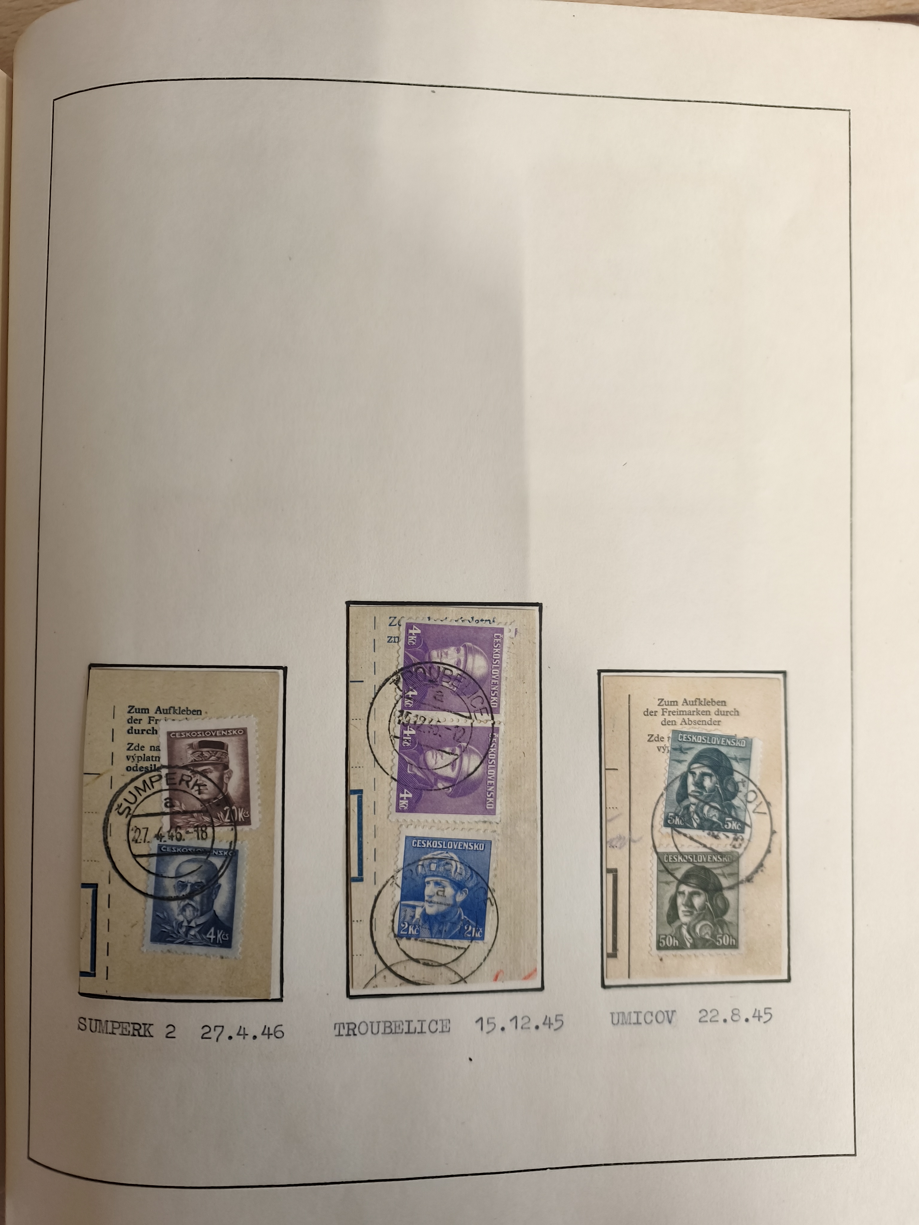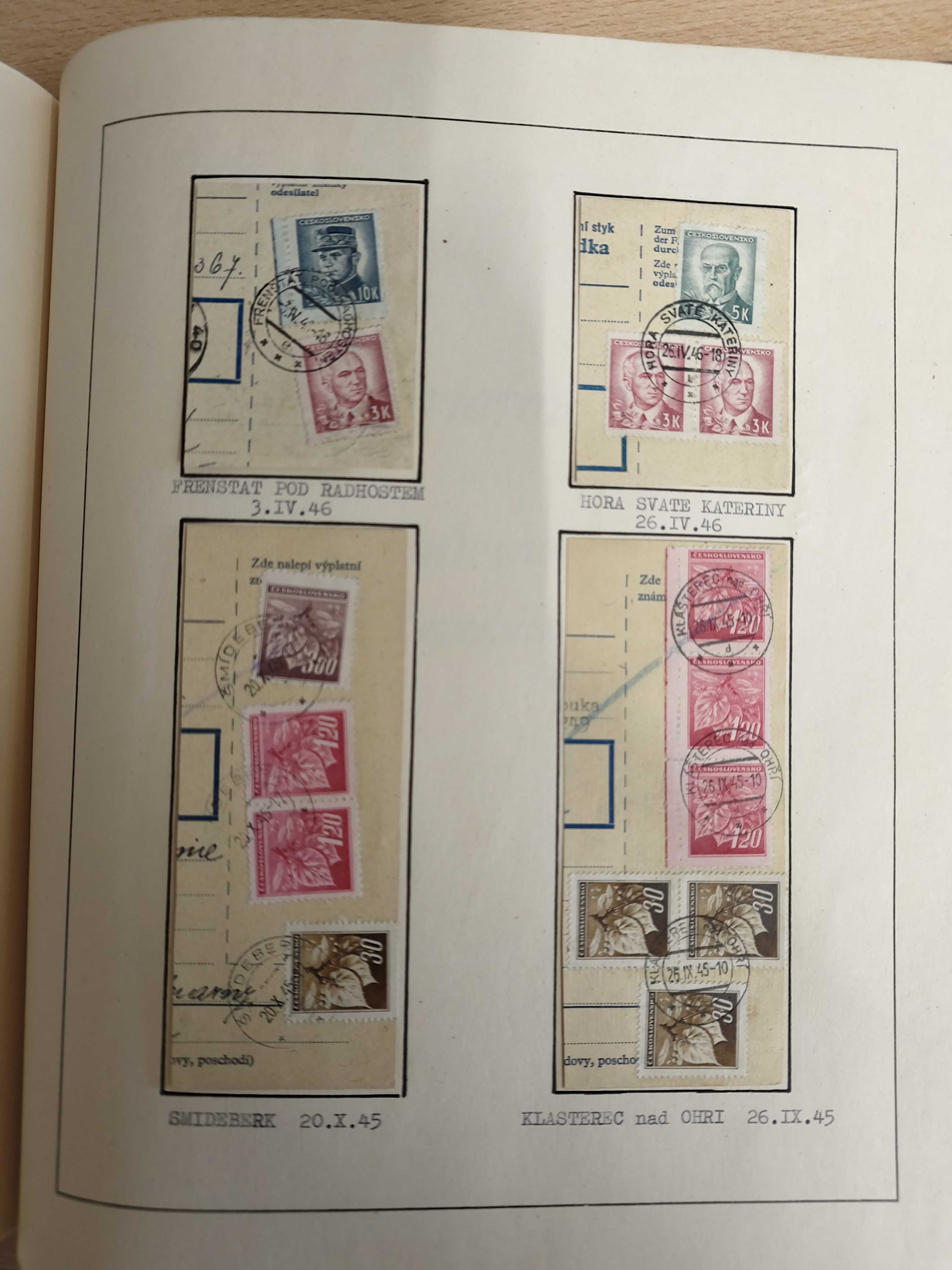 1920/45, HLUCIN - 'Hultschiner Ländchen' collection on 30 album leaves in album, starting with first Czechoslovakian post 4.2.1920, registered and official mail, receipts, postage due, postcards, german occupation, many different railway cancellation types, provisional cancellation 31.6.1945 coat of arms, overall a lovely collection.