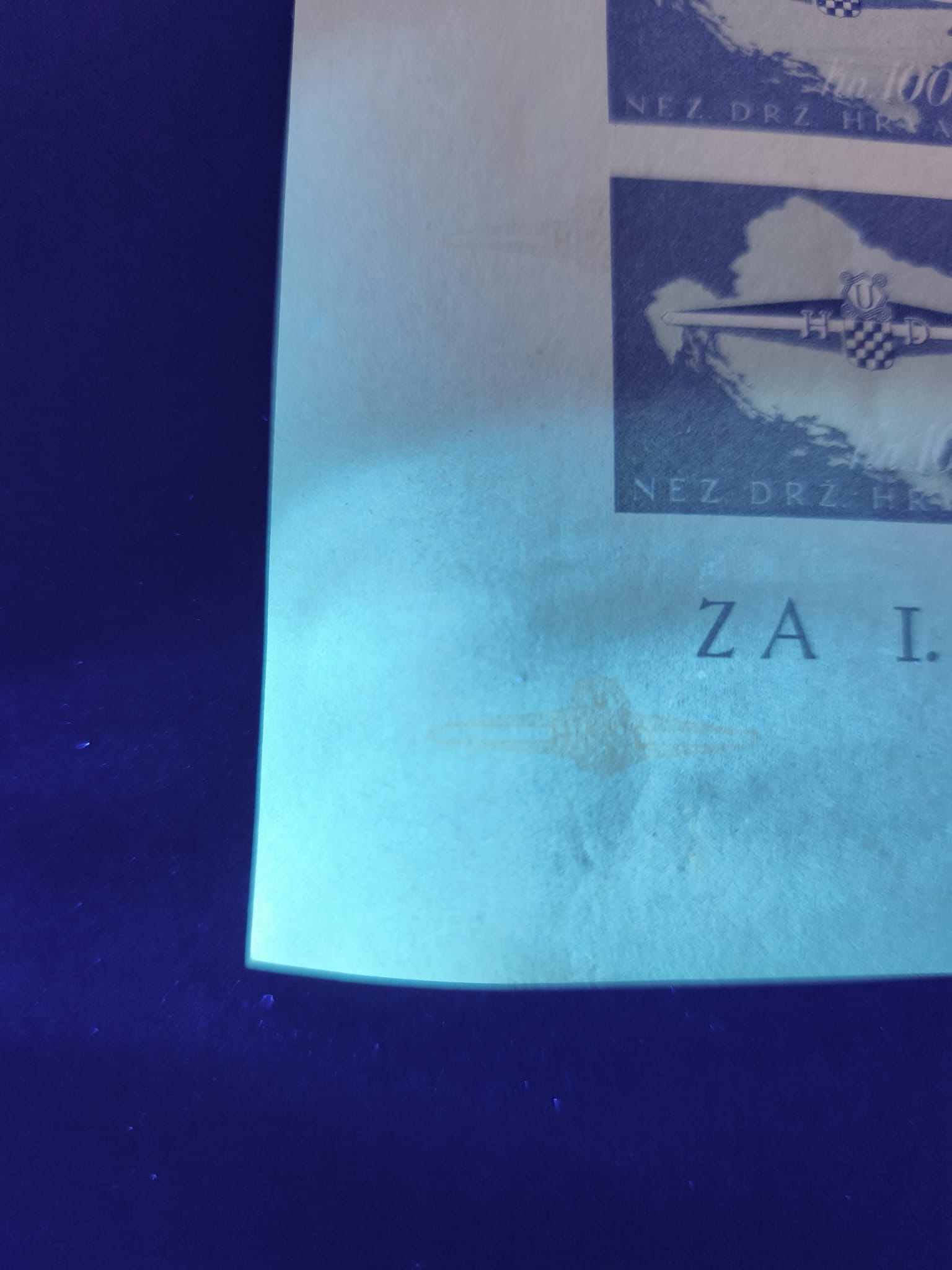 1943, 3rd Stamp Exhibition, photographic proof of the frame in black with changed value 12+8 k. and with perforation drawn in with pencil, on photographic paper without gum. Two creases at top, otherwise fine. A unique proof print and a great rarity