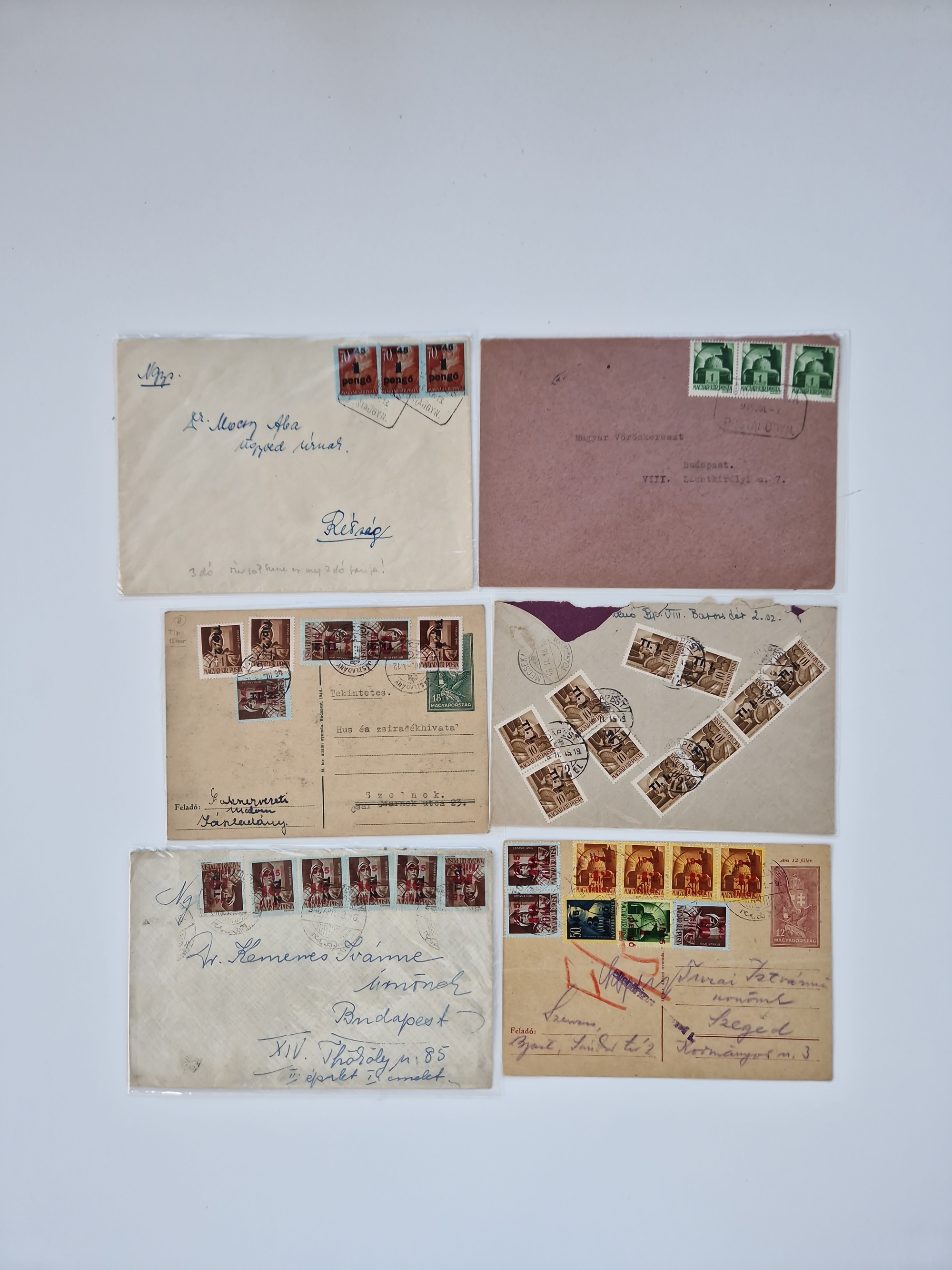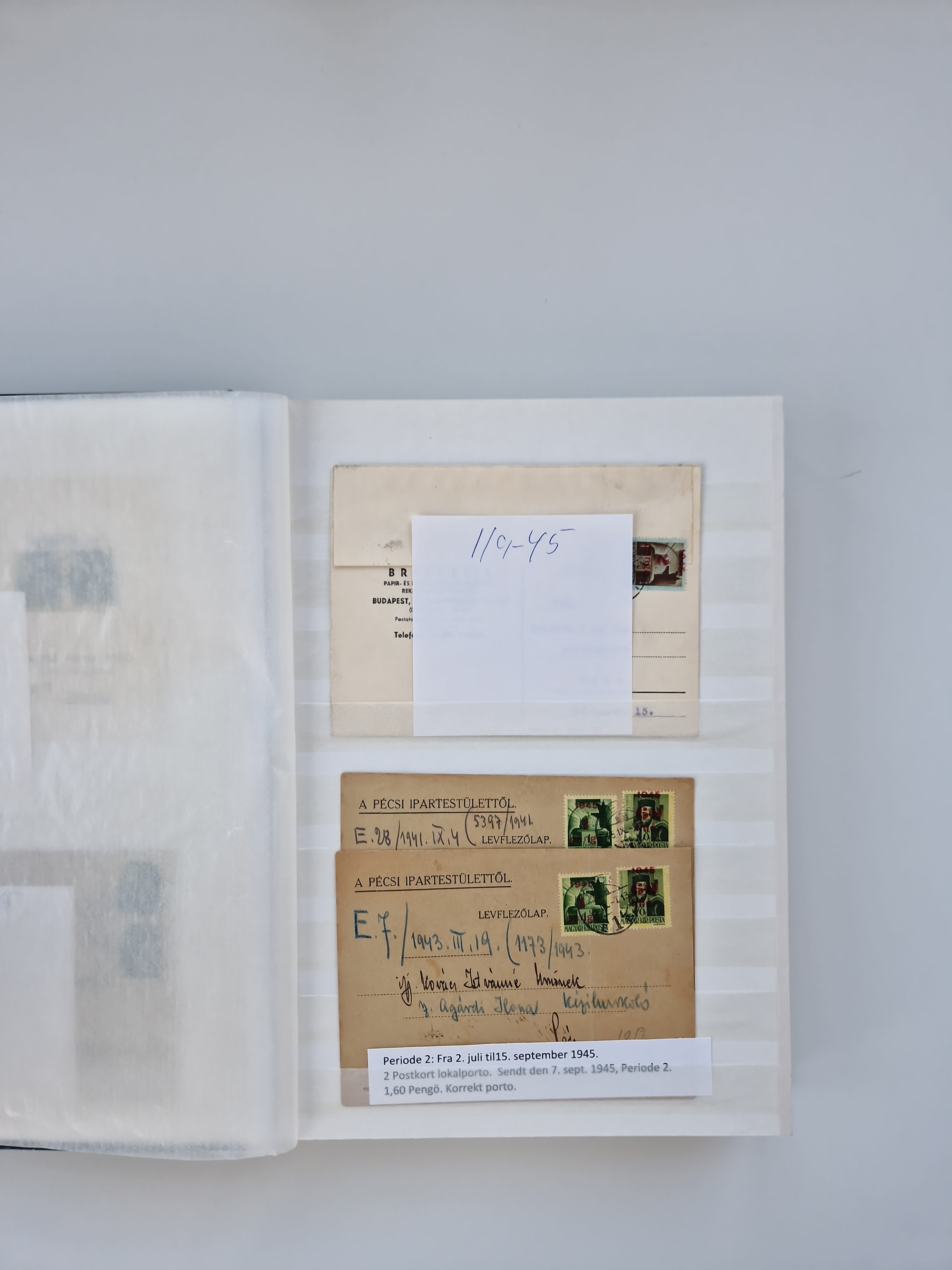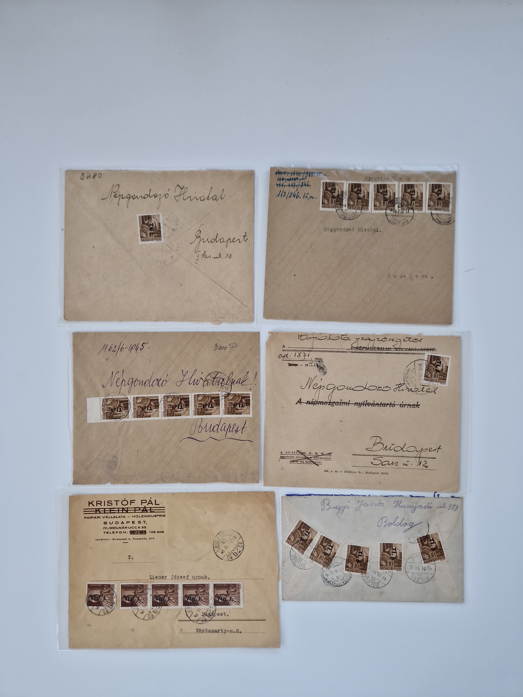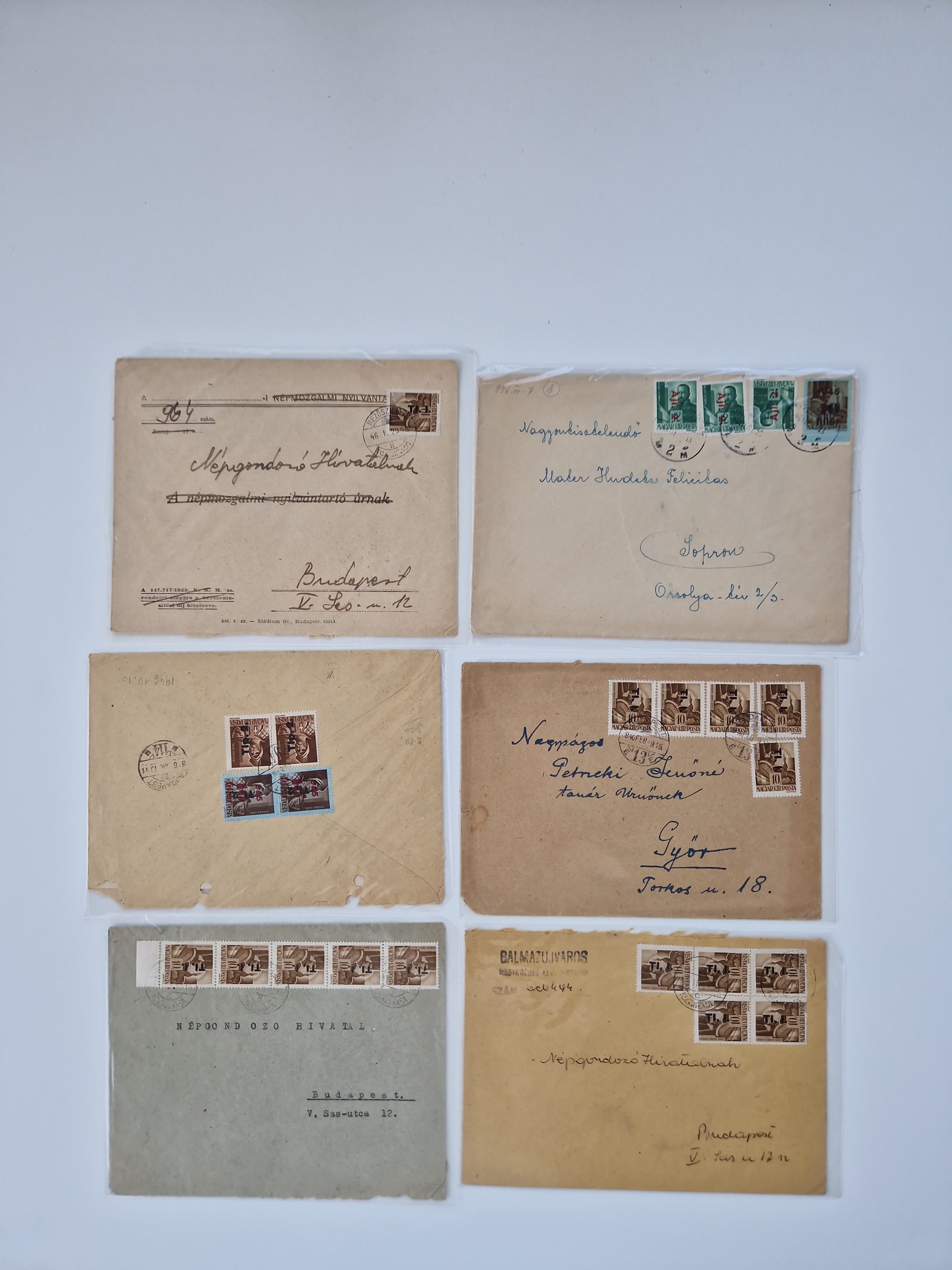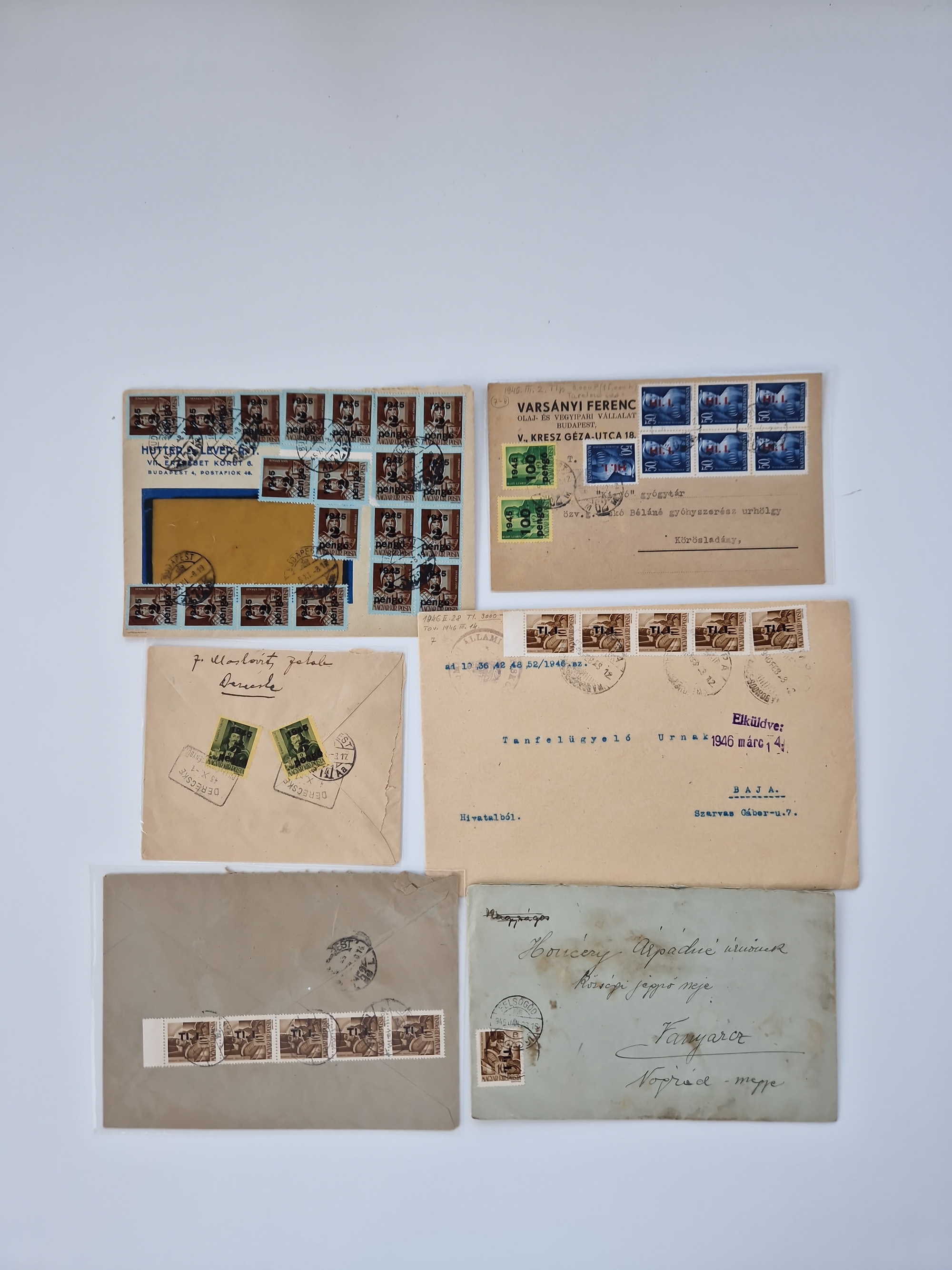 HYPERINFLATION: 1945/46, extensive exhibit collection with over 125 covers and postcards, spanning periods 1 to 21 and 25-26, showing a fine range of rates with an abundance of usages and better frankings, including Paid in Cash, foreign destinations, massive inflation frankings, mail sent during the Grace Period or under military free frank concession, etc., many better items throughout with March 1946 cover (10th Period) correctly franked at 90,000P, May 1946 Printed Matter (14th Period) during the Grace Period at the previous rate, mail from the scarcer 25th (x2) and 26th (x6) periods, April 1946 registered cover (13th Period) with fewer denominations of the earlier Ezerp values, July 1946 underpaid Printed Matter (26th Period) with Revenue 100 Ezer as single franking postage due, etc. A delightful assembly, neatly mounted and described, in one album