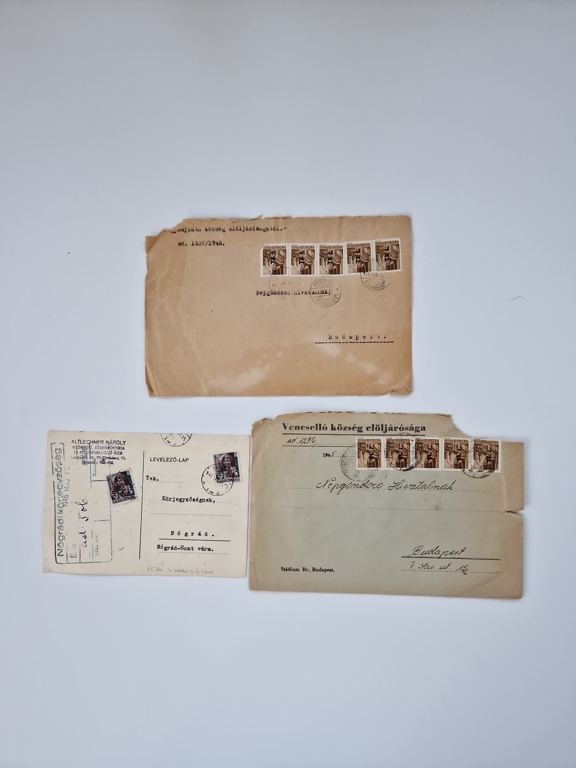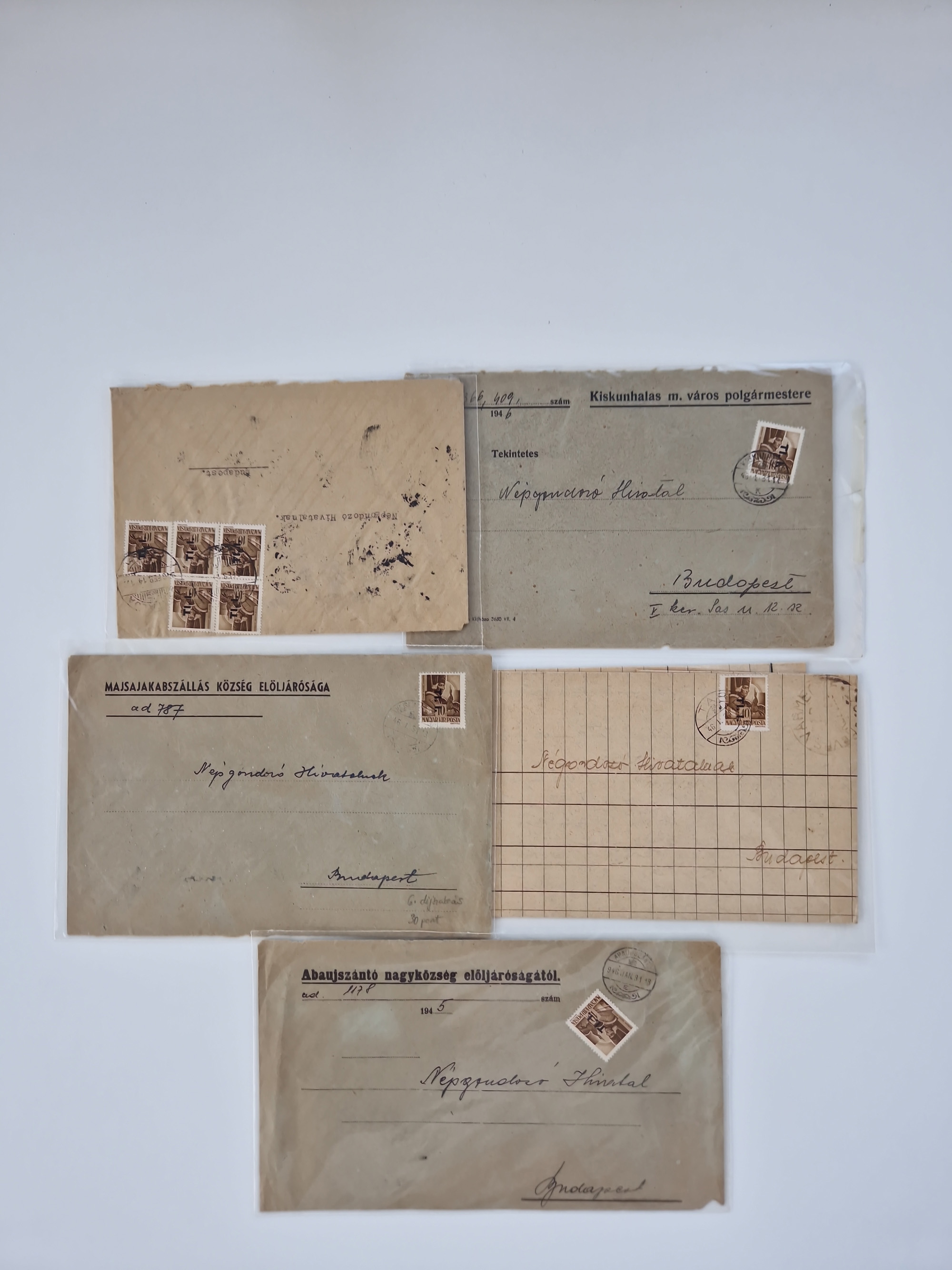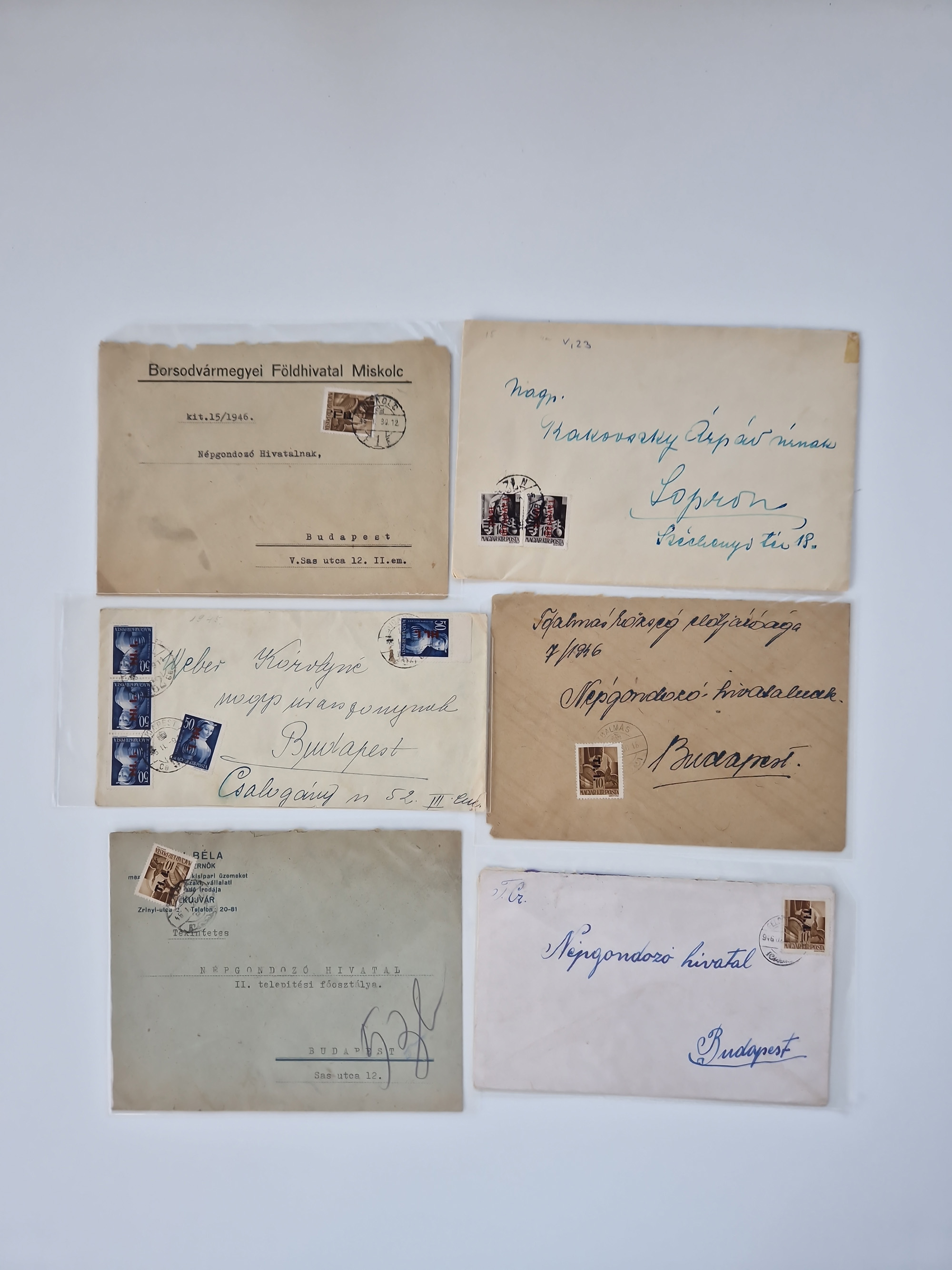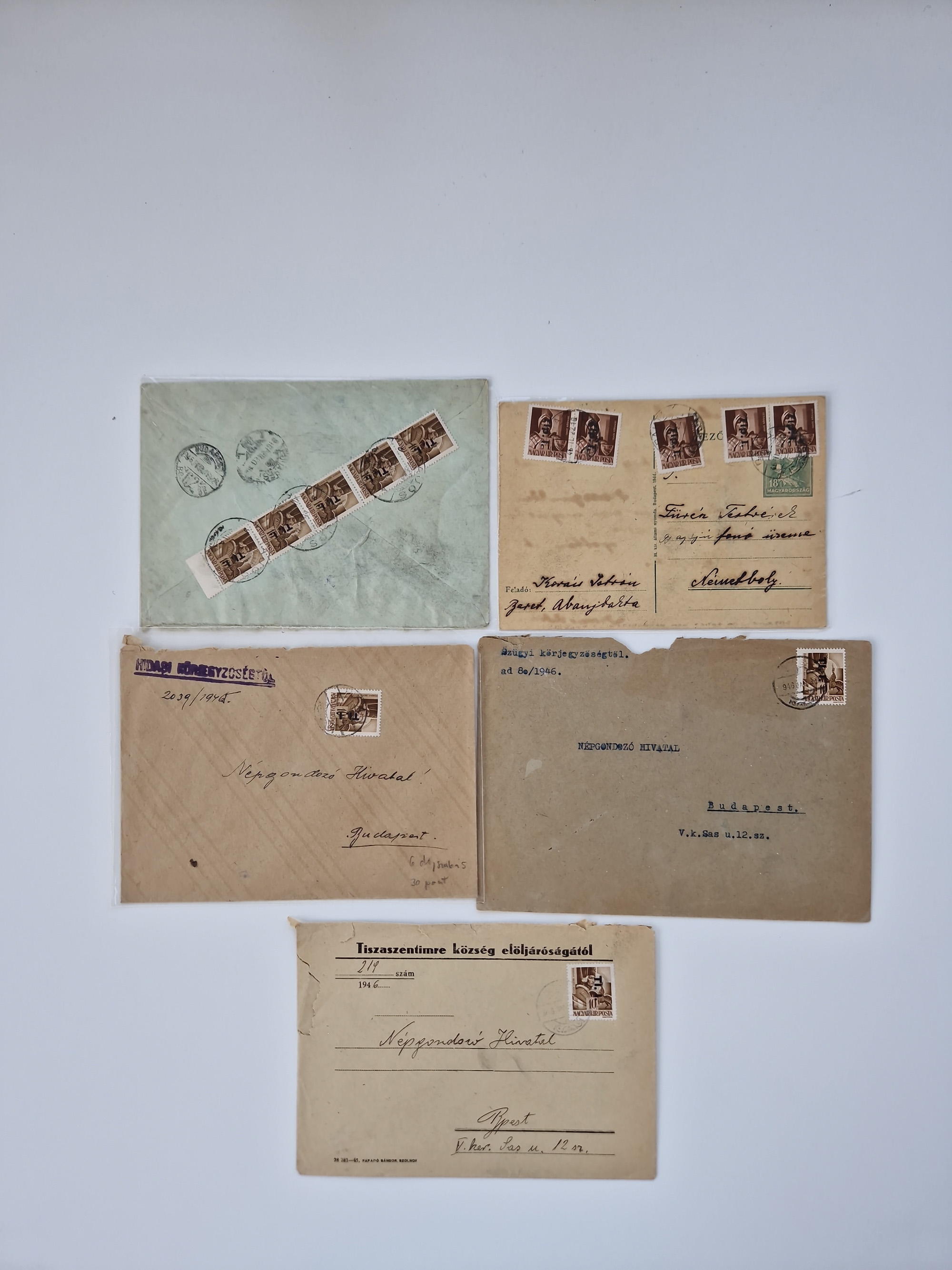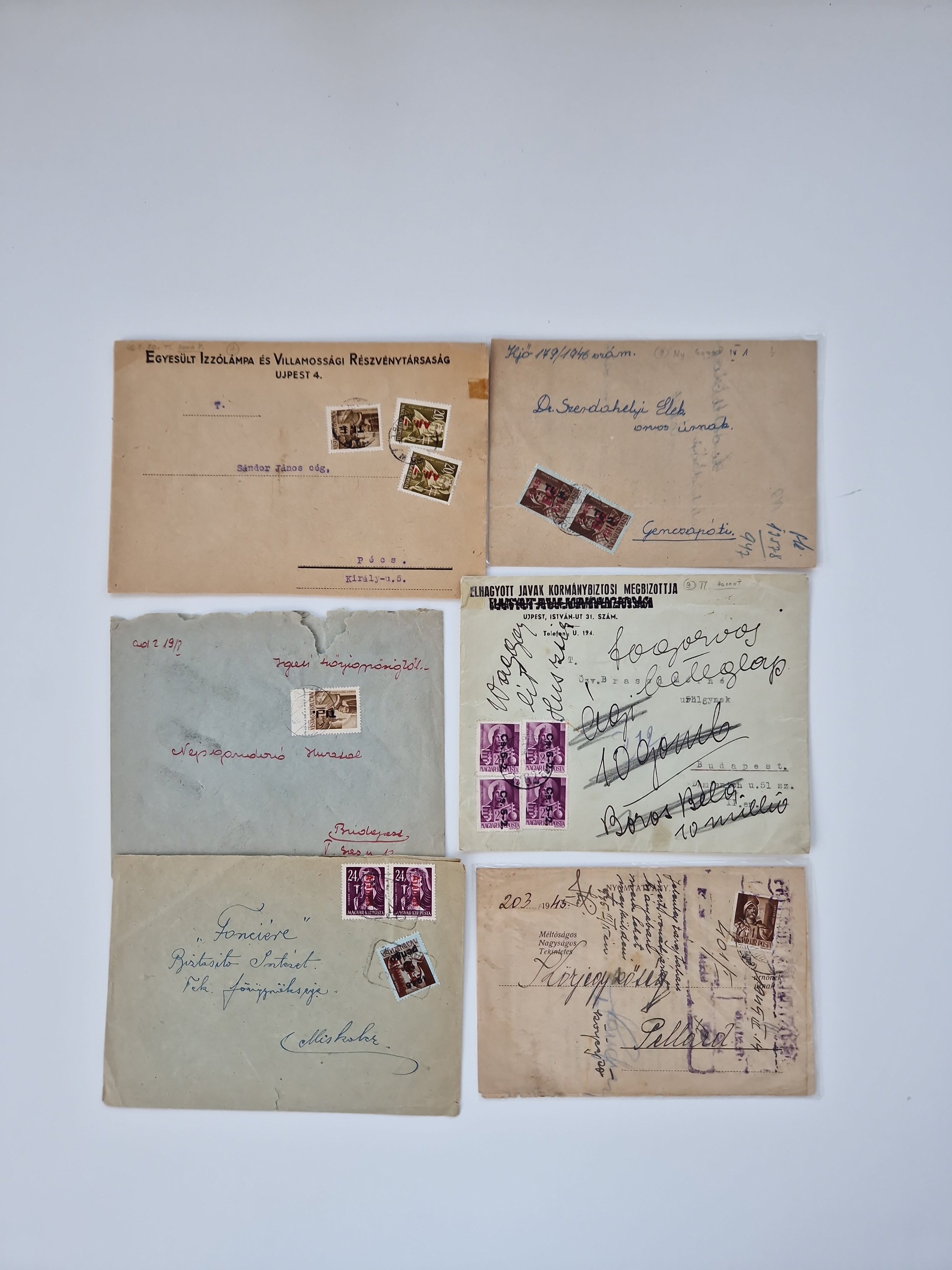 HYPERINFLATION: 1945/46, extensive exhibit collection with over 125 covers and postcards, spanning periods 1 to 21 and 25-26, showing a fine range of rates with an abundance of usages and better frankings, including Paid in Cash, foreign destinations, massive inflation frankings, mail sent during the Grace Period or under military free frank concession, etc., many better items throughout with March 1946 cover (10th Period) correctly franked at 90,000P, May 1946 Printed Matter (14th Period) during the Grace Period at the previous rate, mail from the scarcer 25th (x2) and 26th (x6) periods, April 1946 registered cover (13th Period) with fewer denominations of the earlier Ezerp values, July 1946 underpaid Printed Matter (26th Period) with Revenue 100 Ezer as single franking postage due, etc. A delightful assembly, neatly mounted and described, in one album