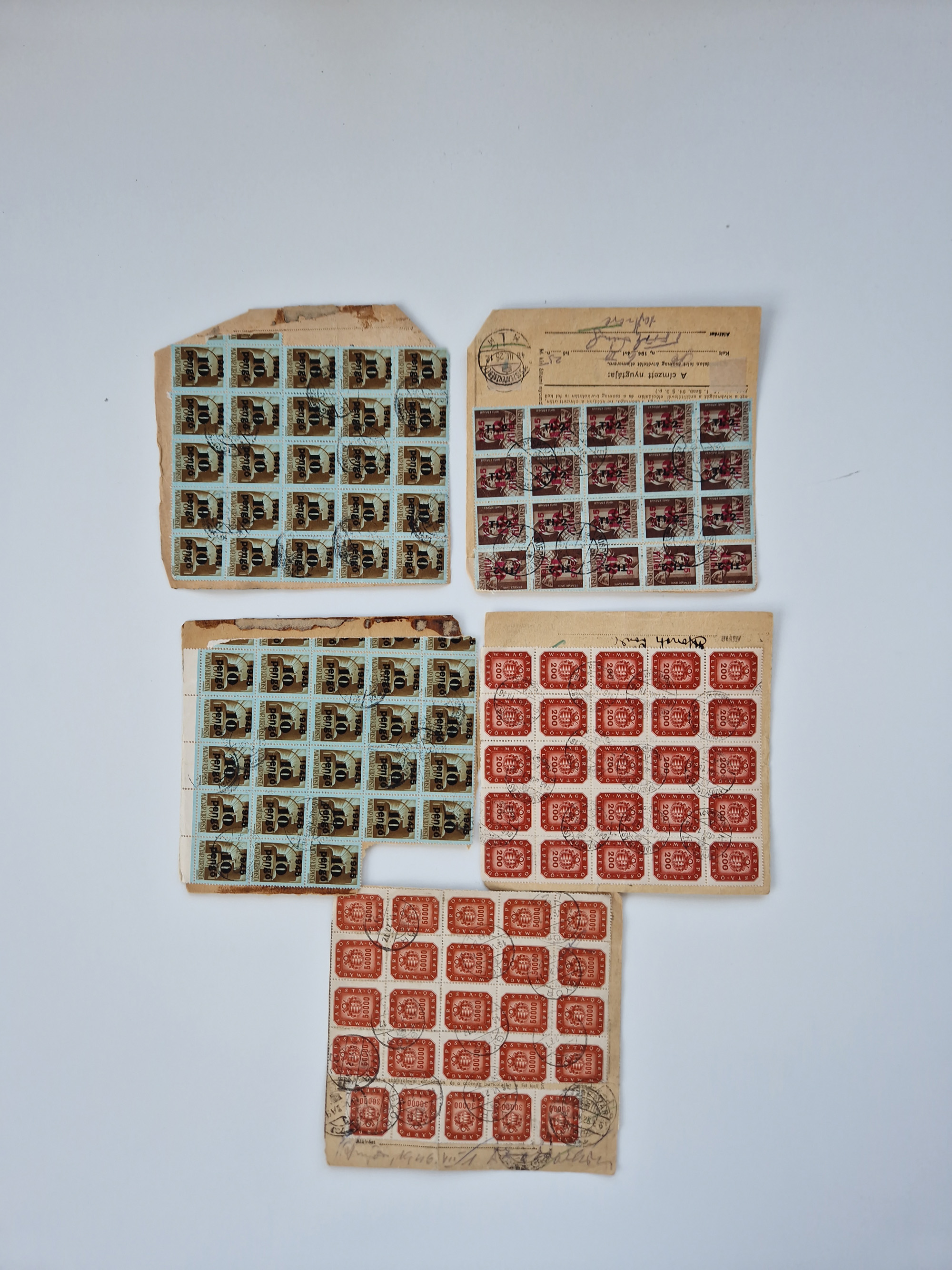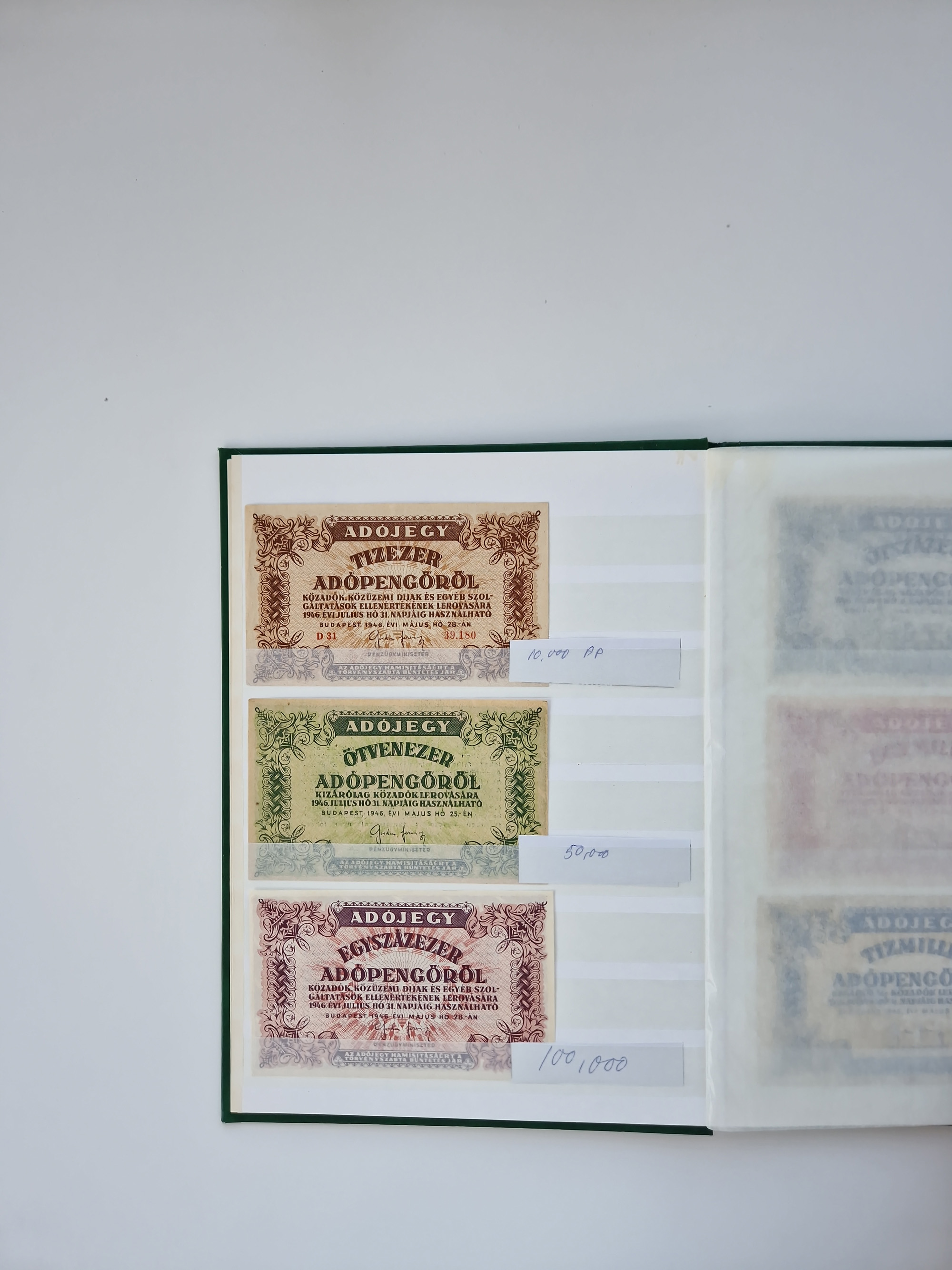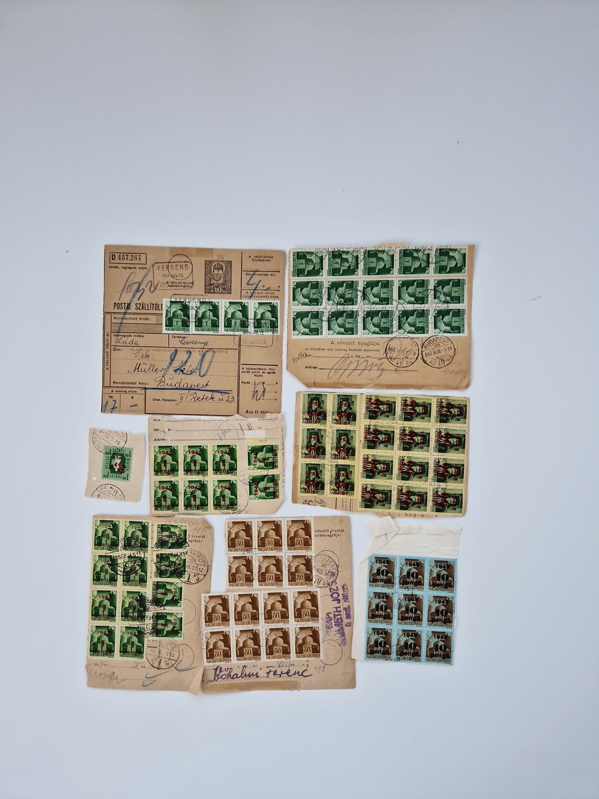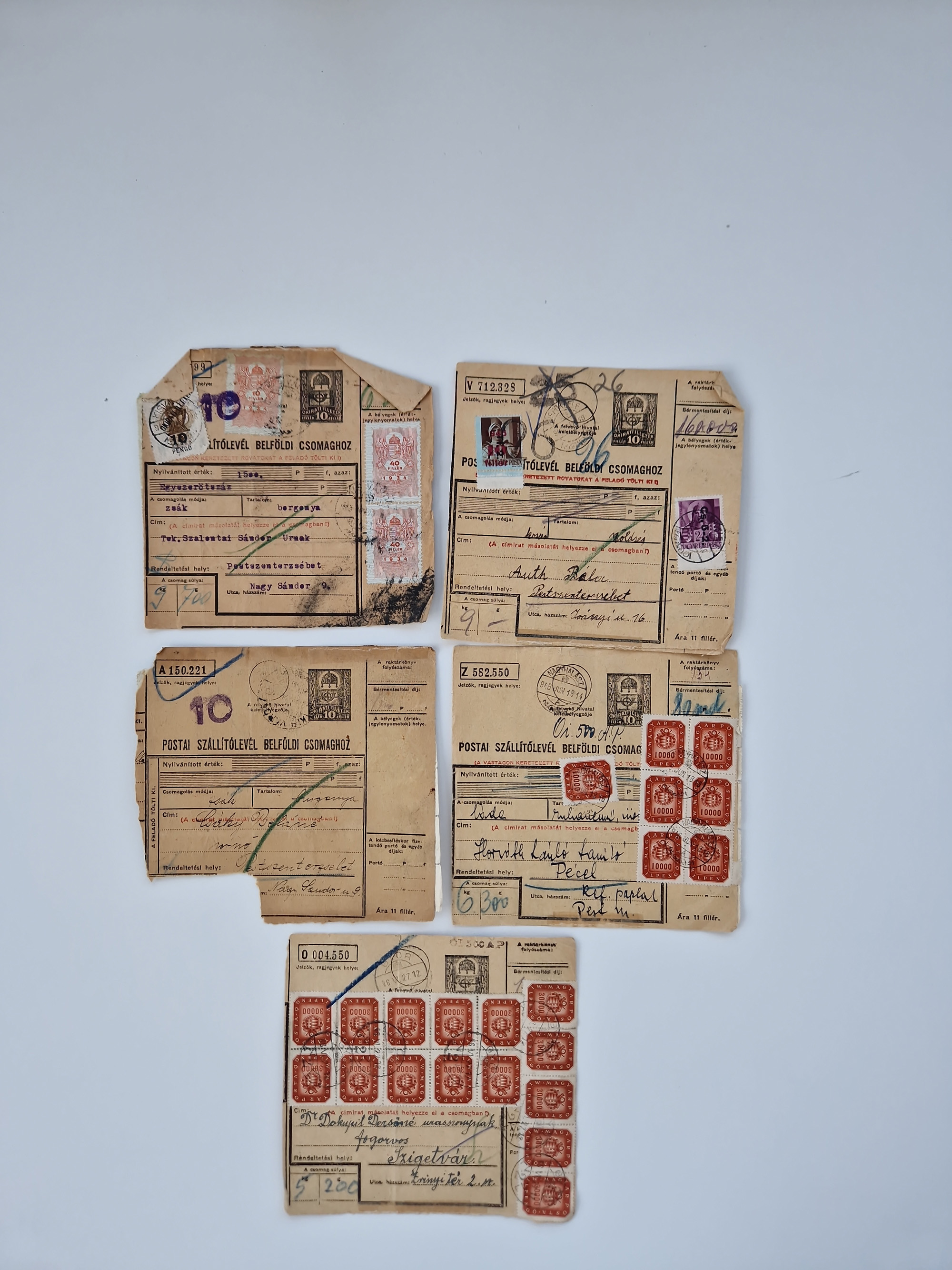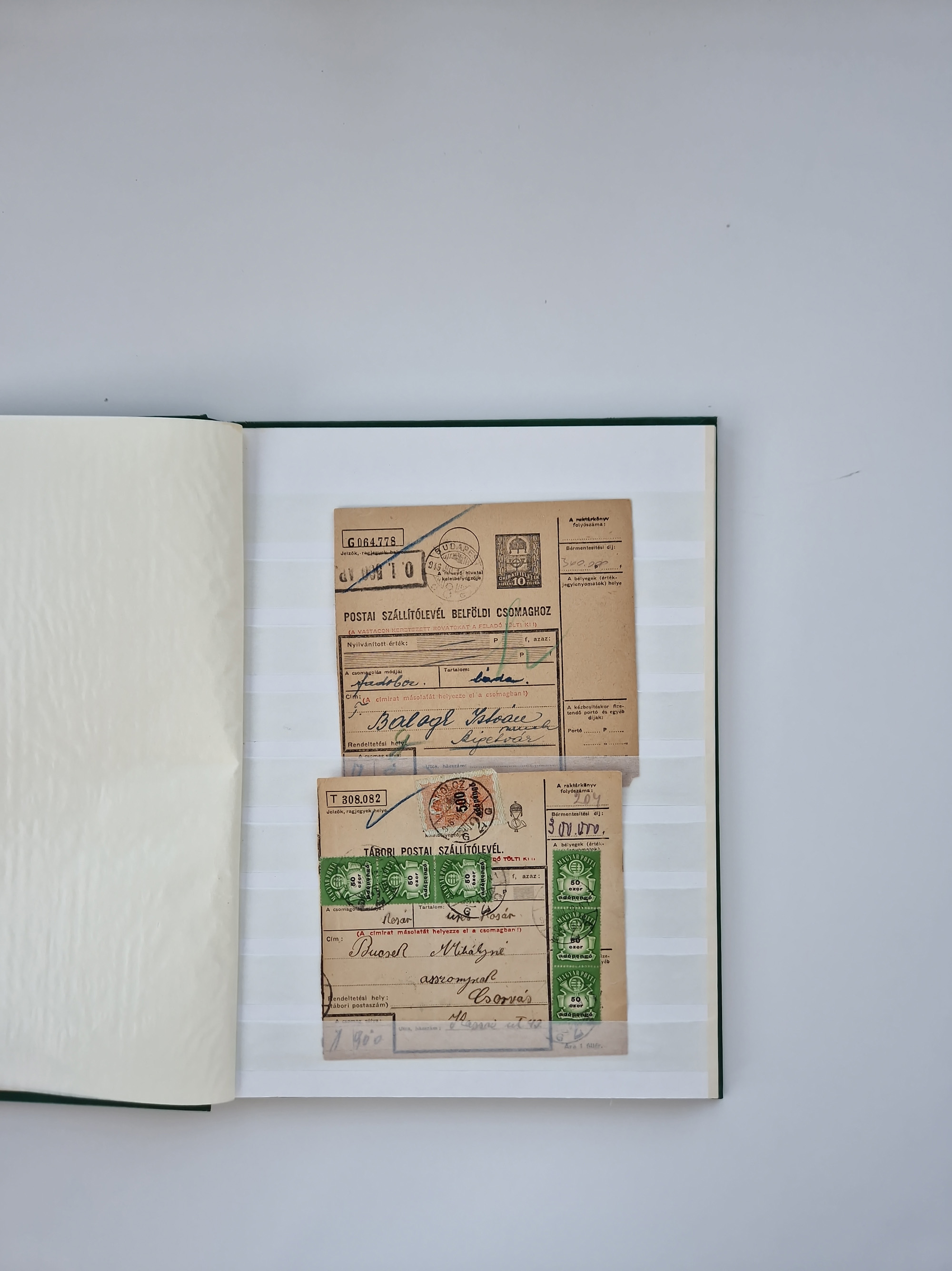 HYPERINFLATION: 1945/46, highly specialized Parcel Cards exhibit collection with around 80 items, showing a fine range of frankings and spanning periods 2 to 21 and 26-27, including interesting usages with Express mailing and Adópengö frankings, noted some of the scarcer periods with 10th (x5), 13th 8x3), 16th, 17th (x3, rate valid only 5 days), 19th (x3), 26th (x2) and 27th (x23), some better usages throughout with September 1945 scarce parcel card for a 20 kg sending (2nd Period), etc.; a fine assembly in overall good condition, neatly mounted and expertly described in Danish, in one album
